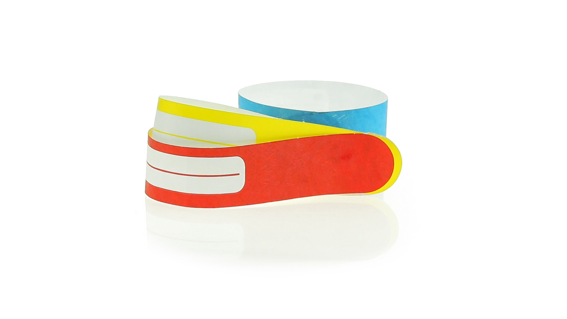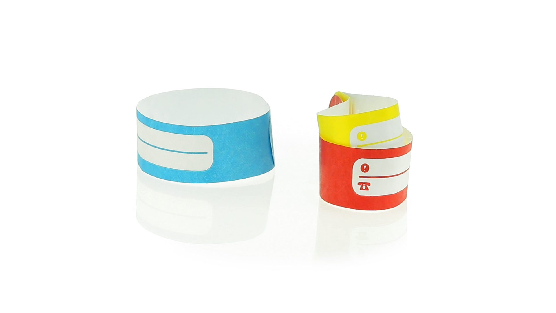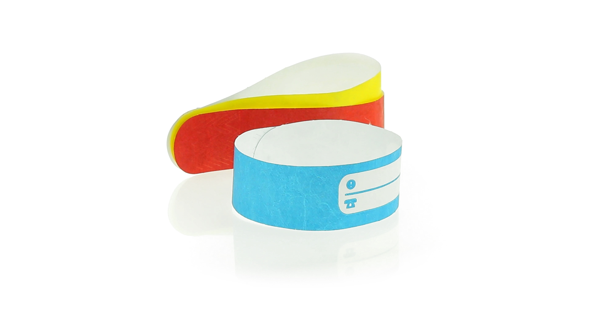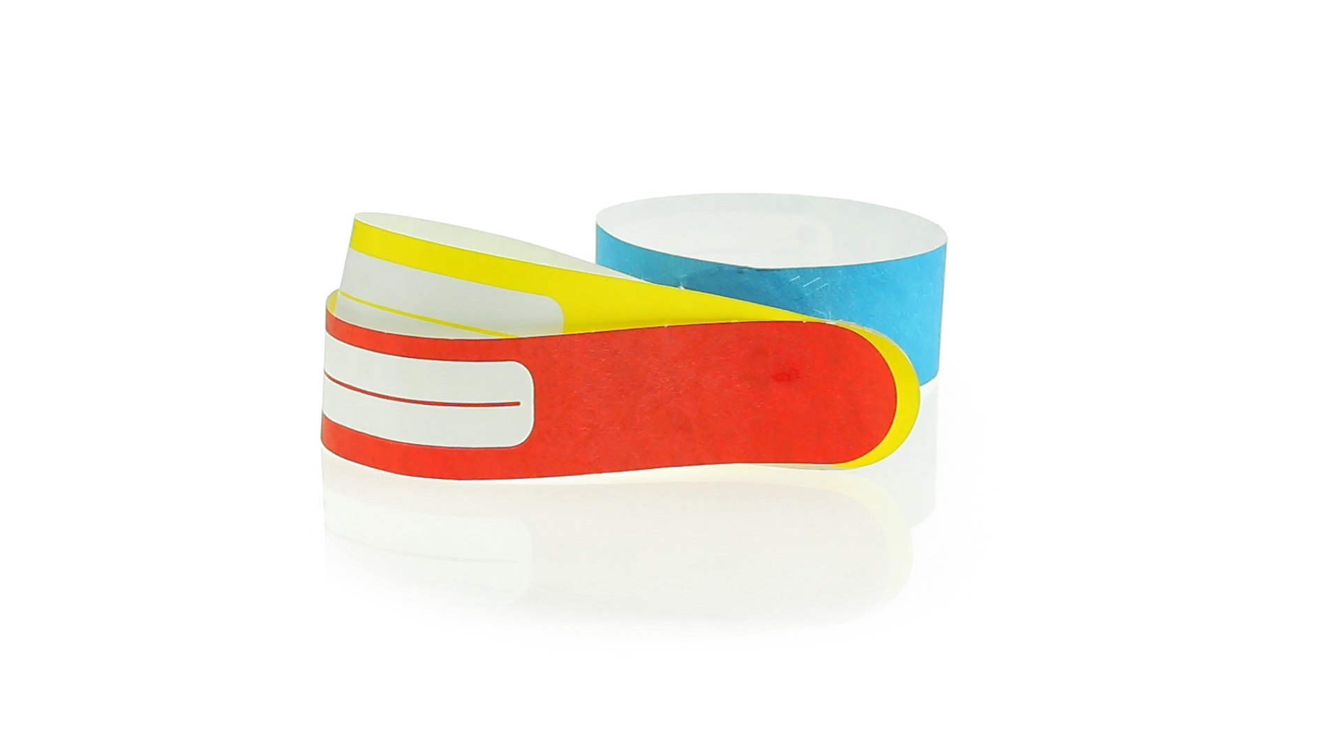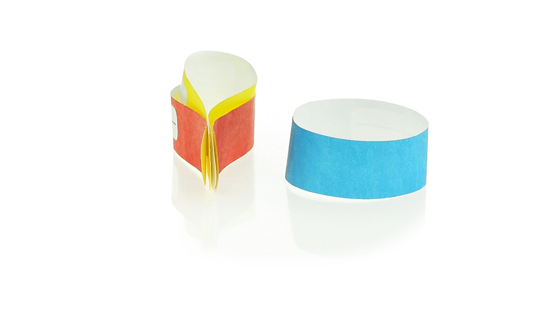 Armband für Kinder aus synthetischer Faser in einer Vielzahl von kräftigen Farben. Mit Identifikationsfeld und Klebeverschluss. Wasserfest und in gestanzten Bögen á 10 Stück für einfaches Bedrucken.