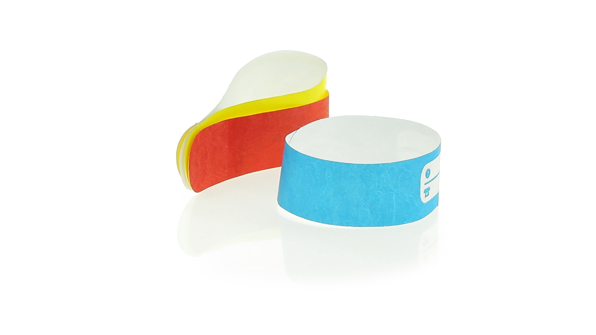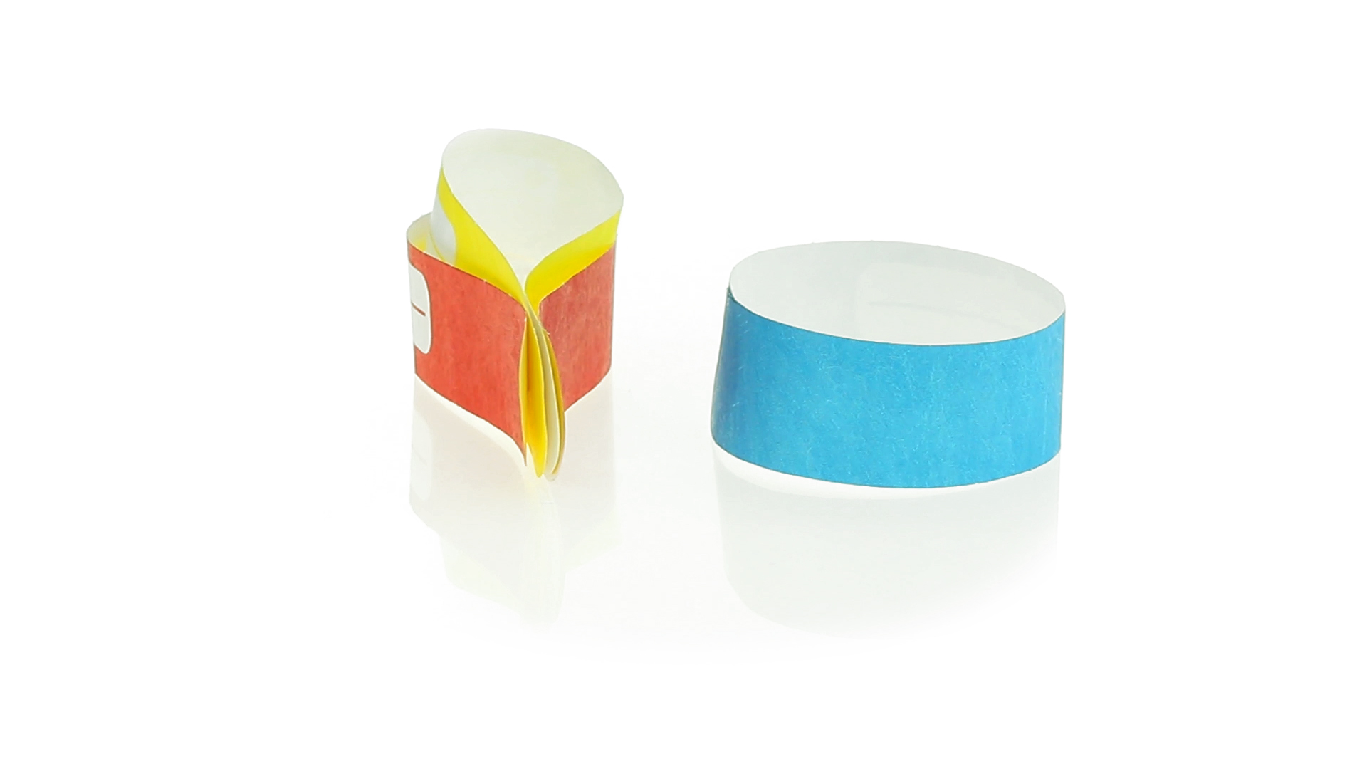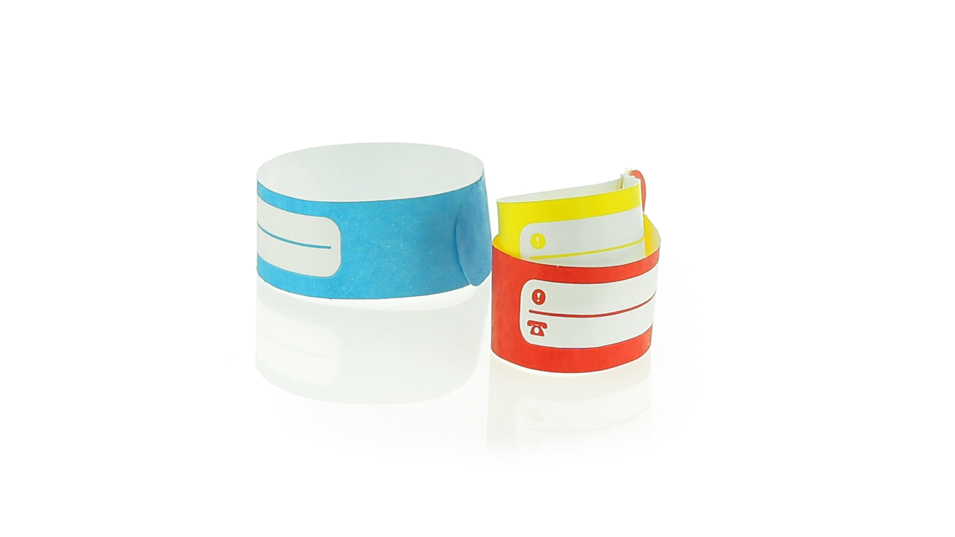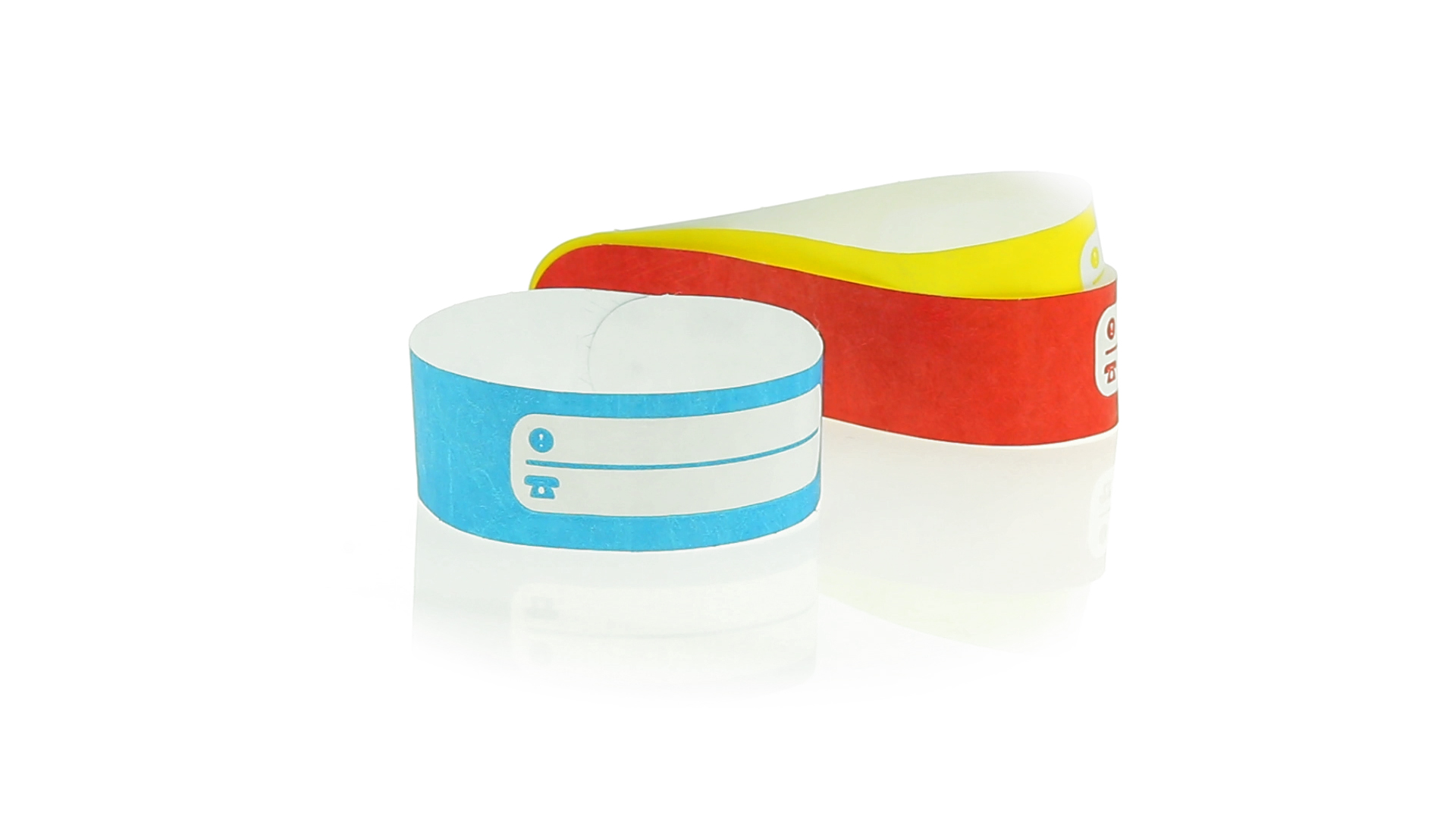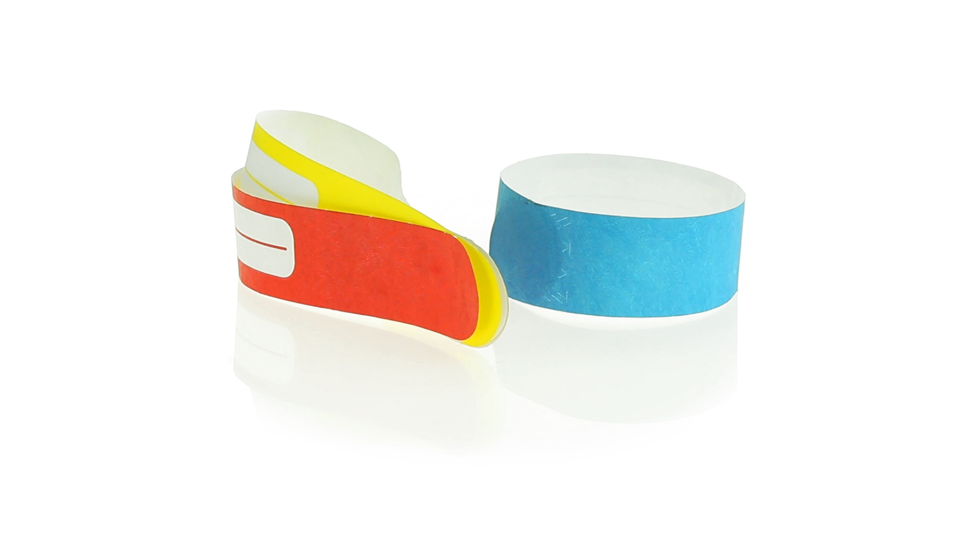 Armband für Kinder aus synthetischer Faser in einer Vielzahl von kräftigen Farben. Mit Identifikationsfeld und Klebeverschluss. Wasserfest und in gestanzten Bögen á 10 Stück für einfaches Bedrucken.