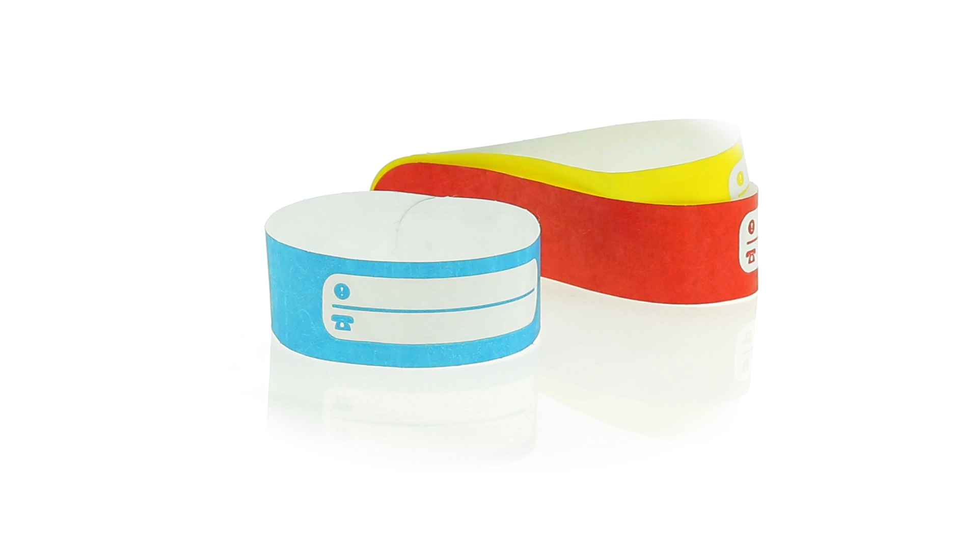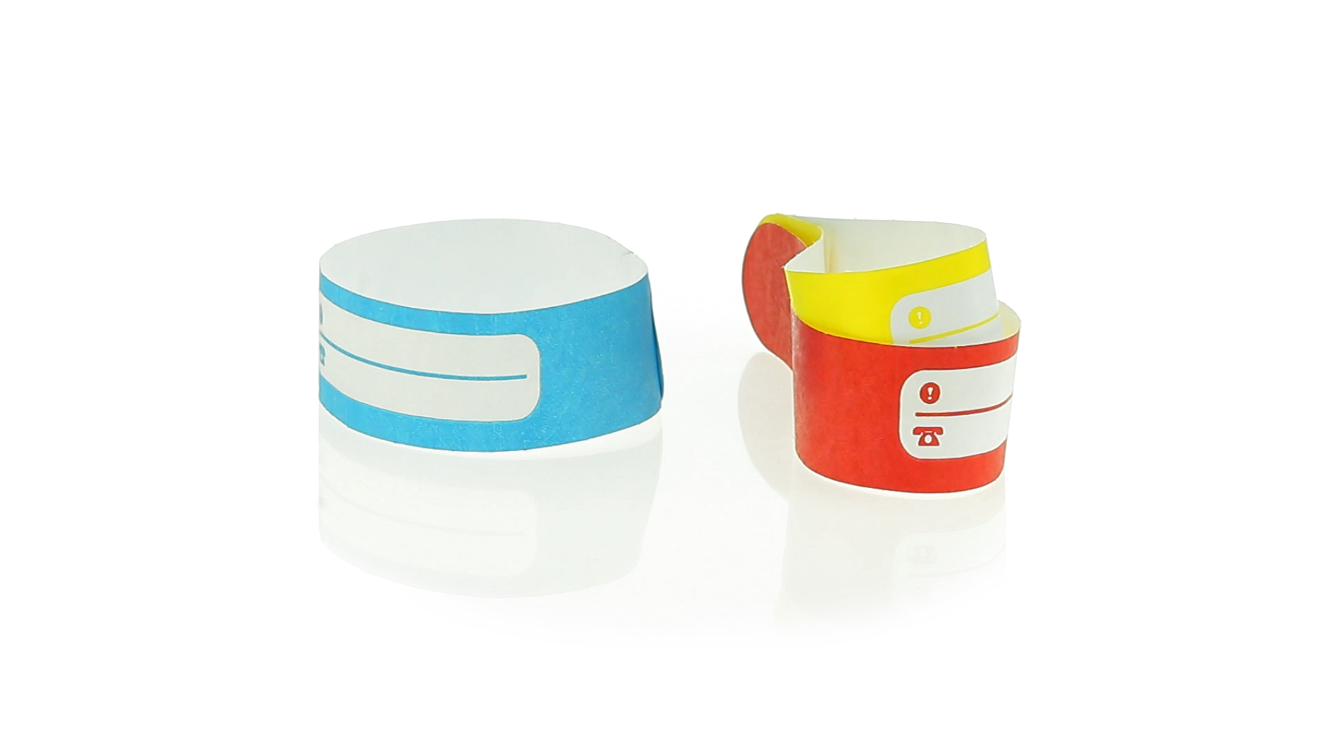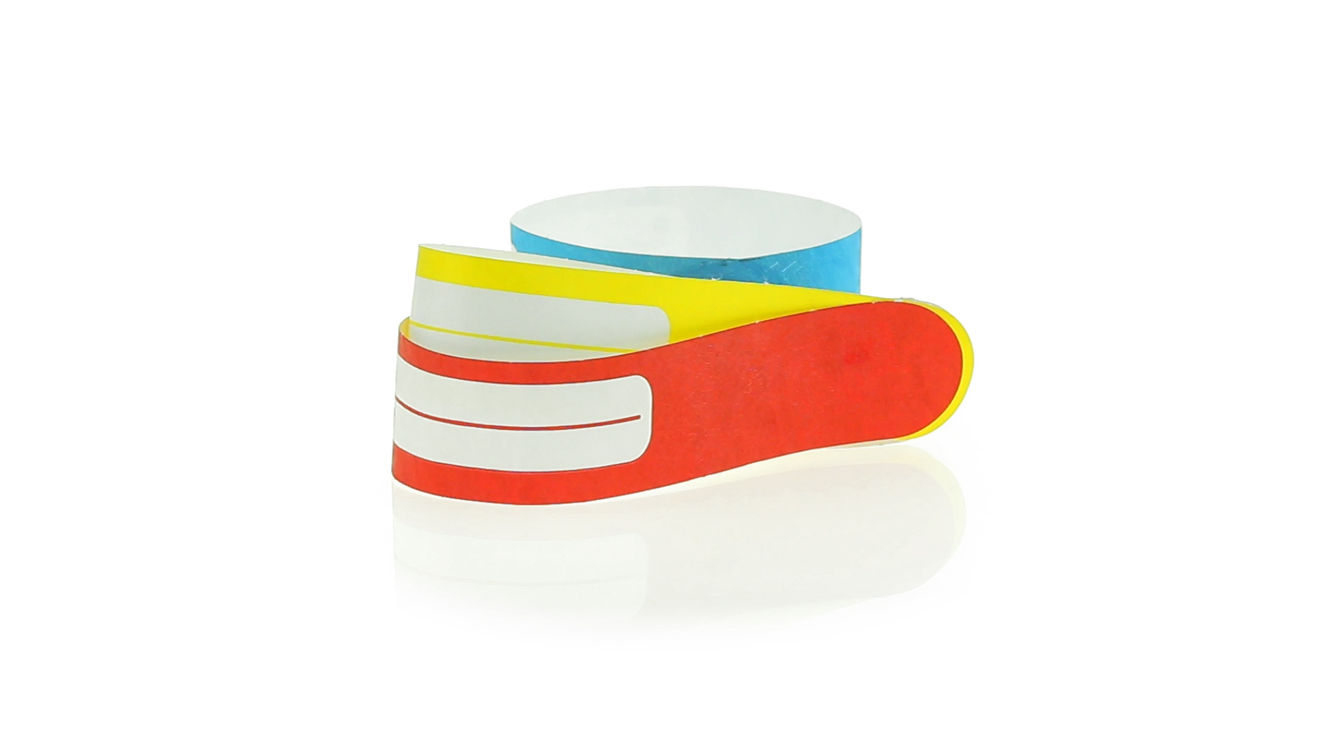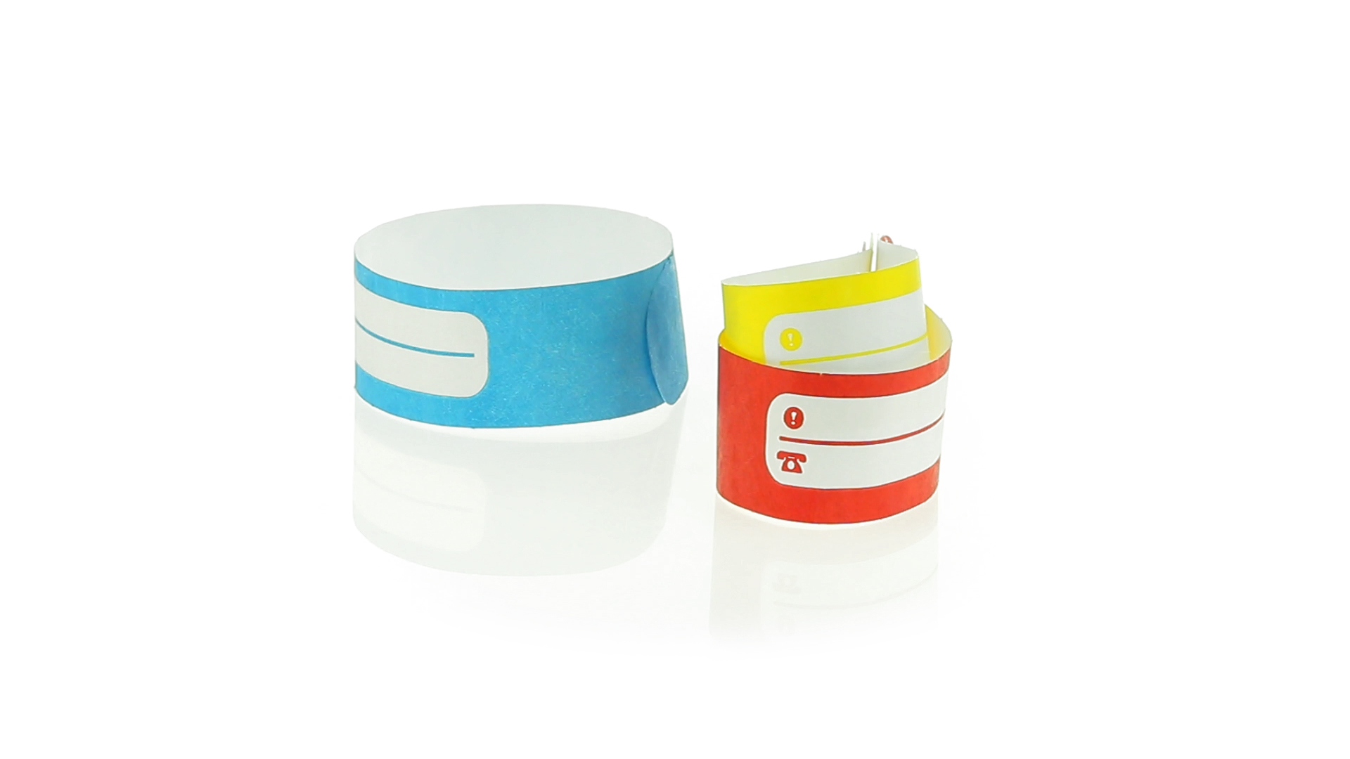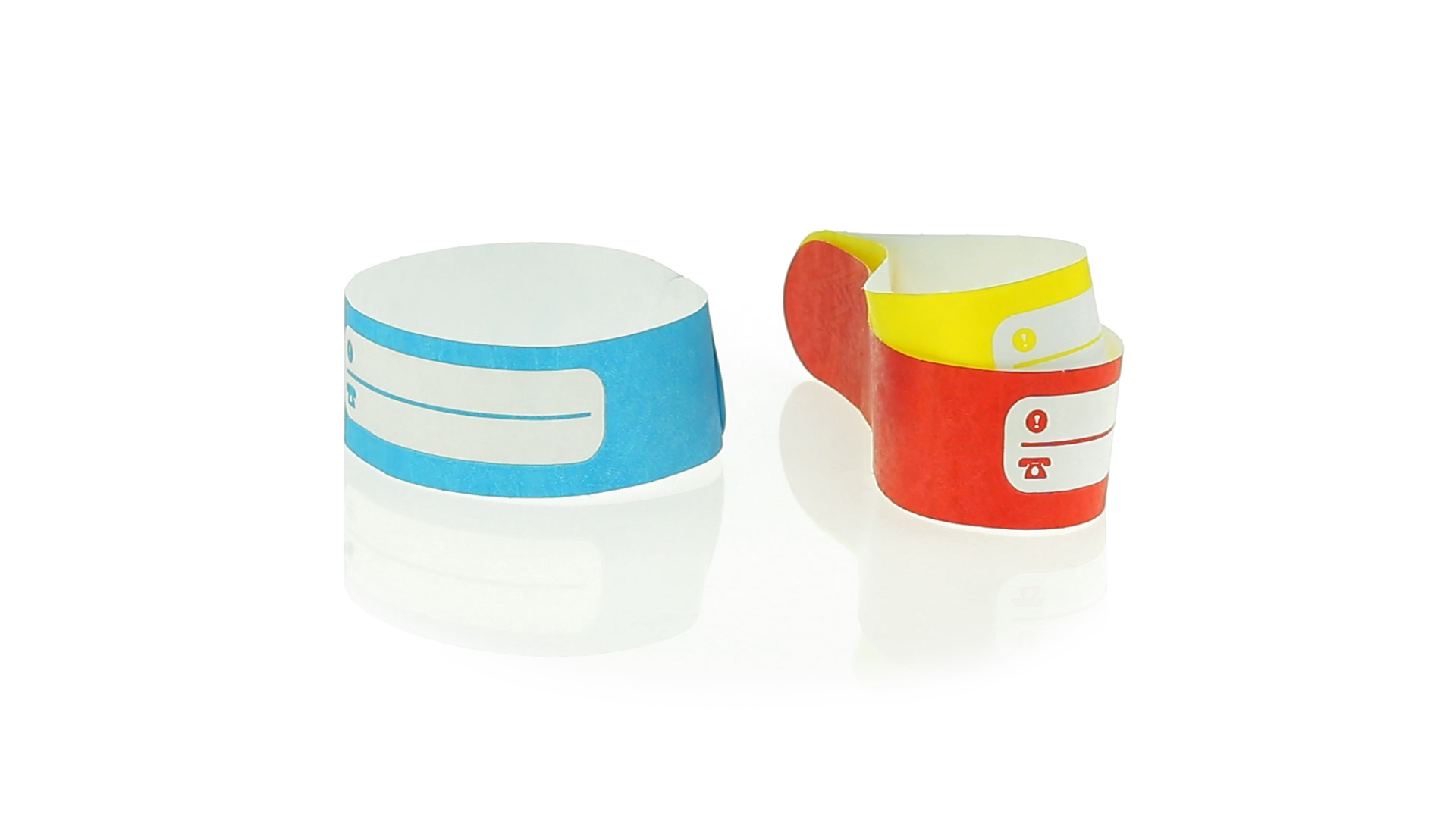 Armband für Kinder aus synthetischer Faser in einer Vielzahl von kräftigen Farben. Mit Identifikationsfeld und Klebeverschluss. Wasserfest und in gestanzten Bögen á 10 Stück für einfaches Bedrucken.