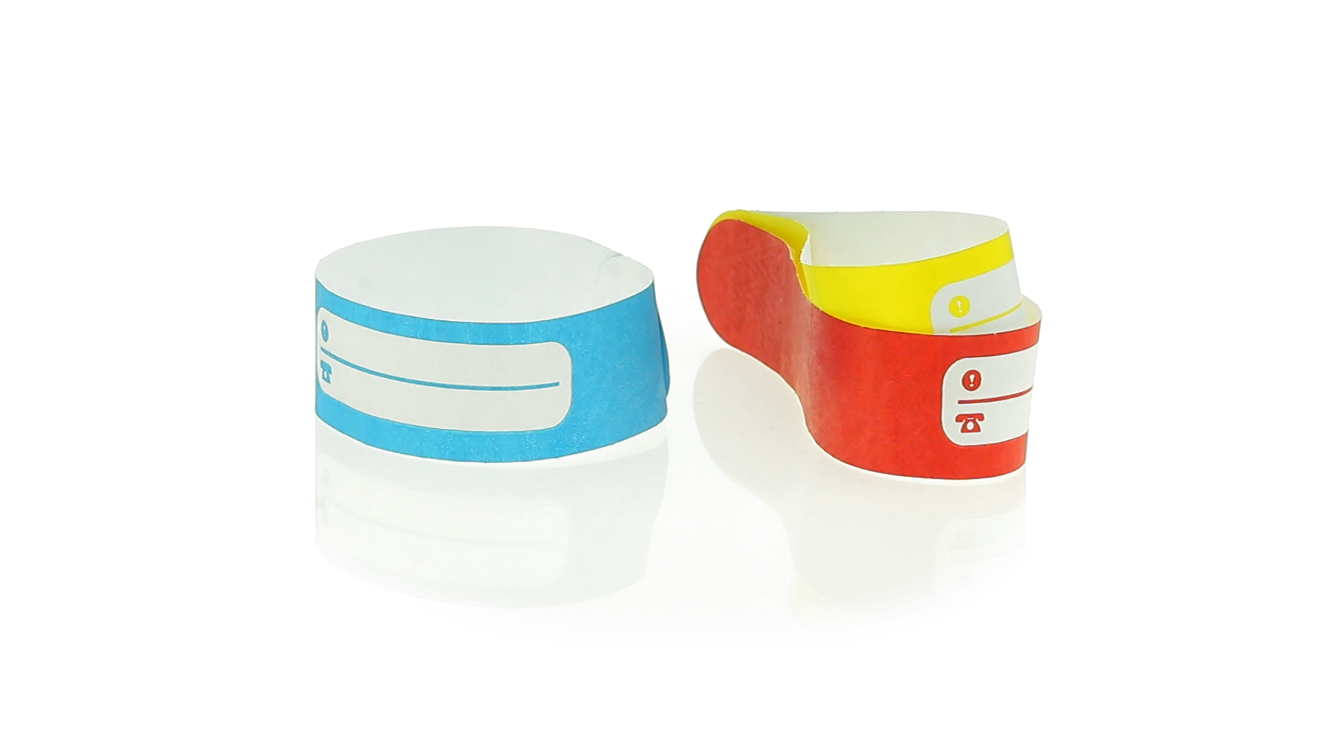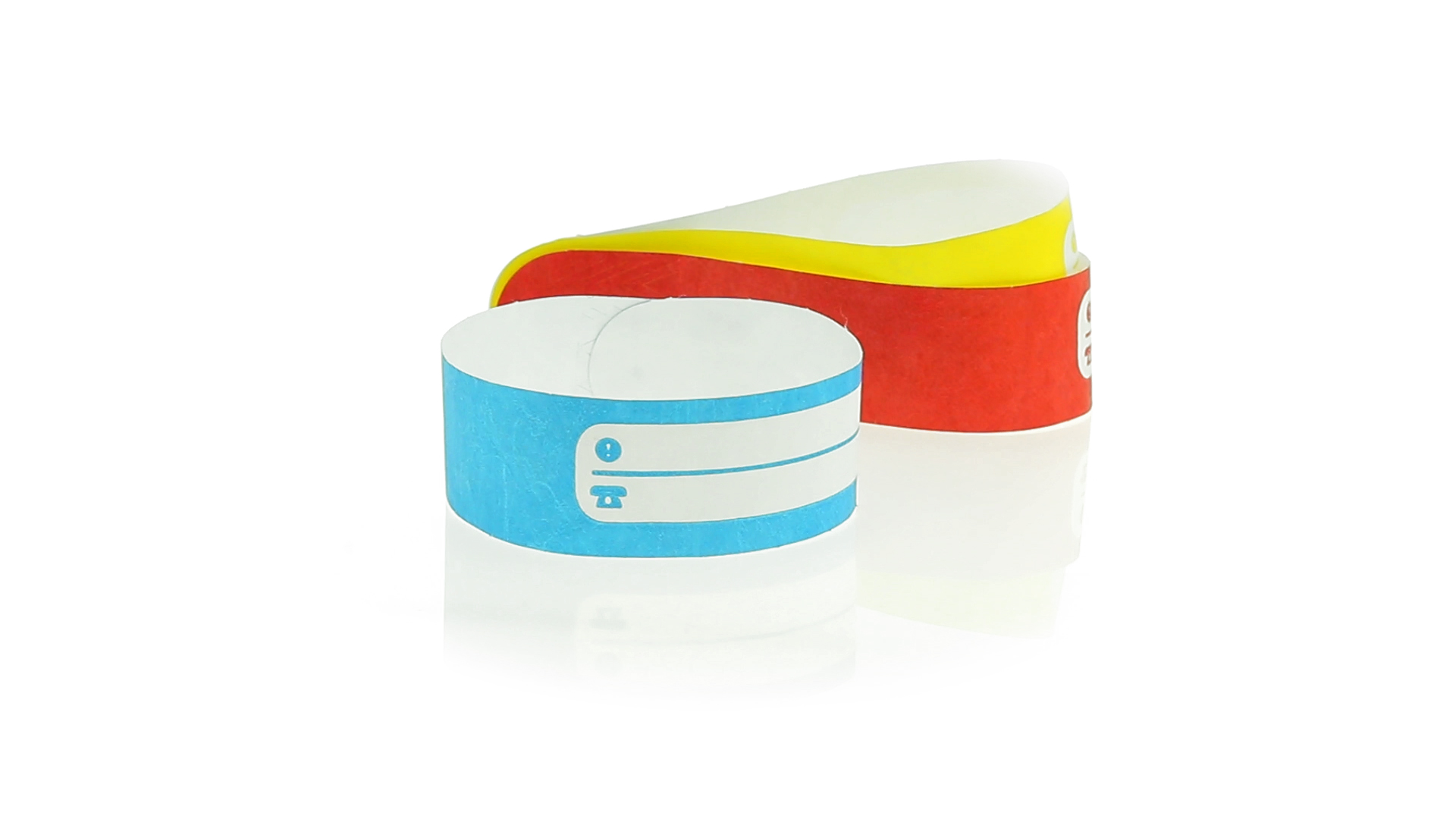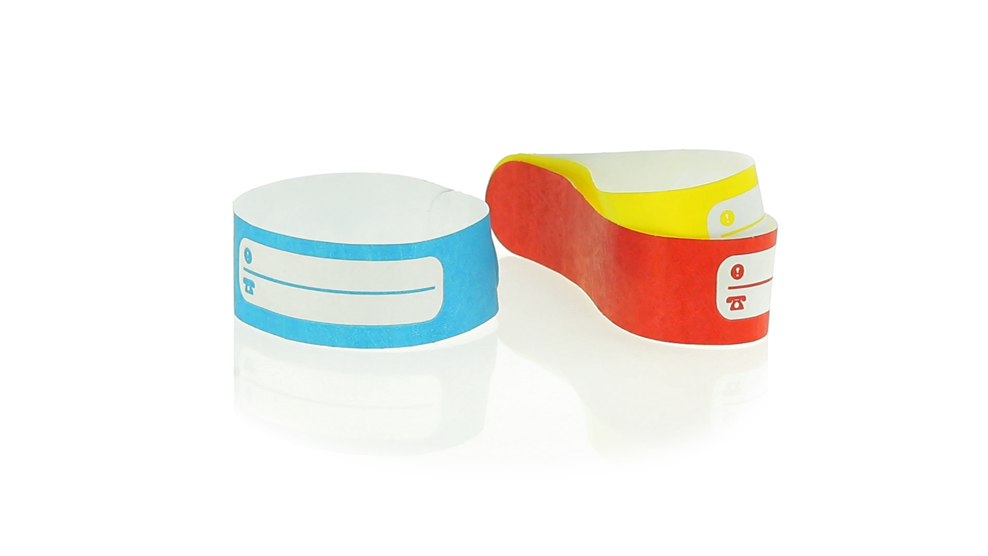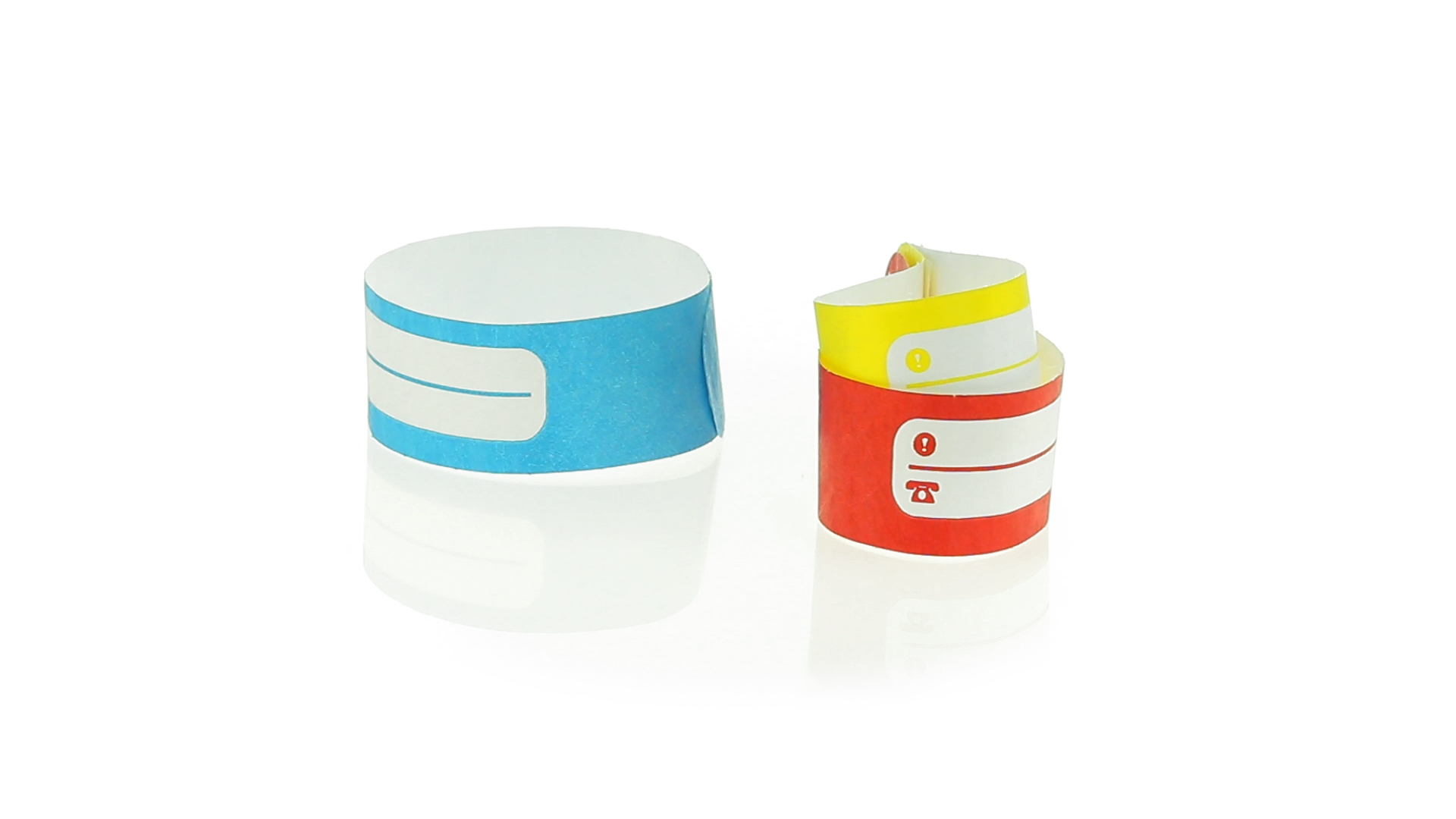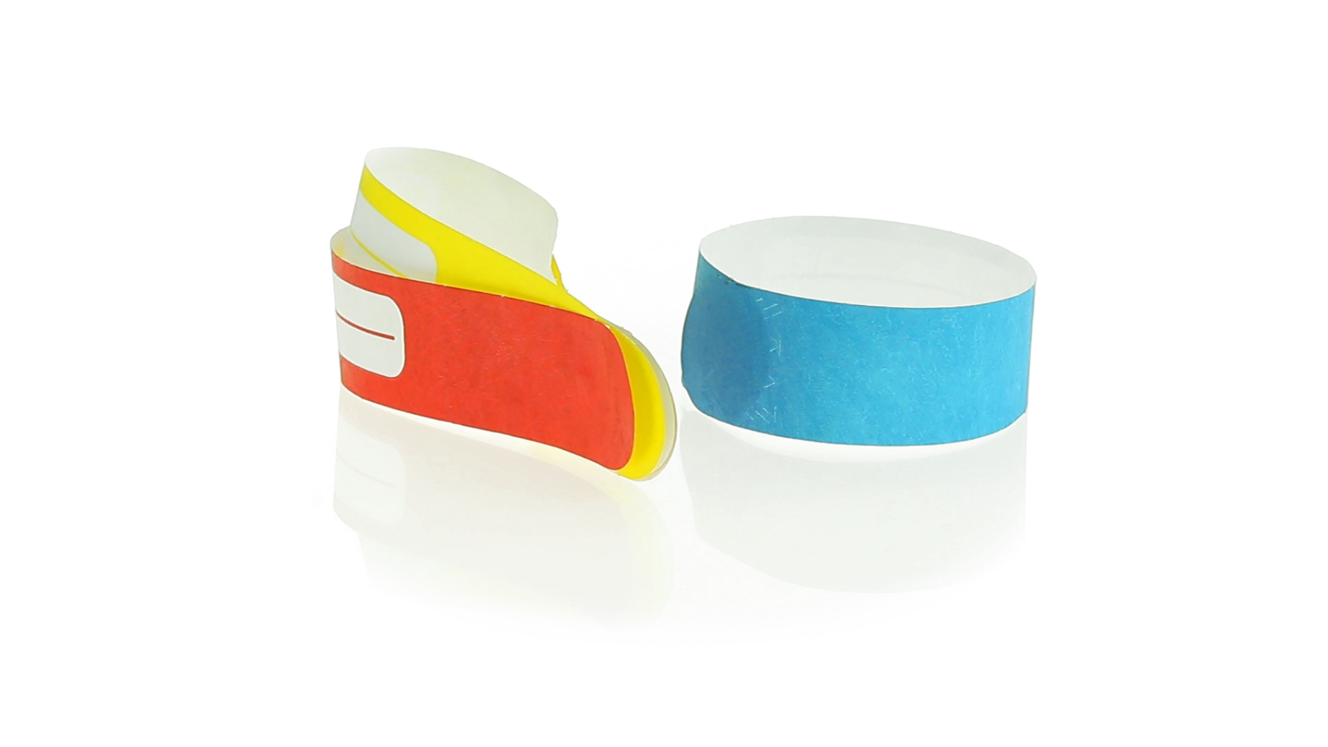 Armband für Kinder aus synthetischer Faser in einer Vielzahl von kräftigen Farben. Mit Identifikationsfeld und Klebeverschluss. Wasserfest und in gestanzten Bögen á 10 Stück für einfaches Bedrucken.