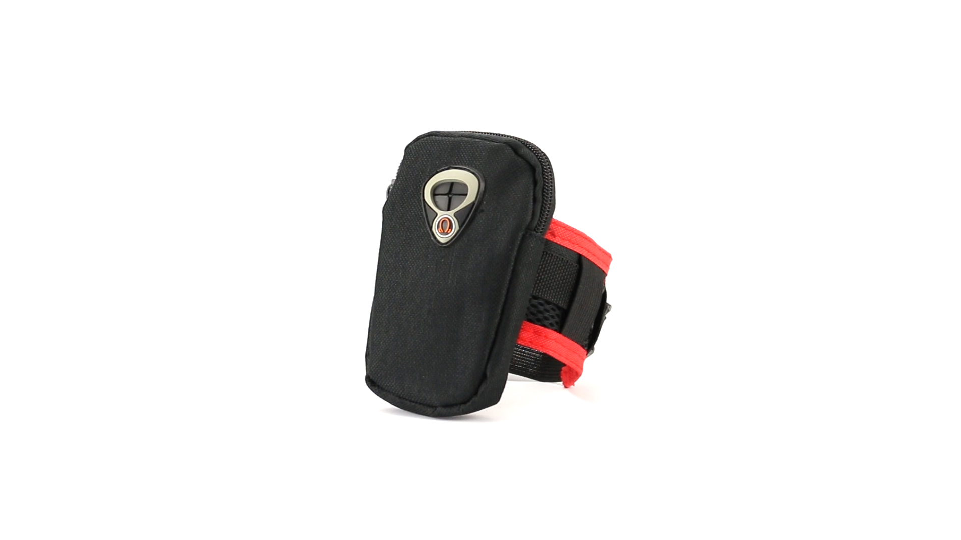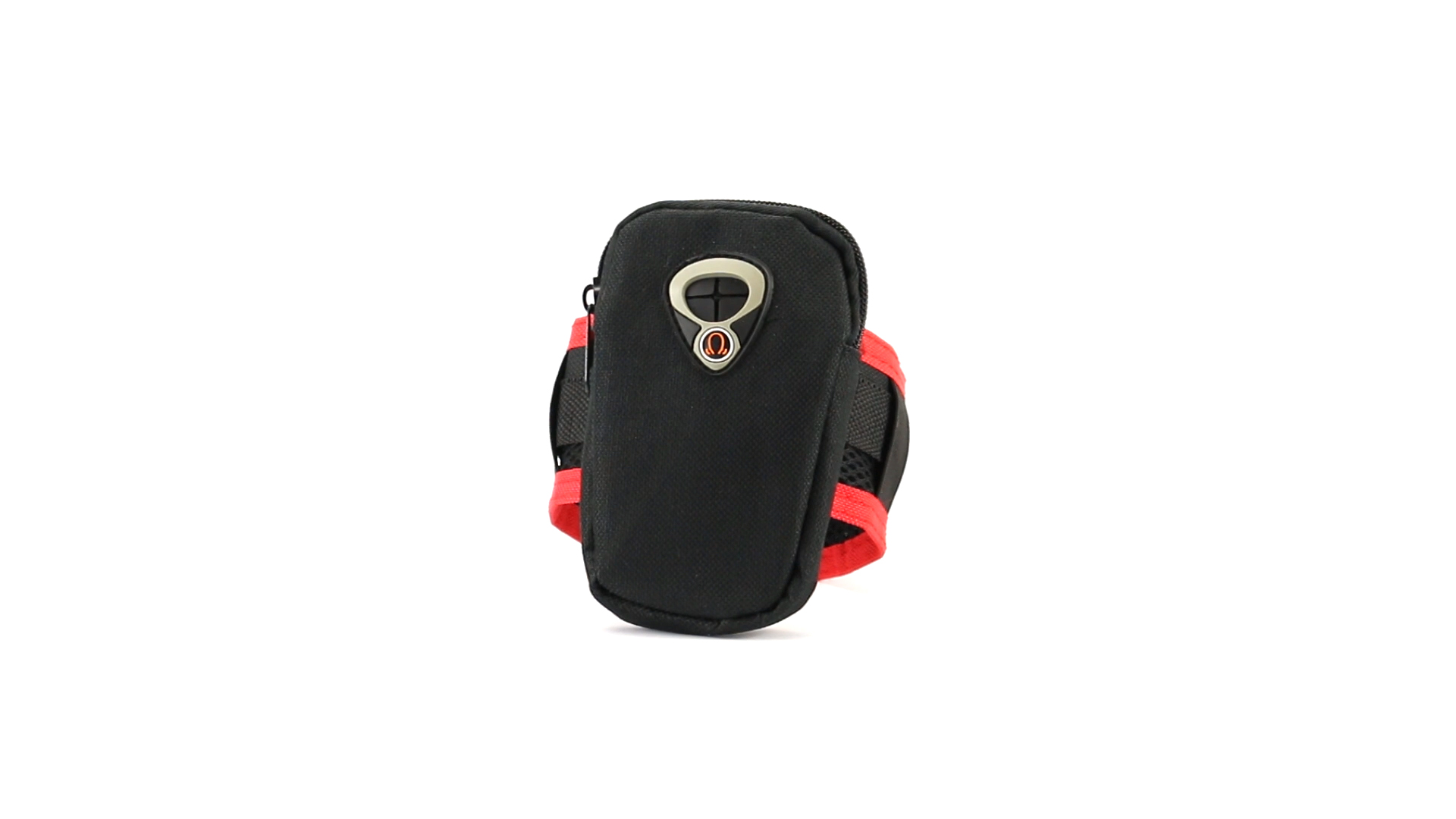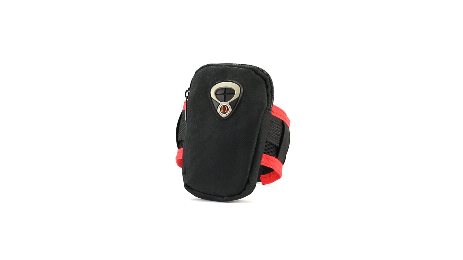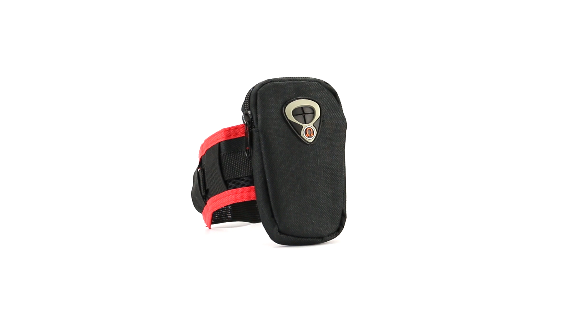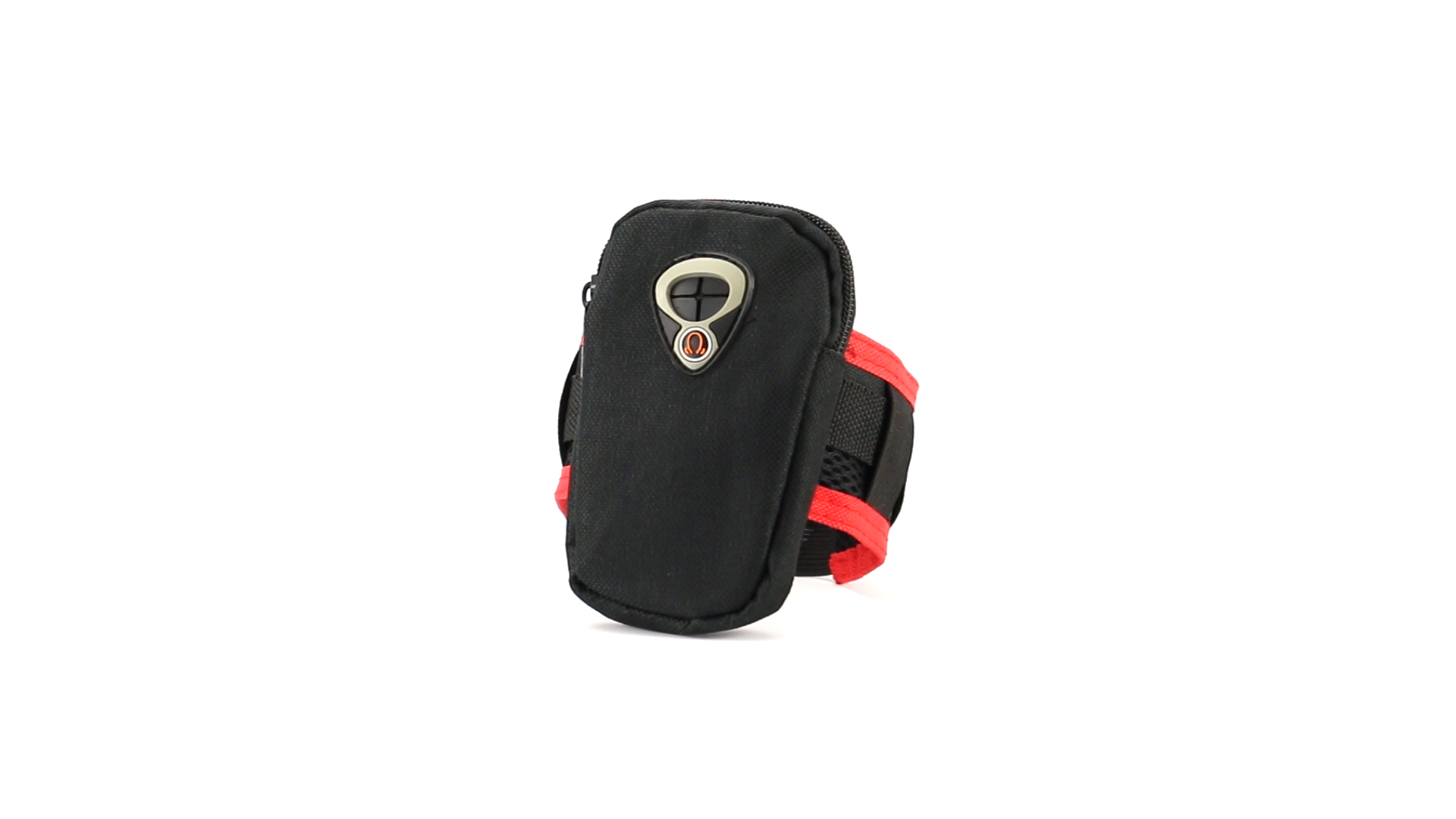 Sport-Armtasche aus strapazierfähigem 600D Polyester mit zweifarbigem Design mit Reissverschluss und Kopfhörerausgang. Mit verstellbarem, elastischem Armgurt.