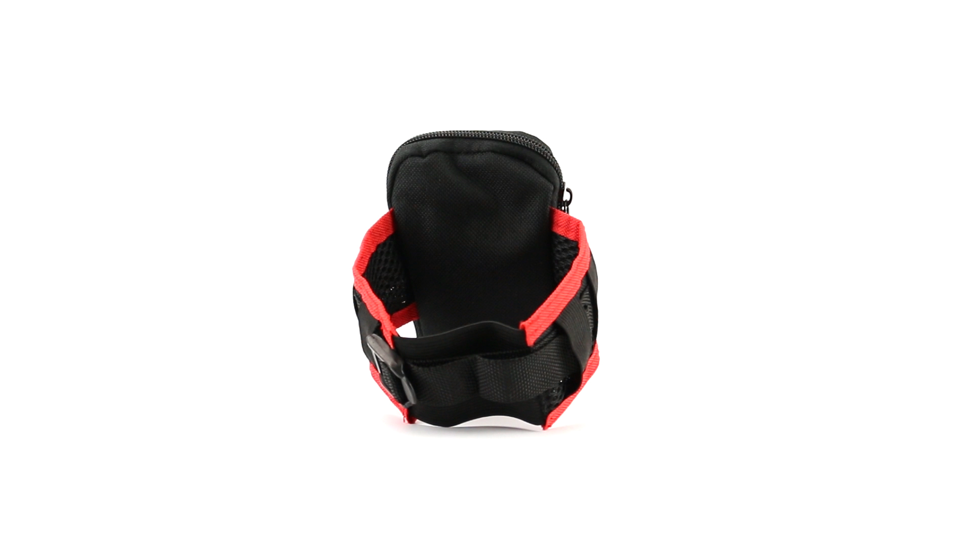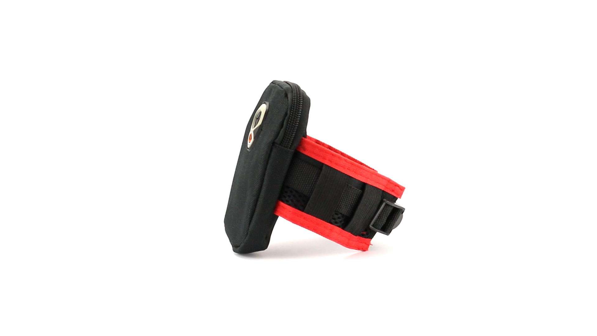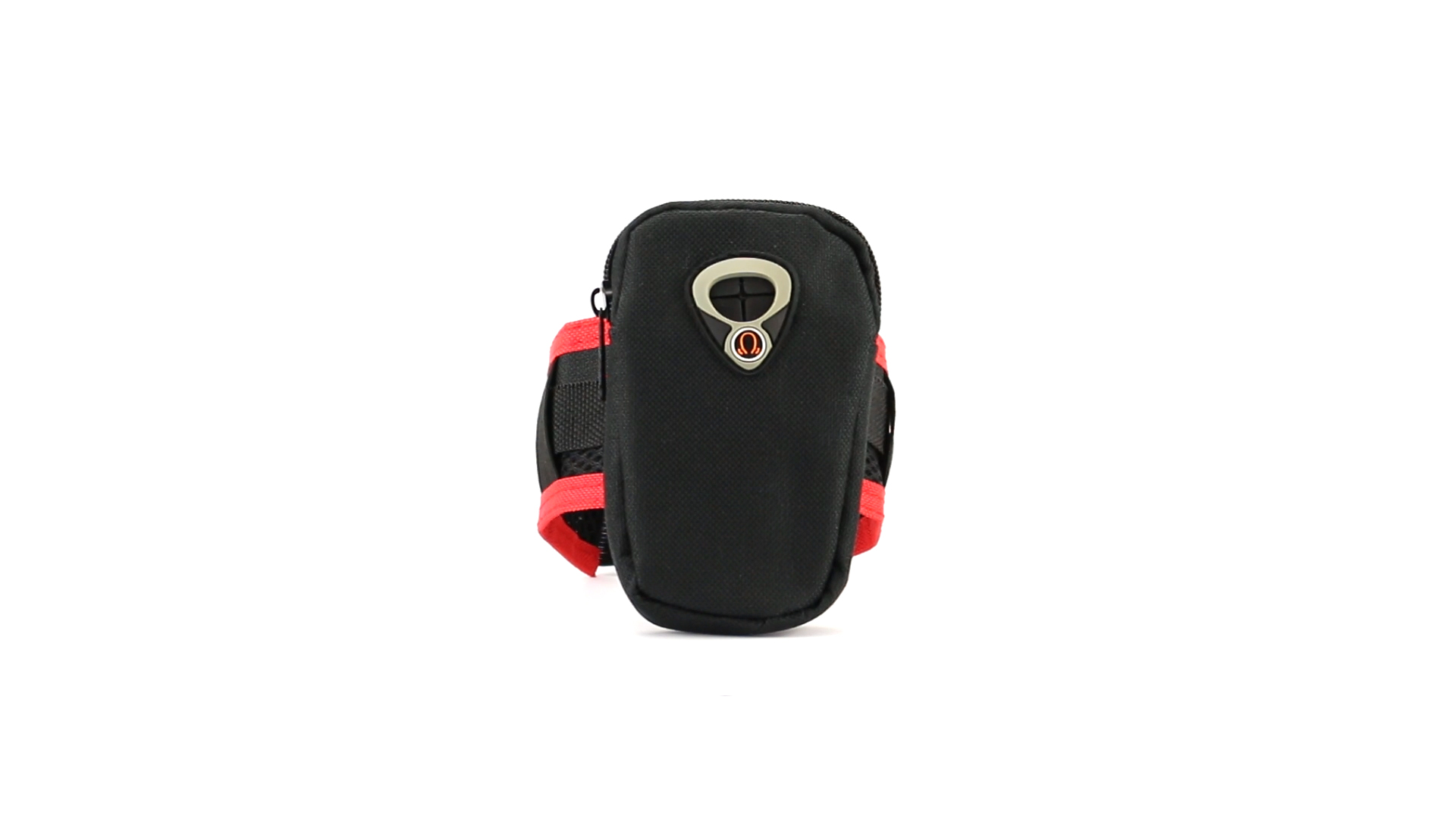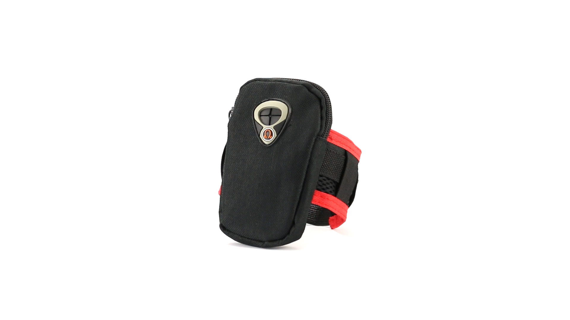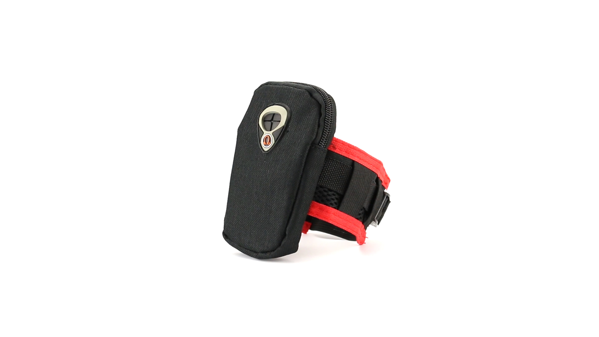 Sport-Armtasche aus strapazierfähigem 600D Polyester mit zweifarbigem Design mit Reissverschluss und Kopfhörerausgang. Mit verstellbarem, elastischem Armgurt.