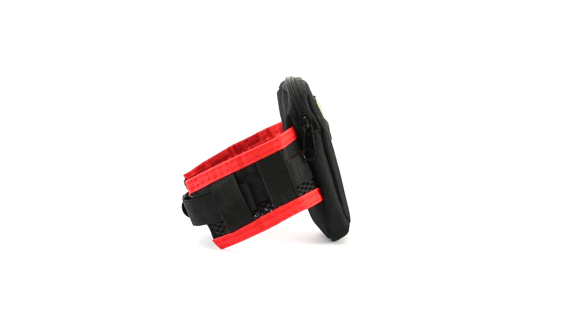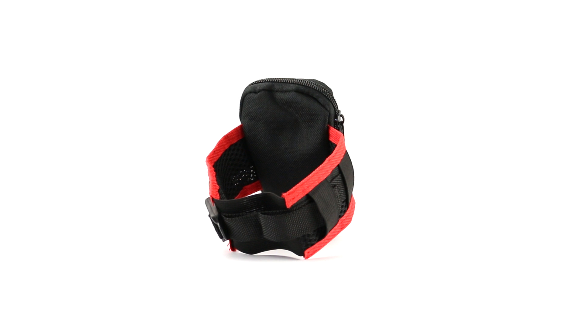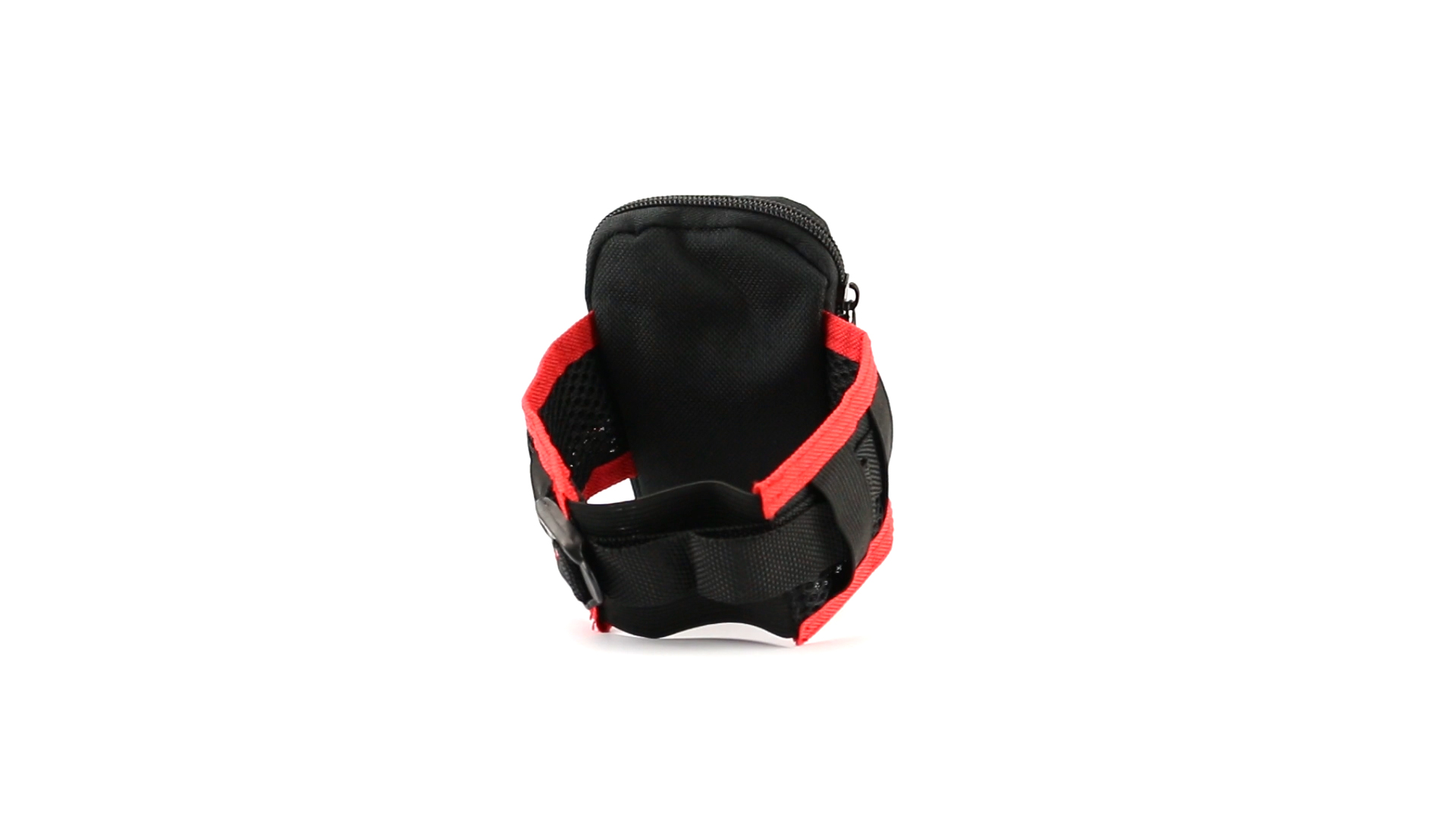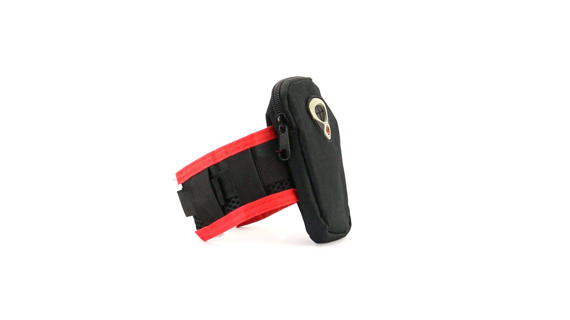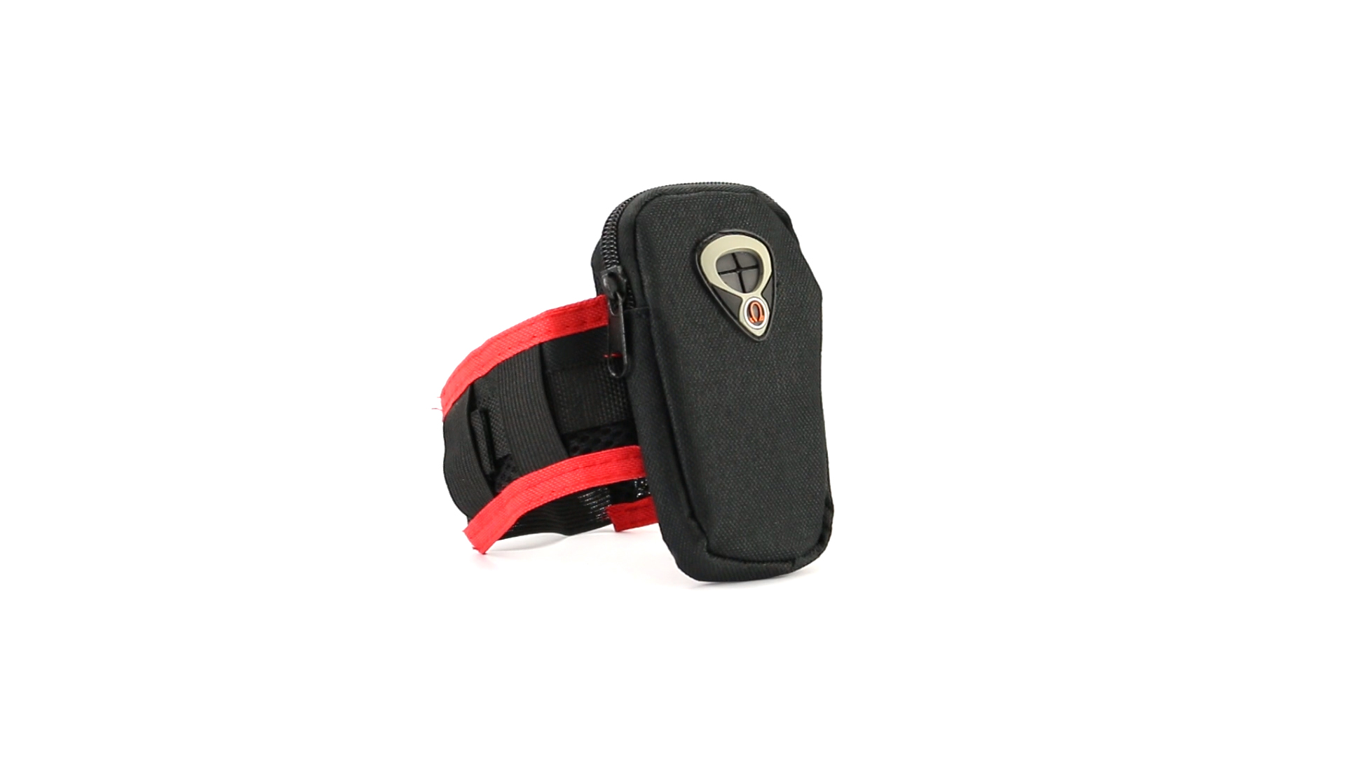 Sport-Armtasche aus strapazierfähigem 600D Polyester mit zweifarbigem Design mit Reissverschluss und Kopfhörerausgang. Mit verstellbarem, elastischem Armgurt.