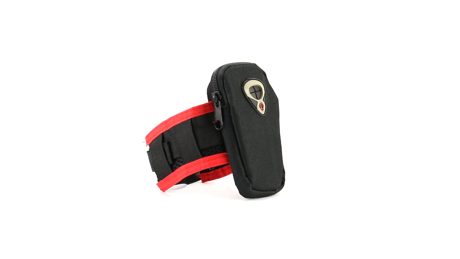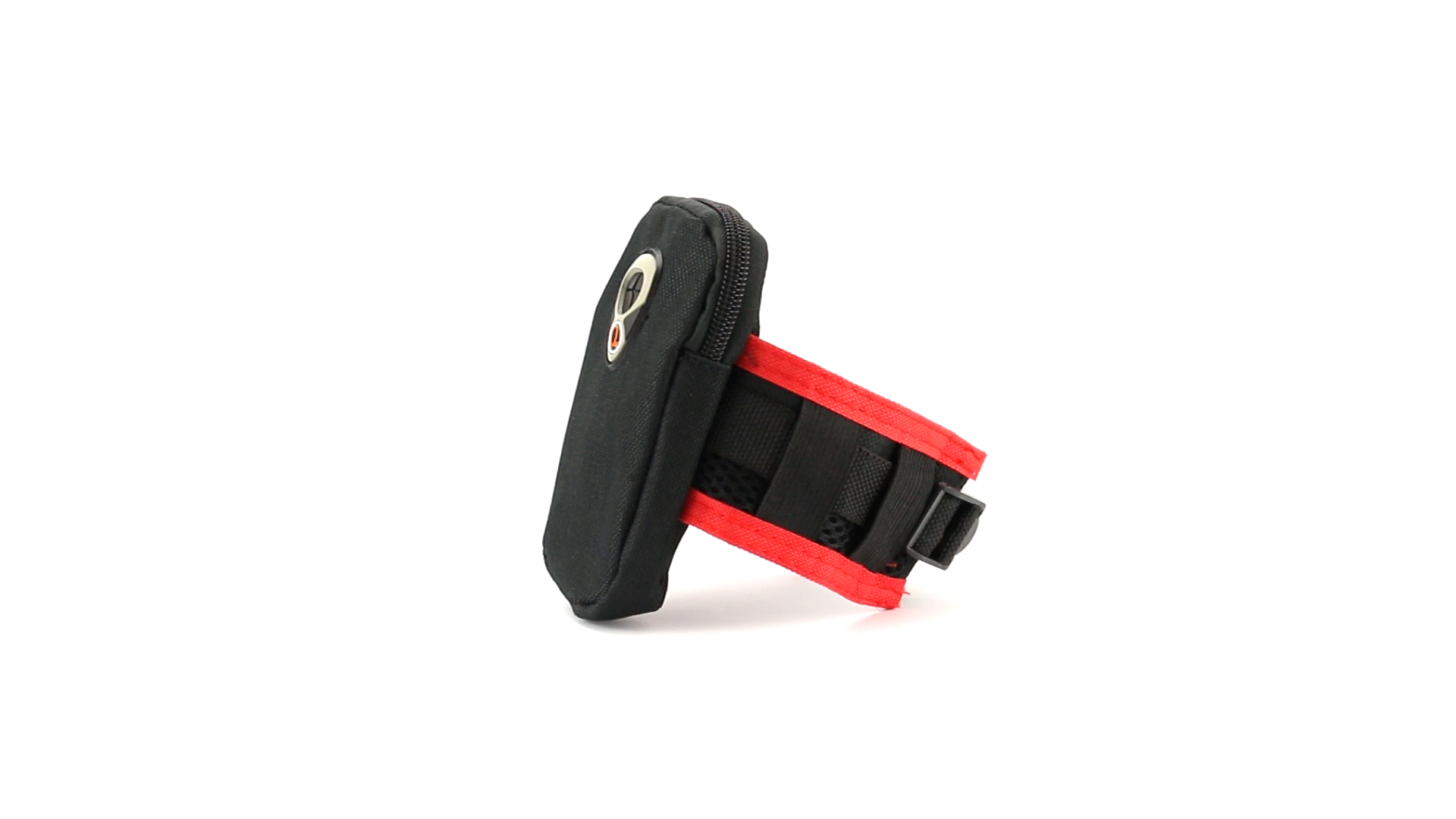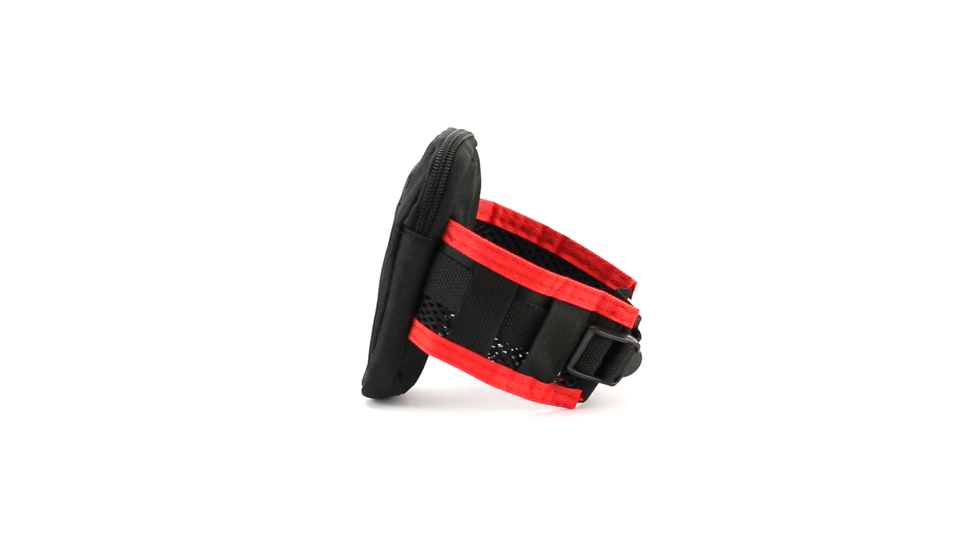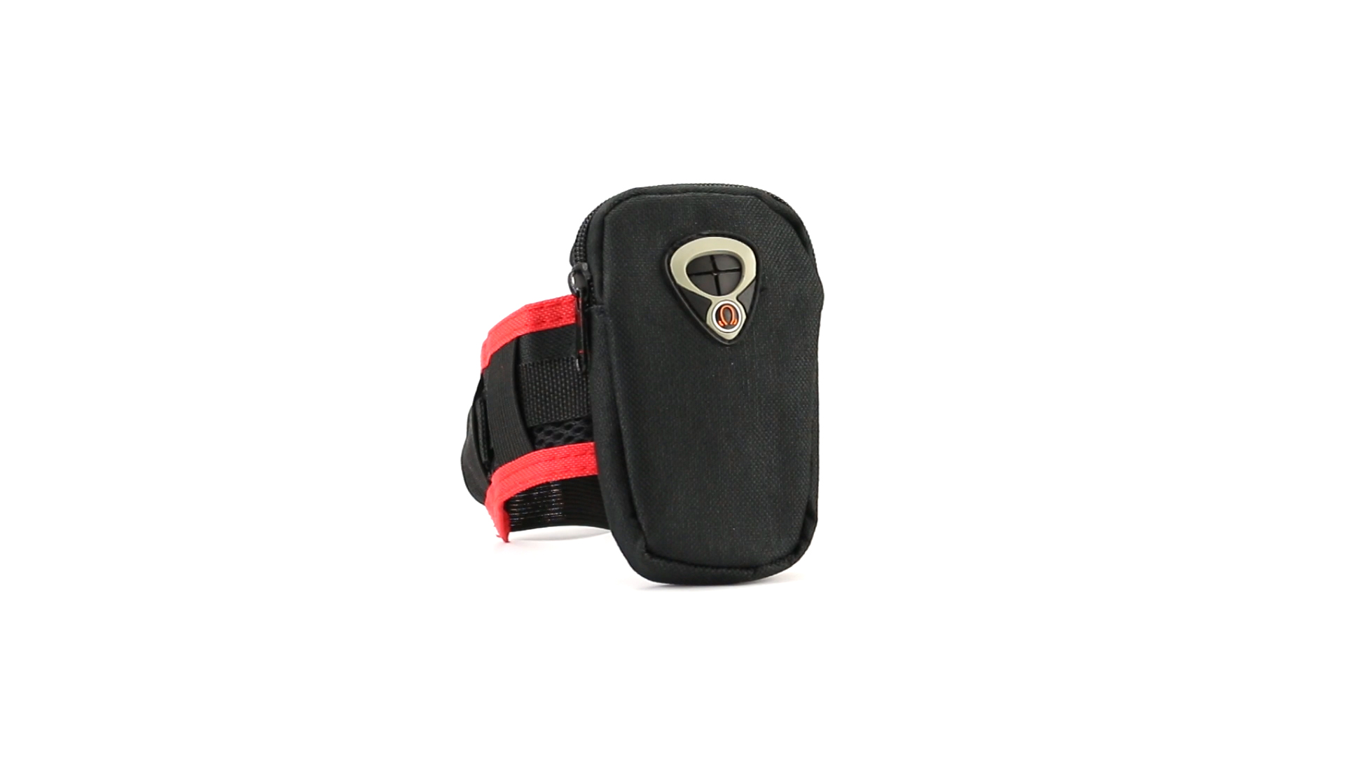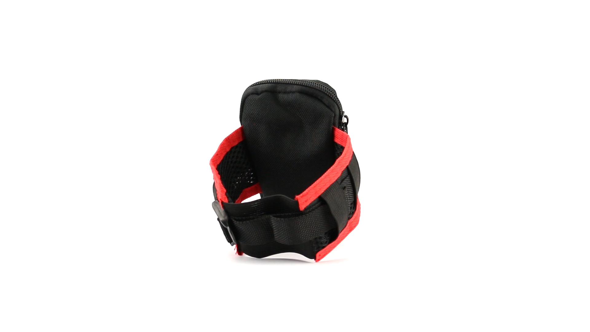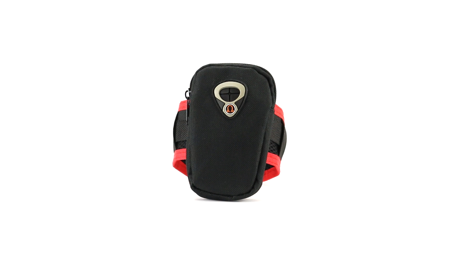 Sport-Armtasche aus strapazierfähigem 600D Polyester mit zweifarbigem Design mit Reissverschluss und Kopfhörerausgang. Mit verstellbarem, elastischem Armgurt.