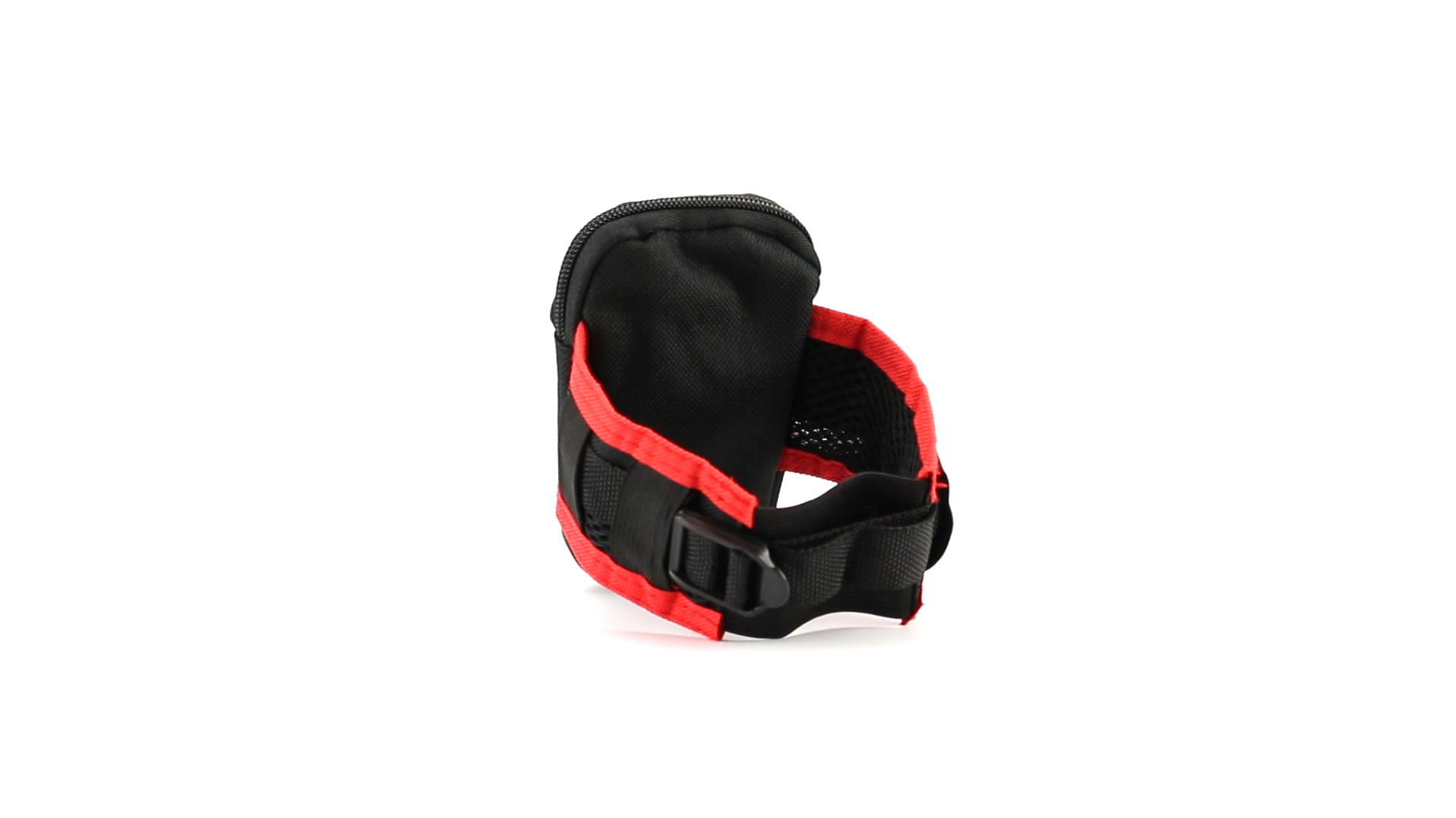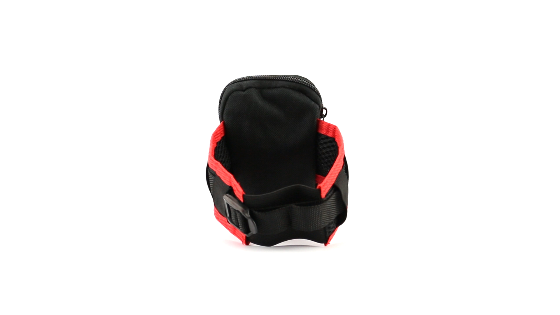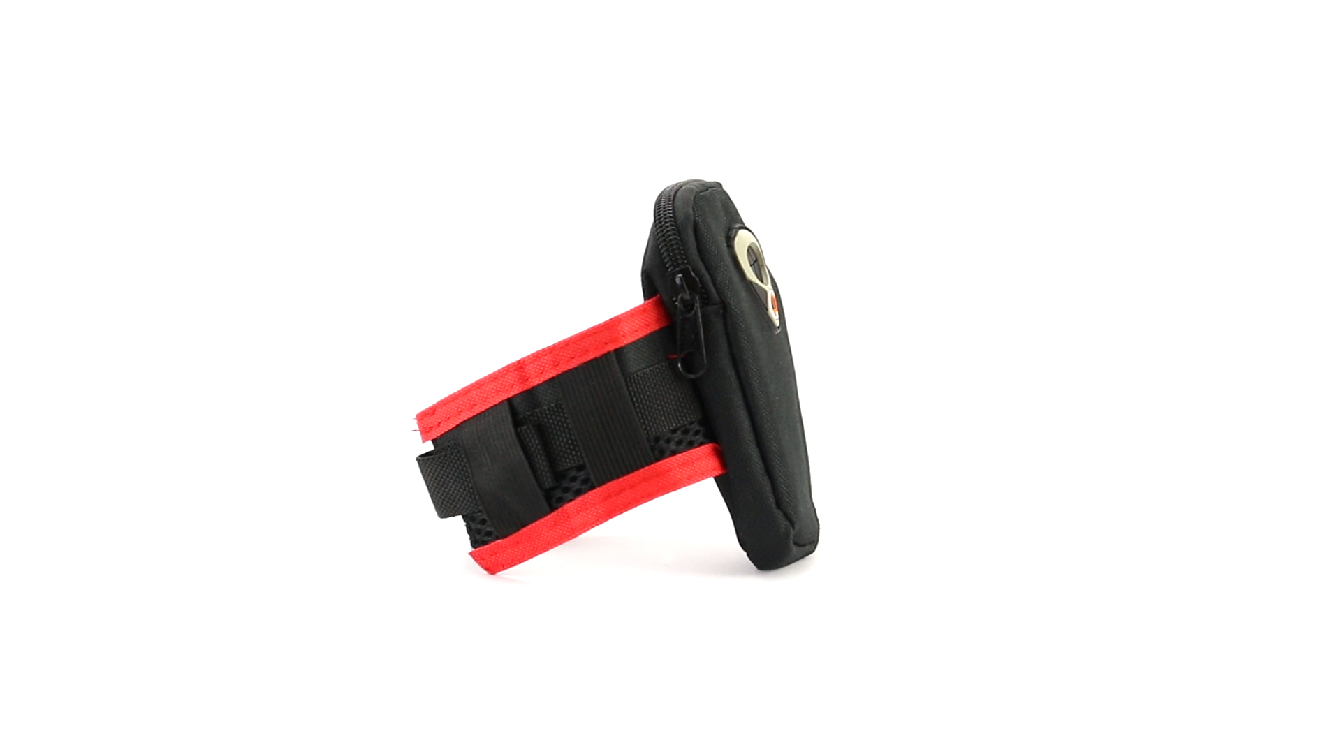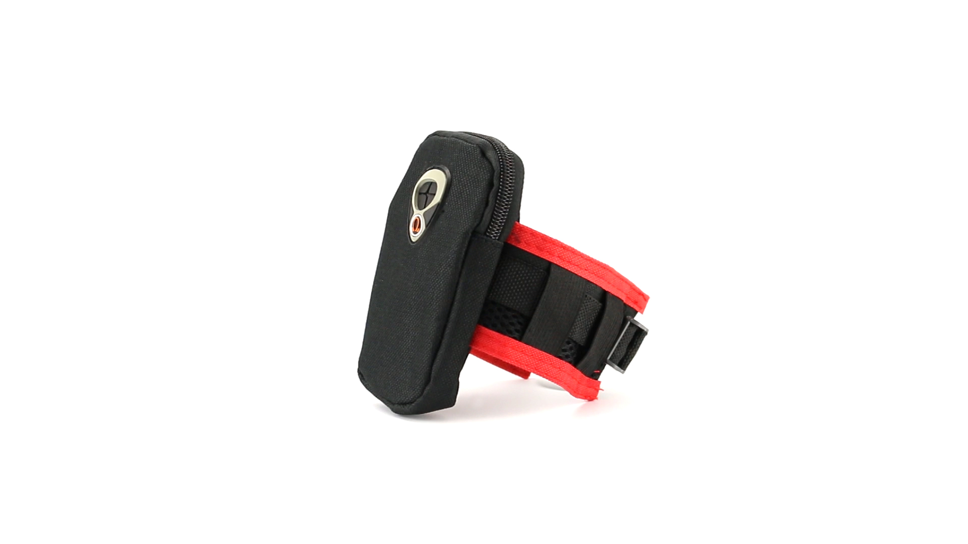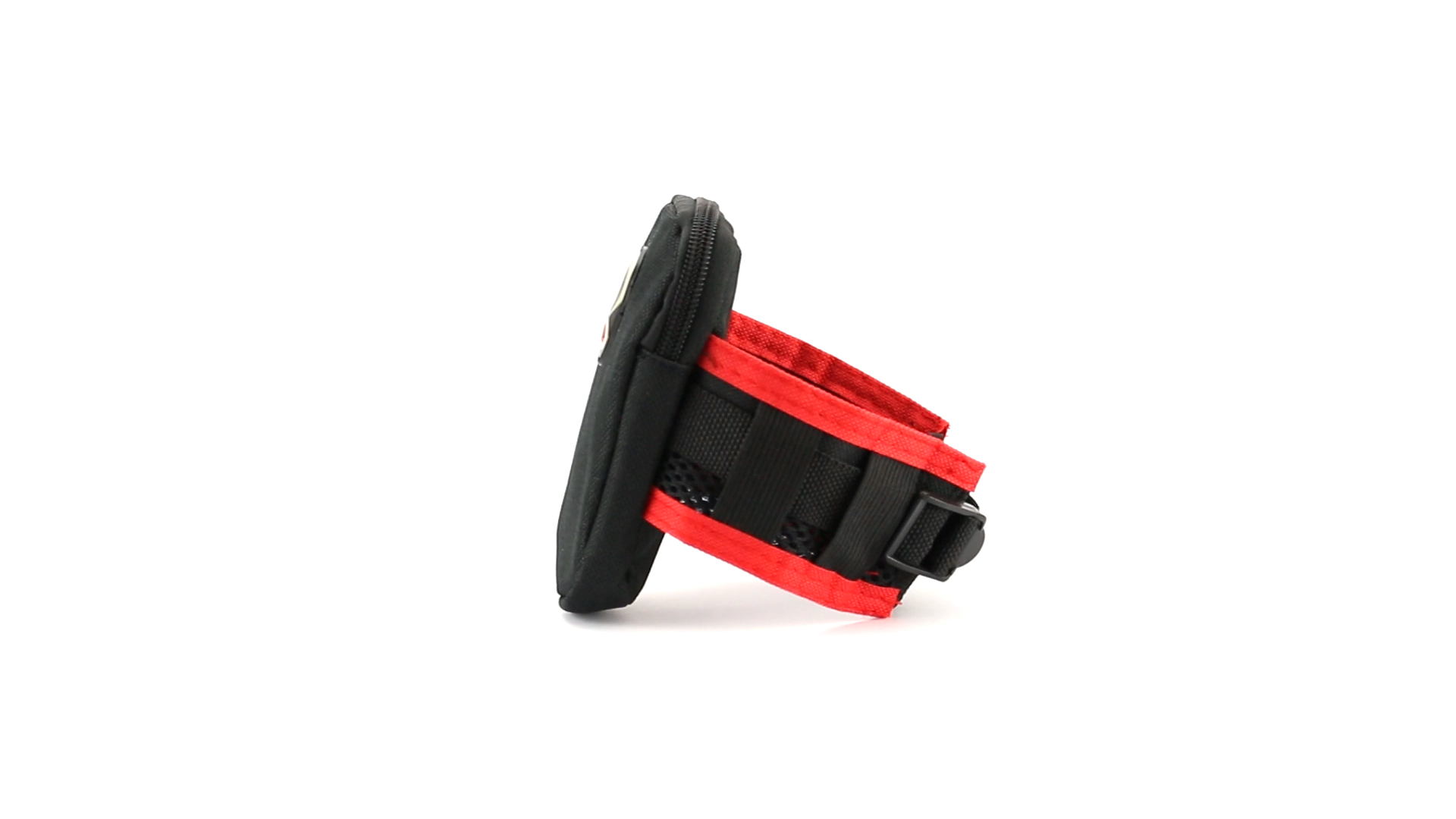 Sport-Armtasche aus strapazierfähigem 600D Polyester mit zweifarbigem Design mit Reissverschluss und Kopfhörerausgang. Mit verstellbarem, elastischem Armgurt.