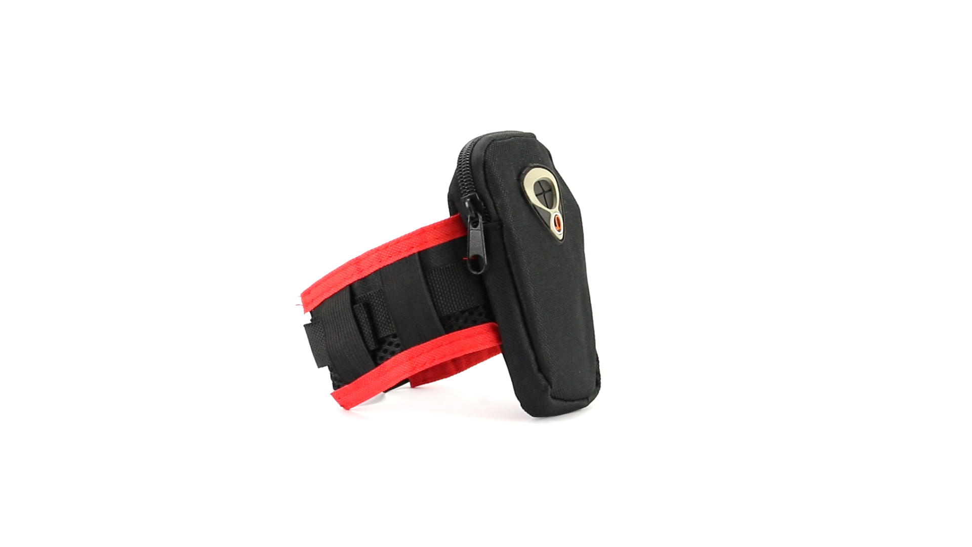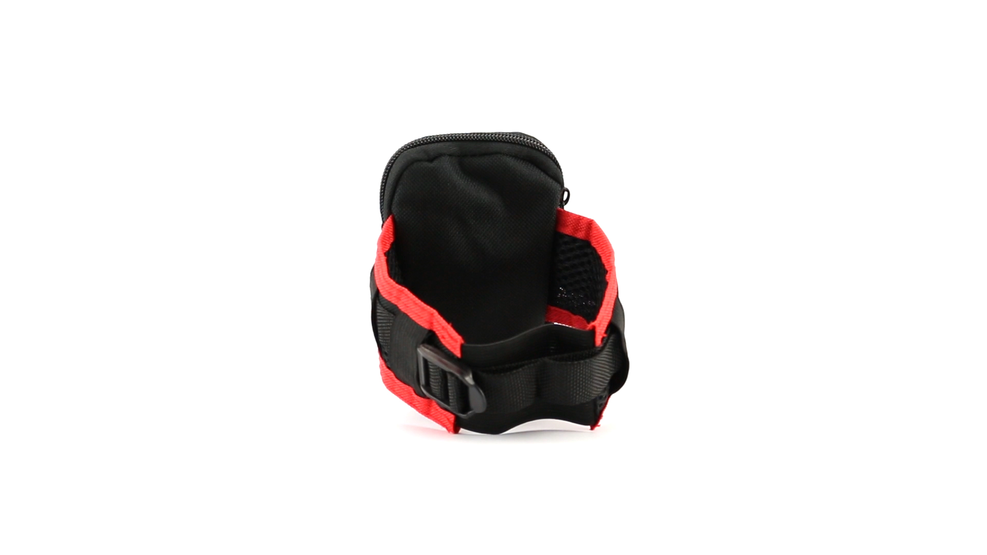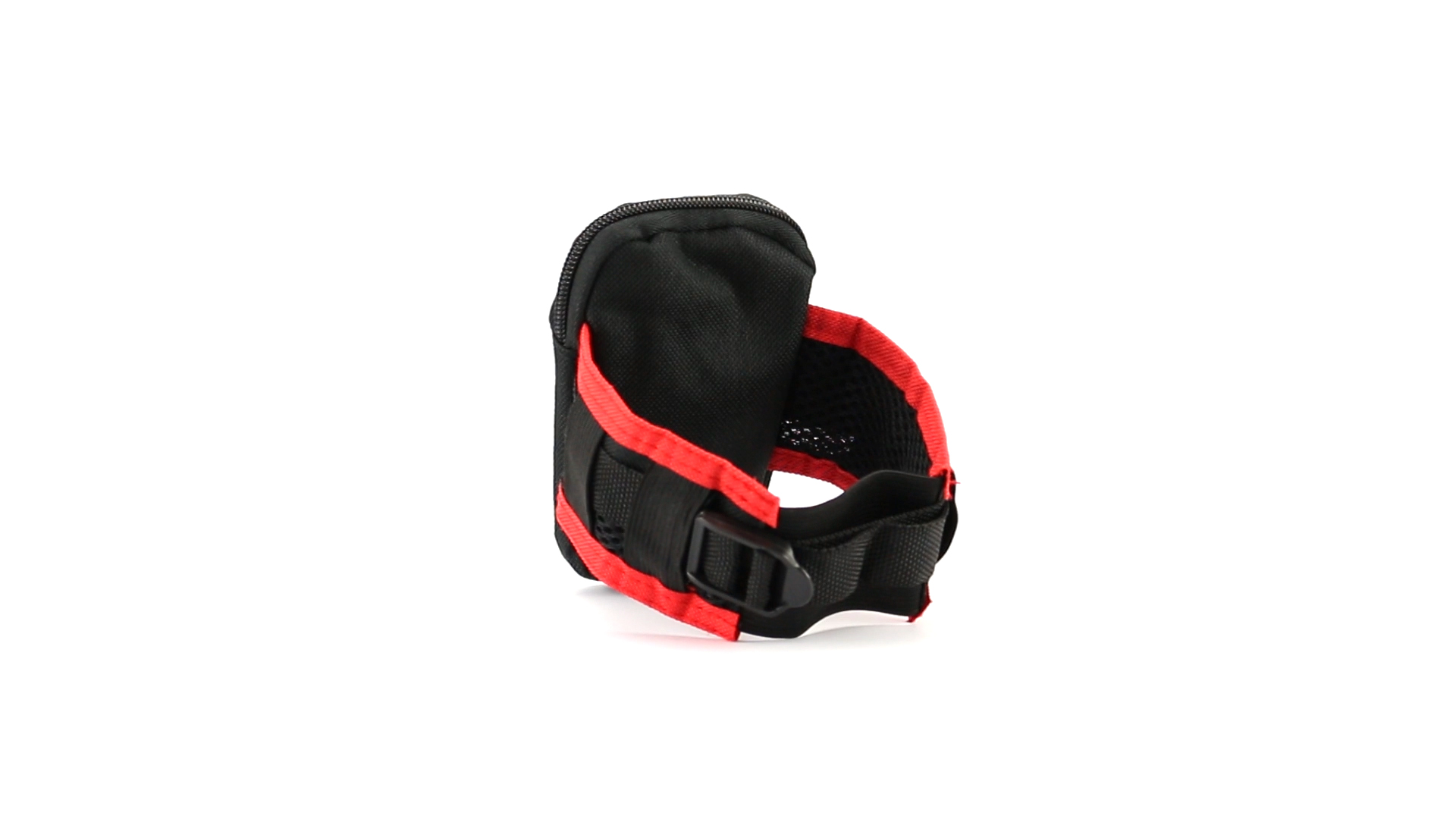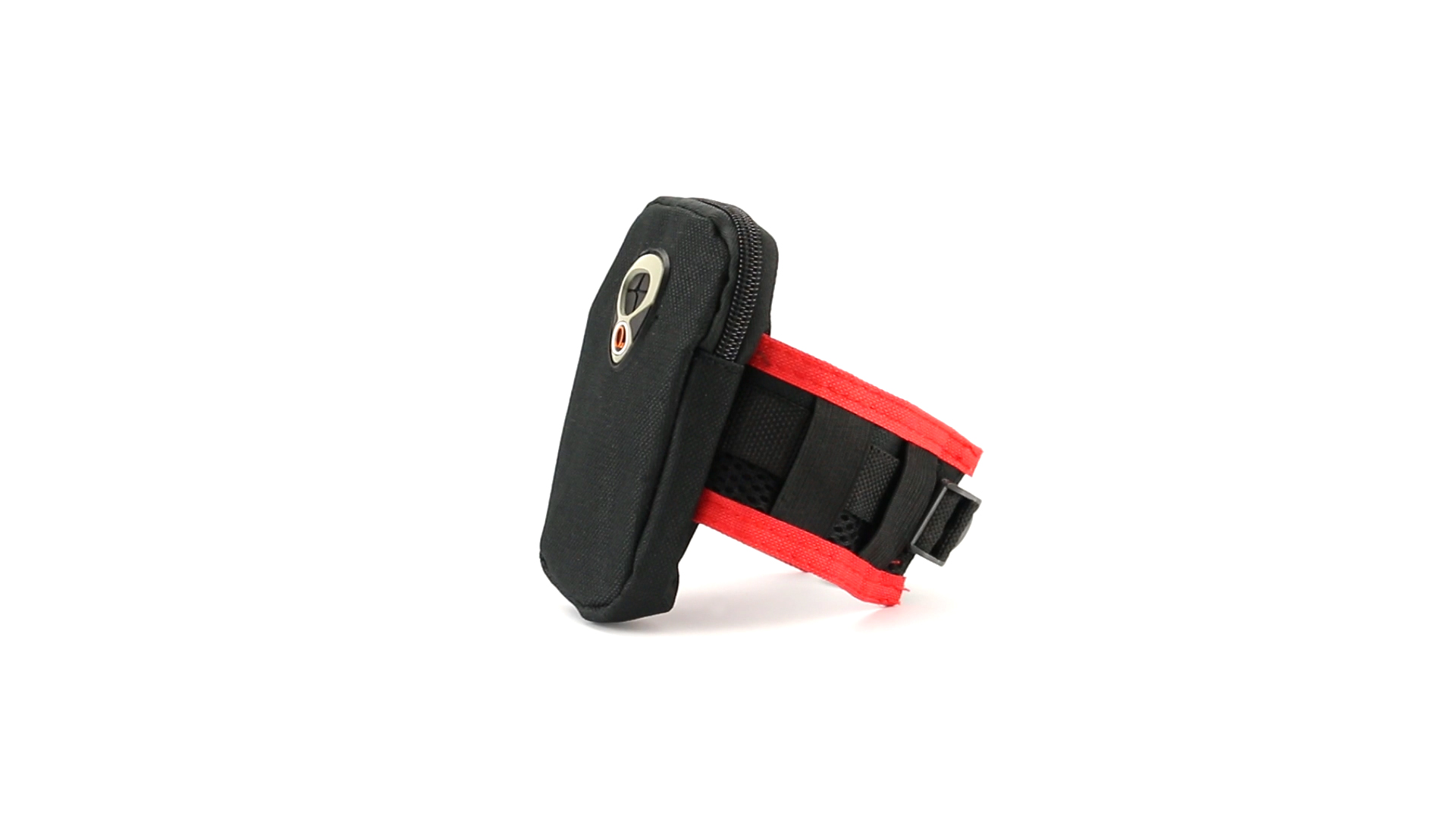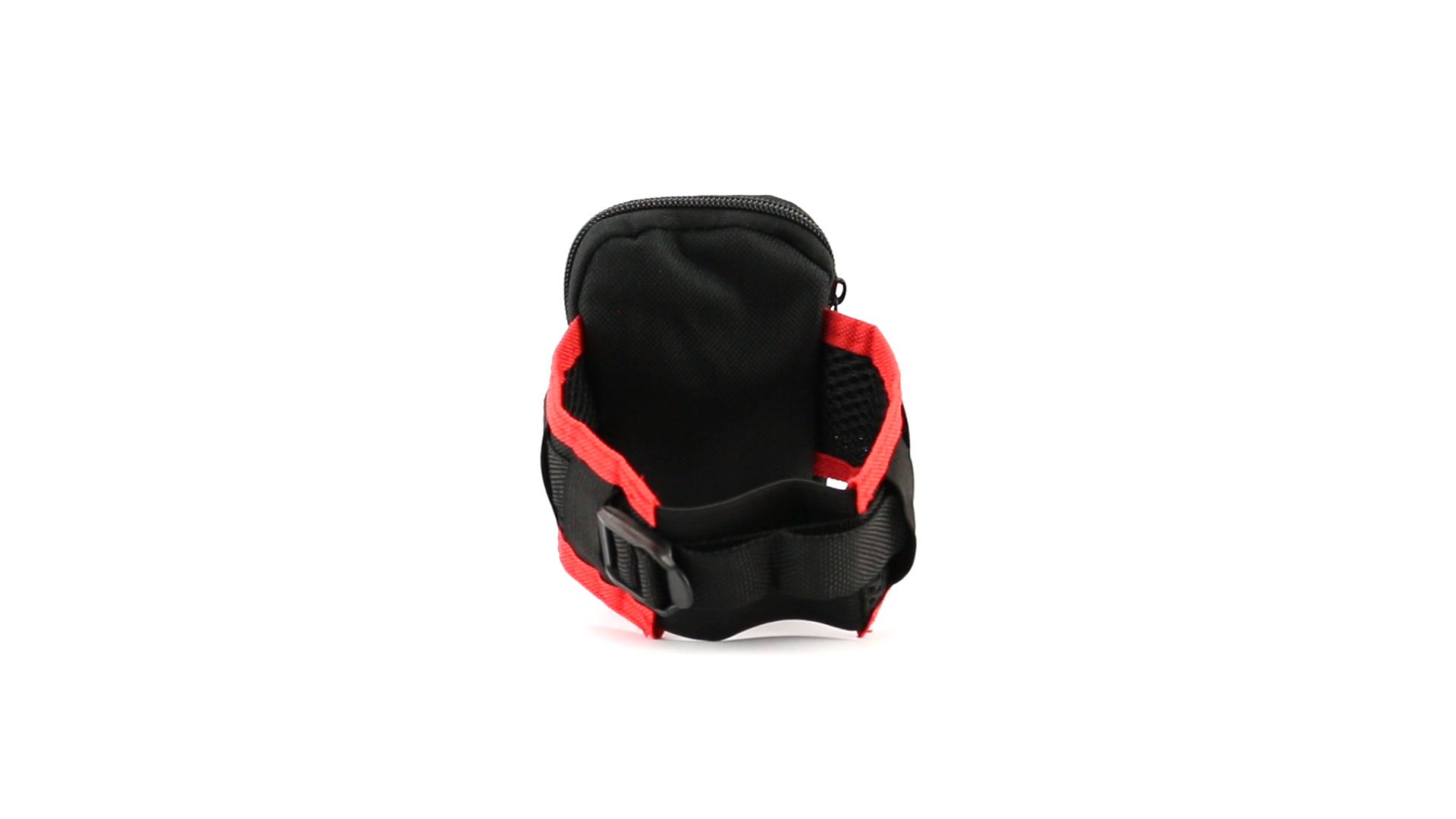 Sport-Armtasche aus strapazierfähigem 600D Polyester mit zweifarbigem Design mit Reissverschluss und Kopfhörerausgang. Mit verstellbarem, elastischem Armgurt.