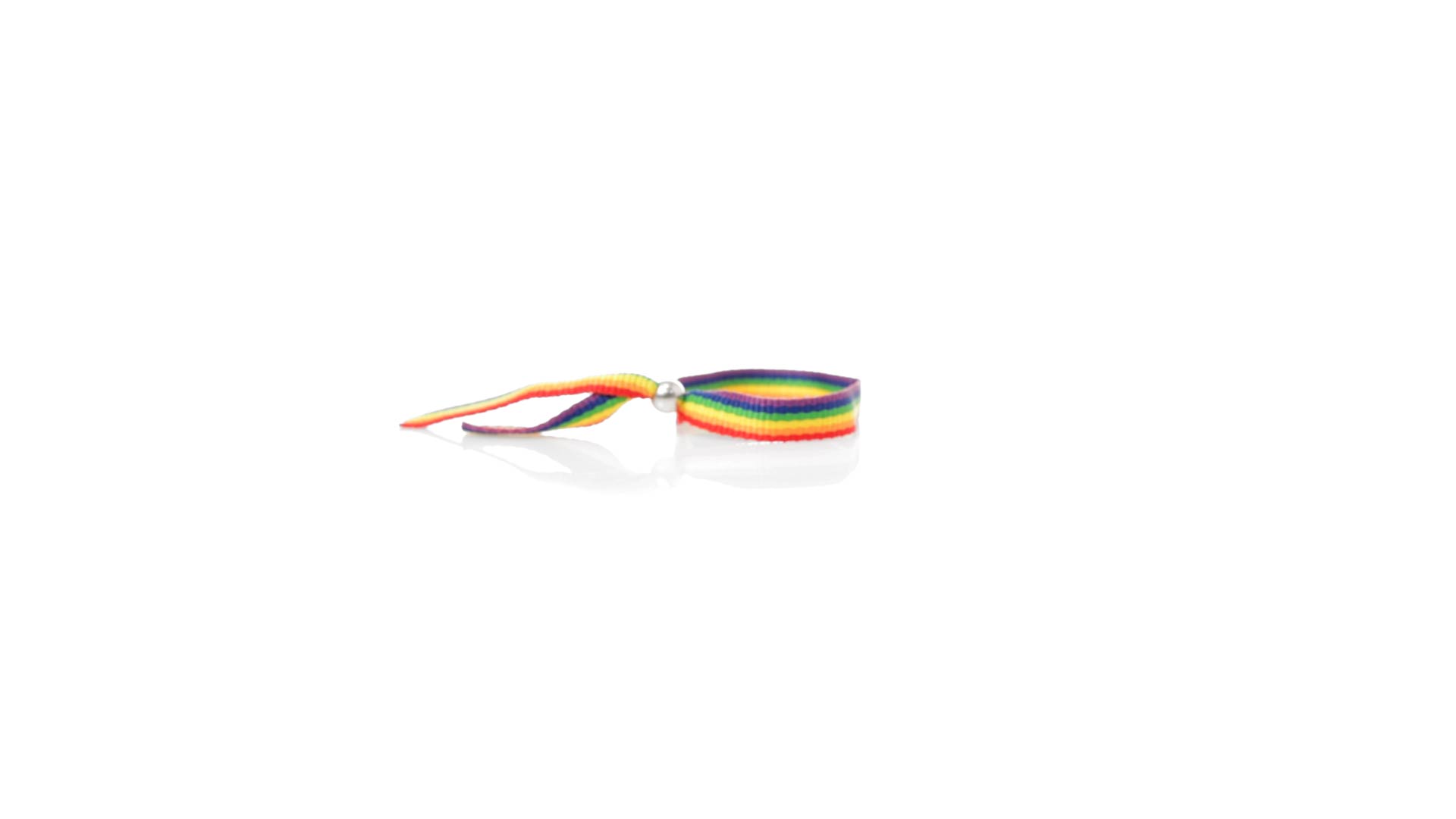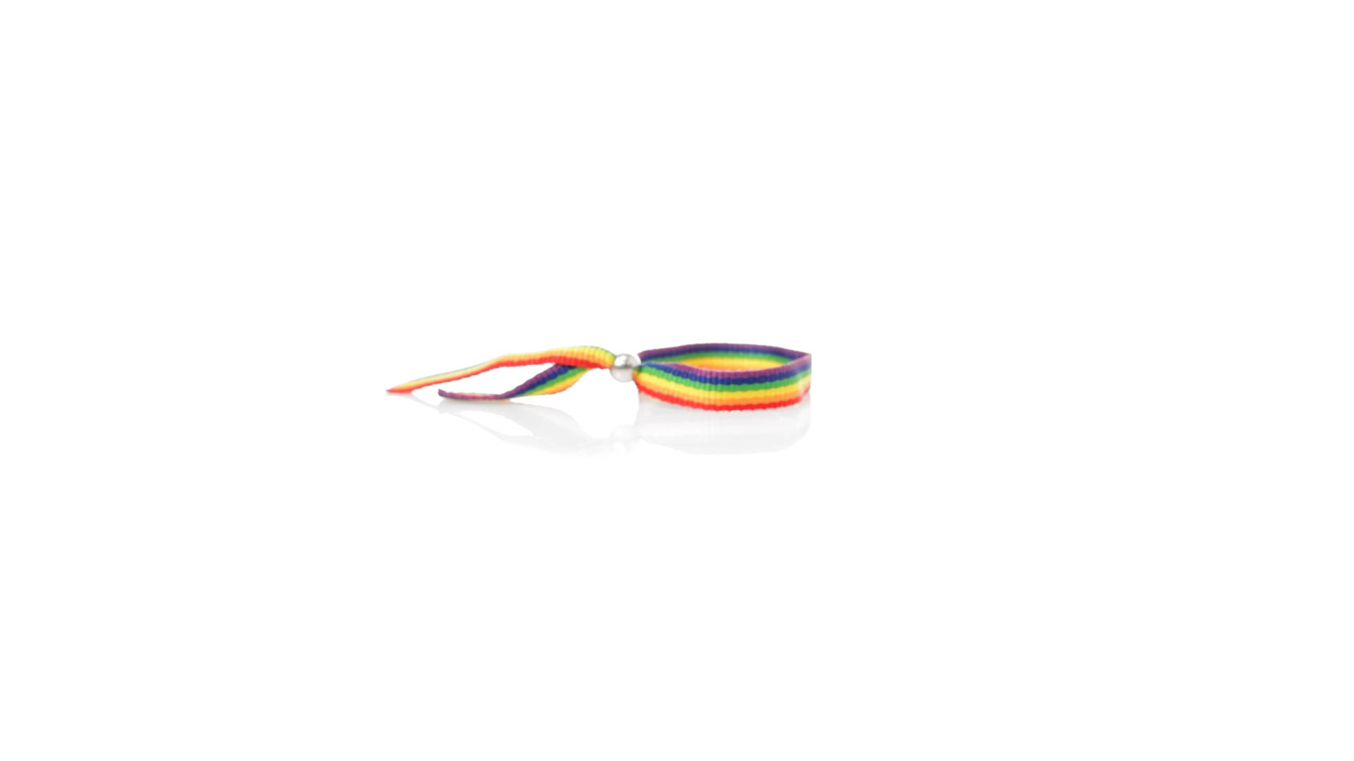 Mehrfarbiges Regenbogenarmband aus weichem Polyester. Mit verstellbarem Kugelverschluss in Chromoptik. Verstärkte Nähte an den Seiten. Ein echter Stolz eines Armbandes.