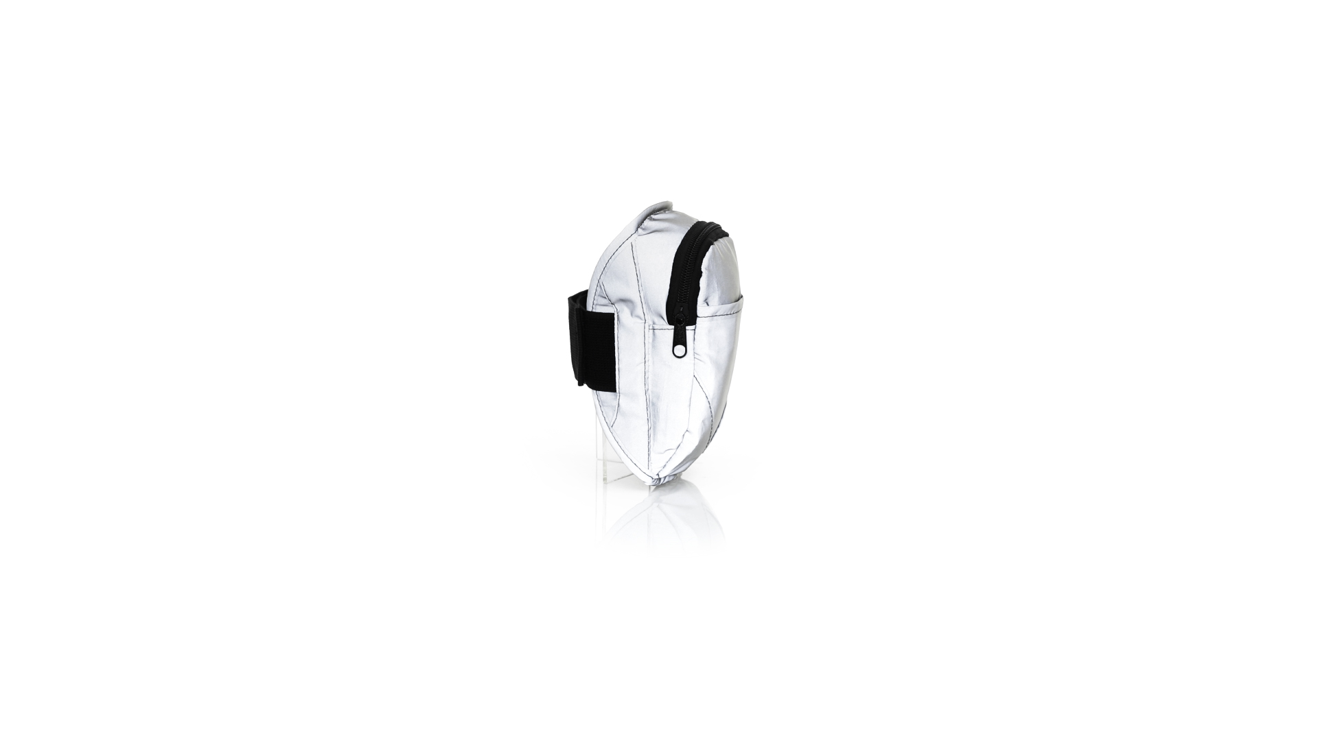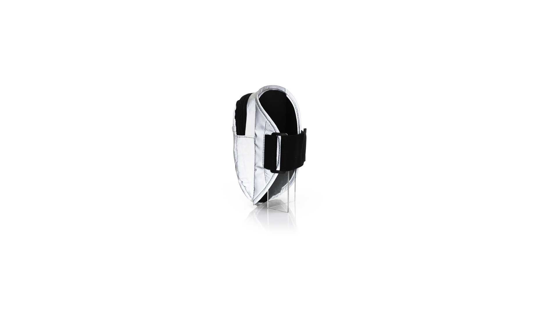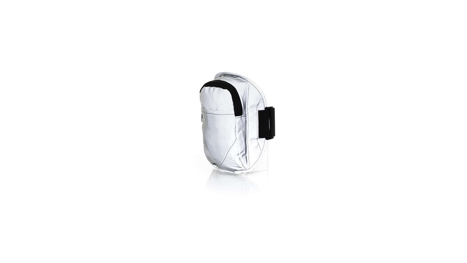Sportarmband aus 210T Polyester, hergestellt aus Stoff mit hoher Lichtreflexionsfähigkeit, dank Millionen reflektierender Pigmente und basierend auf dem Prinzip der Retroreflexion des Lichts, einer Eigenschaft der Nachtsichtbarkeit, die aus der Brechung des Lichts in Richtung besteht die Herkunftsquelle derselben. Haupttasche mit Reissverschluss und Fronttasche mit Klettverschluss. Mit elastischem und wasserdichtem verstellbarem Riemen.