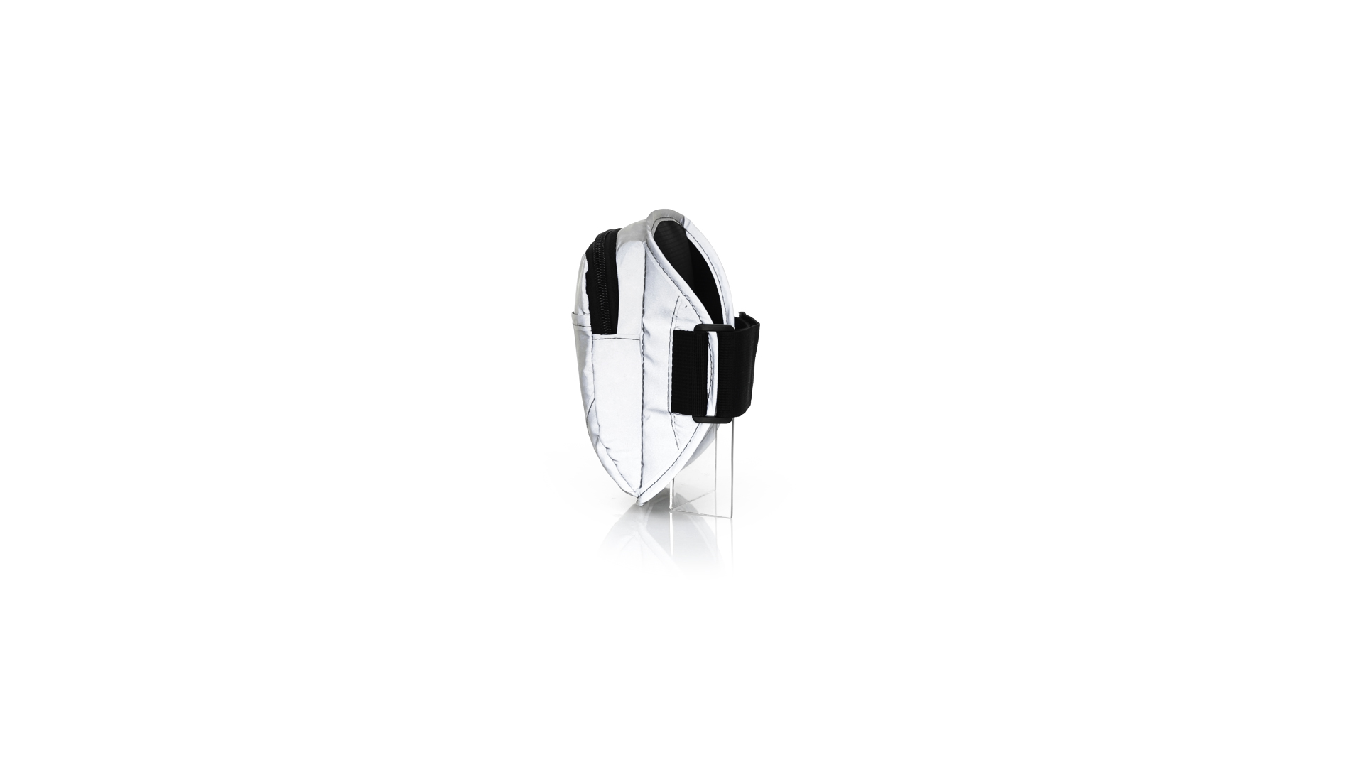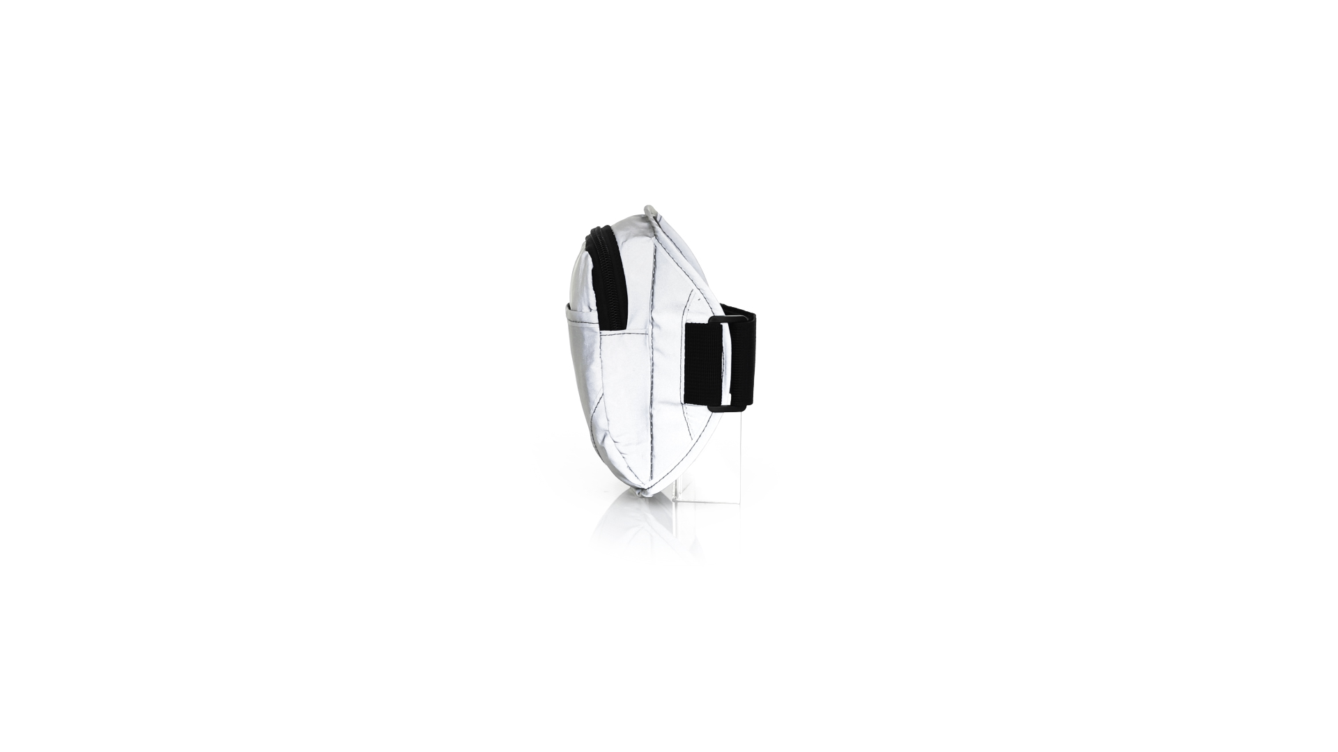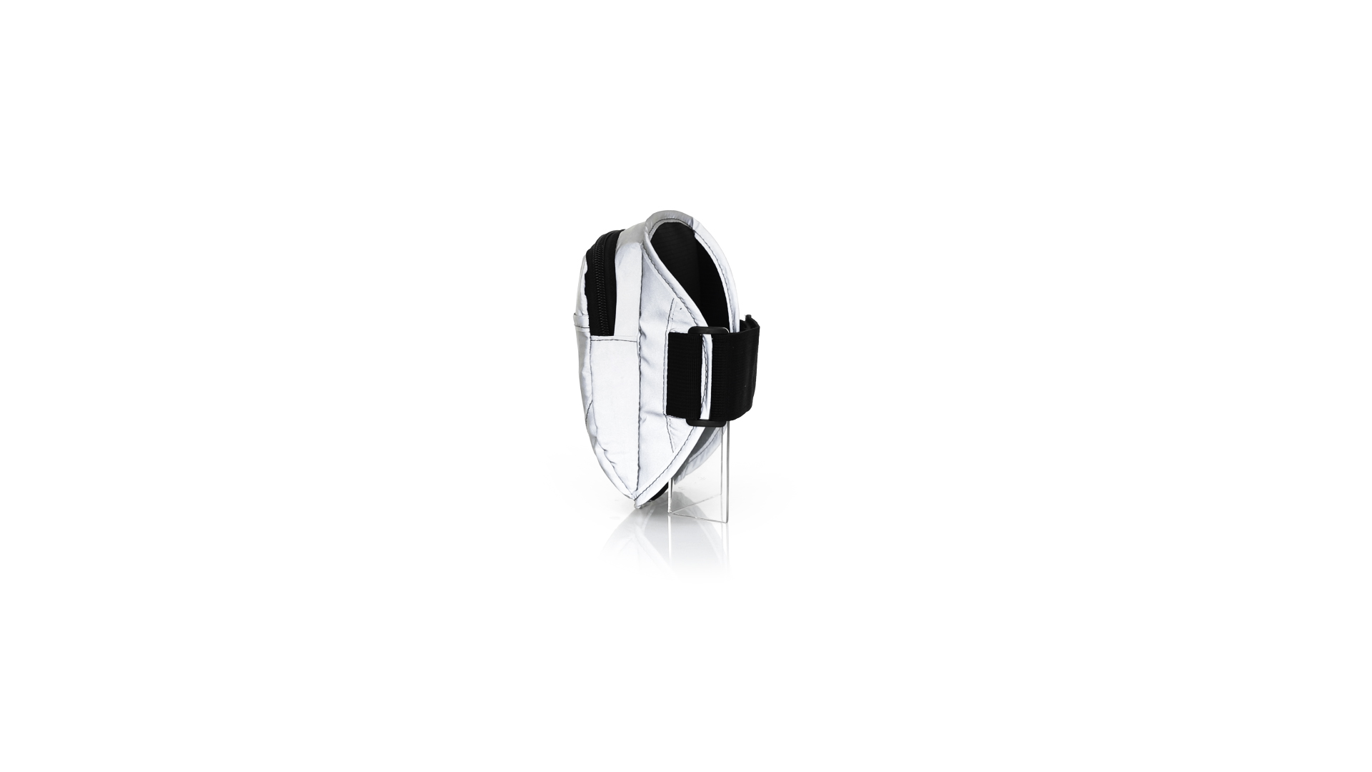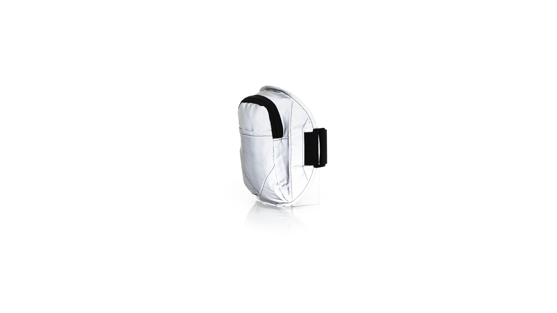 Sportarmband aus 210T Polyester, hergestellt aus Stoff mit hoher Lichtreflexionsfähigkeit, dank Millionen reflektierender Pigmente und basierend auf dem Prinzip der Retroreflexion des Lichts, einer Eigenschaft der Nachtsichtbarkeit, die aus der Brechung des Lichts in Richtung besteht die Herkunftsquelle derselben. Haupttasche mit Reissverschluss und Fronttasche mit Klettverschluss. Mit elastischem und wasserdichtem verstellbarem Riemen.