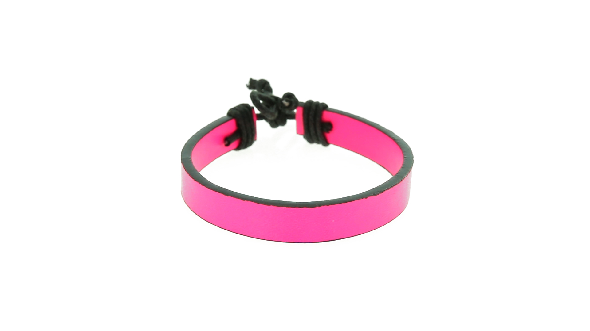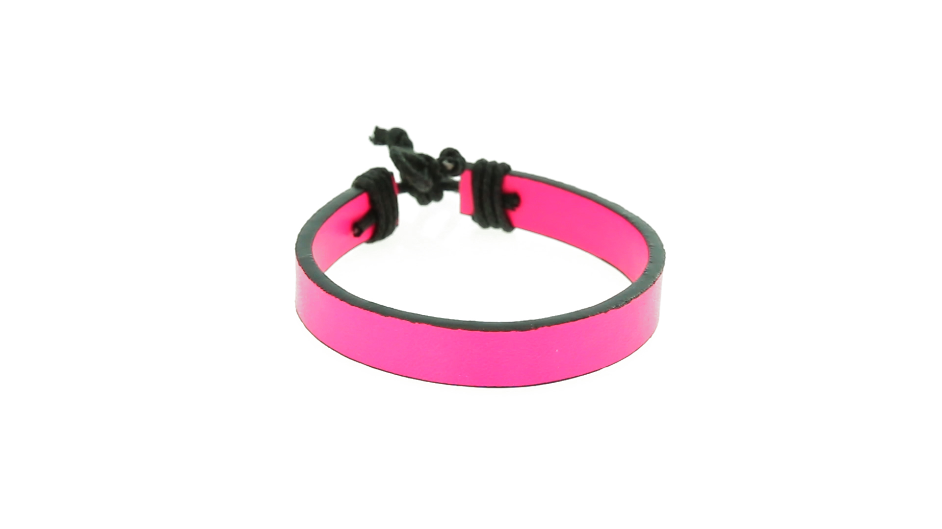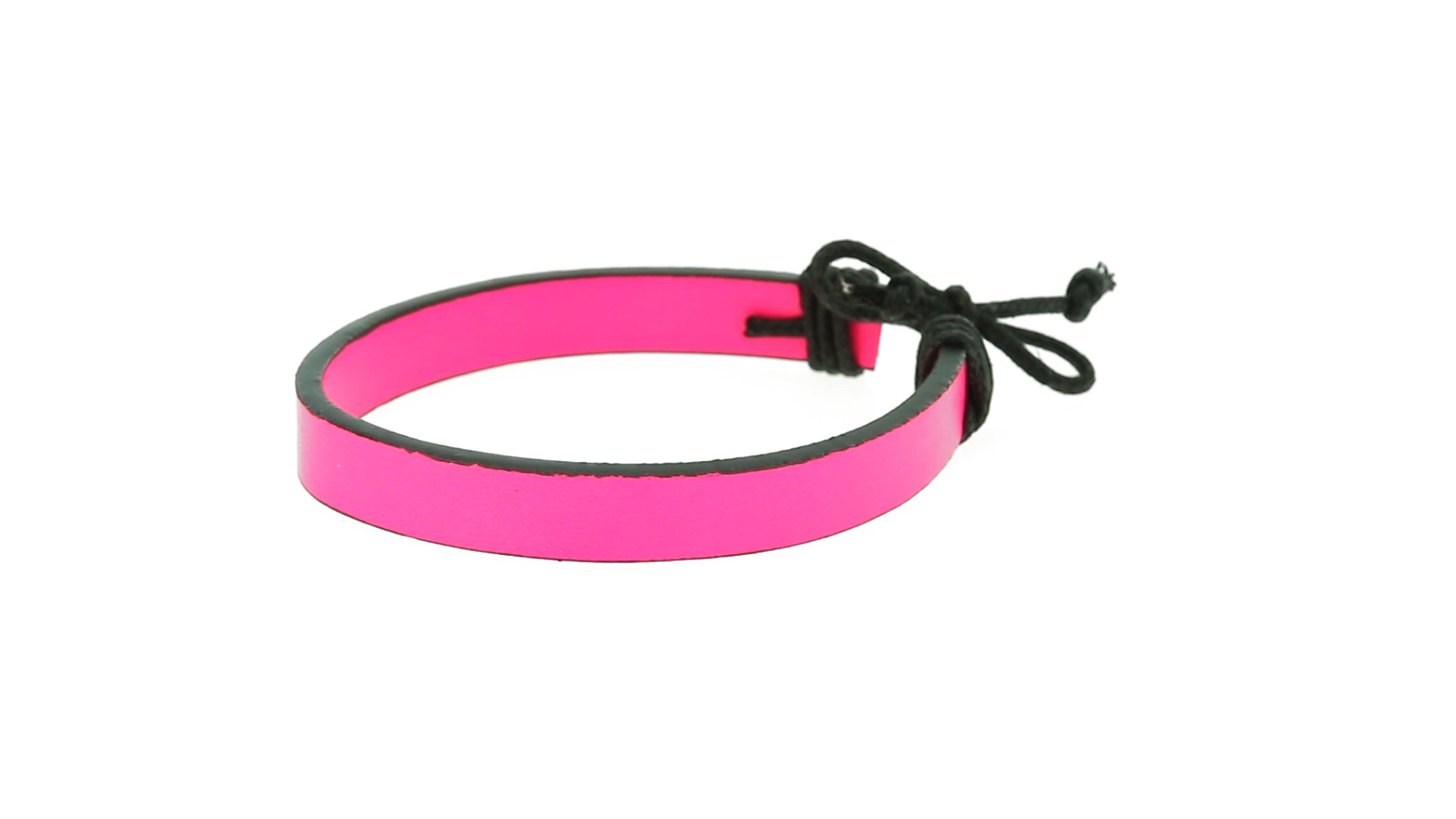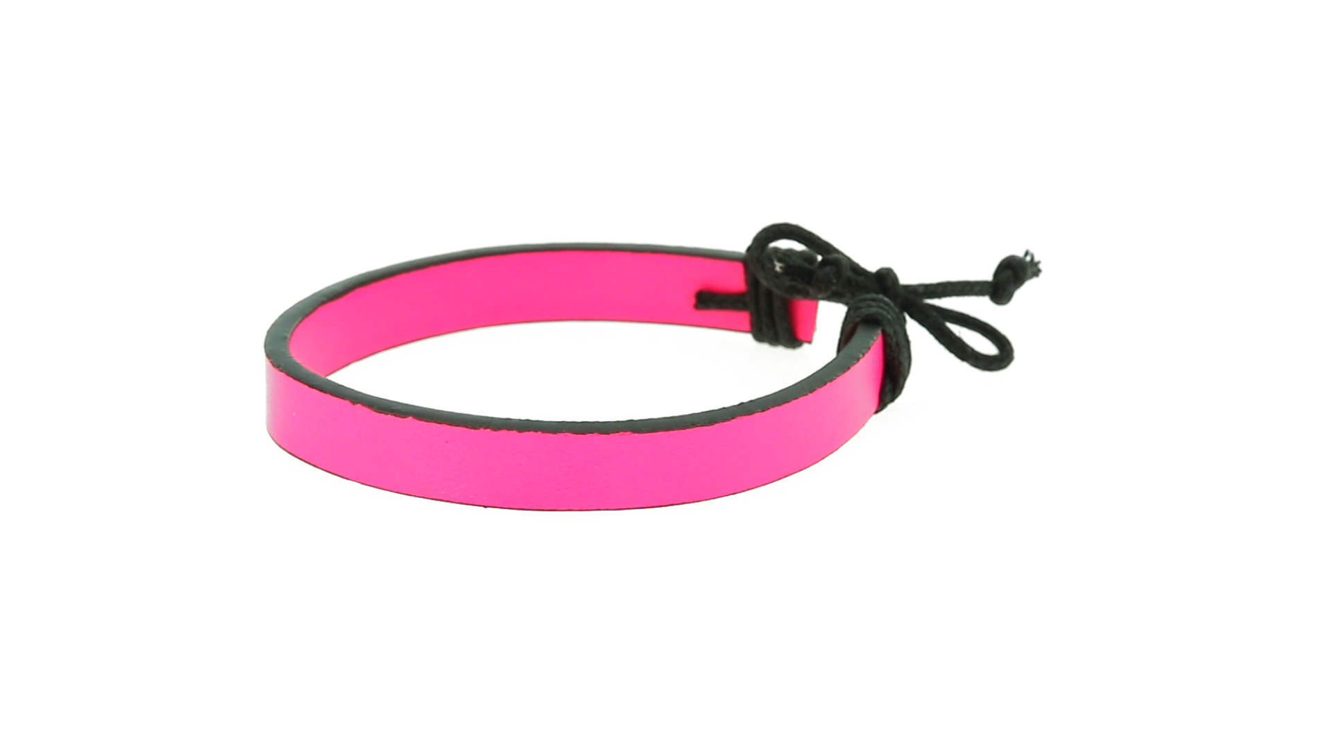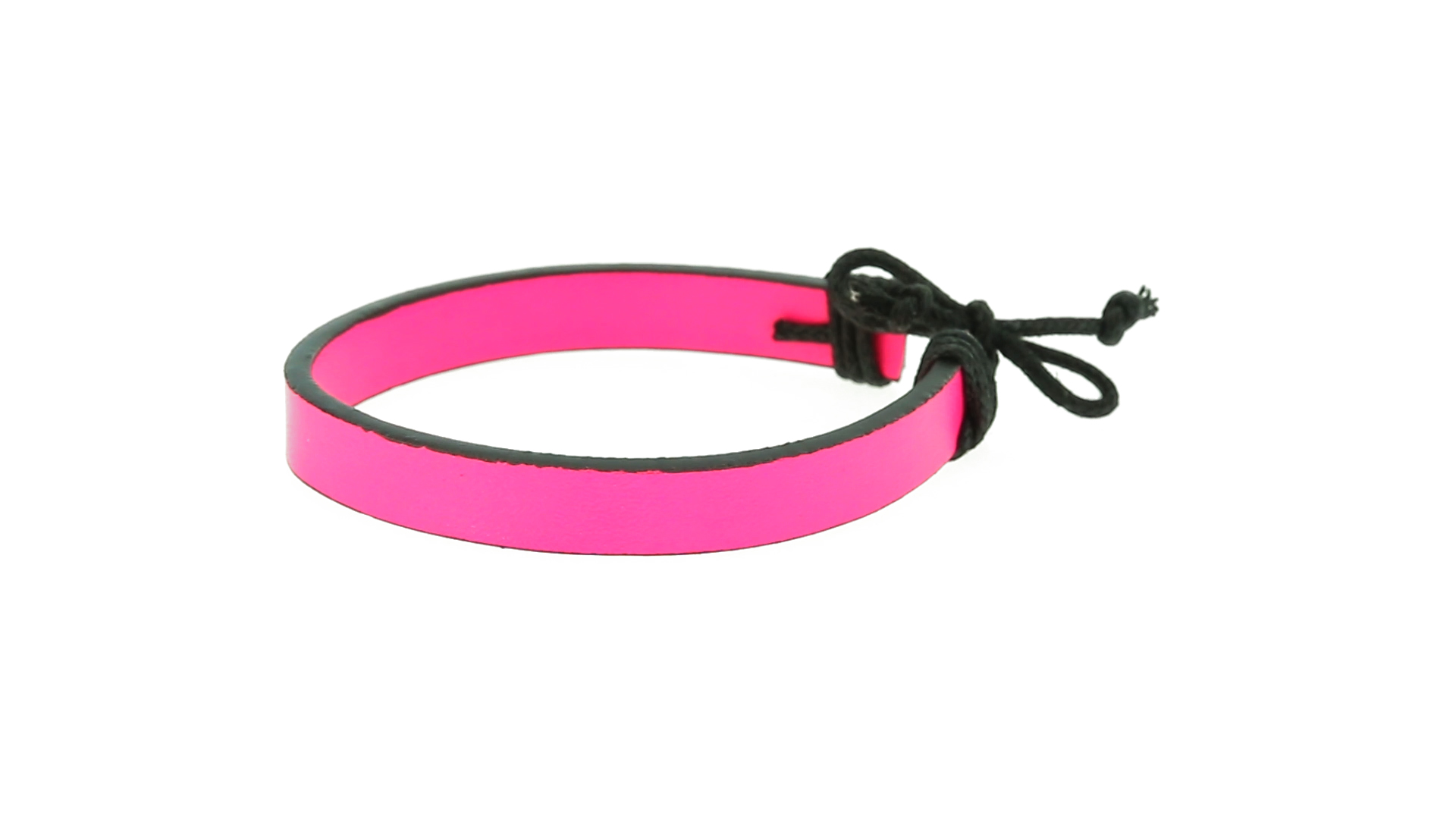 Armband mit zweifarbigem Design aus Kunstleder in Neonfarben mit Kontrastdetails in Schwarz. Mit verstellbarem, verstärktem Bandverschluss.