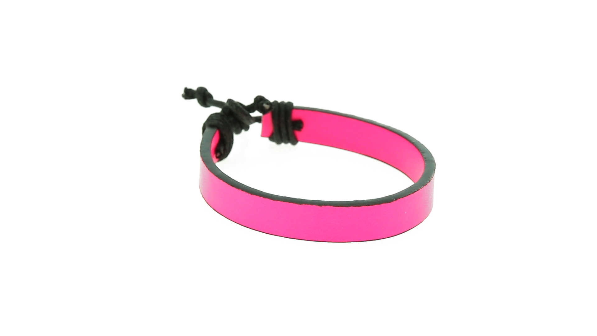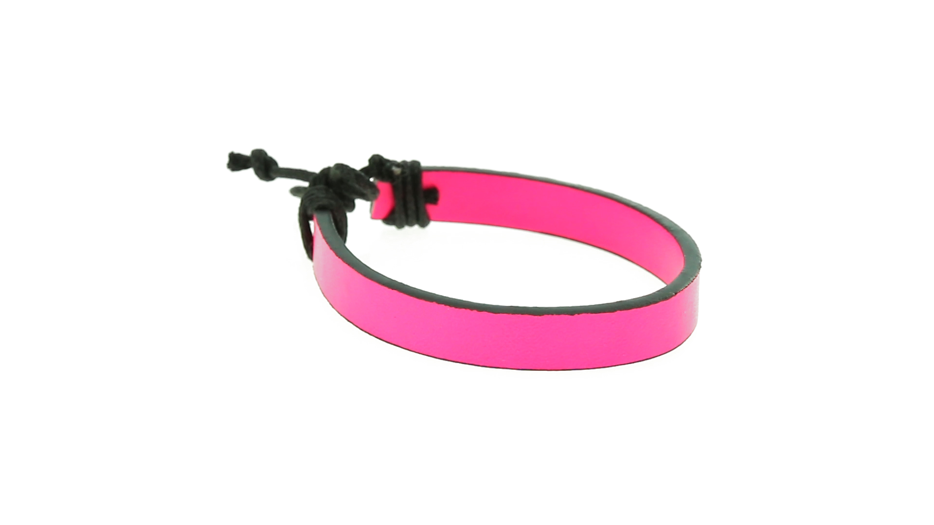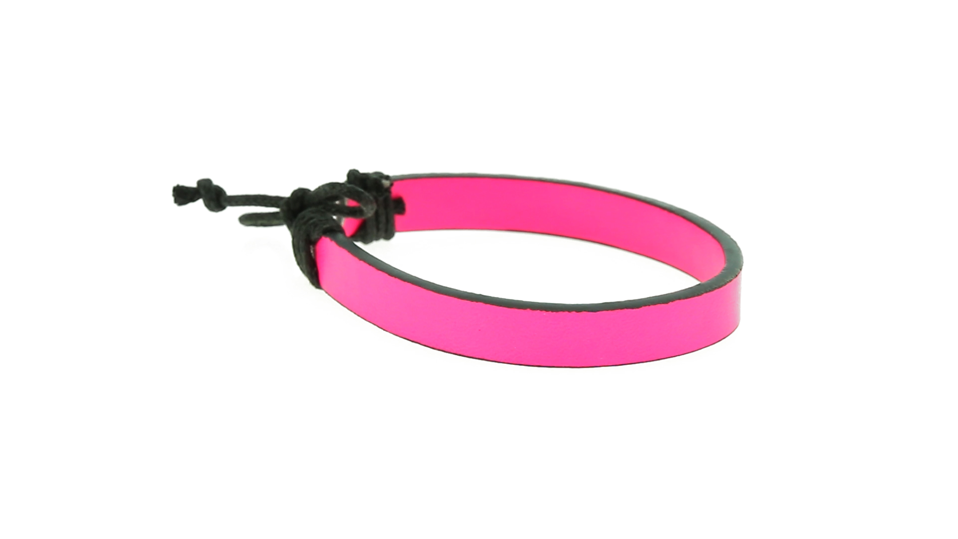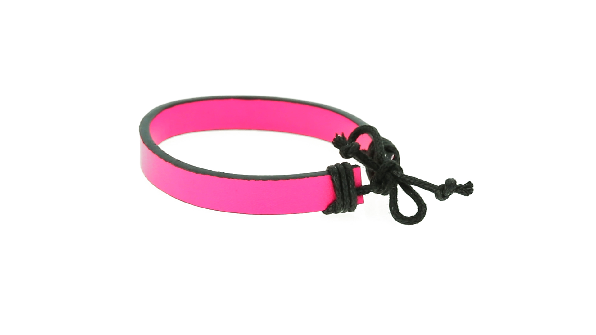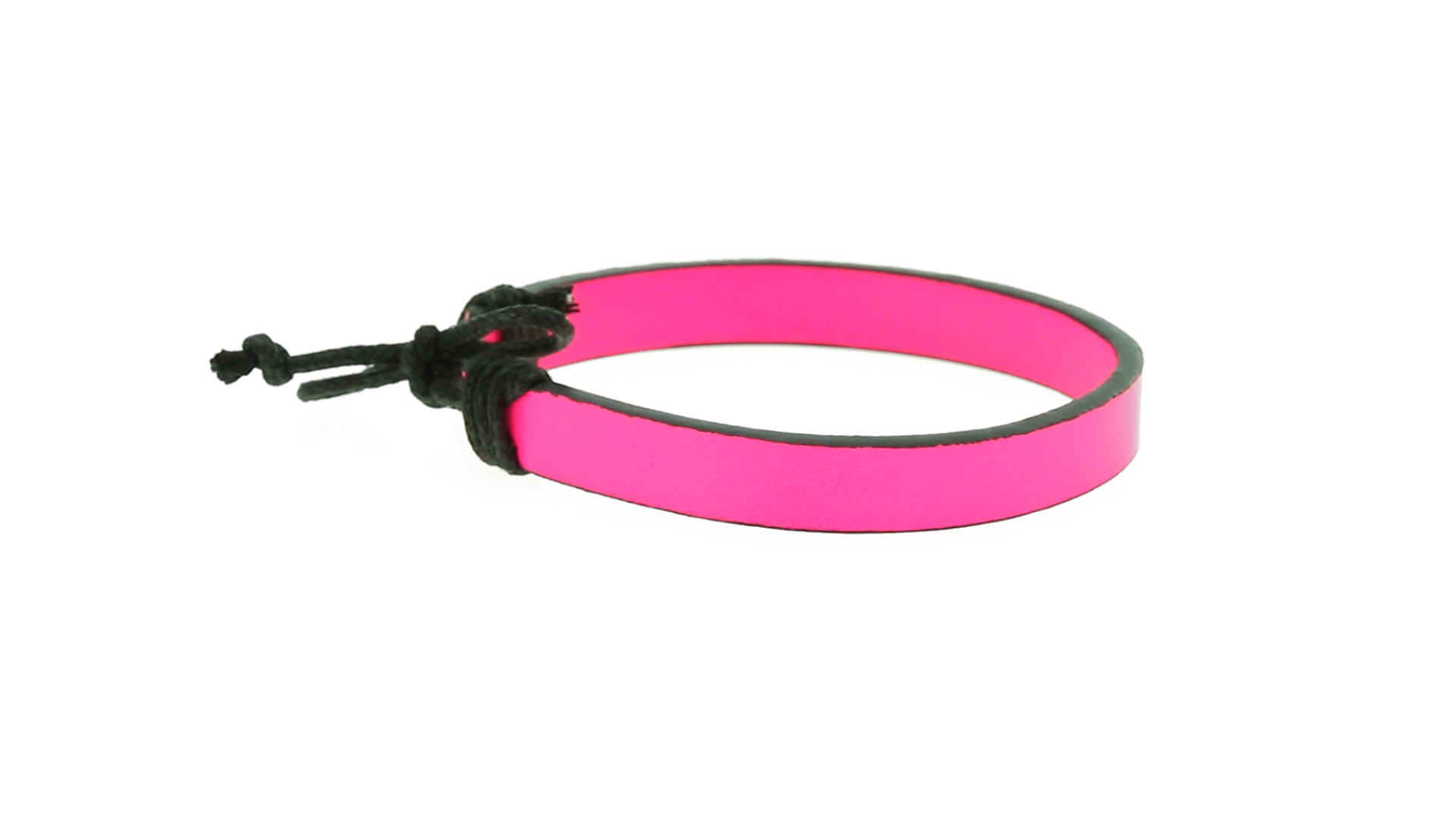 Armband mit zweifarbigem Design aus Kunstleder in Neonfarben mit Kontrastdetails in Schwarz. Mit verstellbarem, verstärktem Bandverschluss.