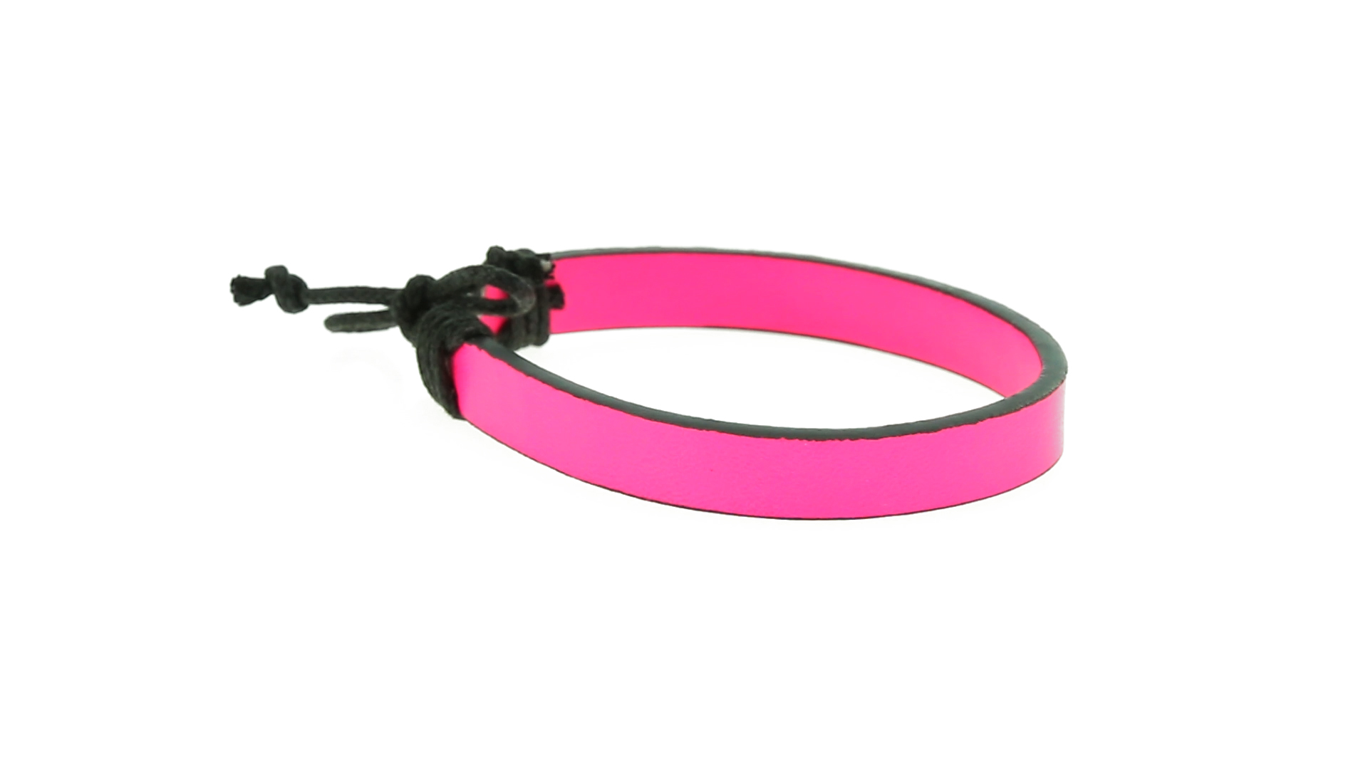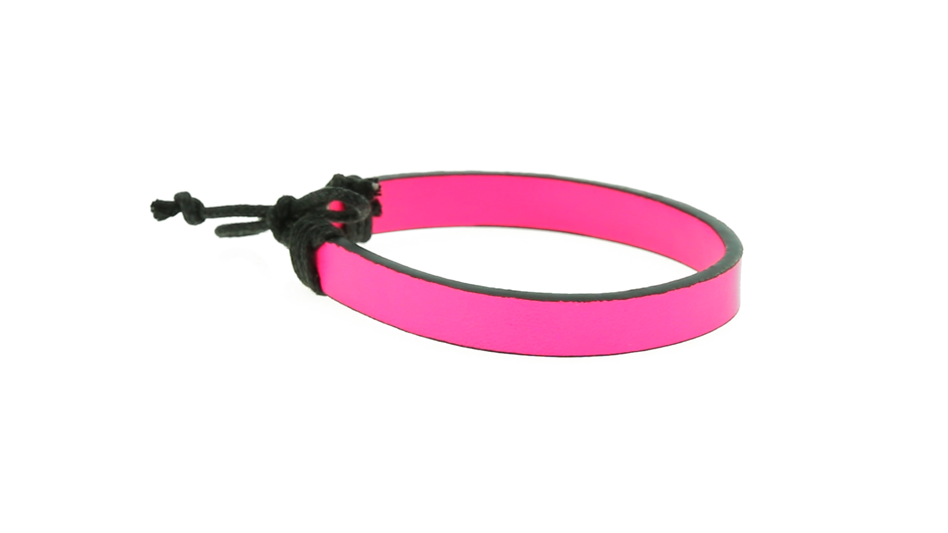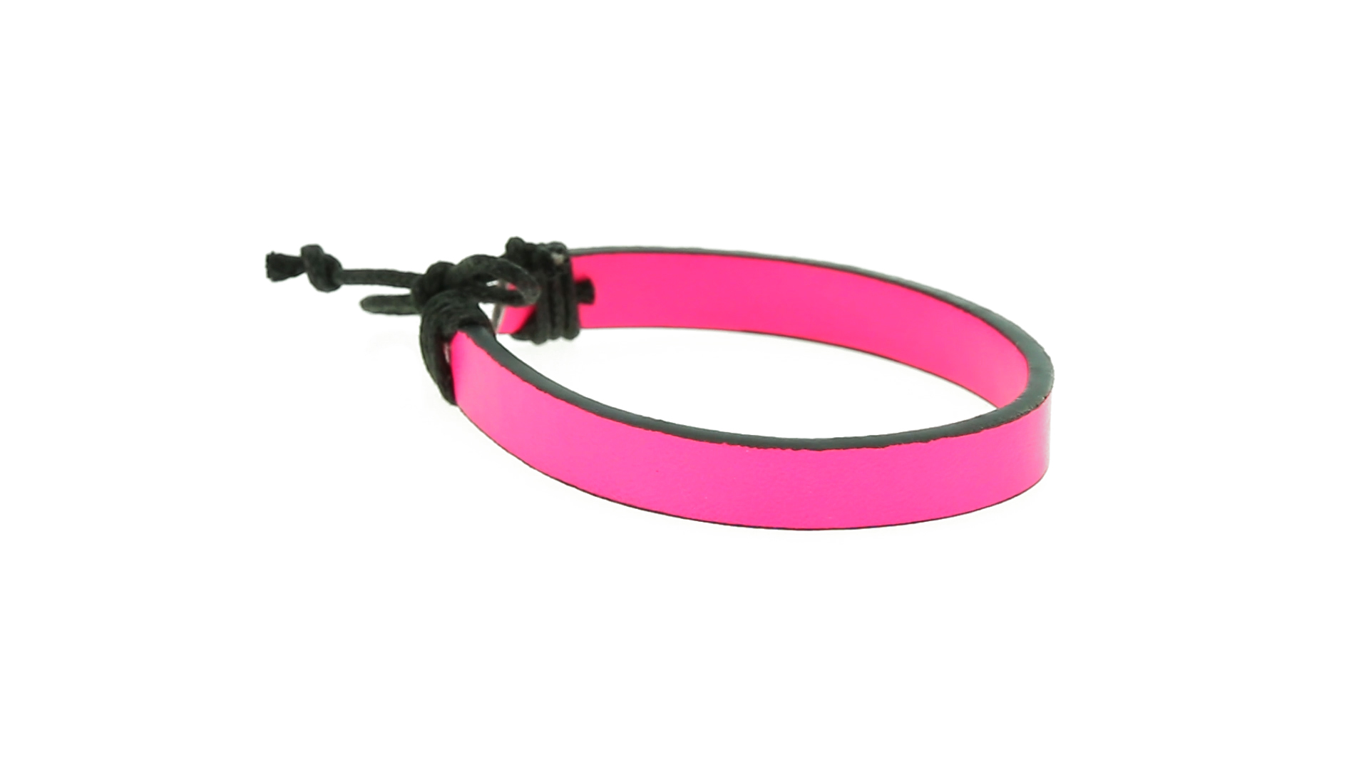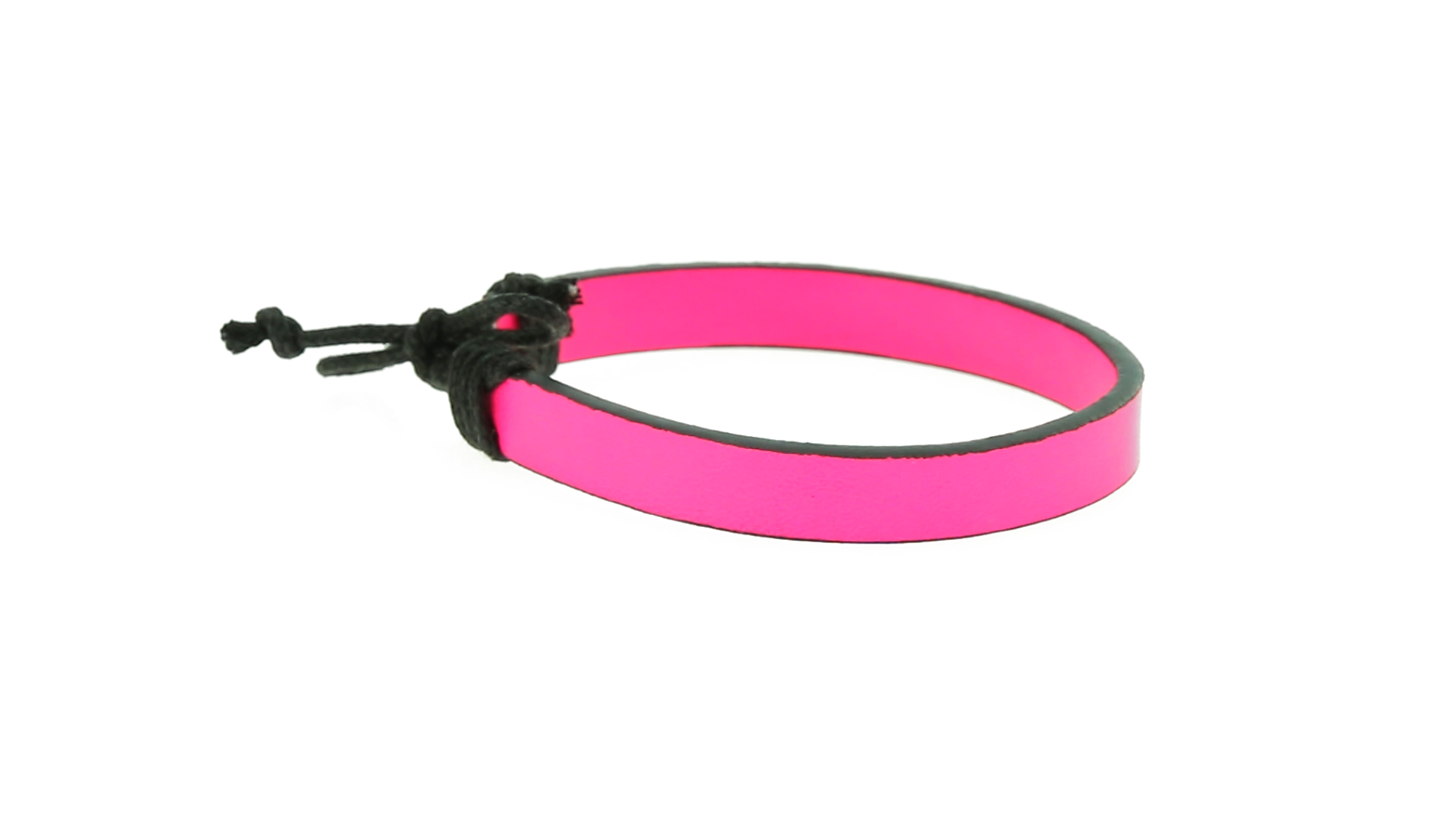 Armband mit zweifarbigem Design aus Kunstleder in Neonfarben mit Kontrastdetails in Schwarz. Mit verstellbarem, verstärktem Bandverschluss.