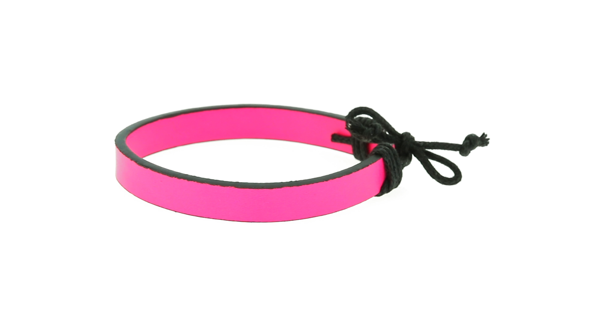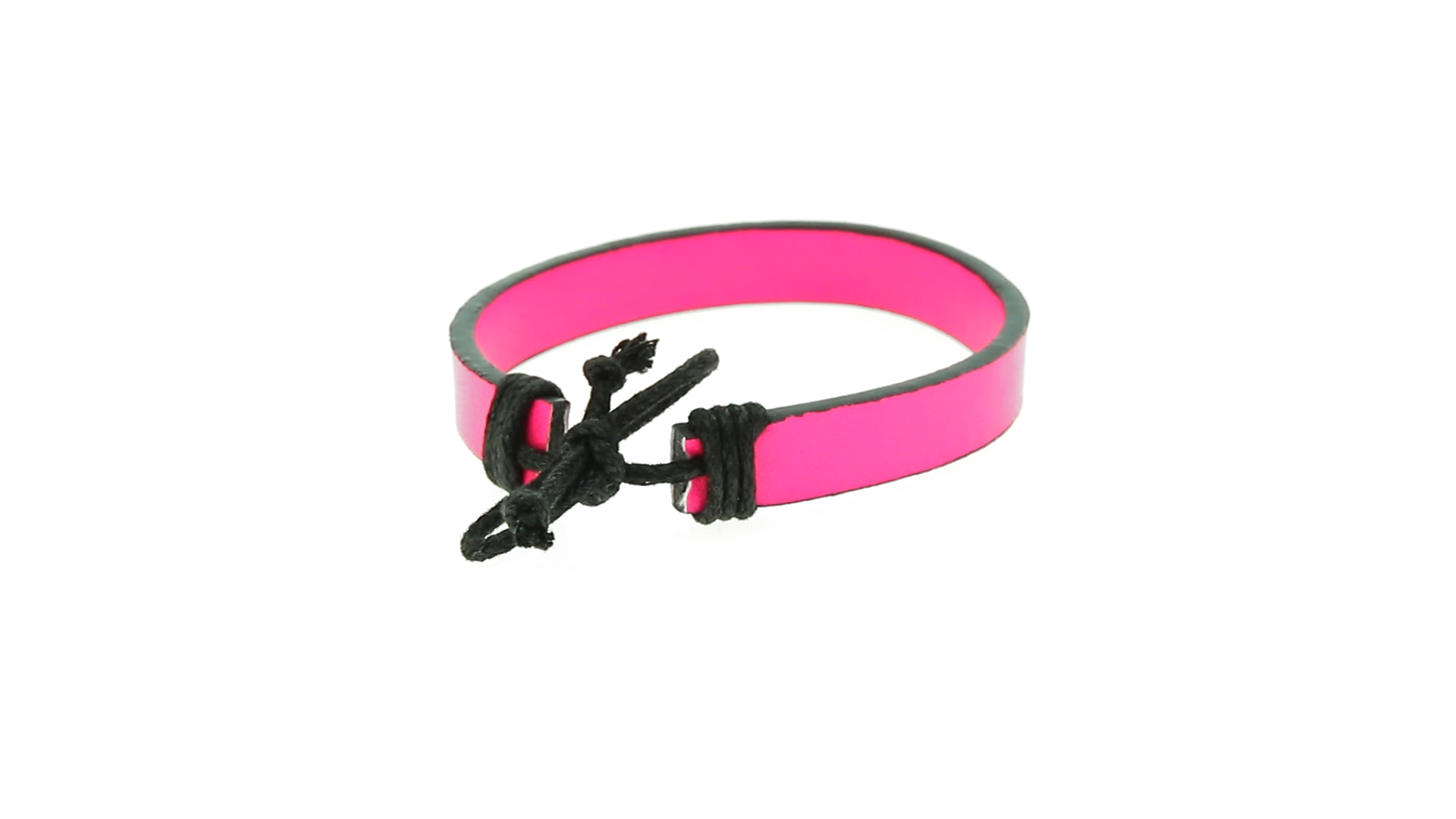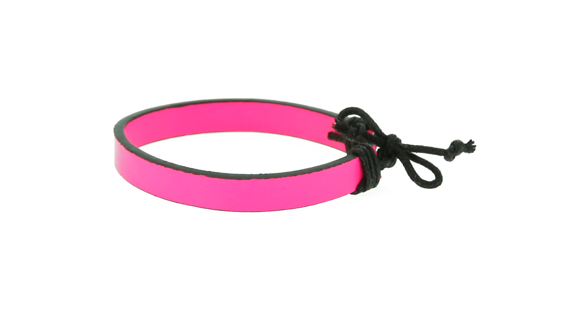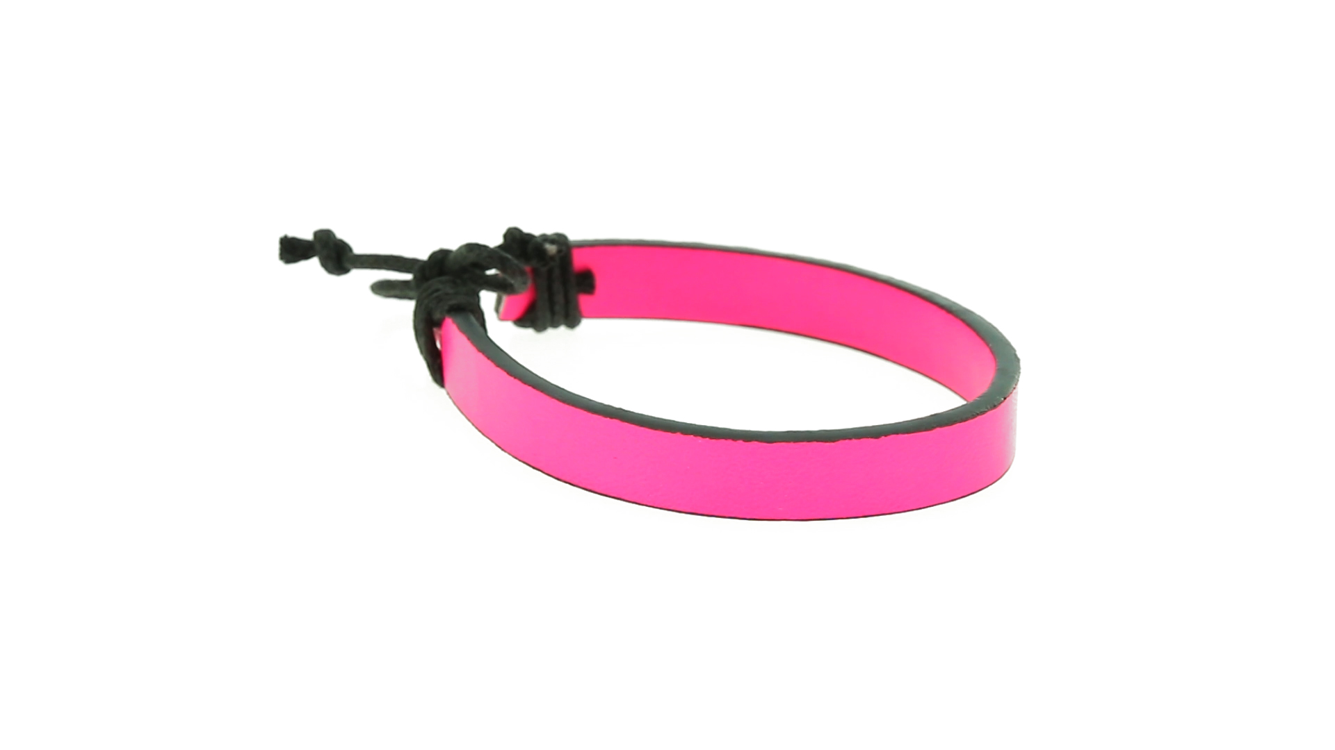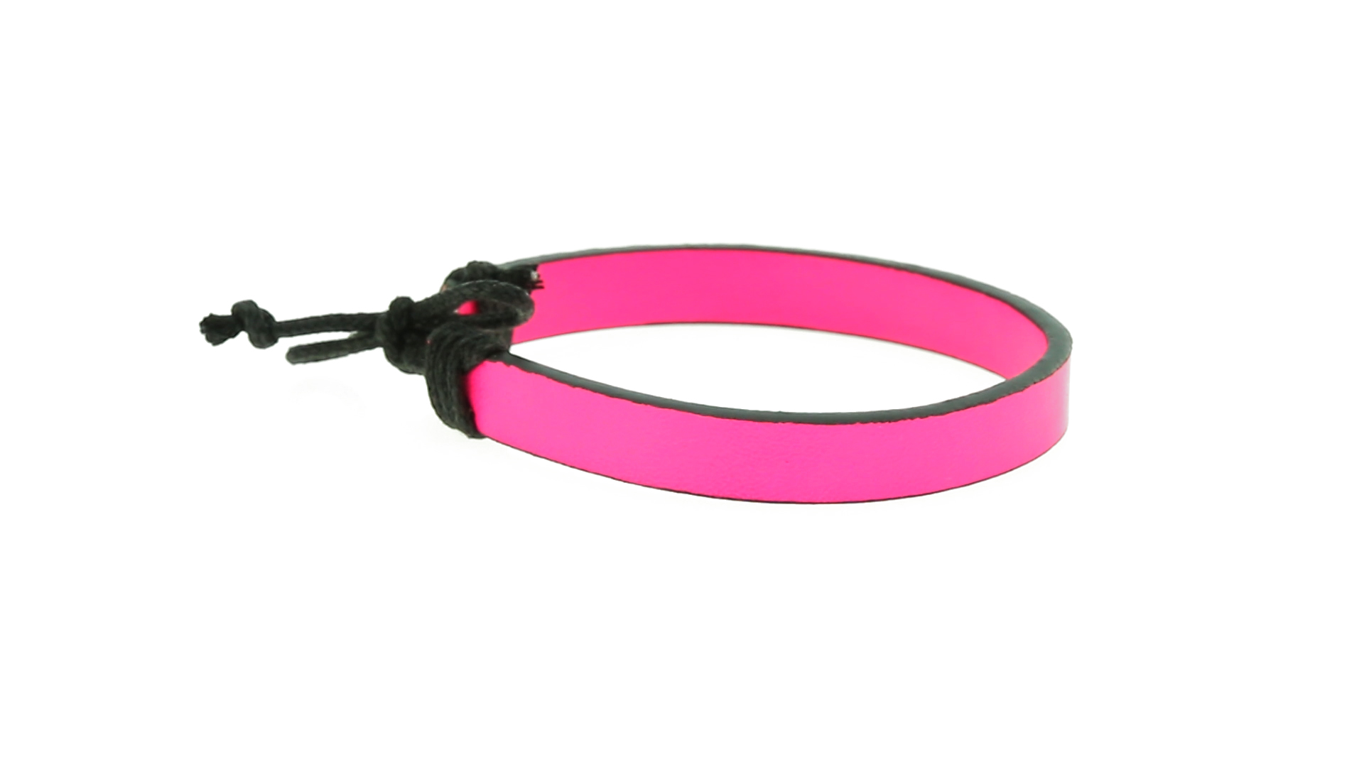 Armband mit zweifarbigem Design aus Kunstleder in Neonfarben mit Kontrastdetails in Schwarz. Mit verstellbarem, verstärktem Bandverschluss.