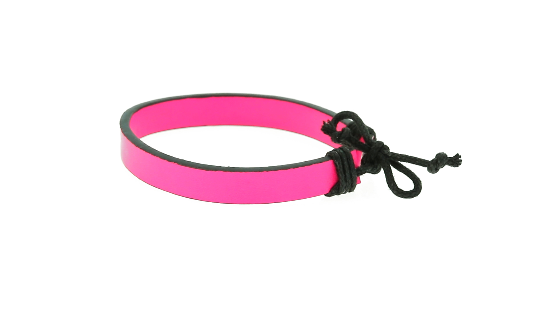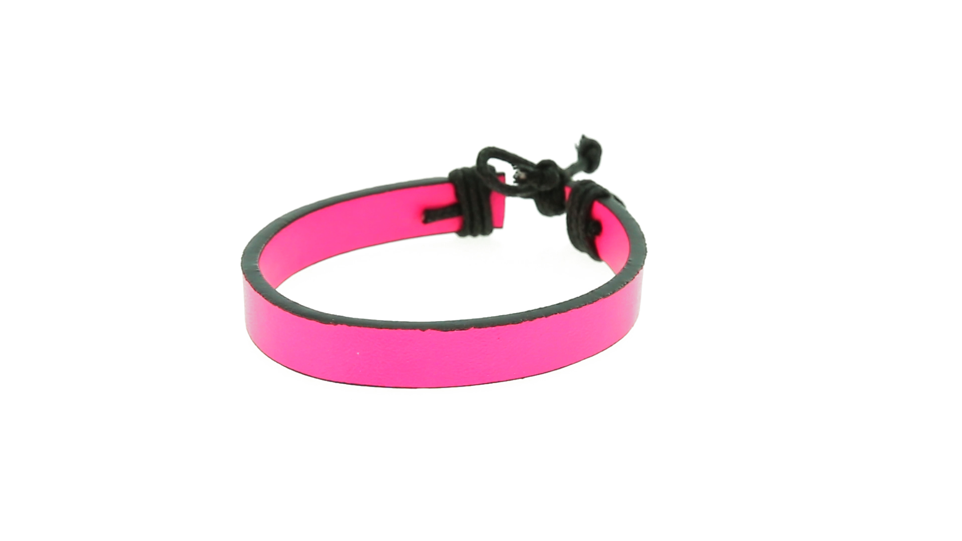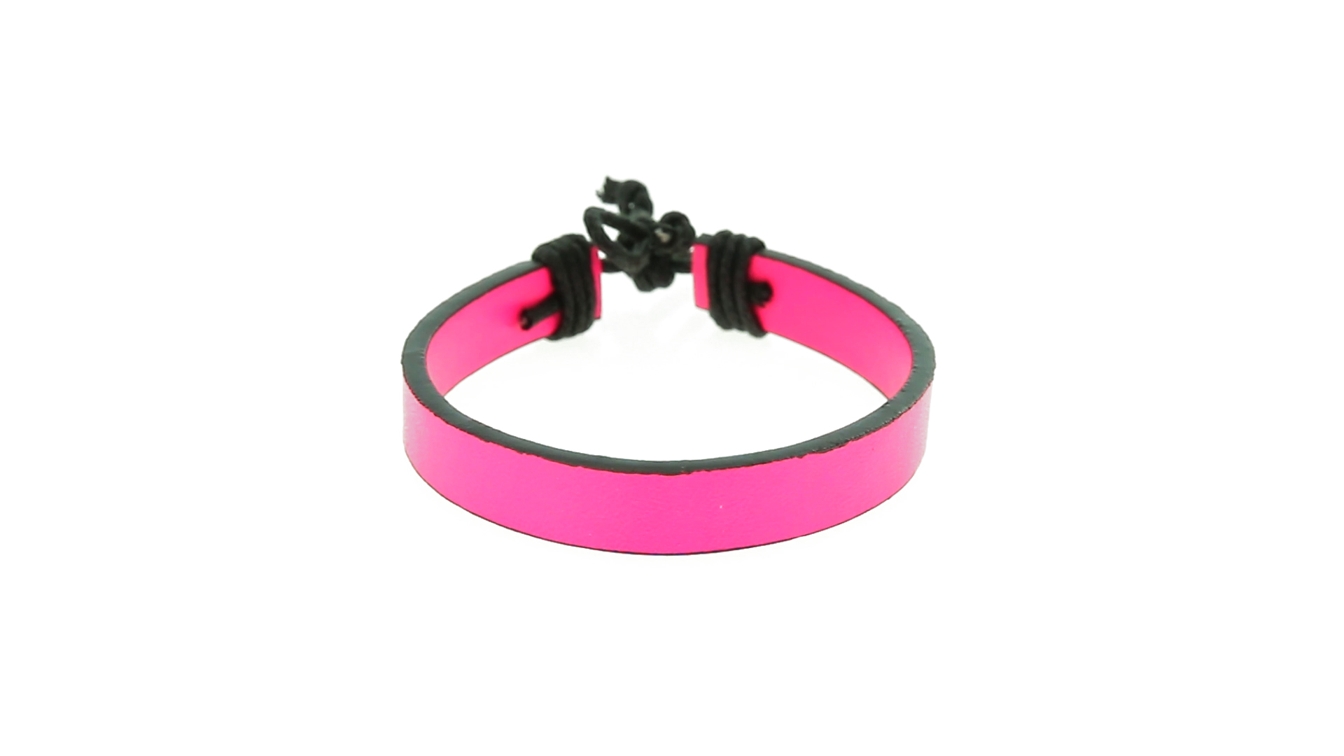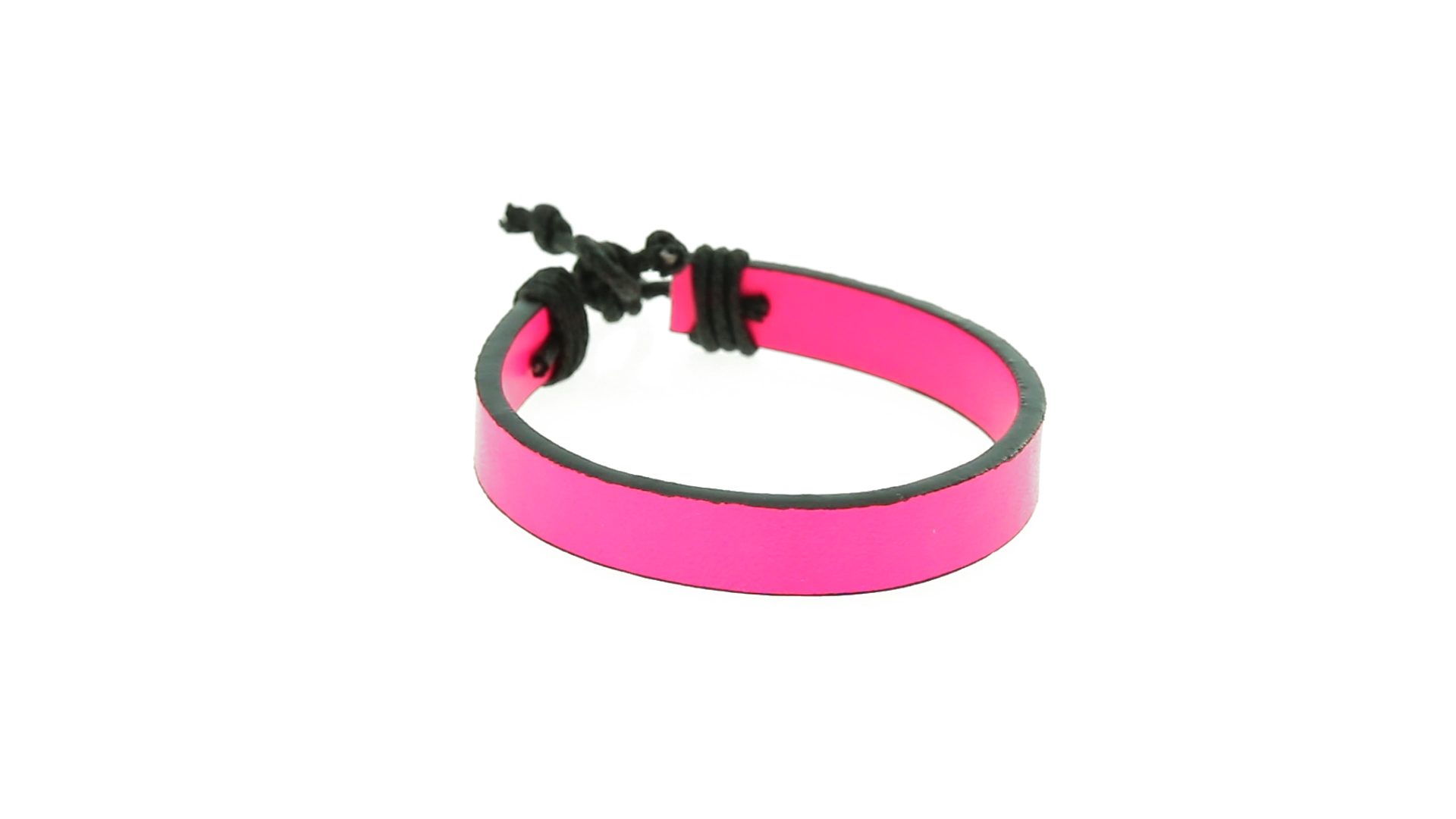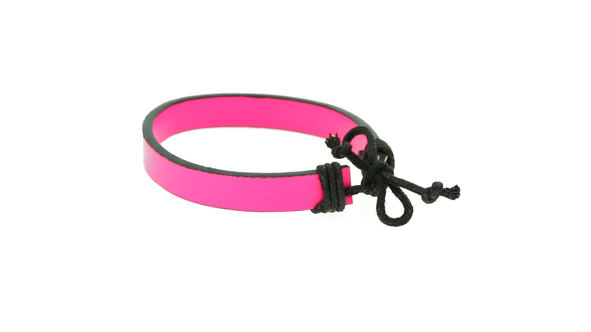 Armband mit zweifarbigem Design aus Kunstleder in Neonfarben mit Kontrastdetails in Schwarz. Mit verstellbarem, verstärktem Bandverschluss.