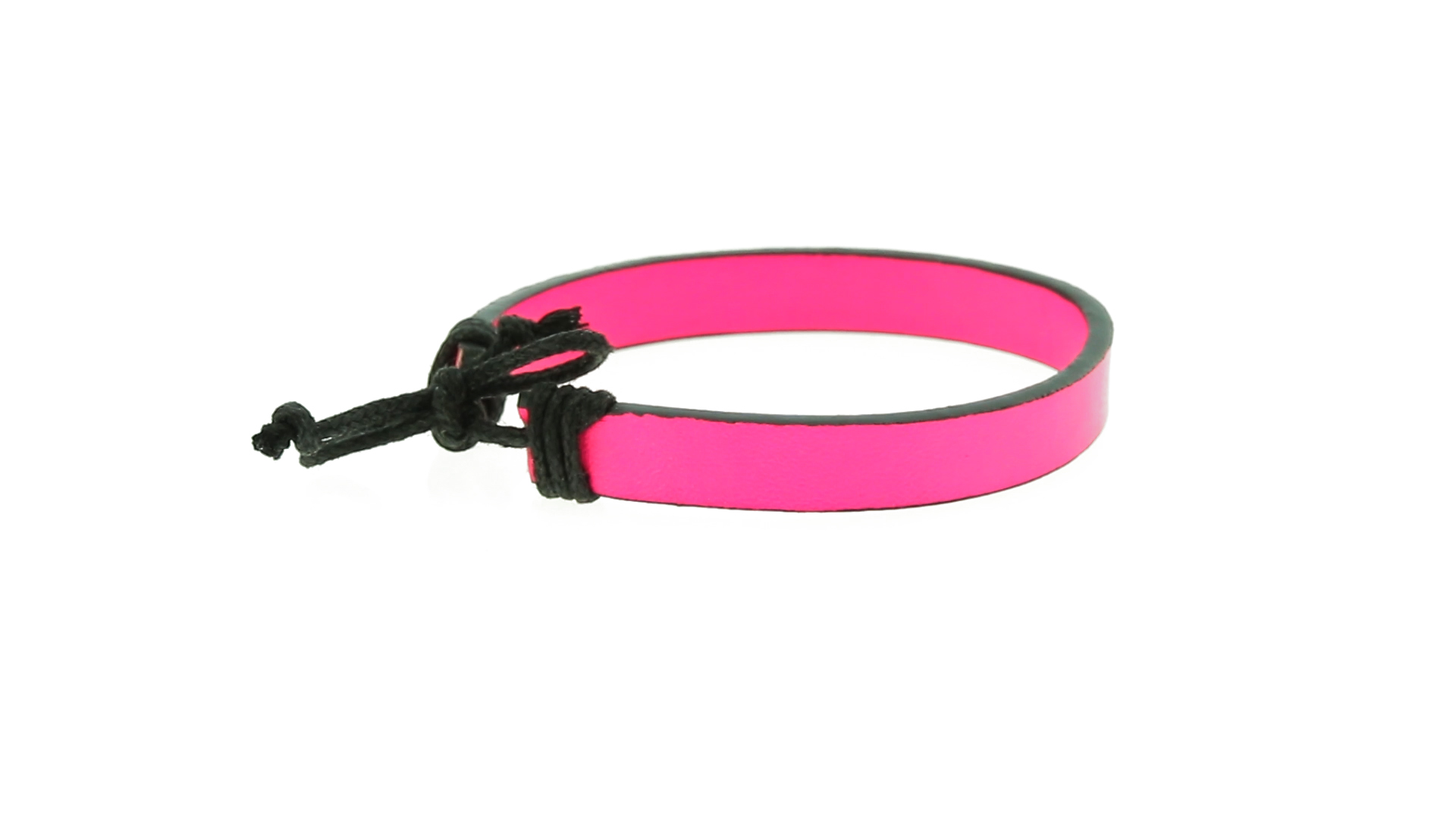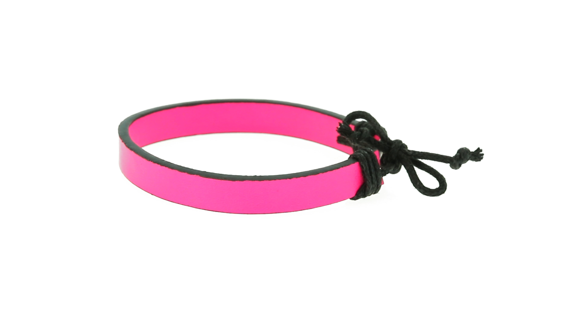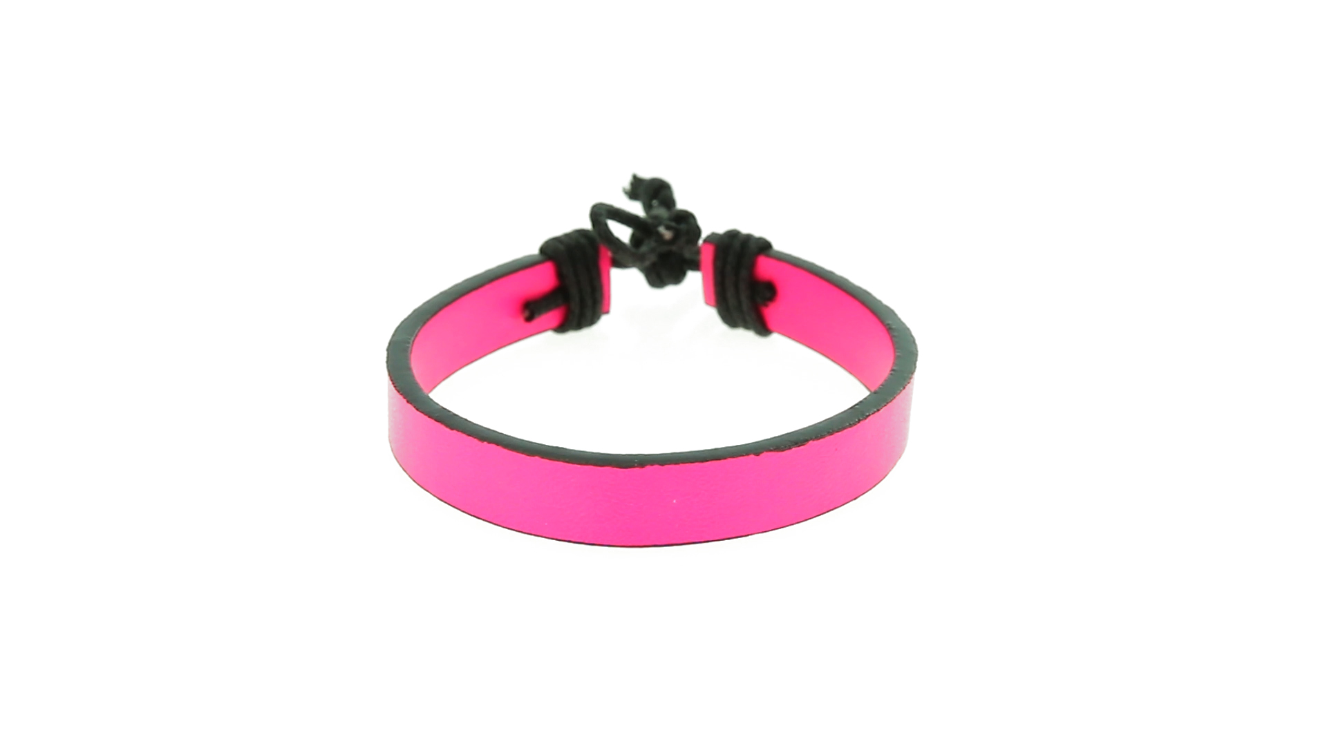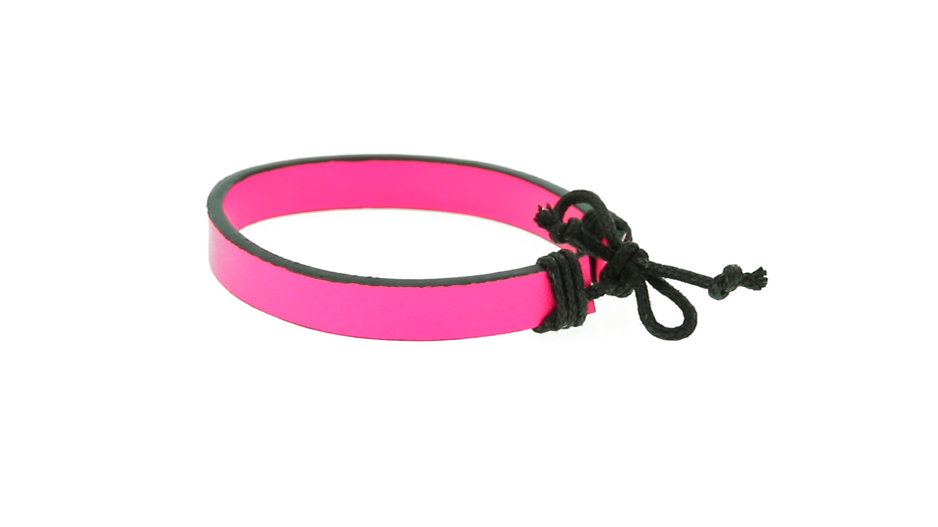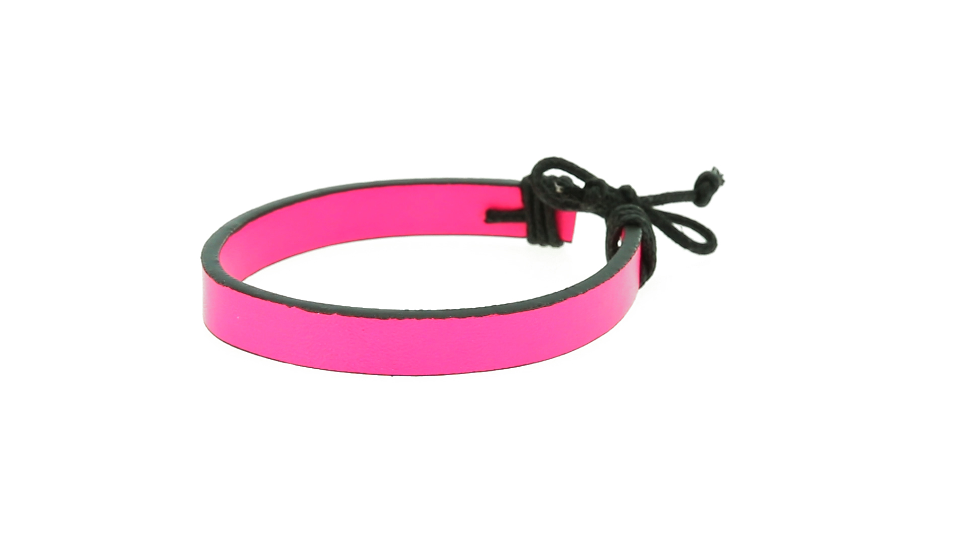 Armband mit zweifarbigem Design aus Kunstleder in Neonfarben mit Kontrastdetails in Schwarz. Mit verstellbarem, verstärktem Bandverschluss.