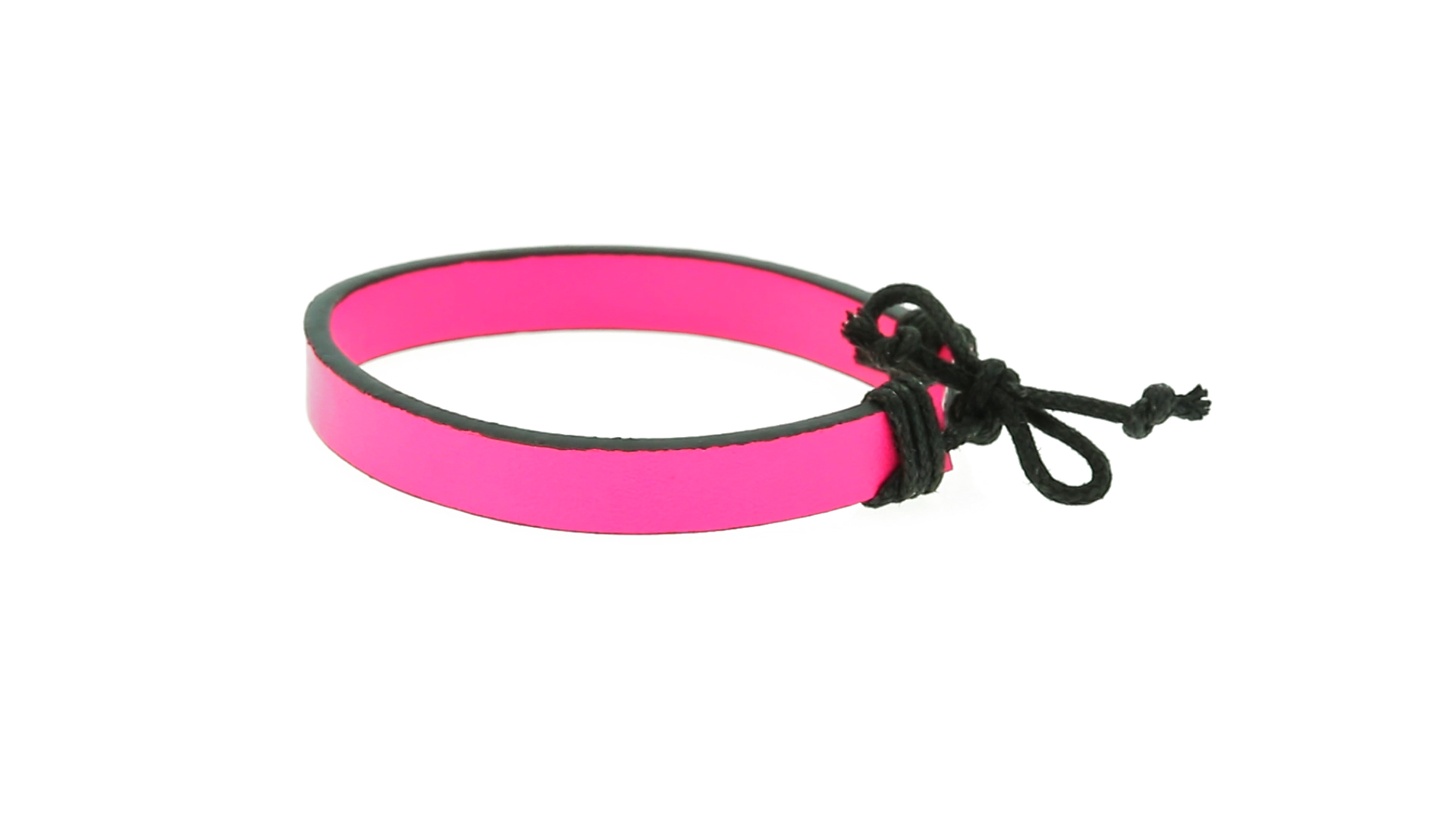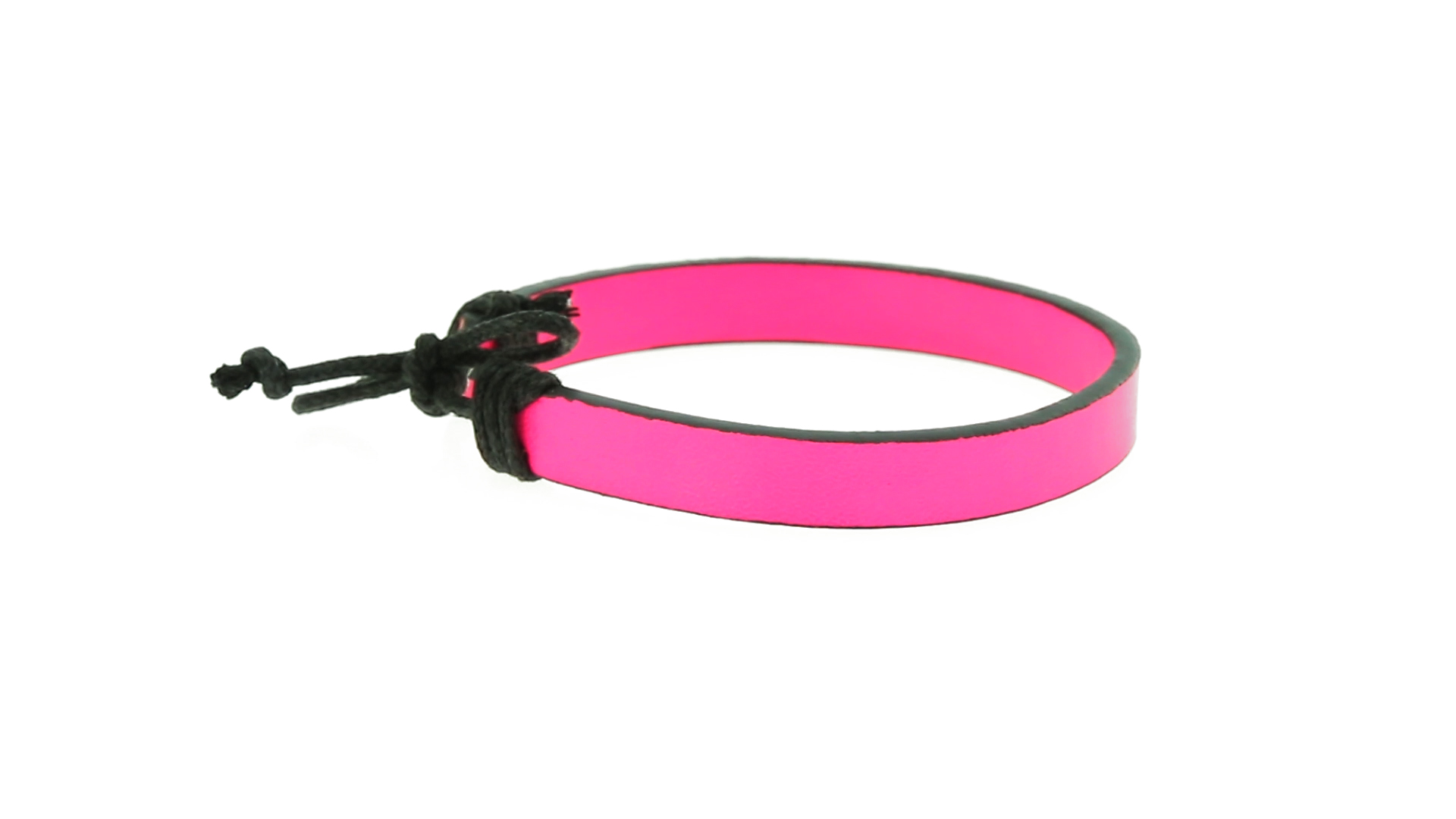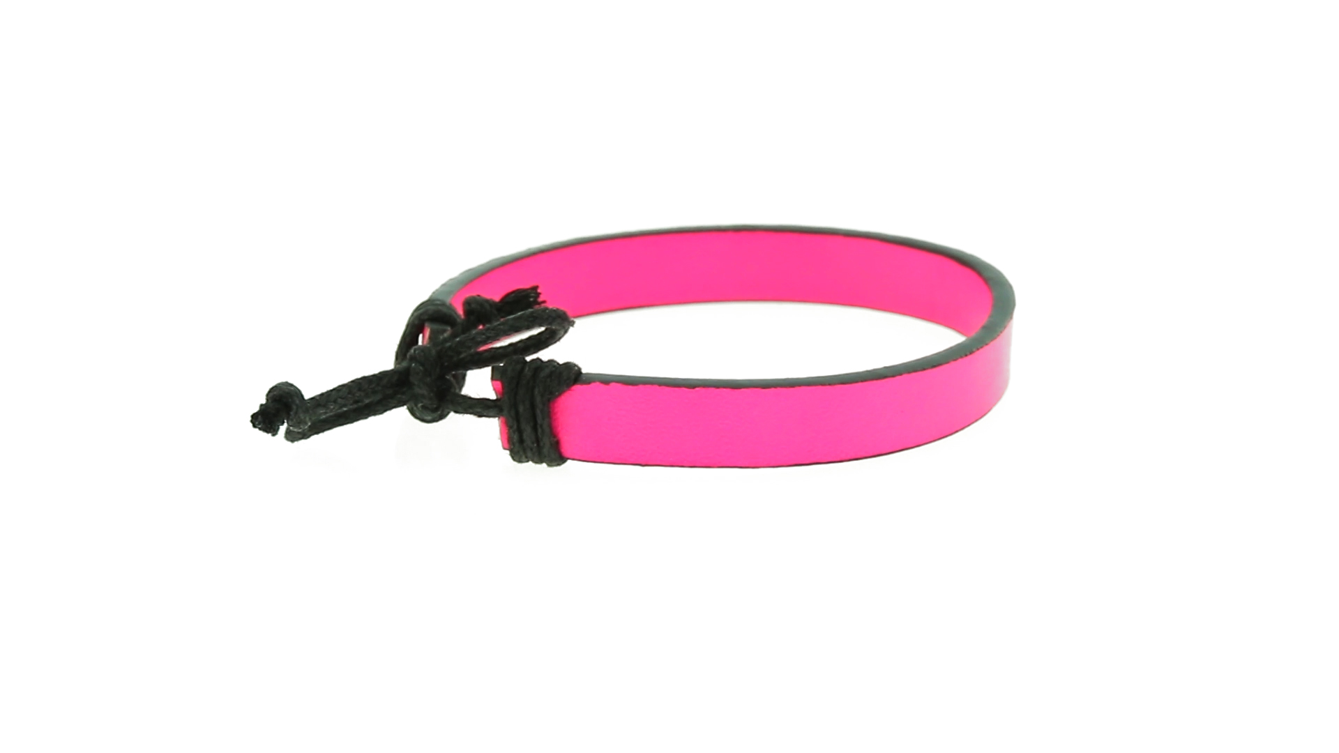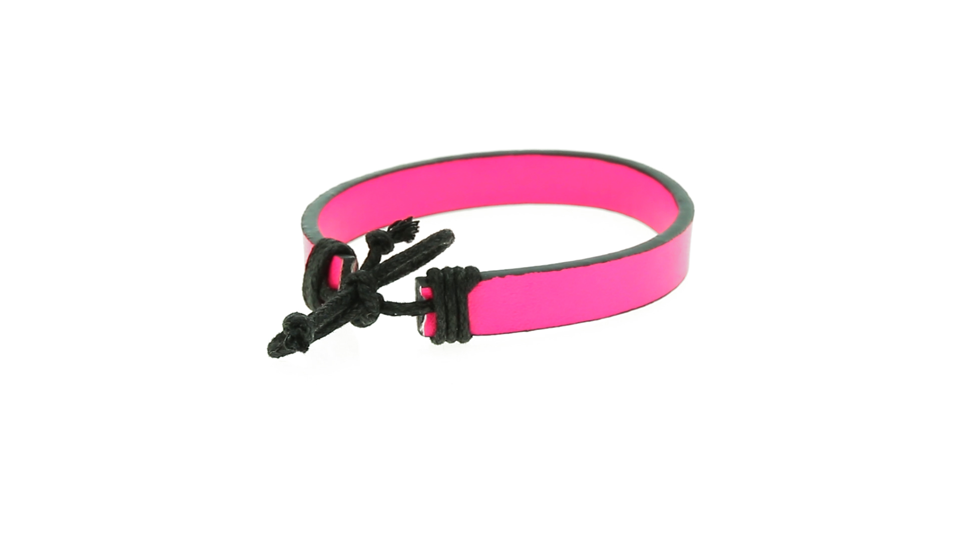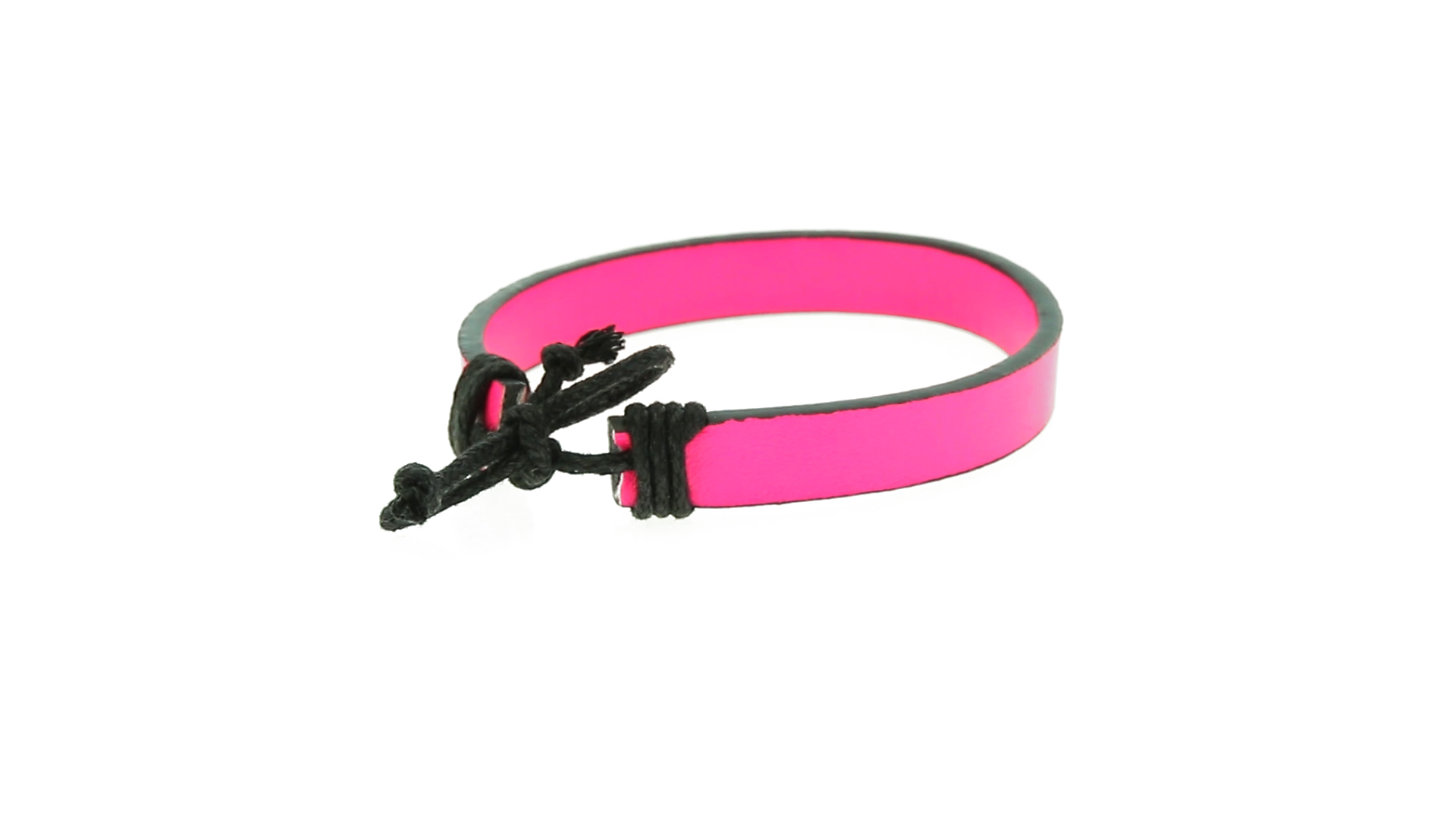 Armband mit zweifarbigem Design aus Kunstleder in Neonfarben mit Kontrastdetails in Schwarz. Mit verstellbarem, verstärktem Bandverschluss.