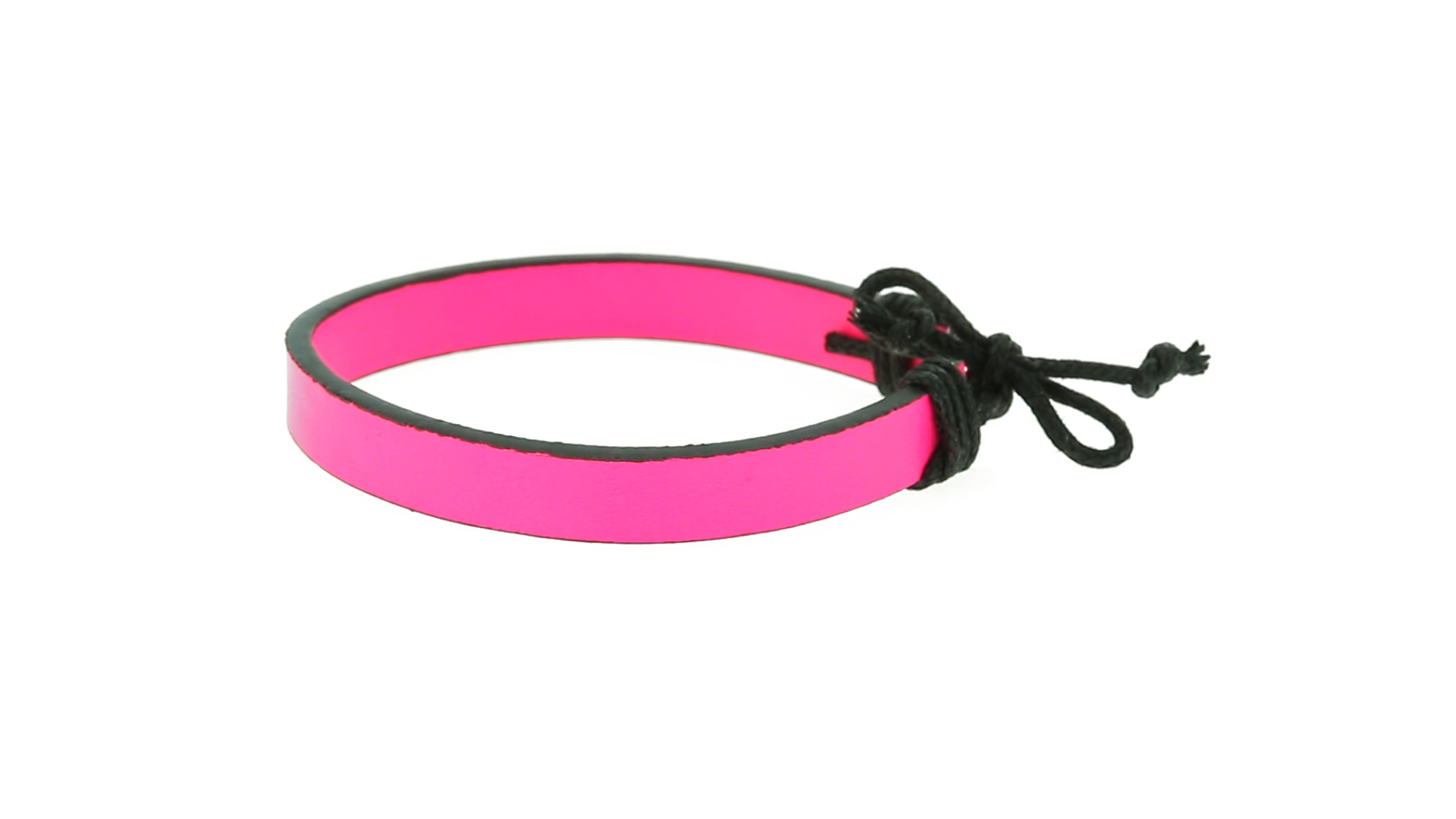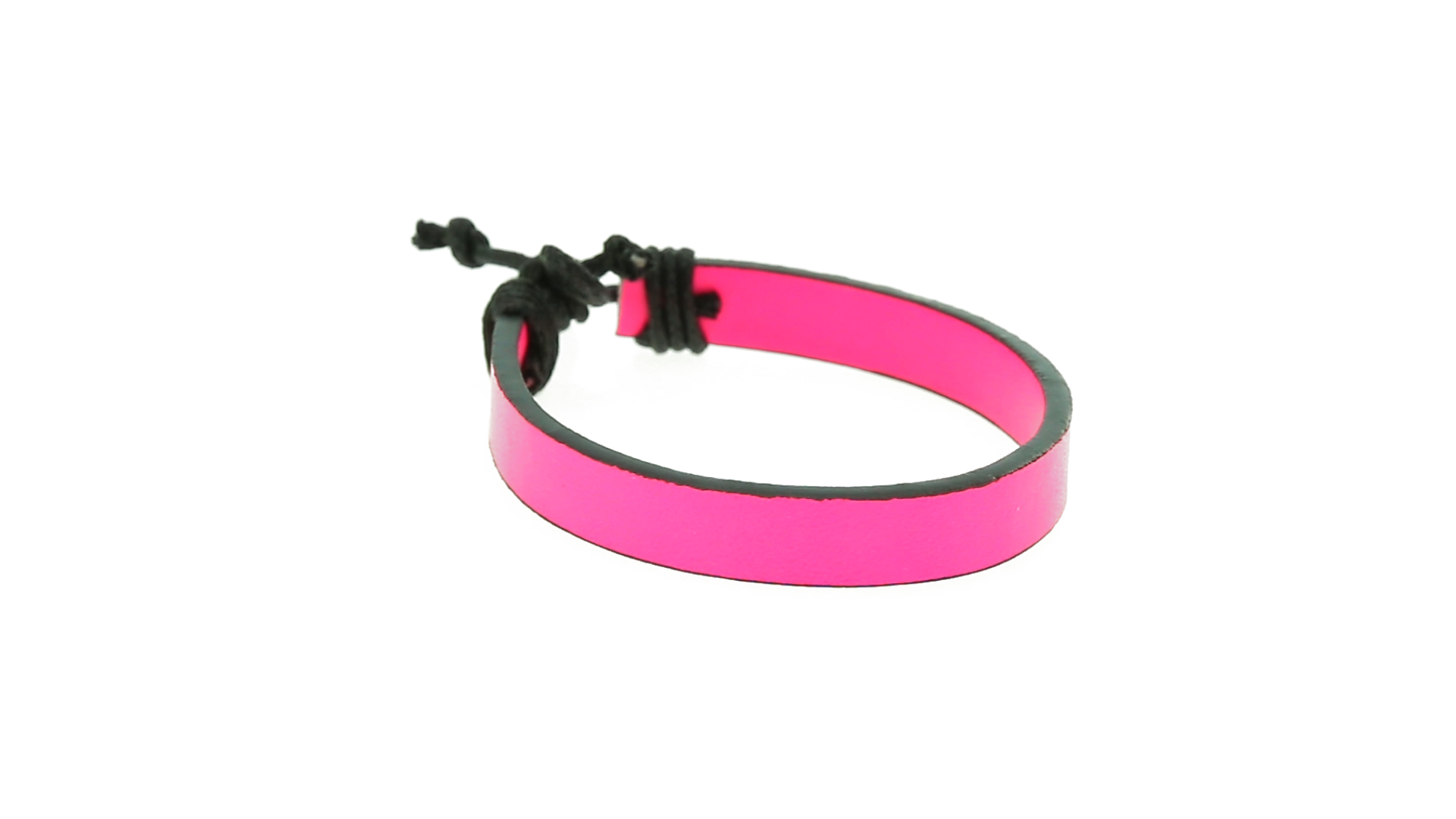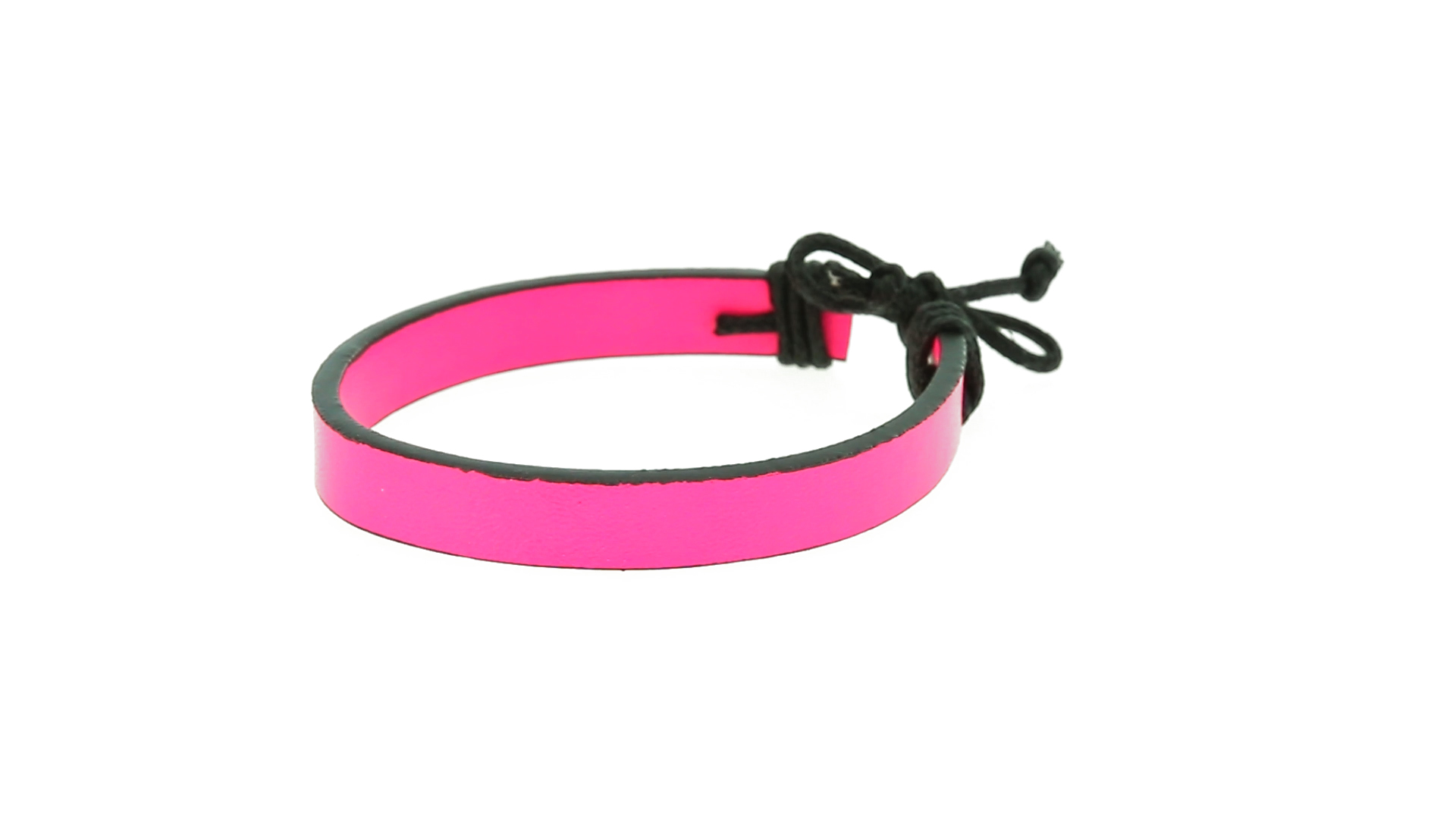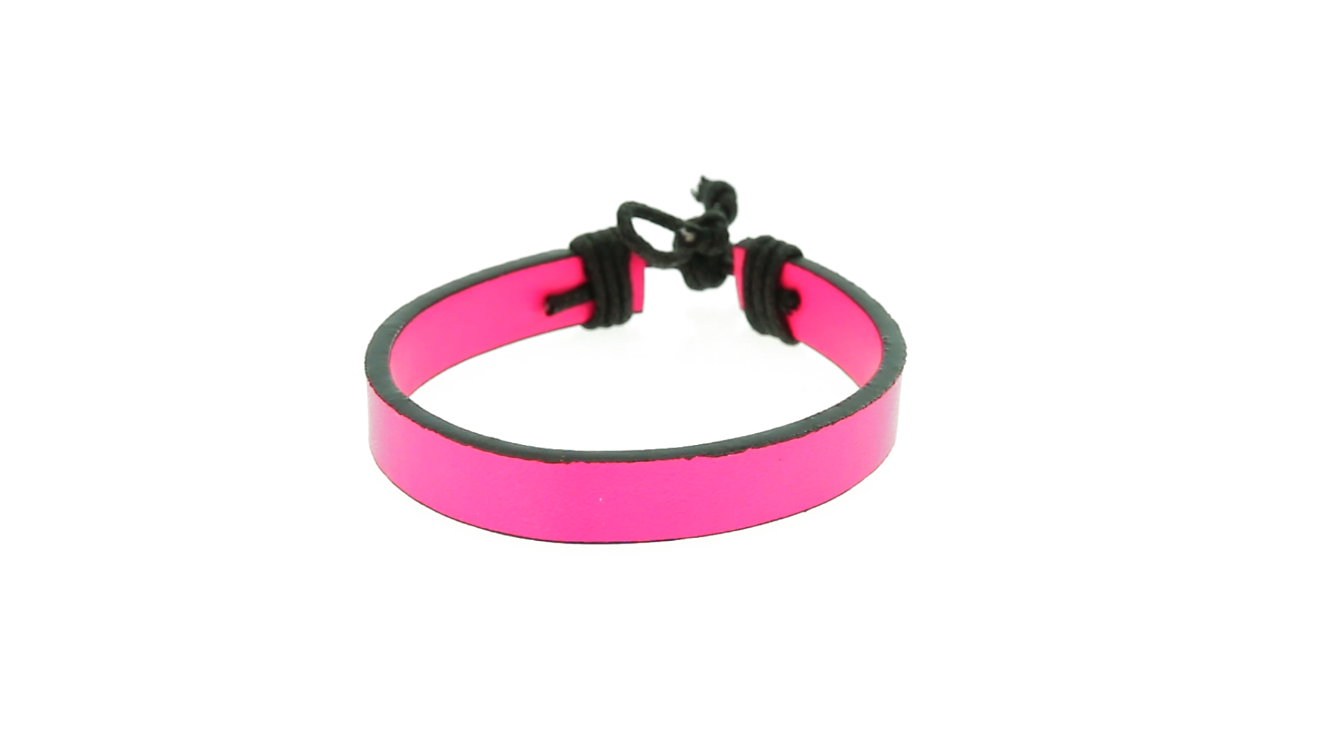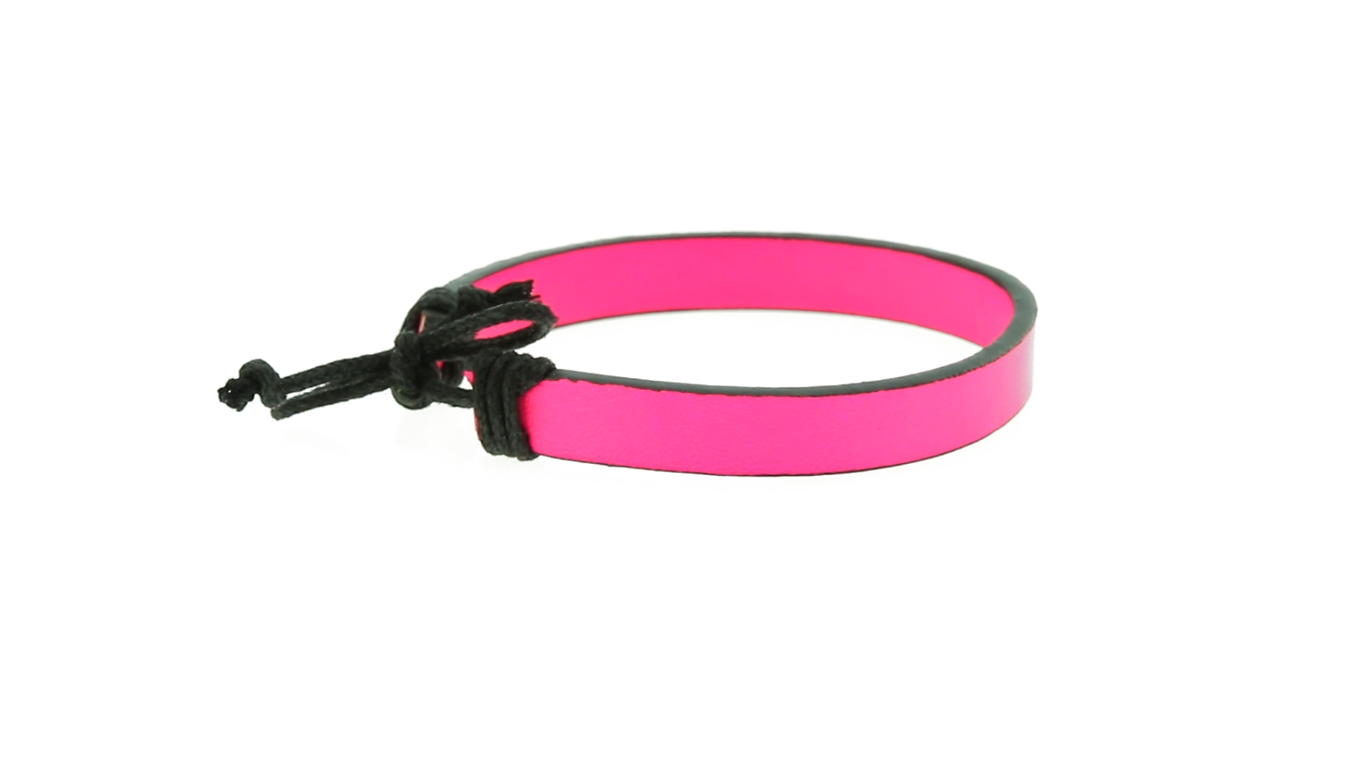 Armband mit zweifarbigem Design aus Kunstleder in Neonfarben mit Kontrastdetails in Schwarz. Mit verstellbarem, verstärktem Bandverschluss.