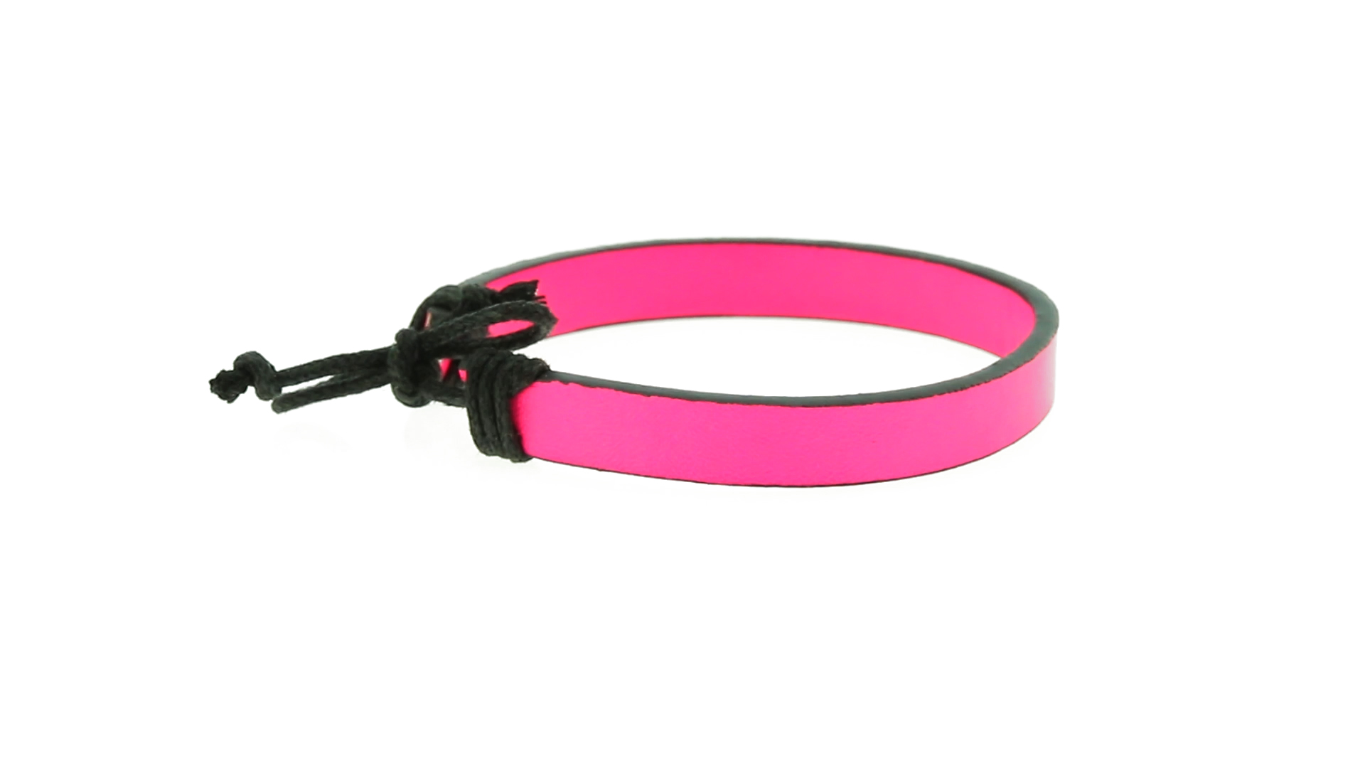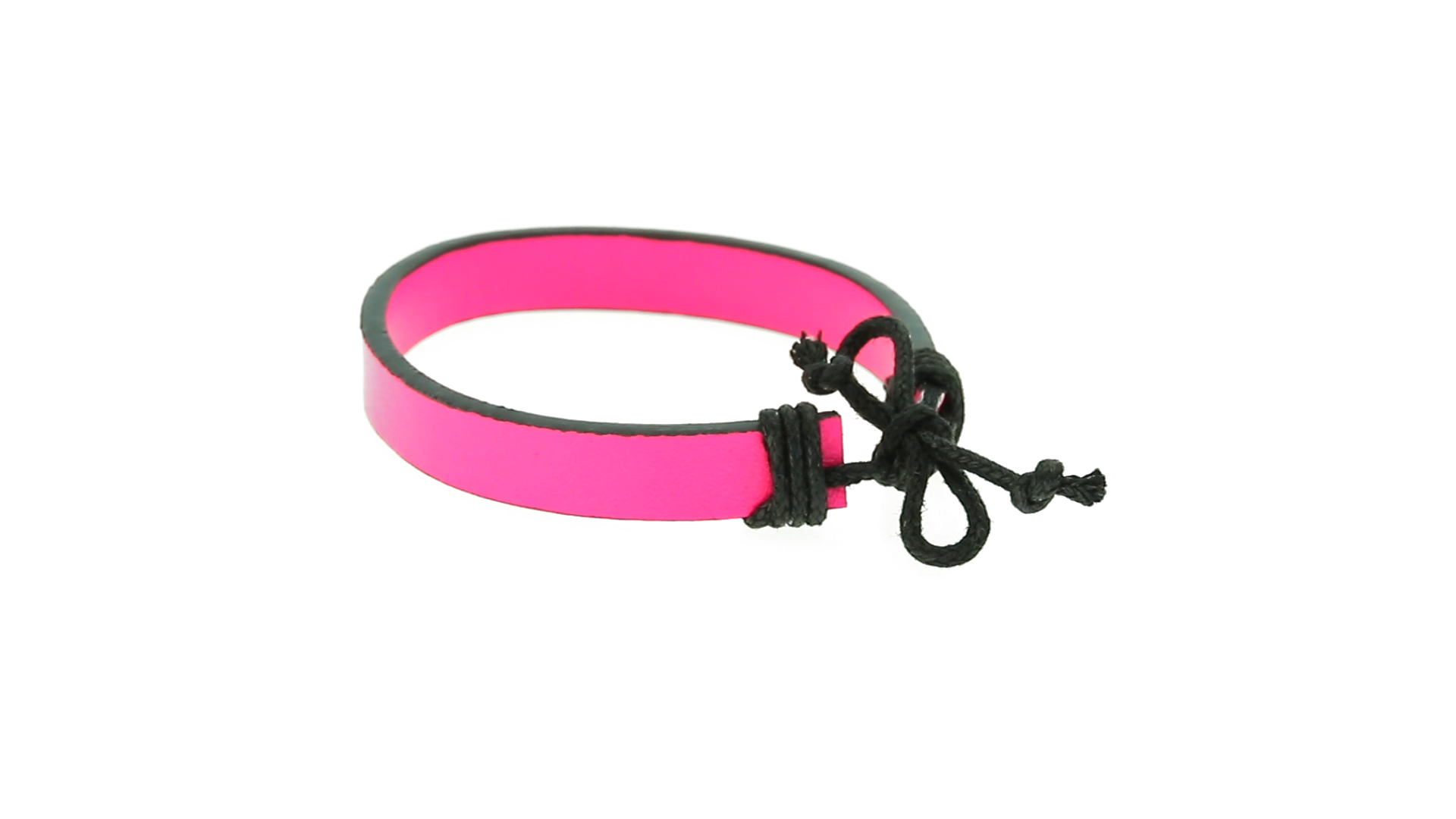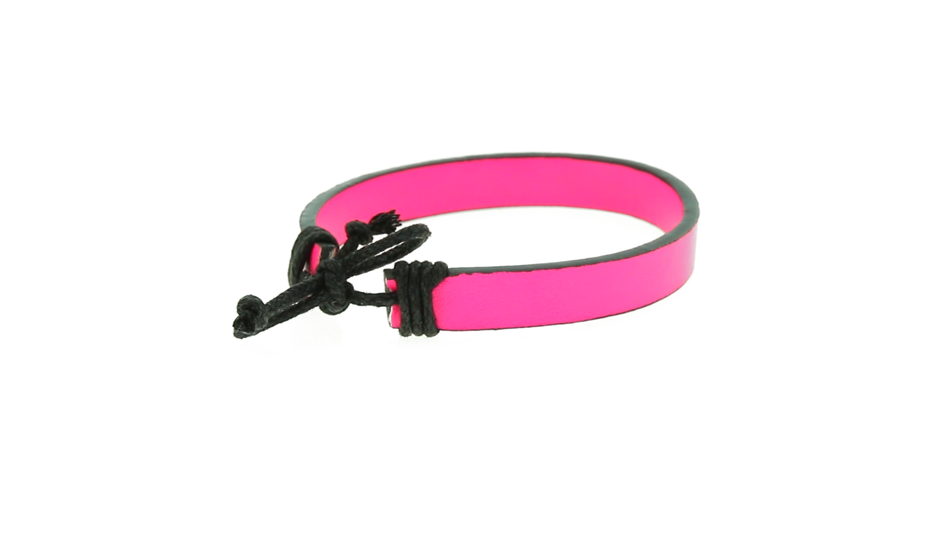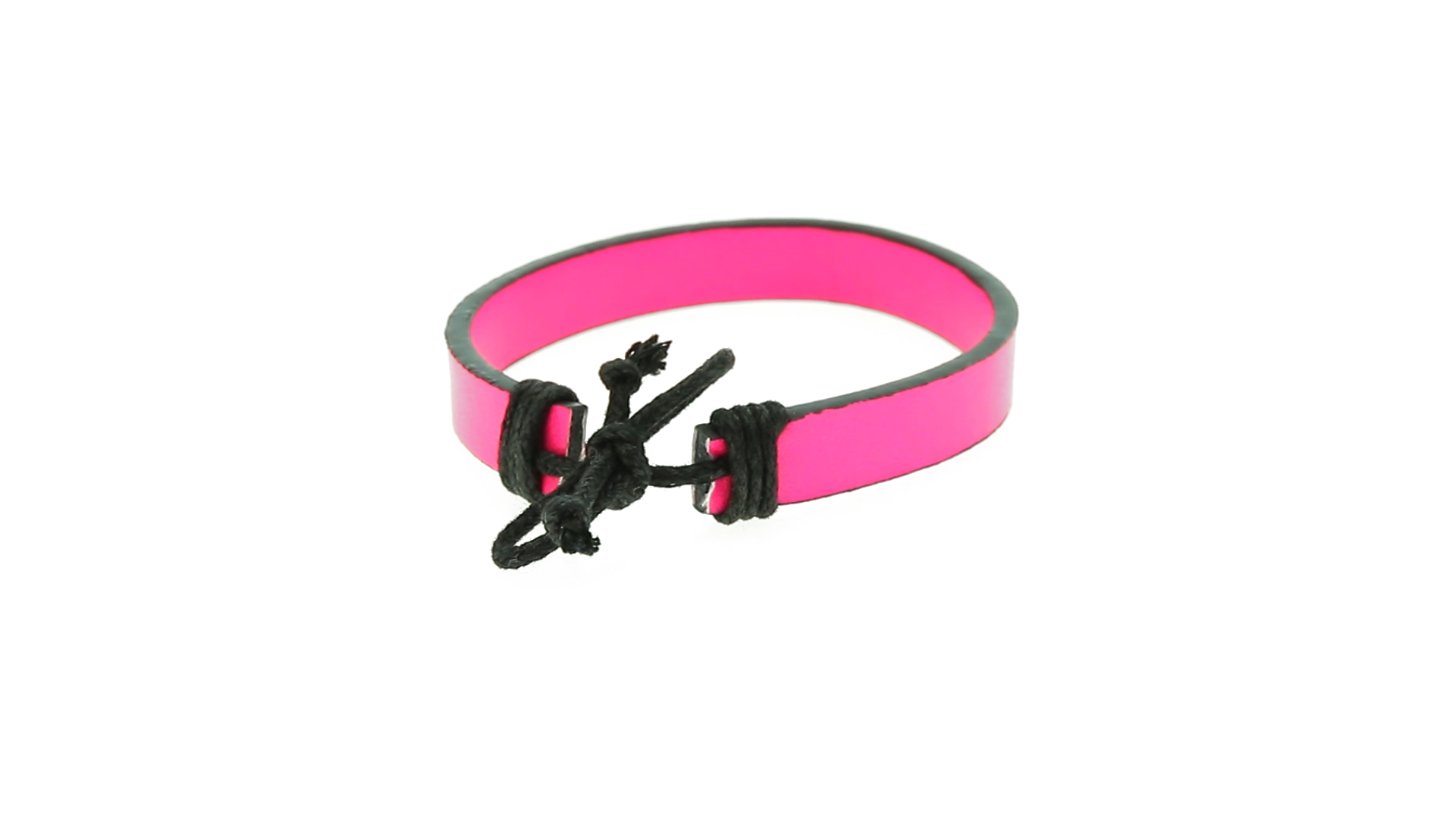 Armband mit zweifarbigem Design aus Kunstleder in Neonfarben mit Kontrastdetails in Schwarz. Mit verstellbarem, verstärktem Bandverschluss.