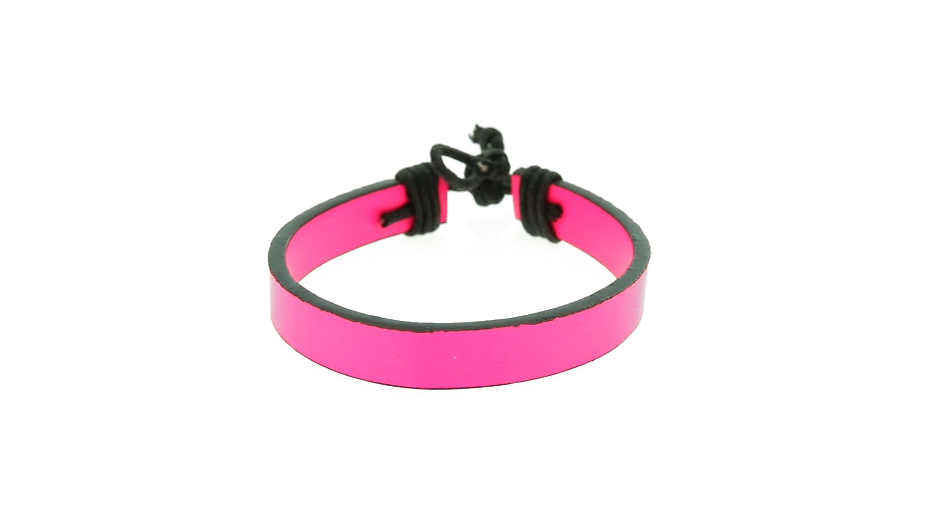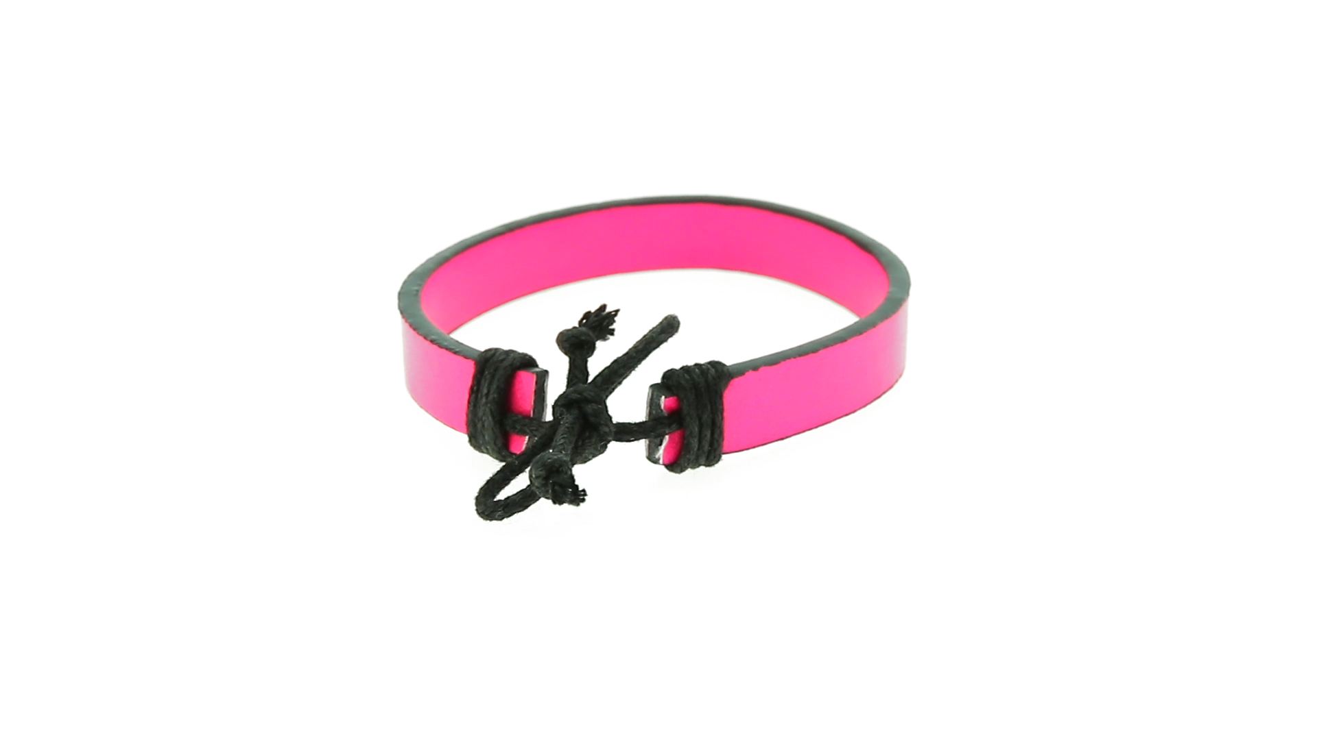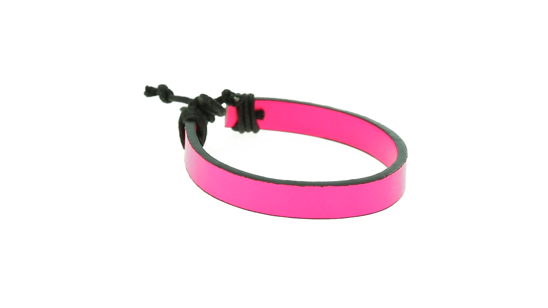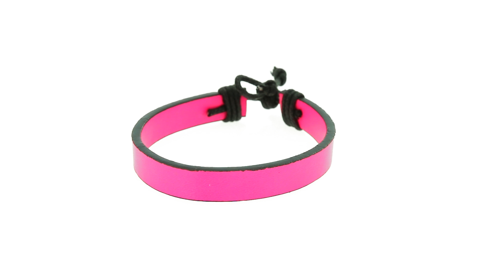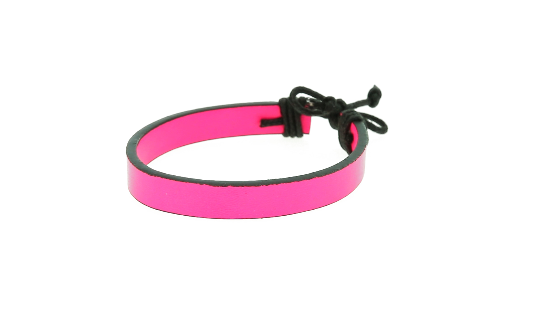 Armband mit zweifarbigem Design aus Kunstleder in Neonfarben mit Kontrastdetails in Schwarz. Mit verstellbarem, verstärktem Bandverschluss.