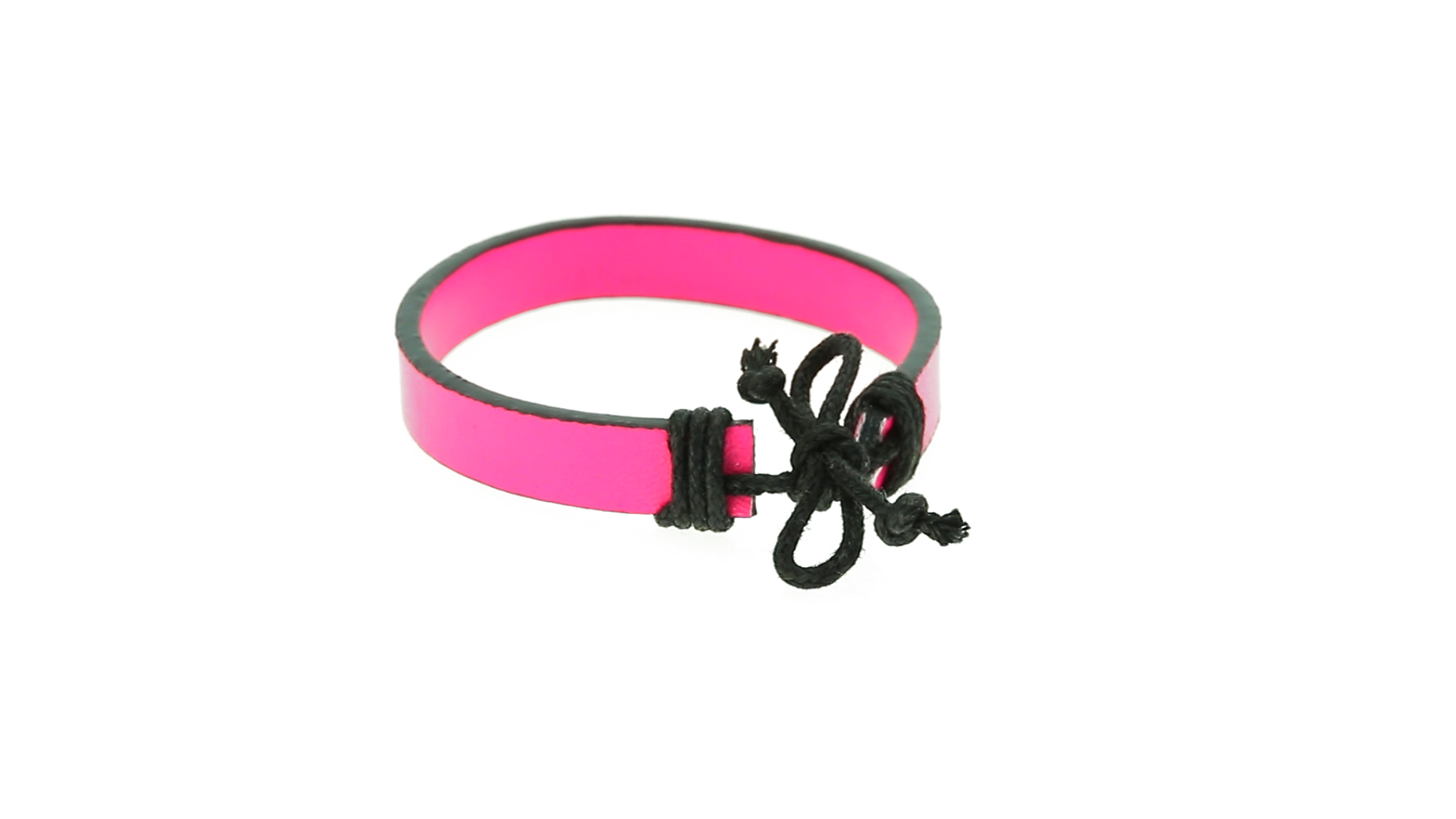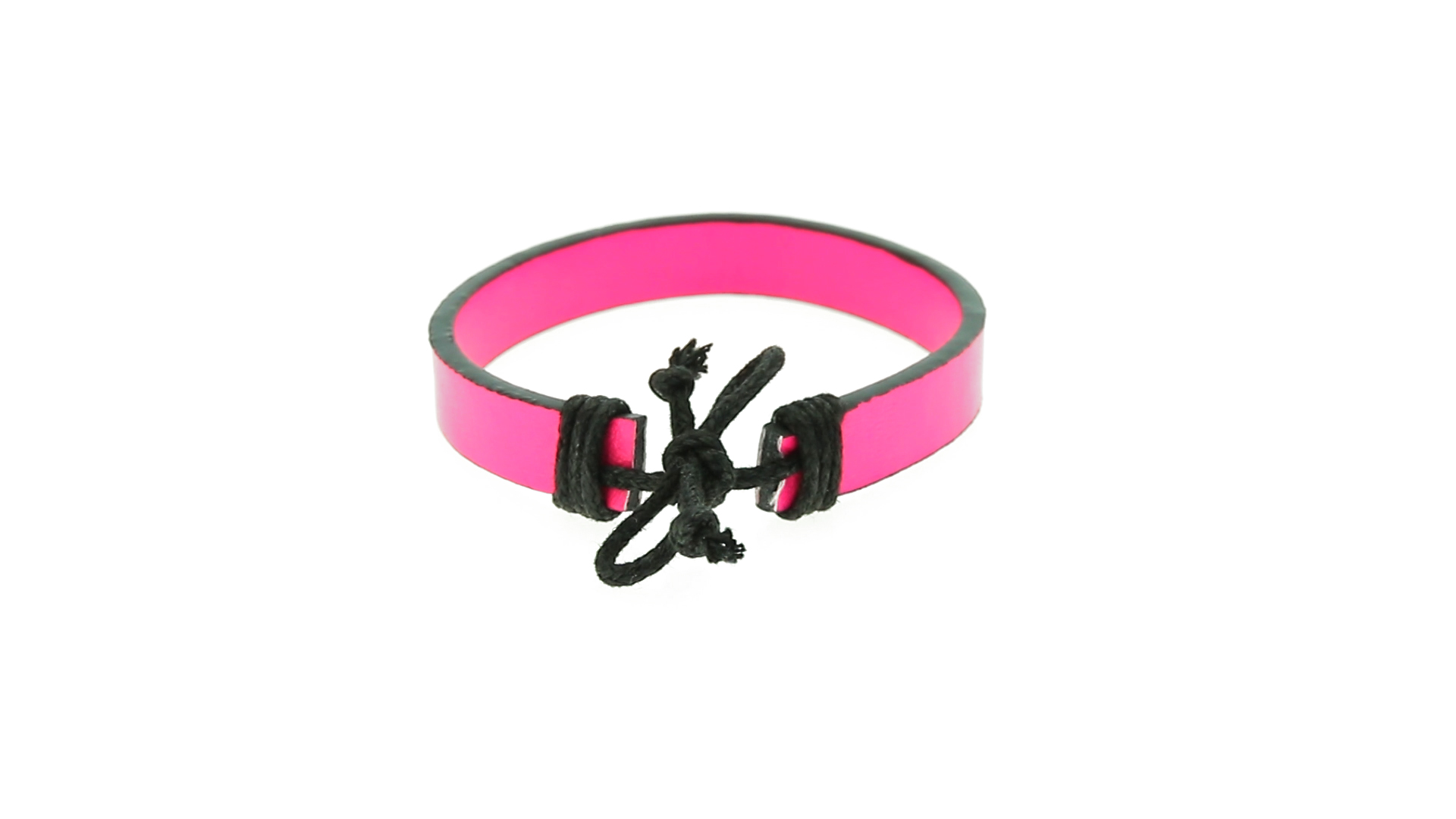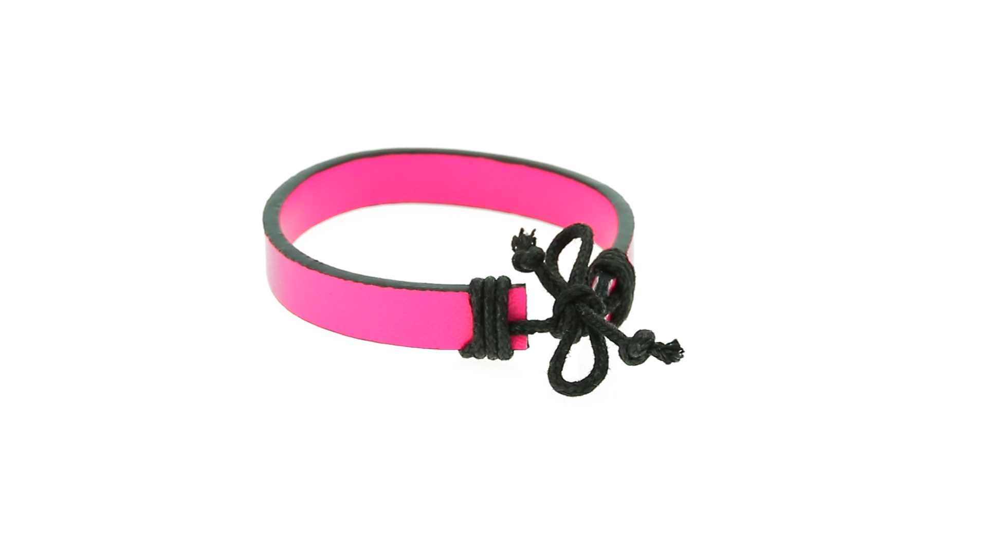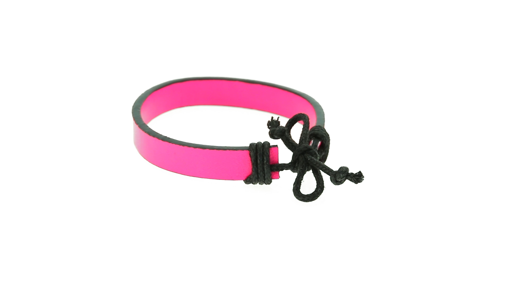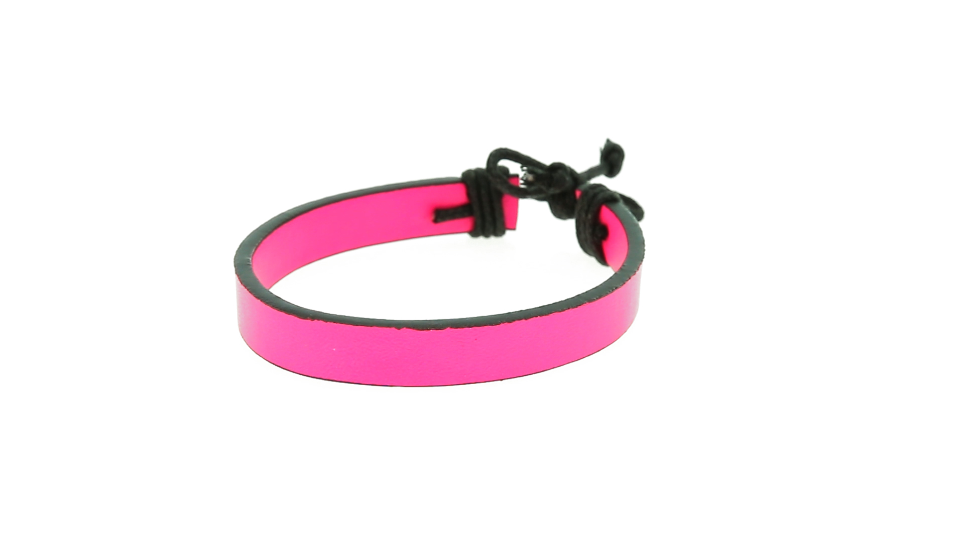 Armband mit zweifarbigem Design aus Kunstleder in Neonfarben mit Kontrastdetails in Schwarz. Mit verstellbarem, verstärktem Bandverschluss.