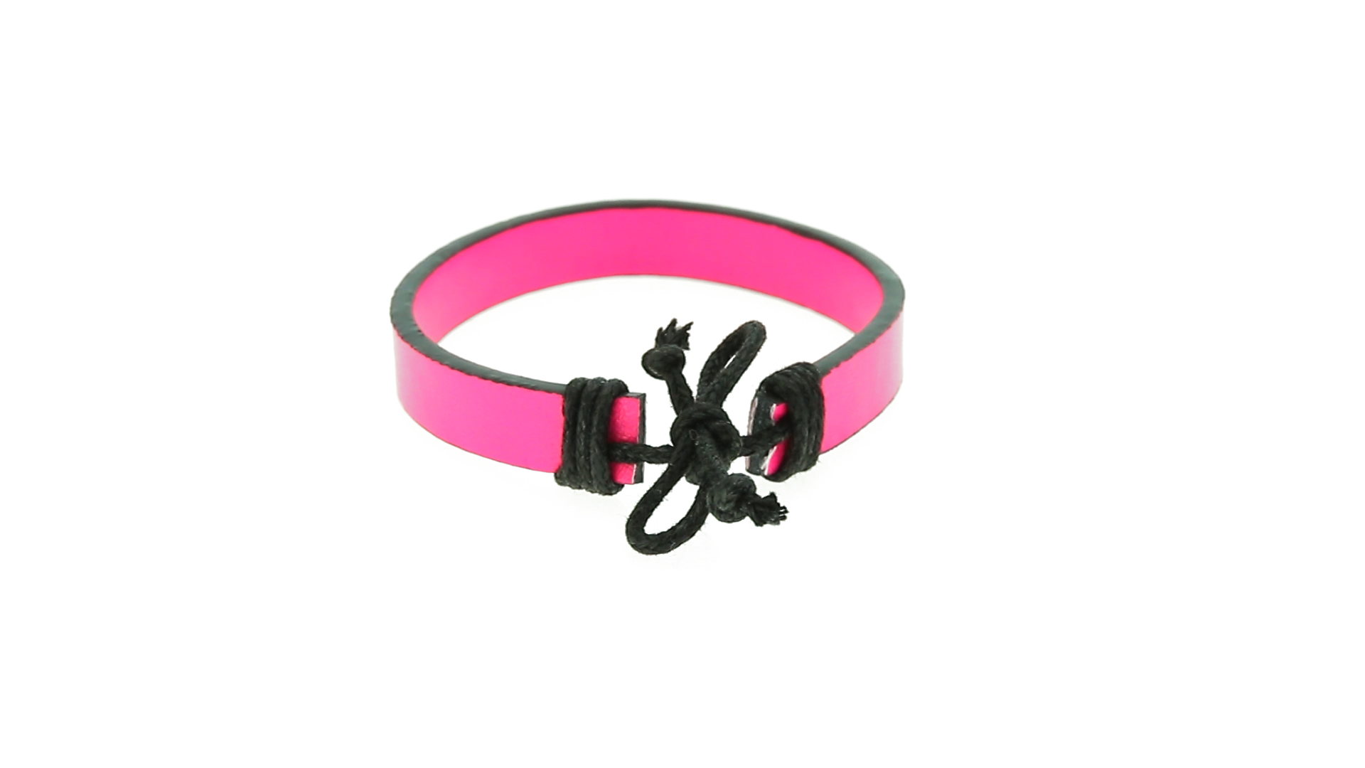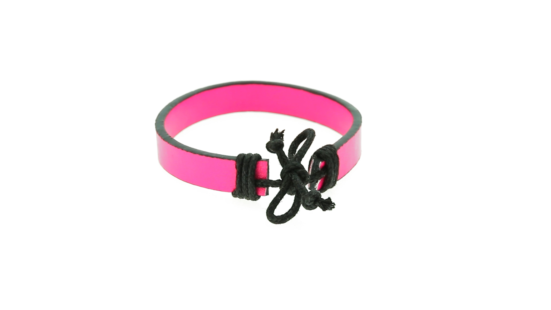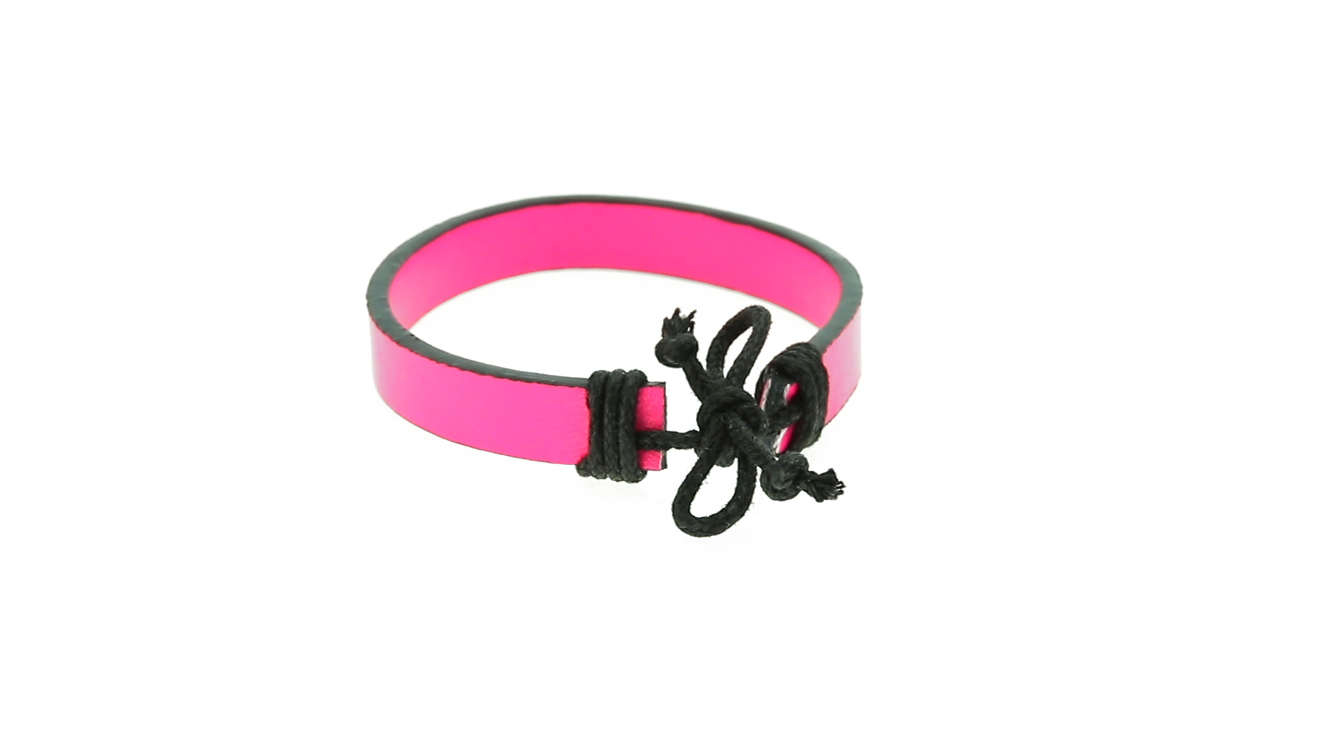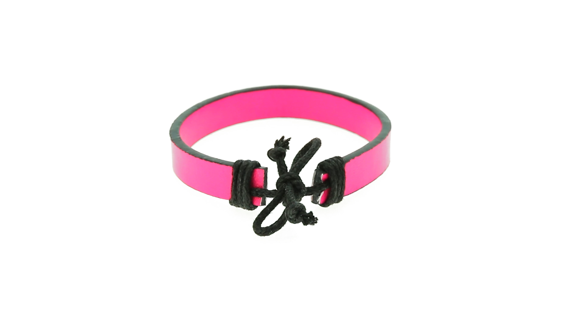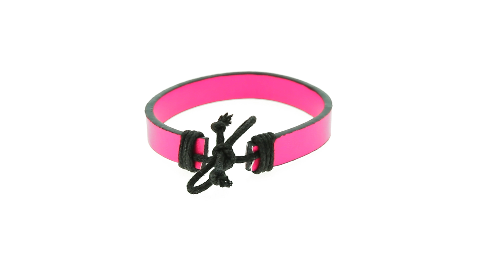 Armband mit zweifarbigem Design aus Kunstleder in Neonfarben mit Kontrastdetails in Schwarz. Mit verstellbarem, verstärktem Bandverschluss.