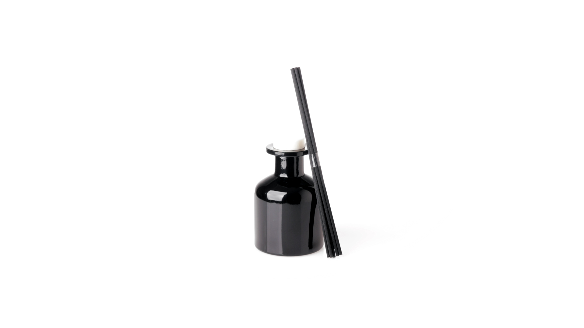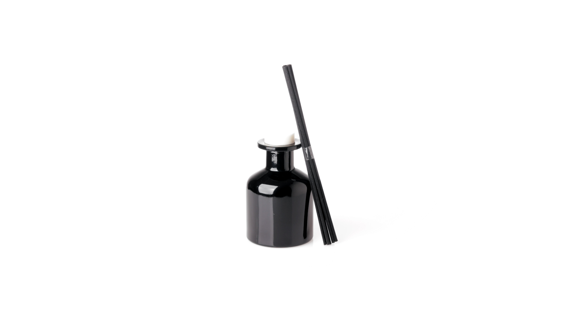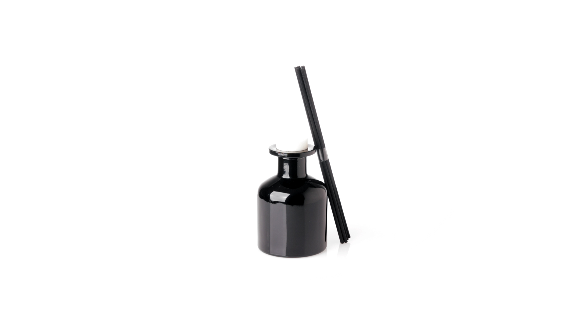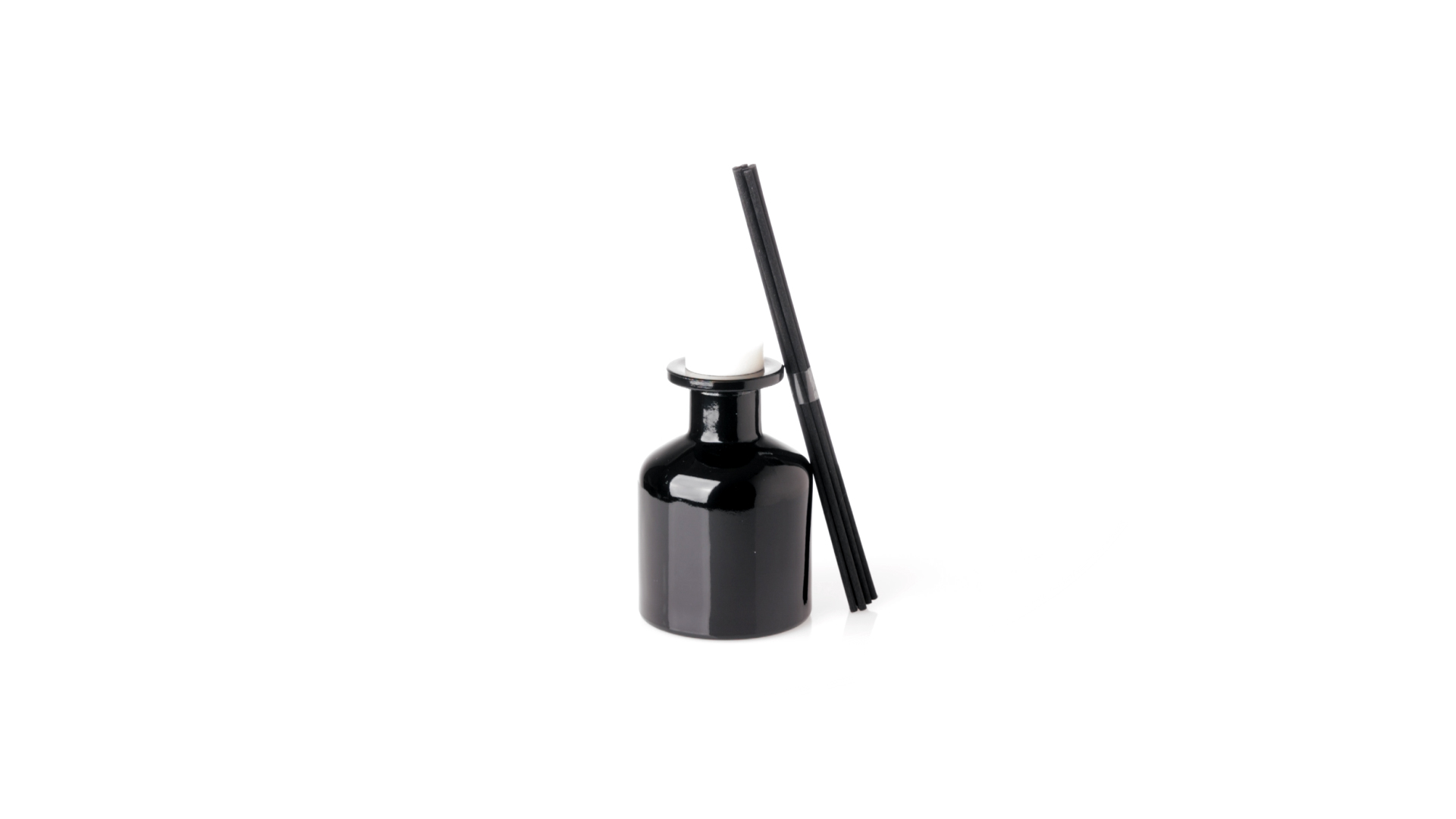 Duftzerstäuber 100 ml, hergestellt aus massivem Glas. Mit 8 Rattanstäbchen und auslaufsicherem Deckel. Weisses Modell mit Vanilleduft und schwarzes Modell mit Sandelholzduft. Präsentiert in einer individuellen weissen Schachtel mit Sichtfenster.