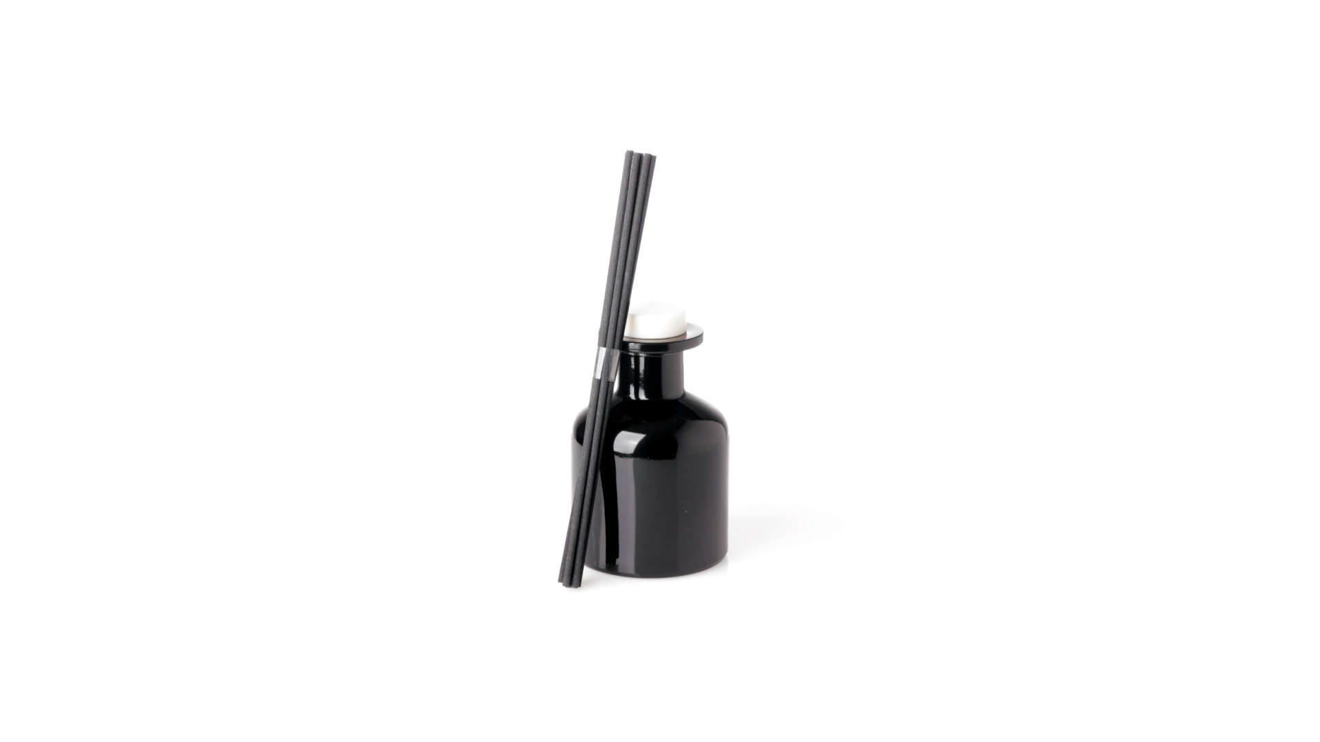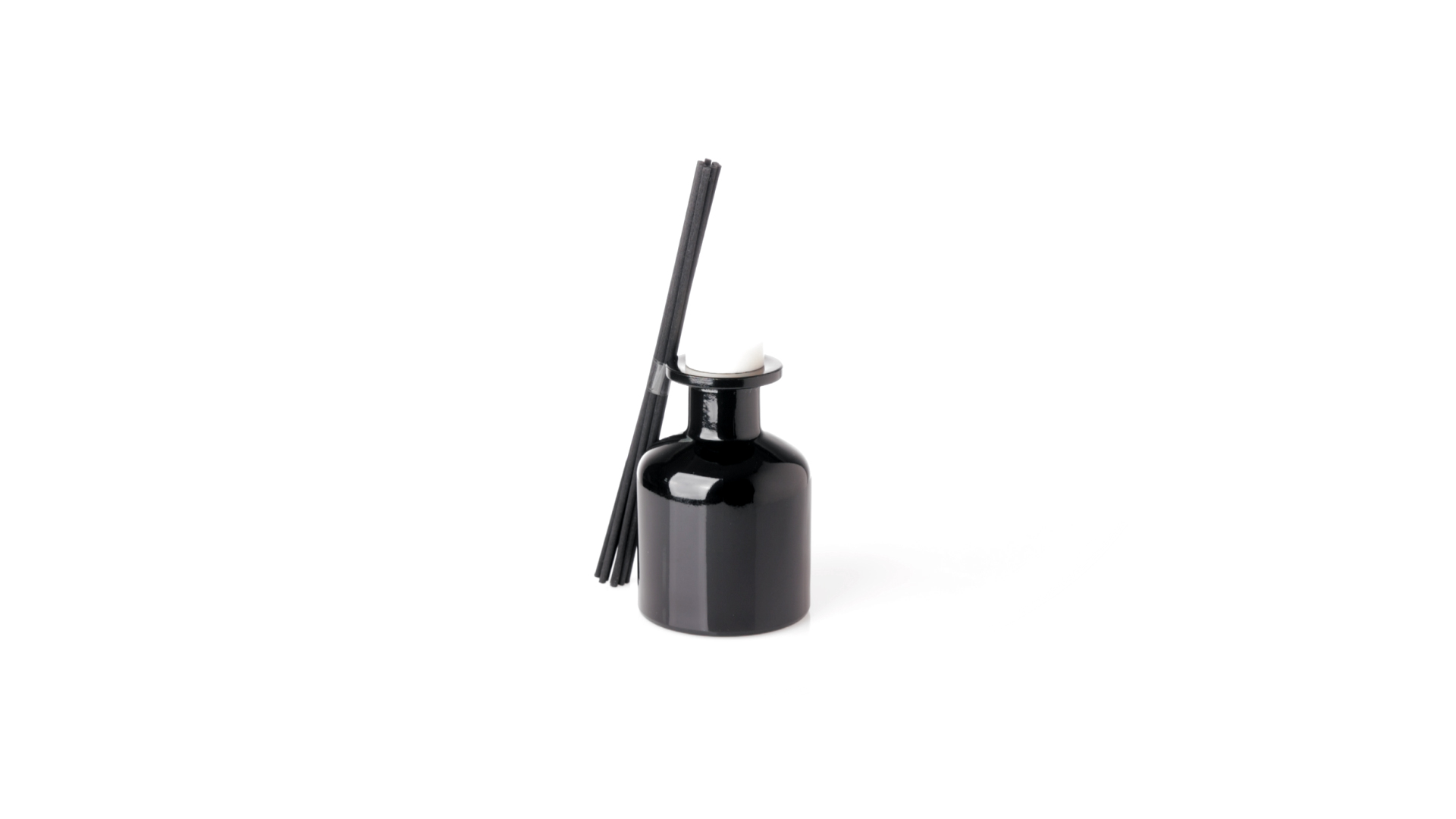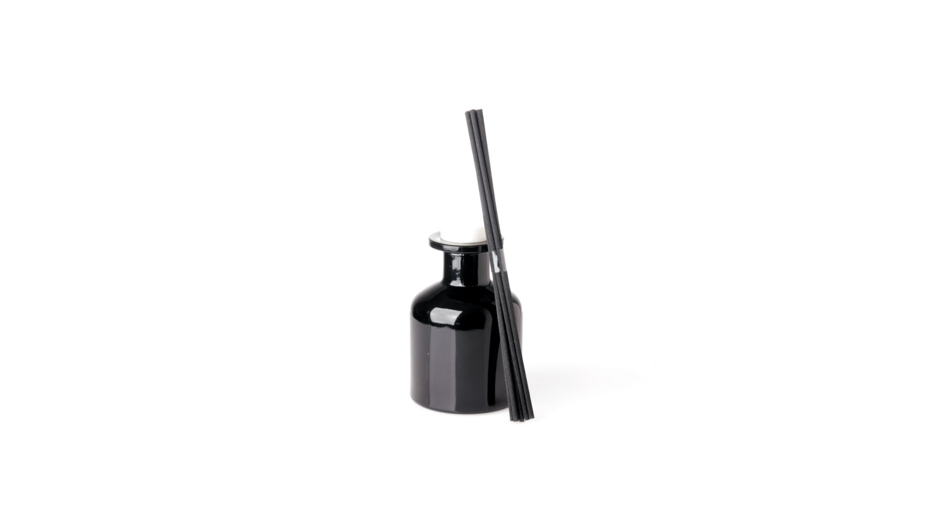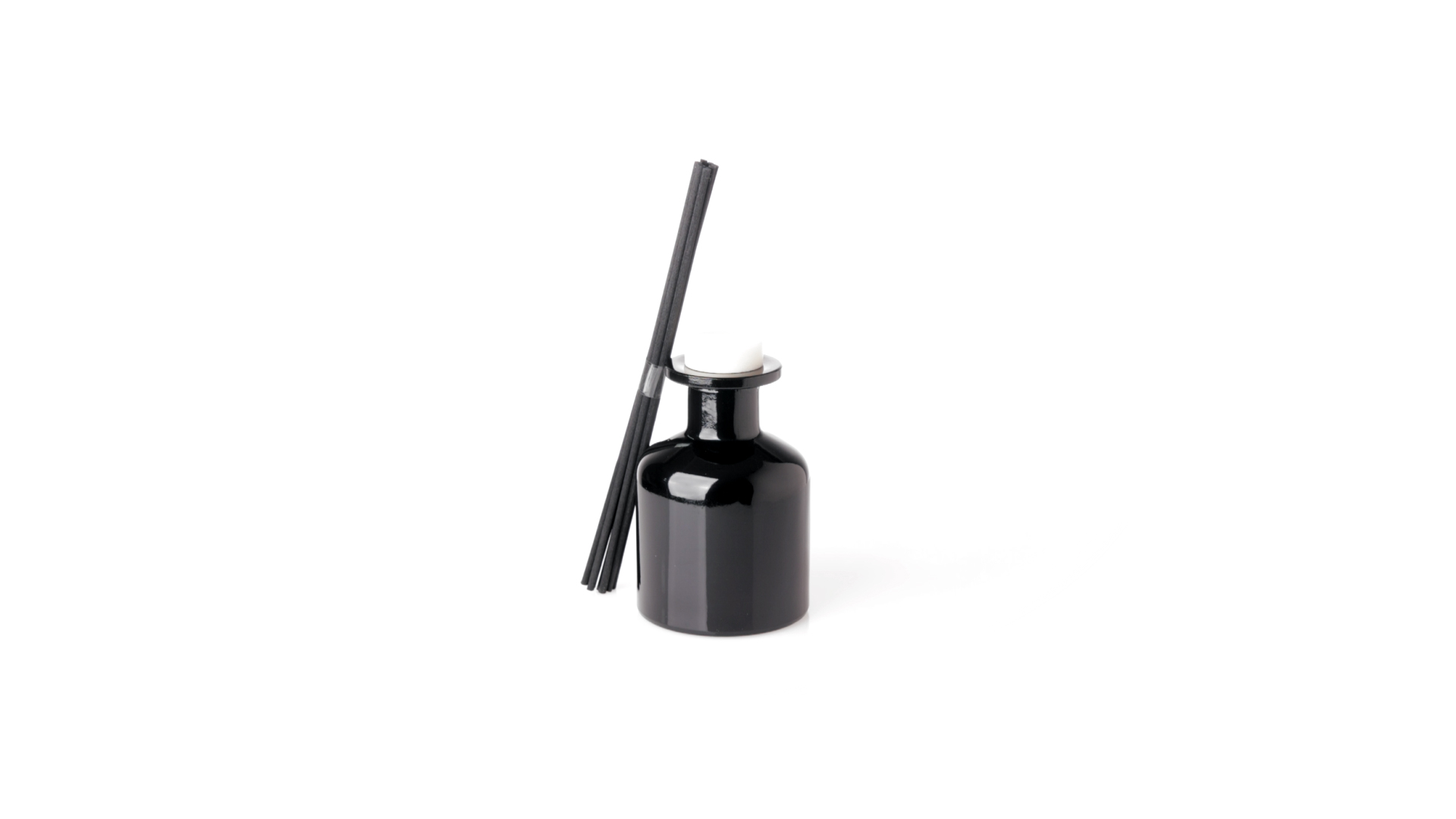Duftzerstäuber 100 ml, hergestellt aus massivem Glas. Mit 8 Rattanstäbchen und auslaufsicherem Deckel. Weisses Modell mit Vanilleduft und schwarzes Modell mit Sandelholzduft. Präsentiert in einer individuellen weissen Schachtel mit Sichtfenster.