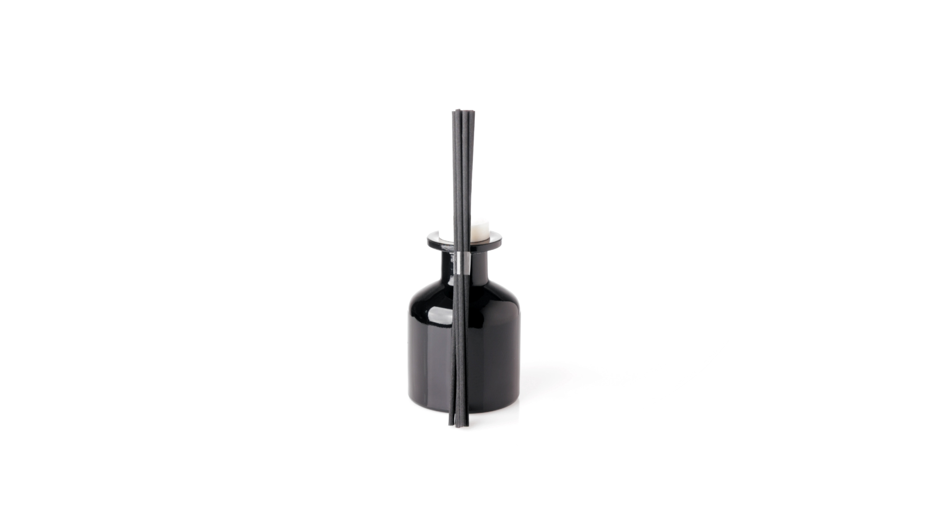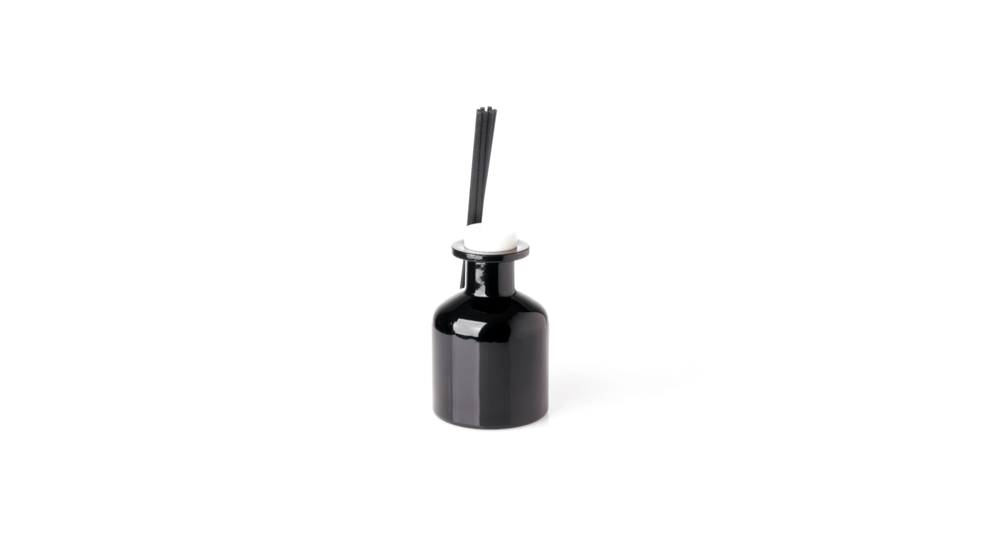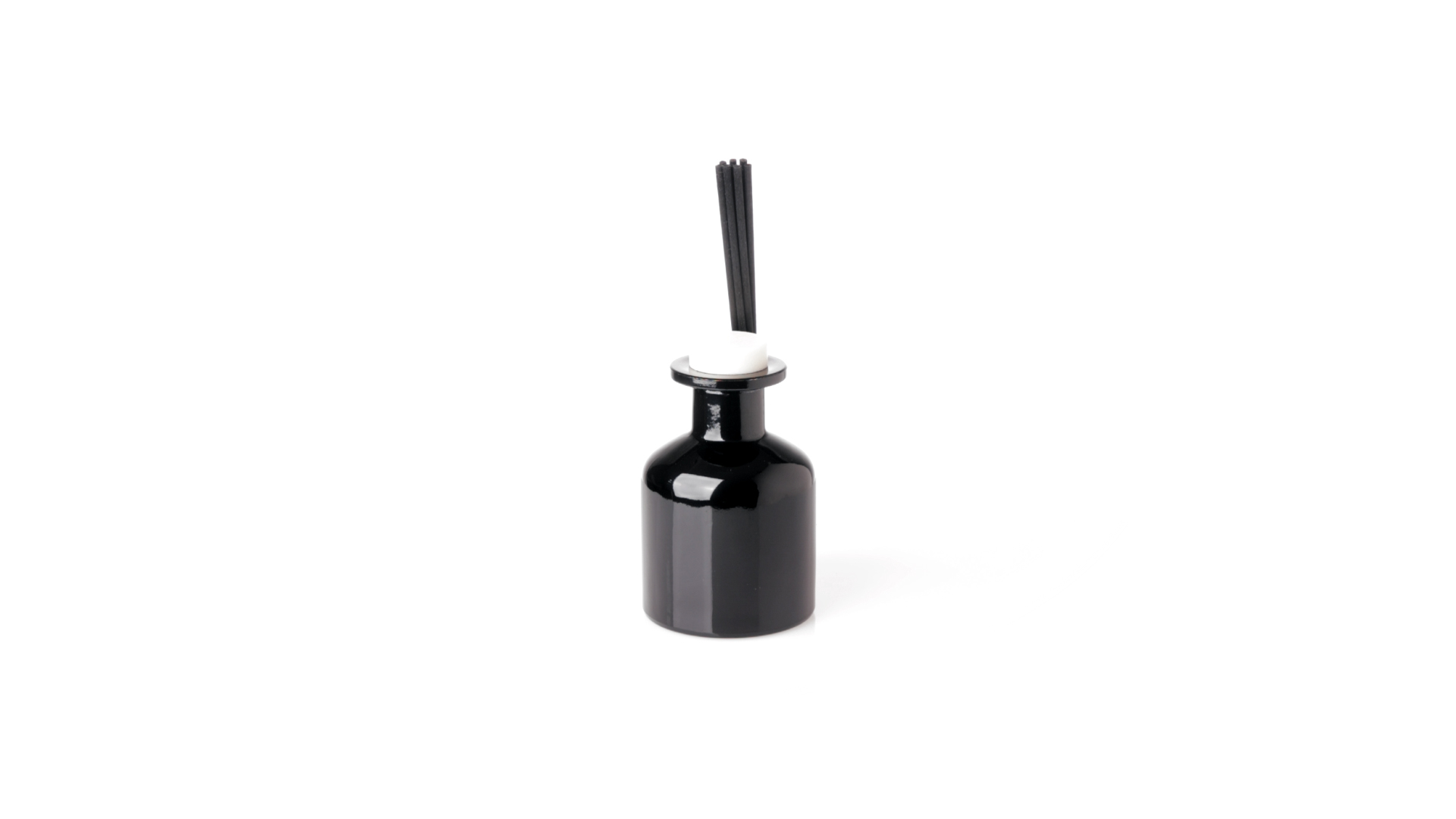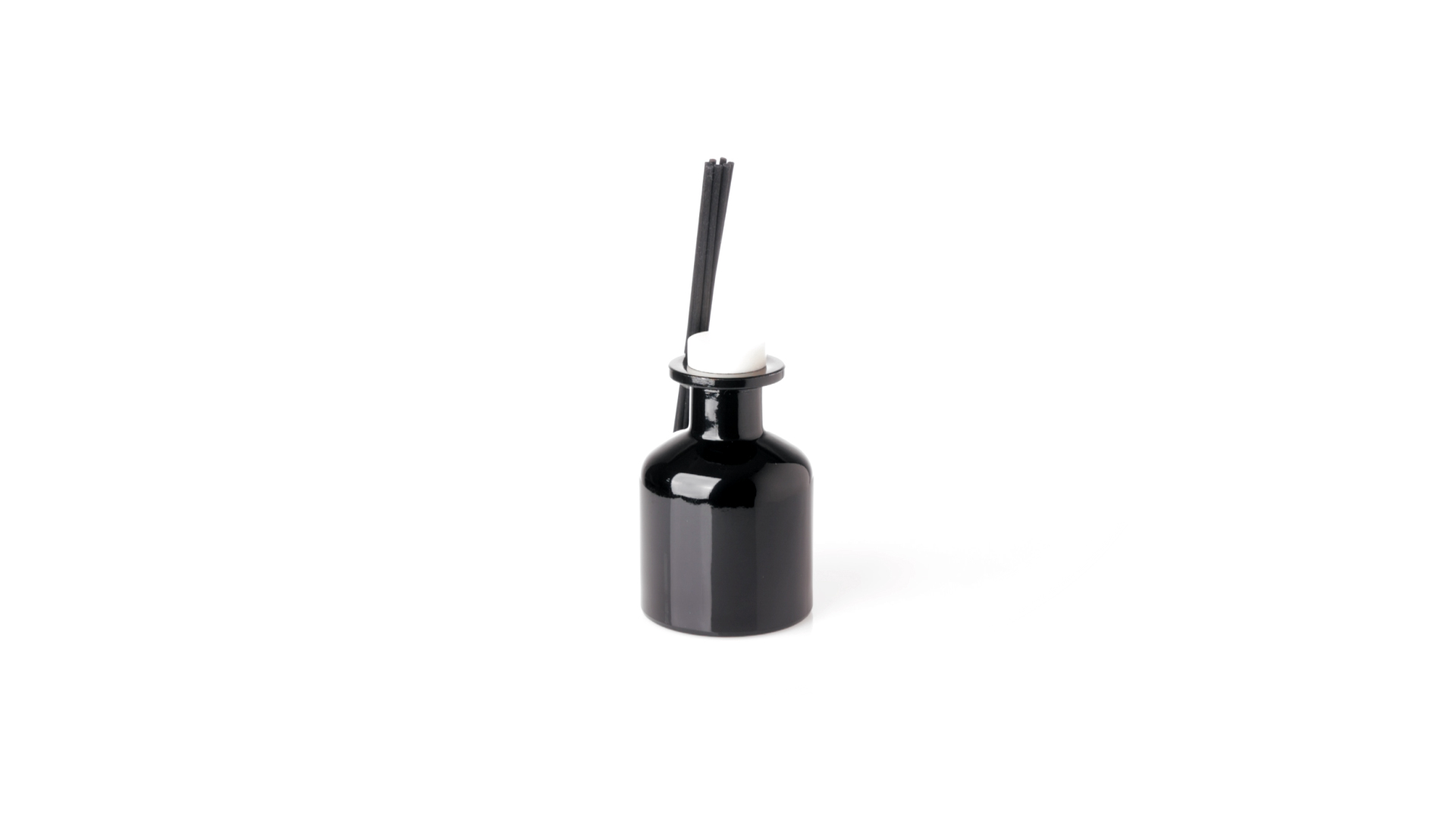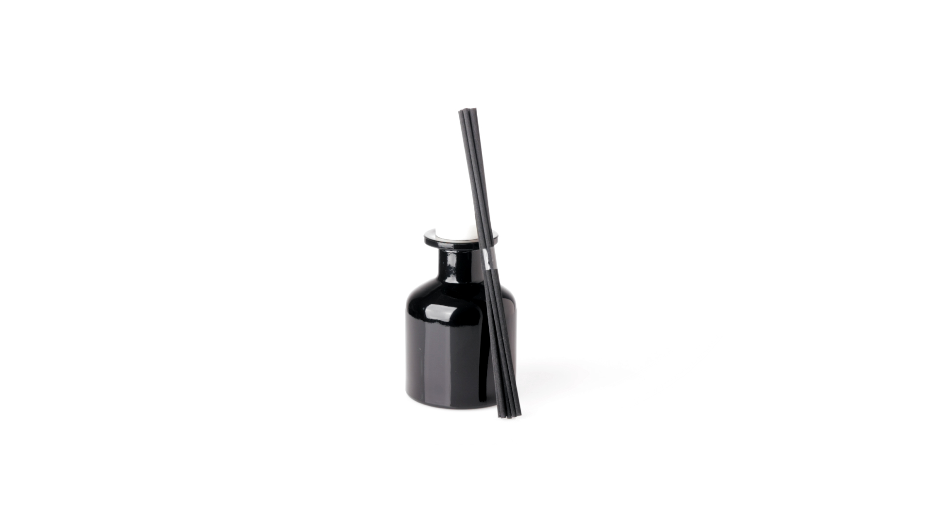 Duftzerstäuber 100 ml, hergestellt aus massivem Glas. Mit 8 Rattanstäbchen und auslaufsicherem Deckel. Weisses Modell mit Vanilleduft und schwarzes Modell mit Sandelholzduft. Präsentiert in einer individuellen weissen Schachtel mit Sichtfenster.