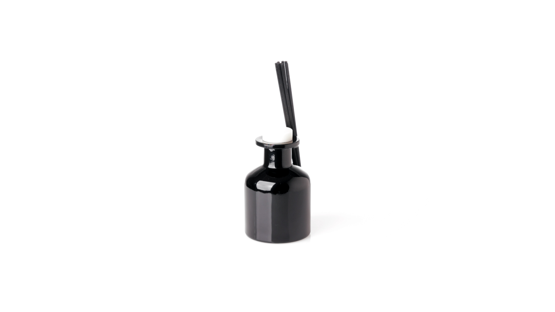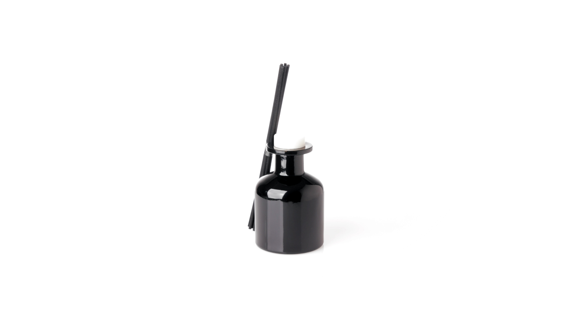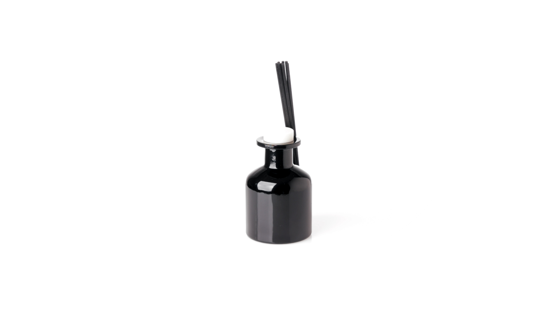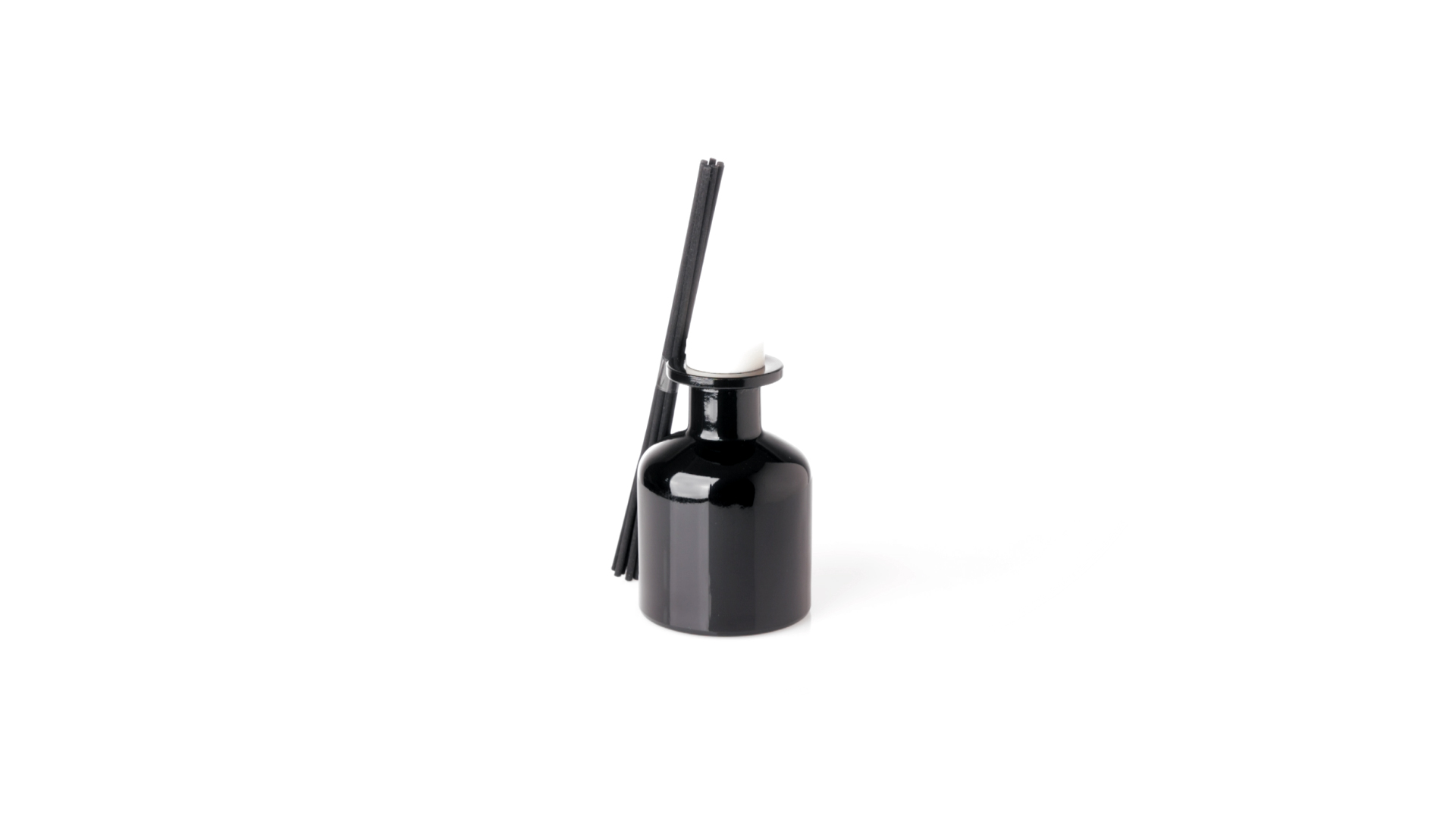 Duftzerstäuber 100 ml, hergestellt aus massivem Glas. Mit 8 Rattanstäbchen und auslaufsicherem Deckel. Weisses Modell mit Vanilleduft und schwarzes Modell mit Sandelholzduft. Präsentiert in einer individuellen weissen Schachtel mit Sichtfenster.