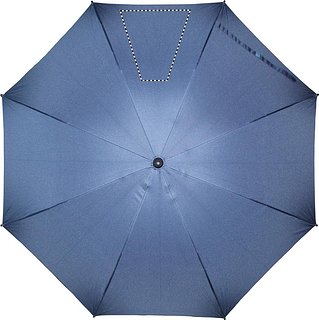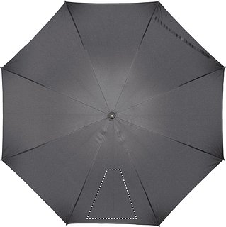 23'' Regenschirm aus 190T Seide. Windbeständig. Stock aus schwarz überzogenem Metall. Schienen aus schwarzem Fiberglas, Spitzen aus schwarzem Kunststoff. Gebogener, schwarz gummierter ABS Griff mit grauem Drücker. Automatische Öffnung, manuelle Schliessung.