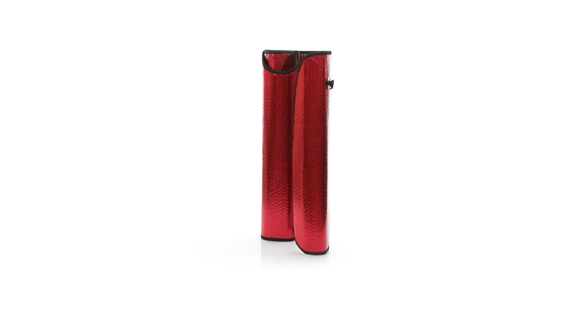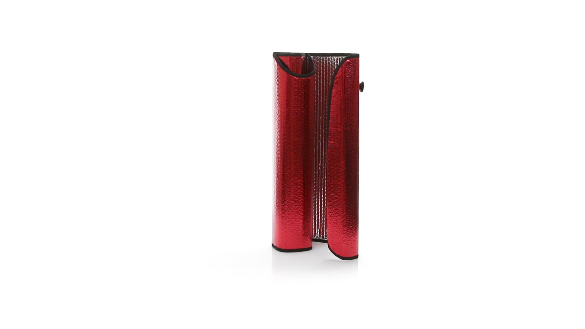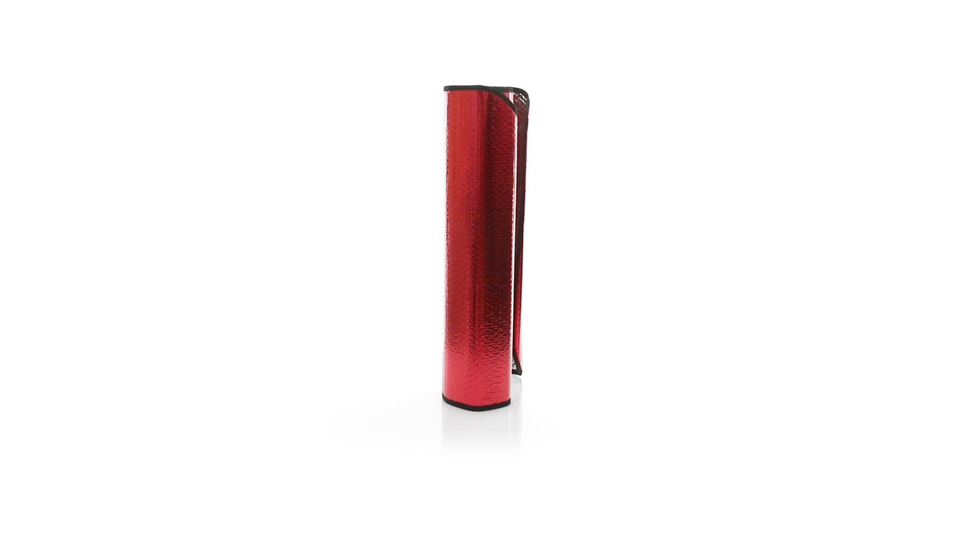 Sonnenschutz aus Aluminum in einer Vielzahl von kräftigen Metallic-Farben. Mit den Massen 130 x 60 cm, Metallösen zur Verstärkung, sowie zwei Saugnäpfen für die Befestigung an der Windschutzscheibe. Präsentiert in ungefaltetem Zustand für einfaches Bedrucken.