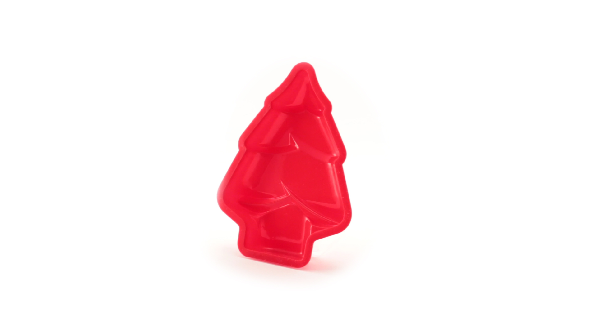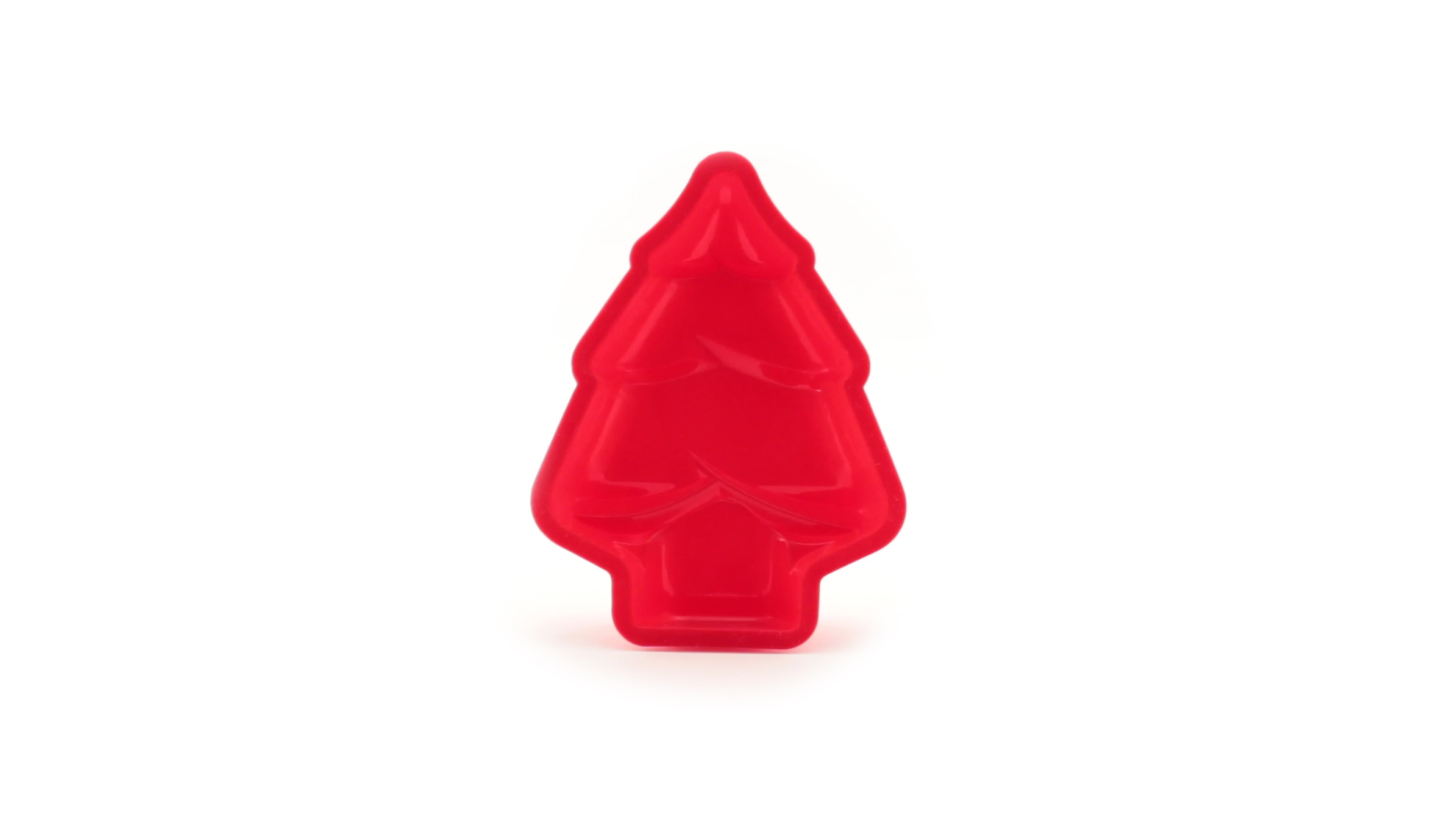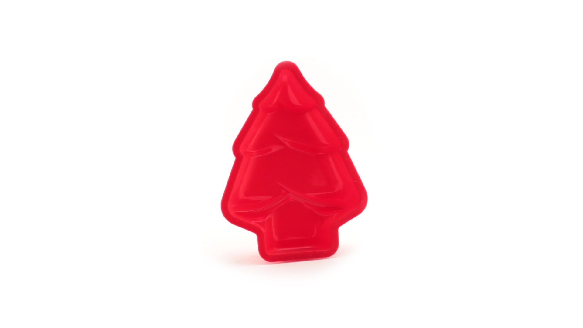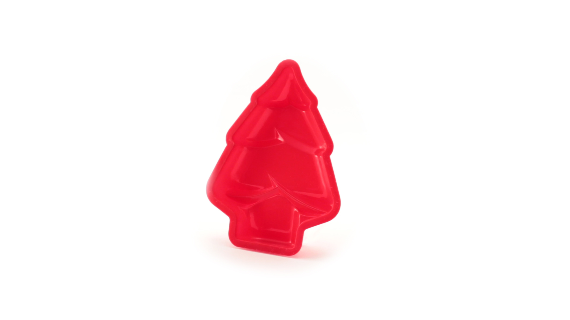 Silikonform in auffälligem Weihnachtsrot in Form eines Weihnachtsbaumes. Beständigkeit gegen Temperaturen von bis zu 240 °C.