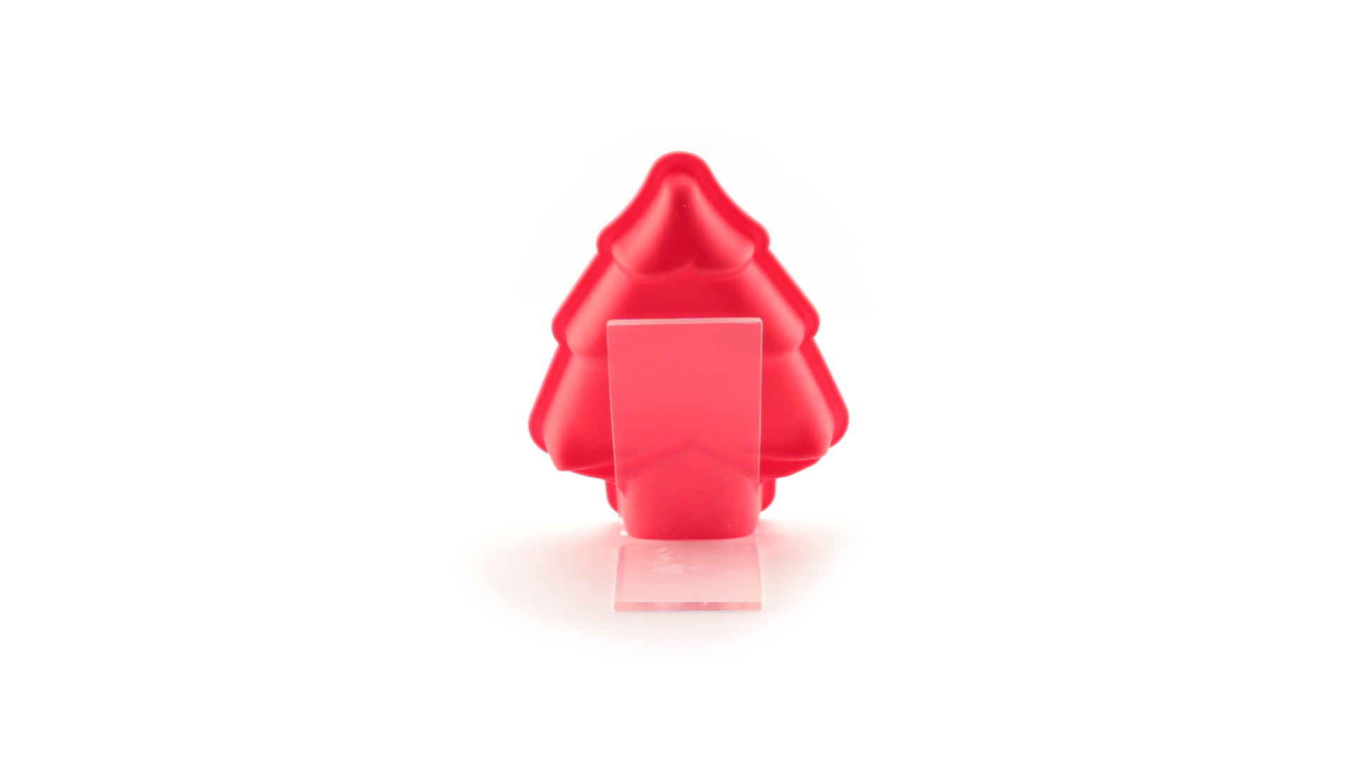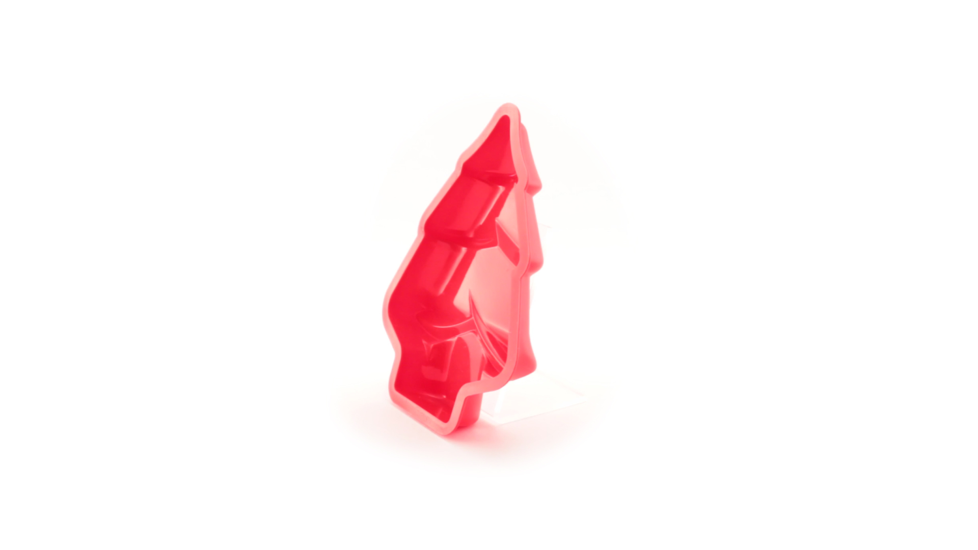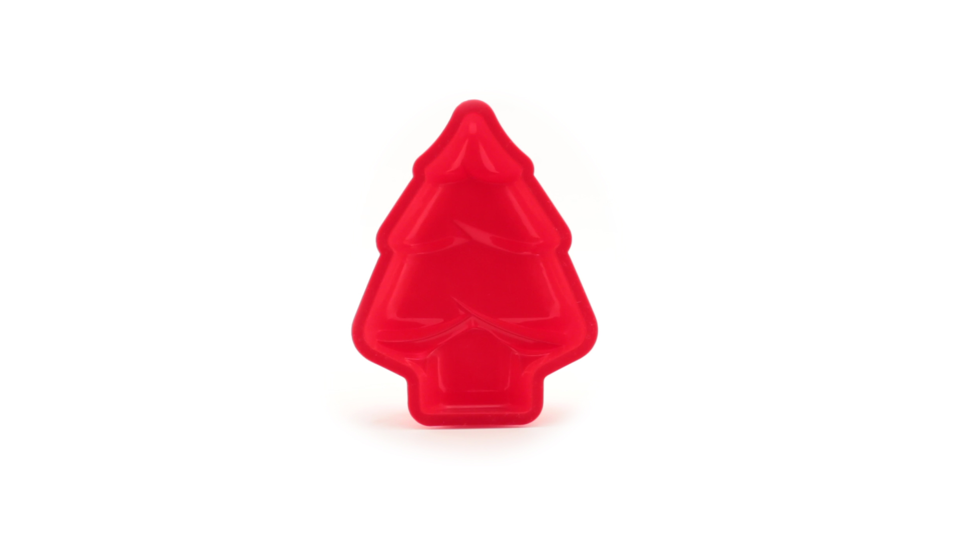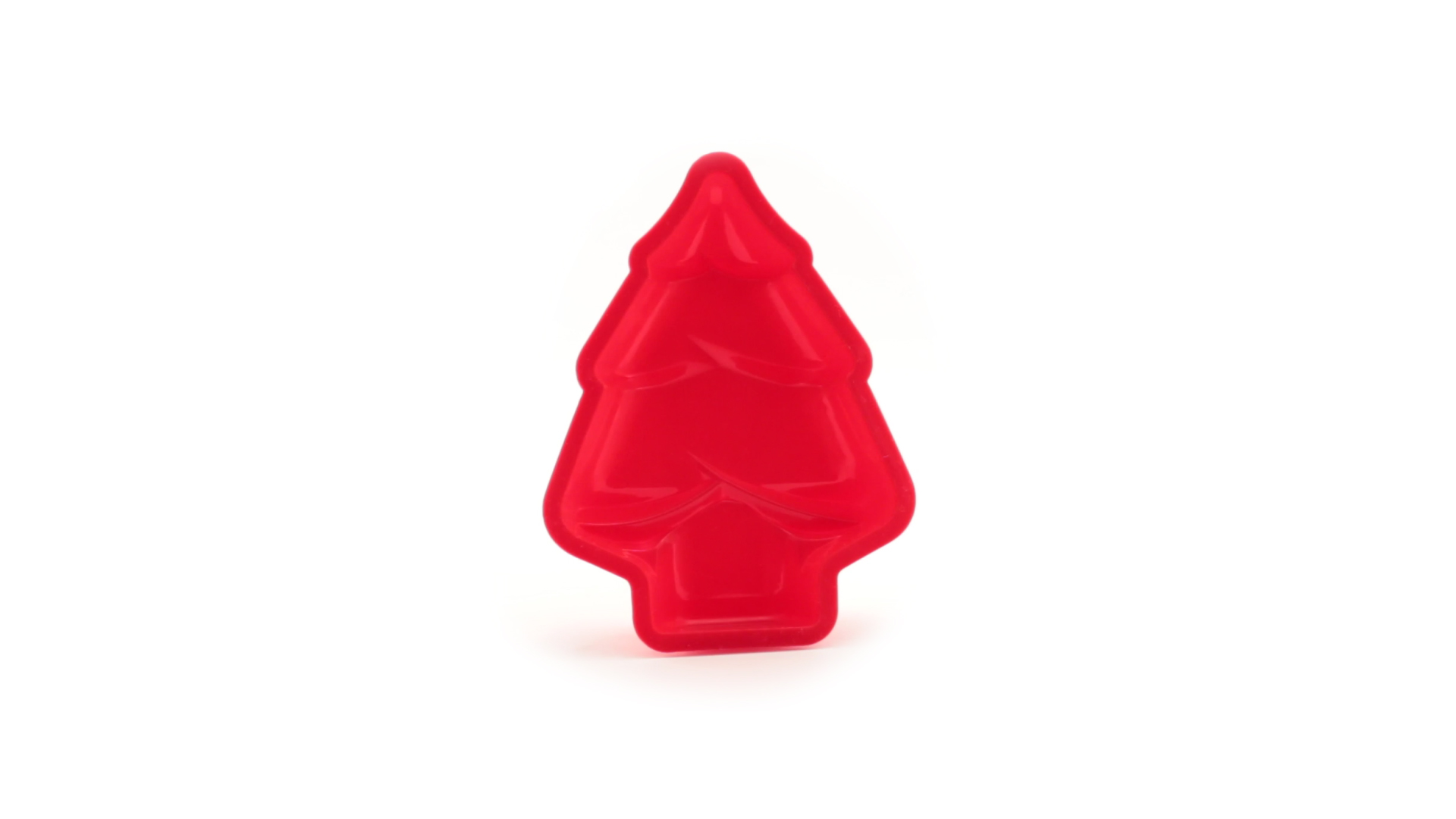 Silikonform in auffälligem Weihnachtsrot in Form eines Weihnachtsbaumes. Beständigkeit gegen Temperaturen von bis zu 240 °C.
