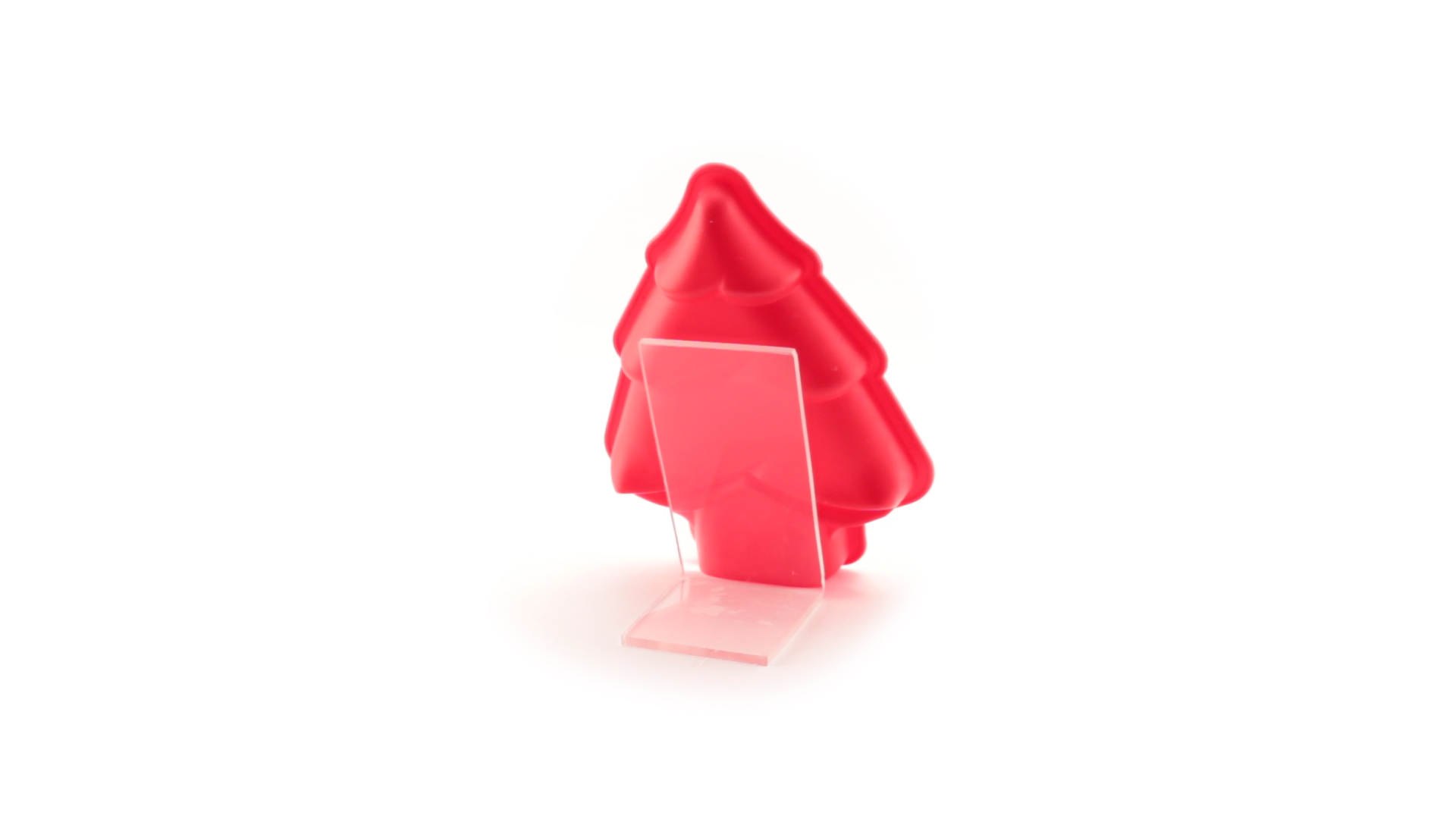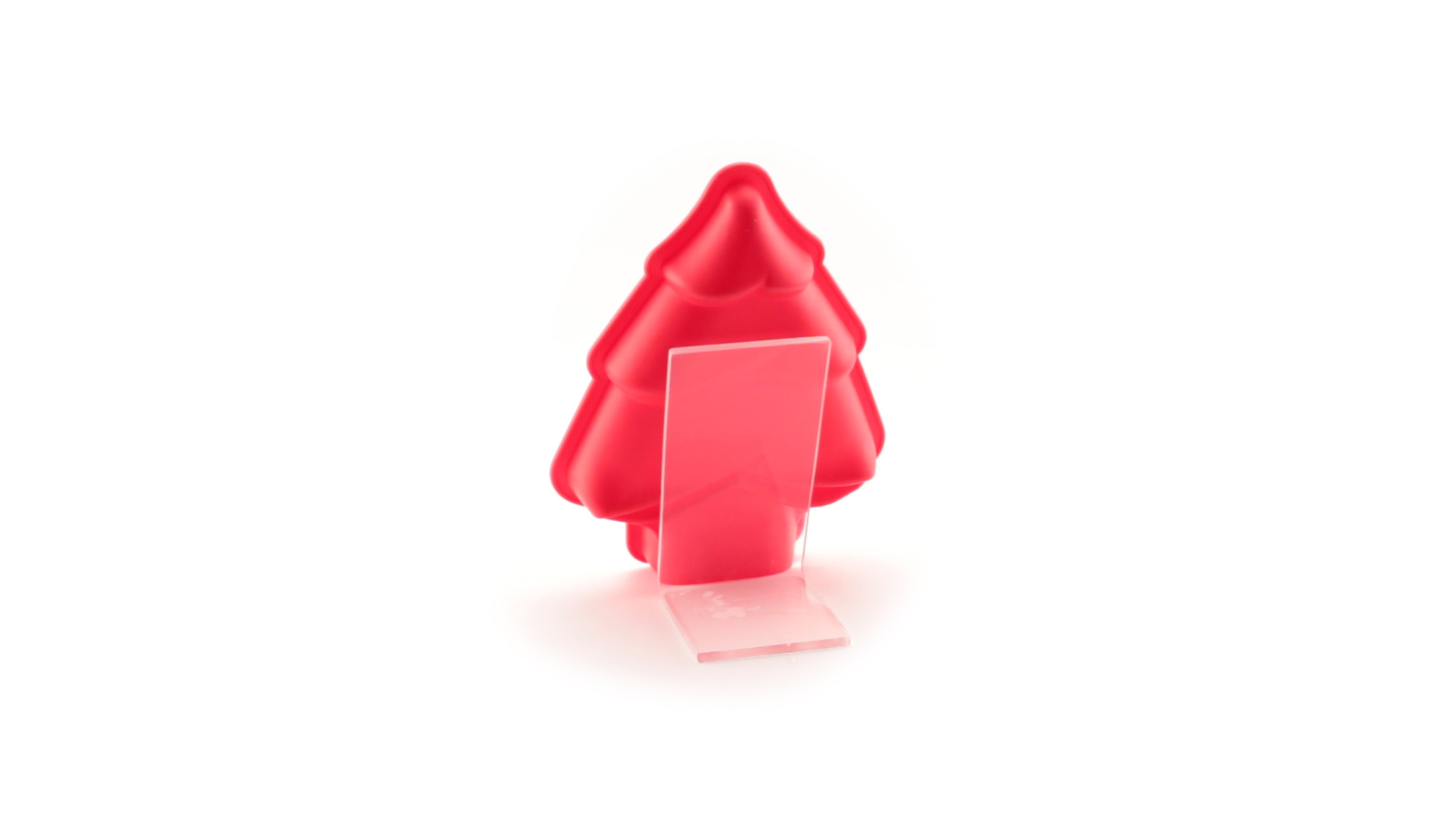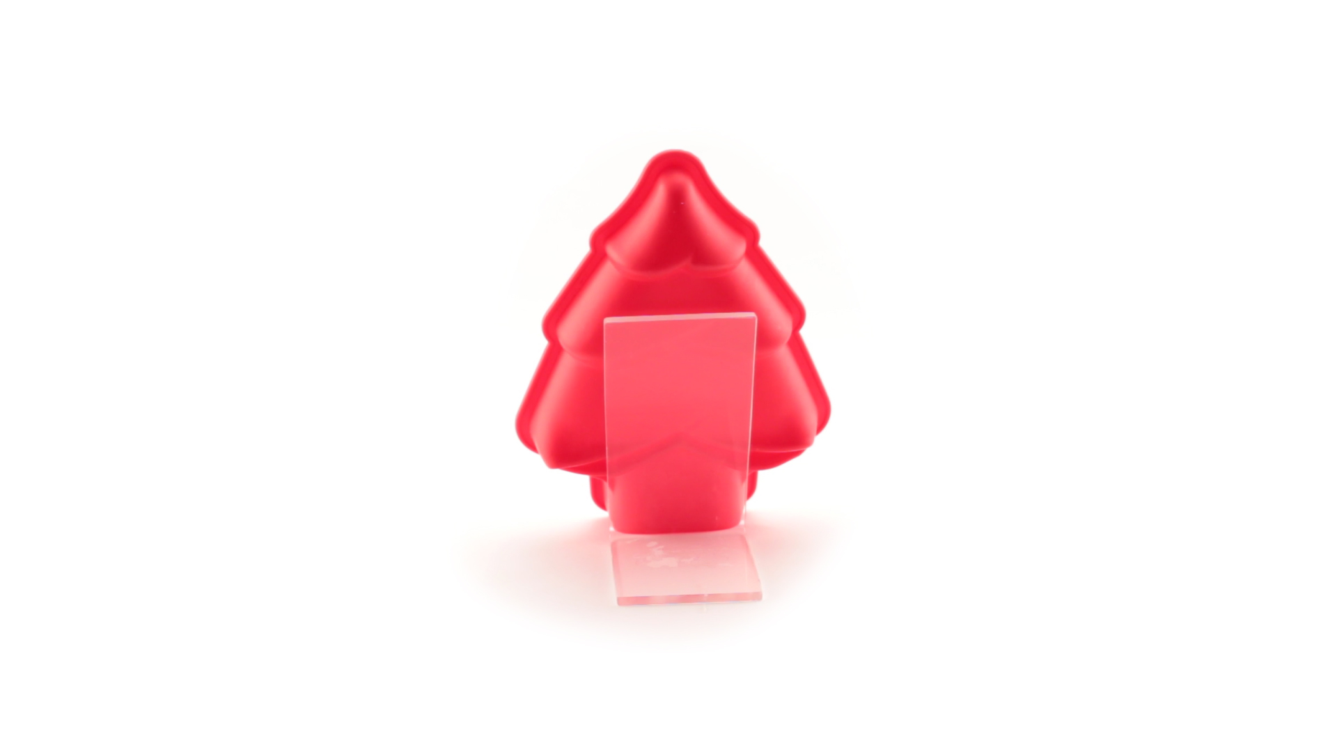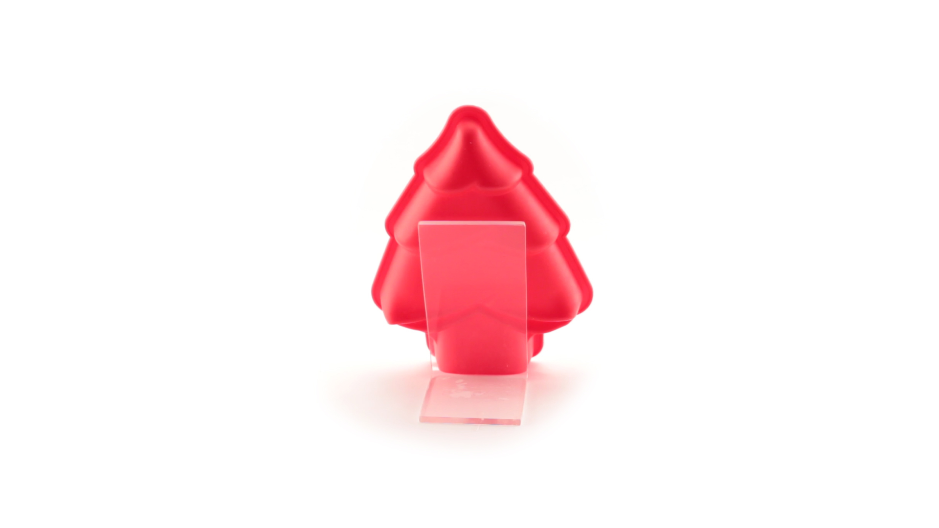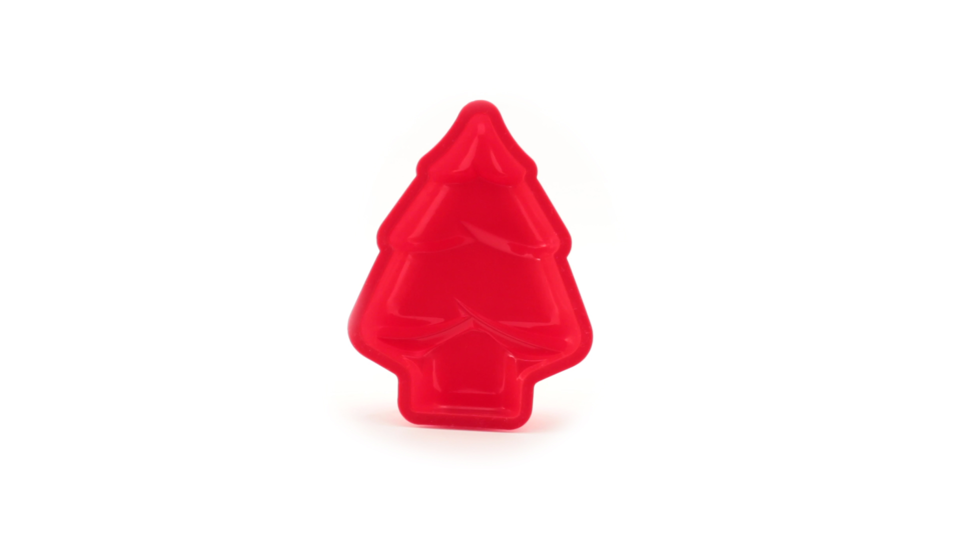 Silikonform in auffälligem Weihnachtsrot in Form eines Weihnachtsbaumes. Beständigkeit gegen Temperaturen von bis zu 240 °C.