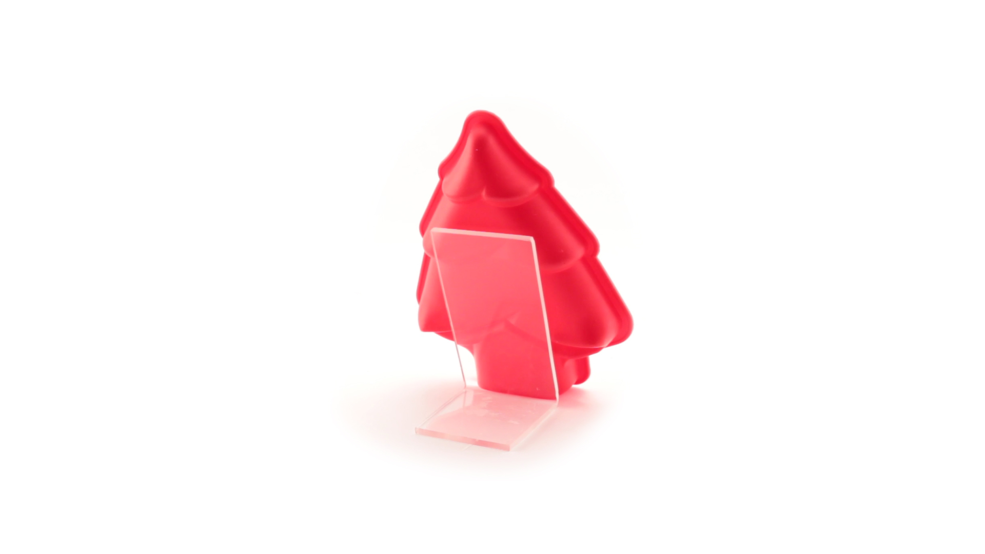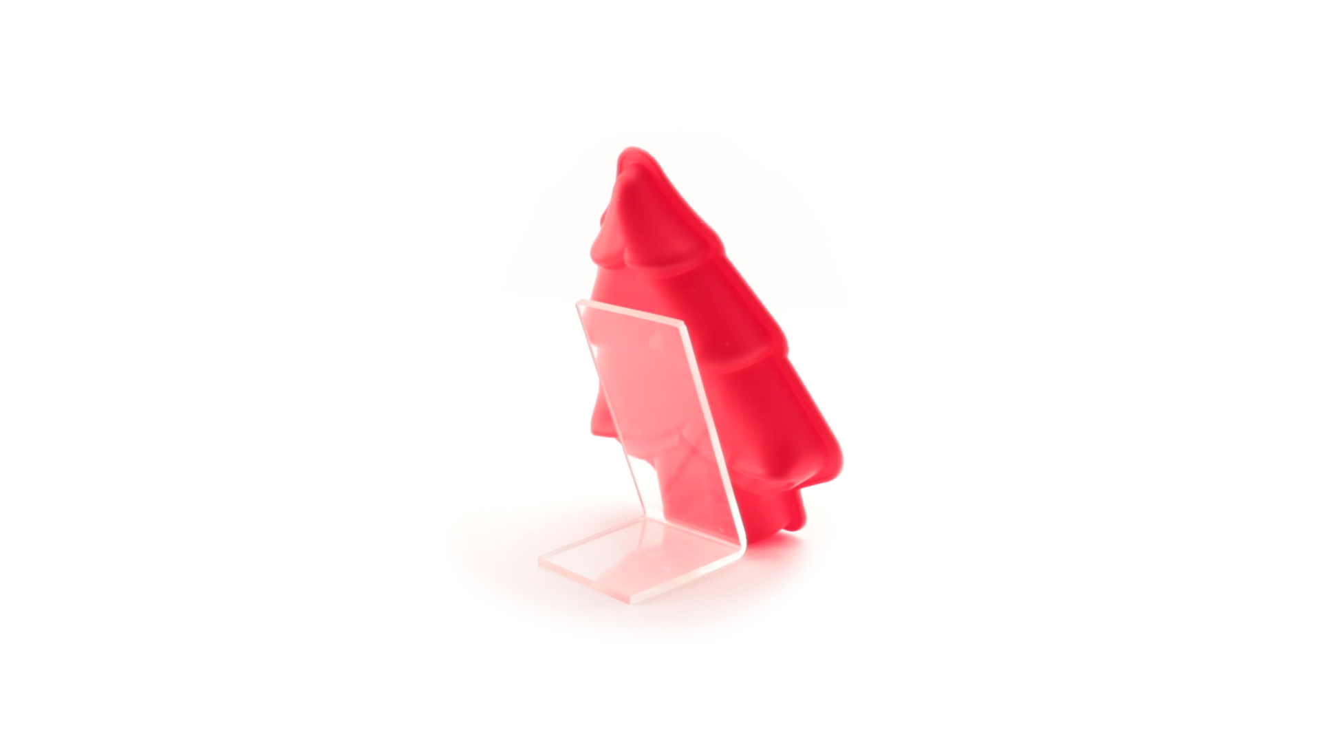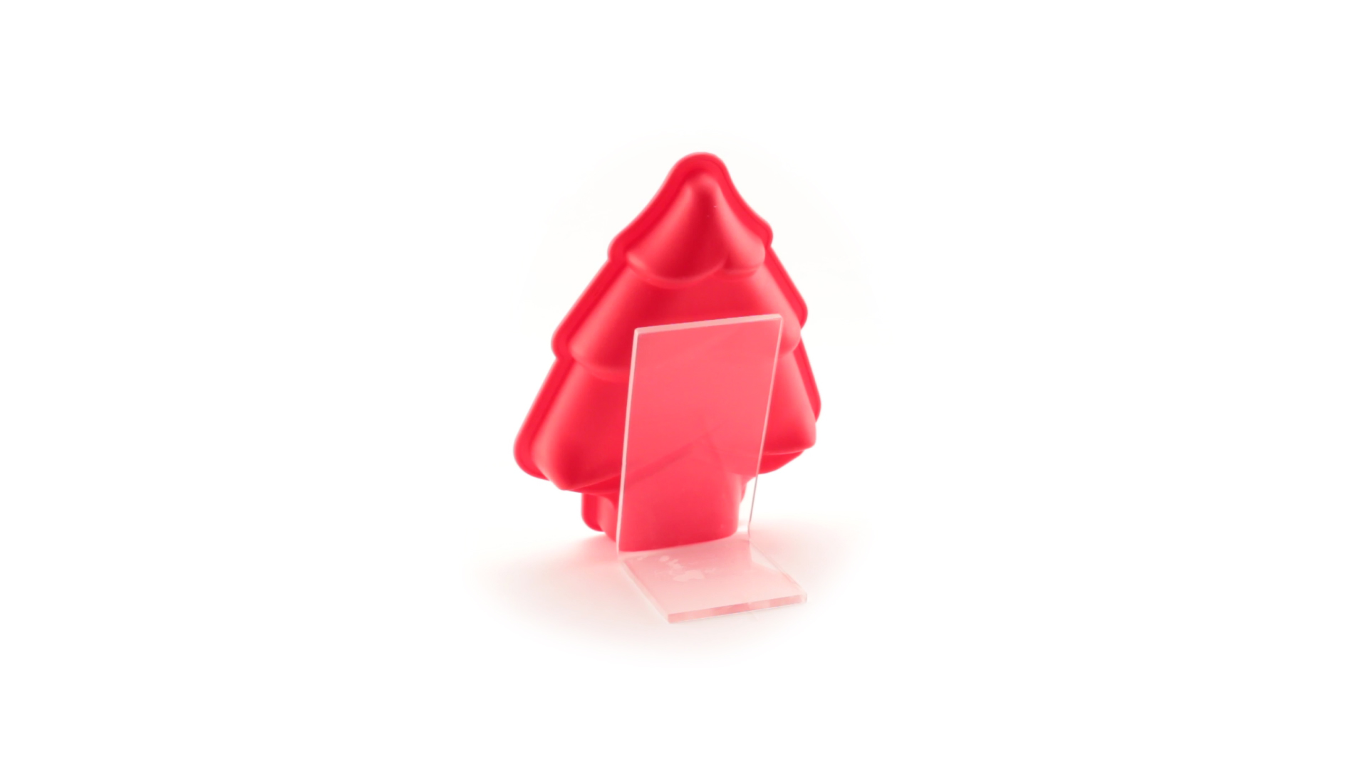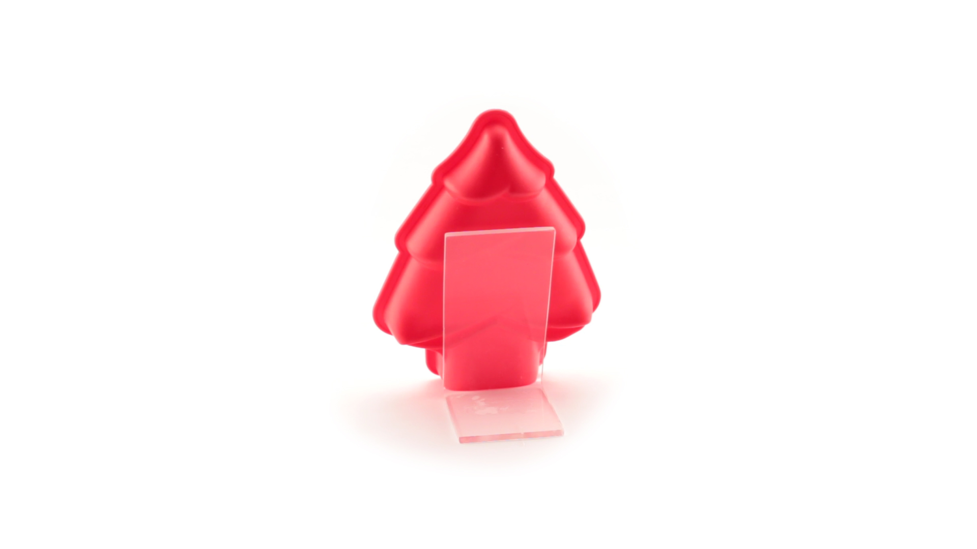 Silikonform in auffälligem Weihnachtsrot in Form eines Weihnachtsbaumes. Beständigkeit gegen Temperaturen von bis zu 240 °C.