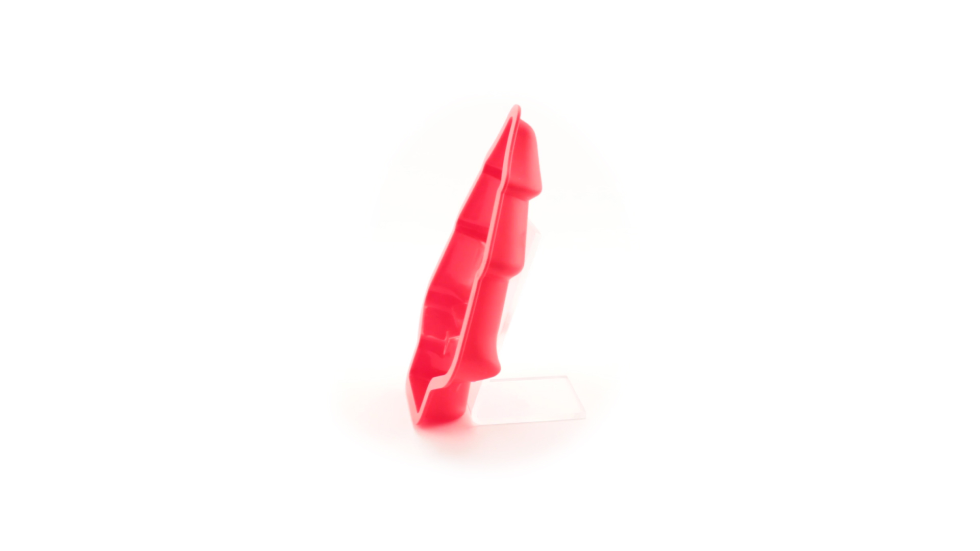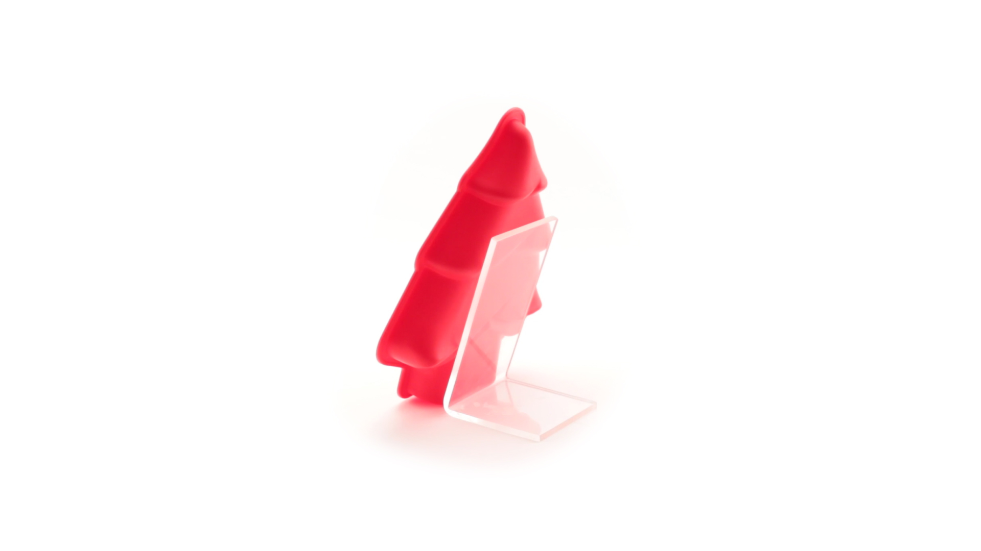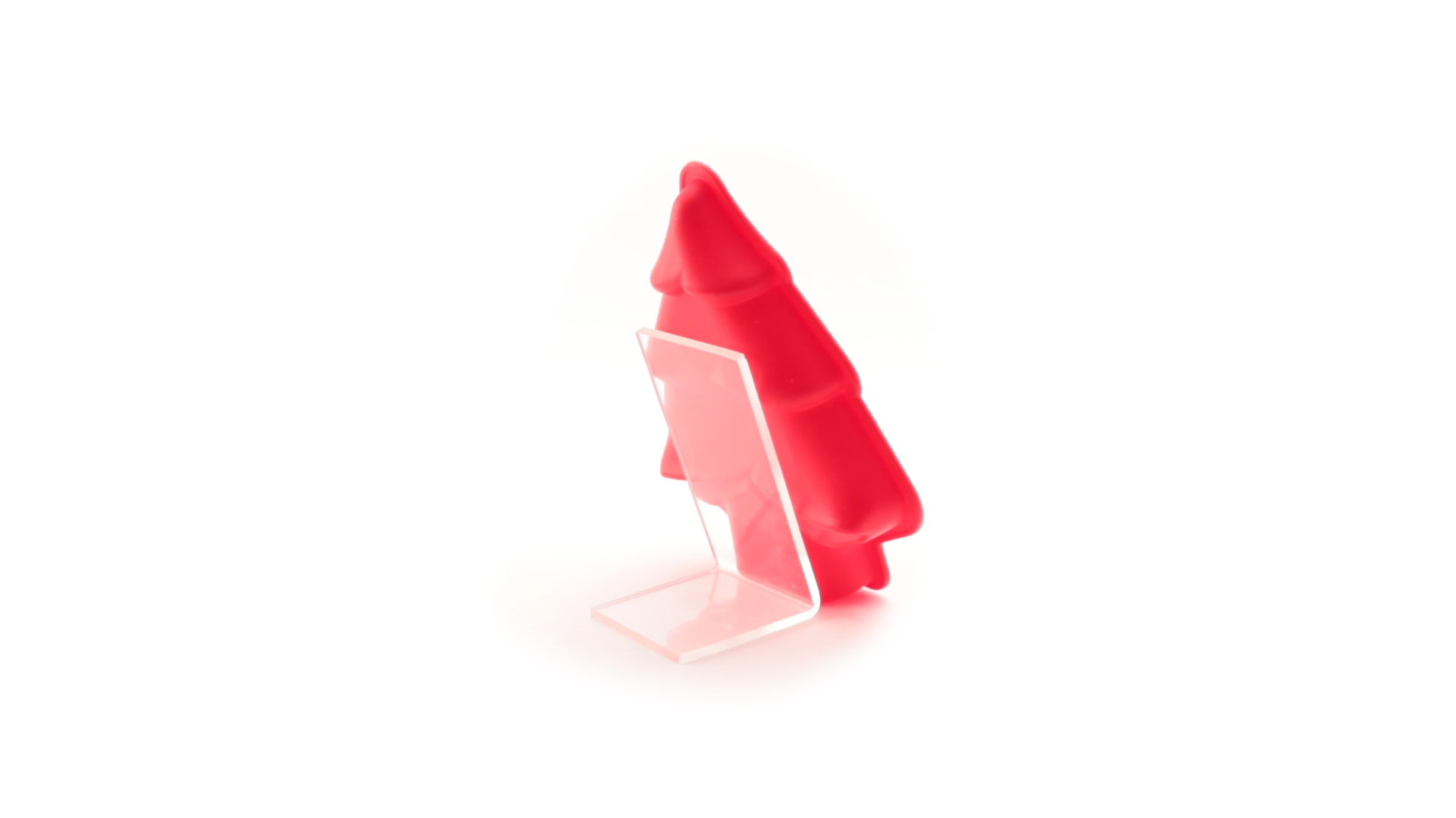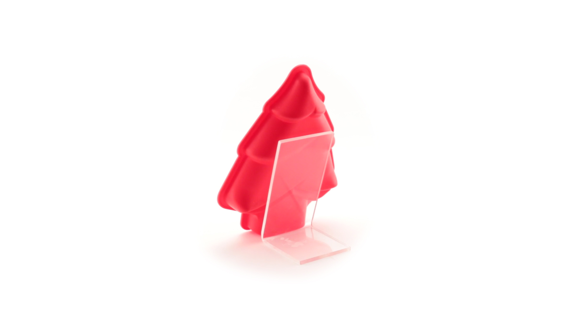Silikonform in auffälligem Weihnachtsrot in Form eines Weihnachtsbaumes. Beständigkeit gegen Temperaturen von bis zu 240 °C.