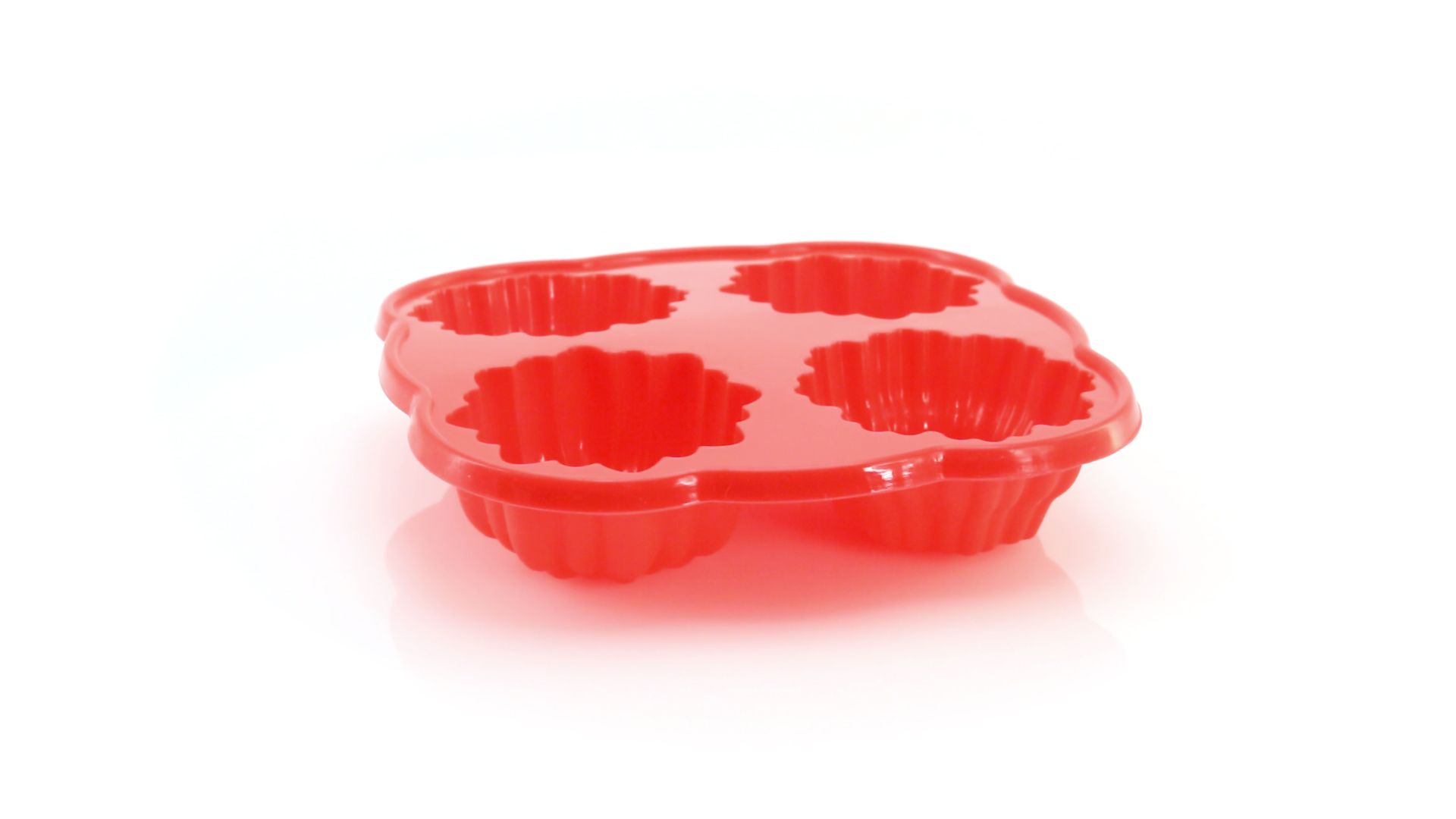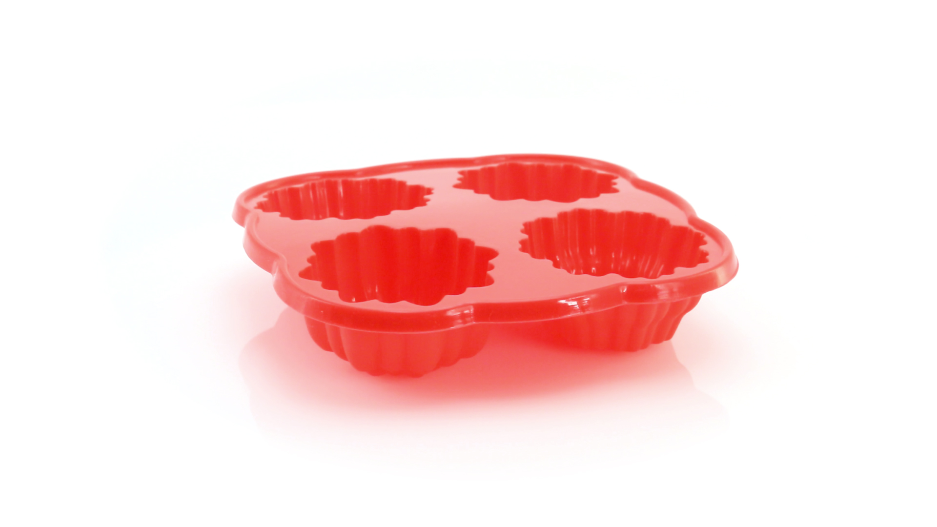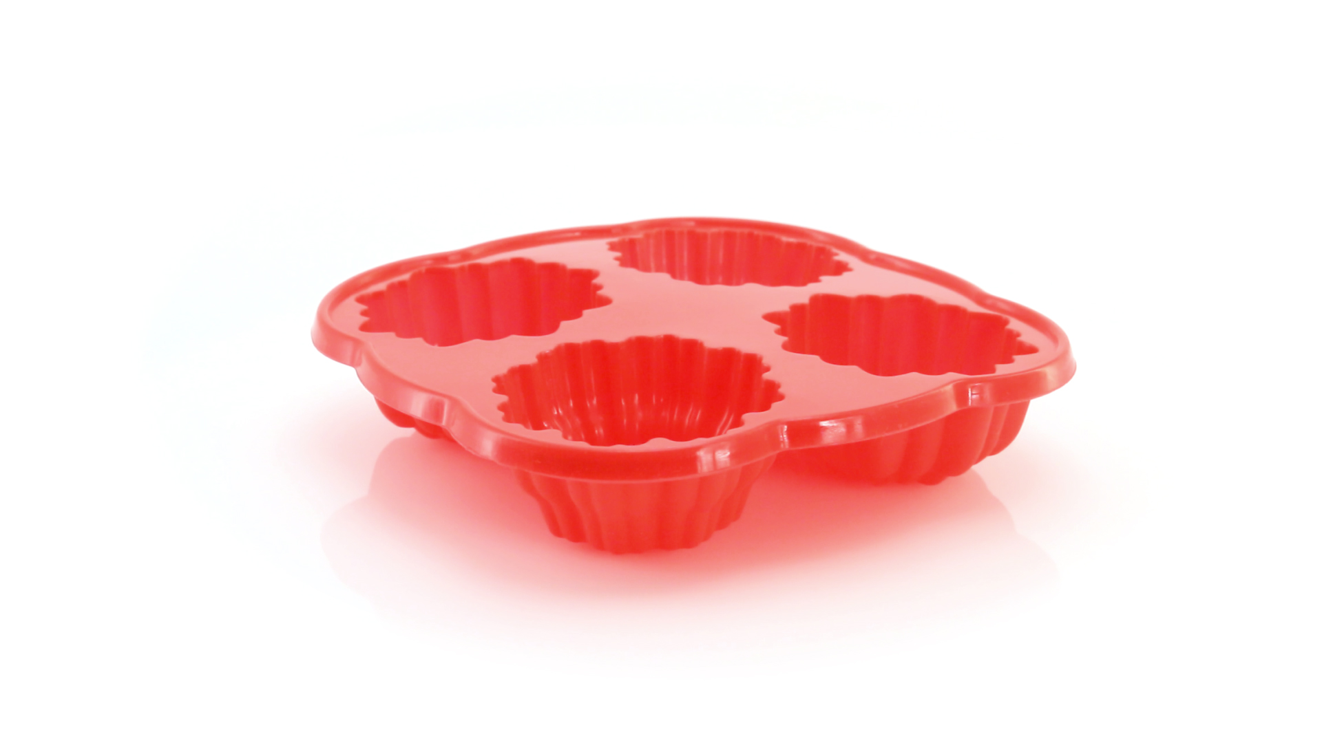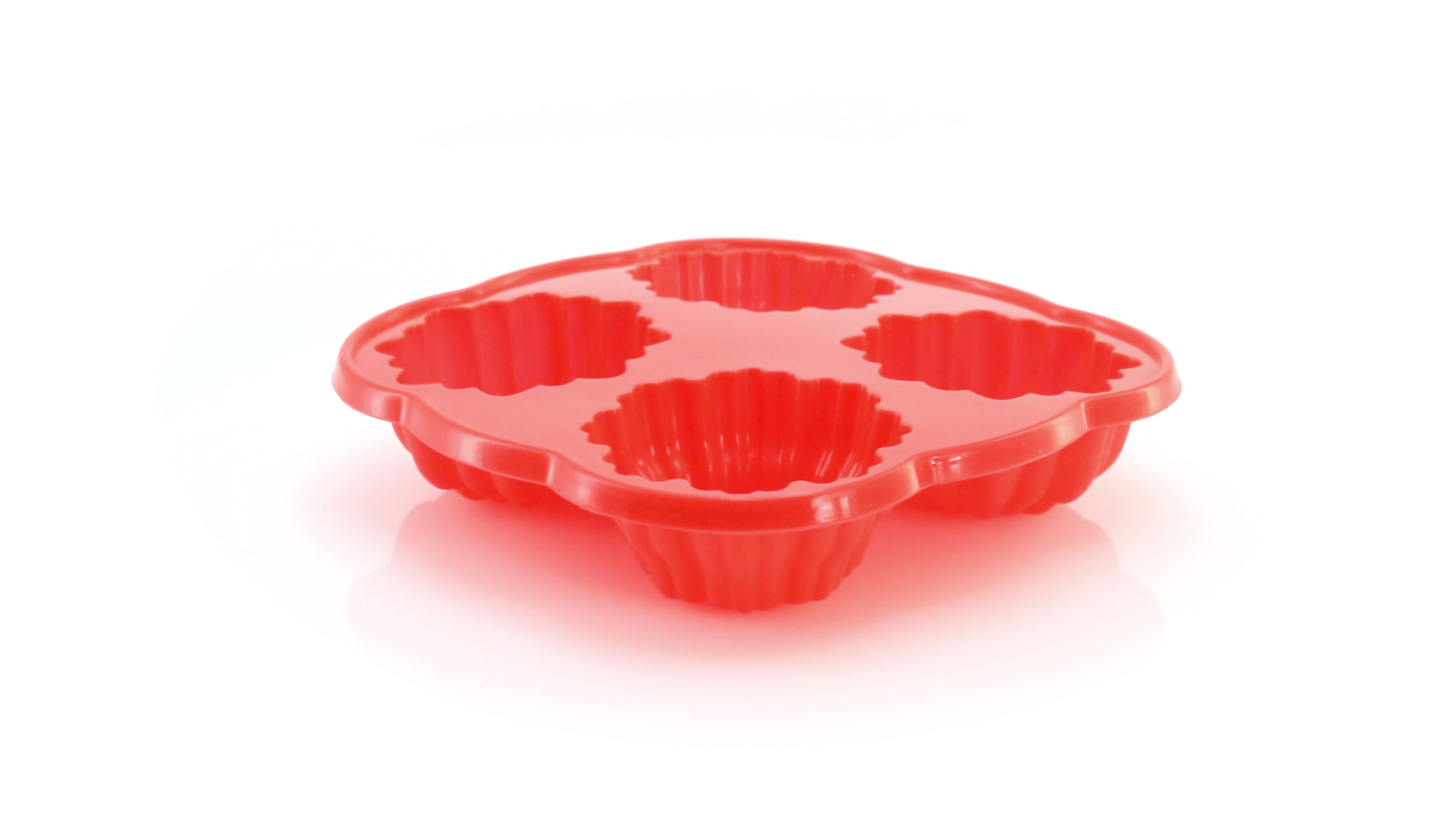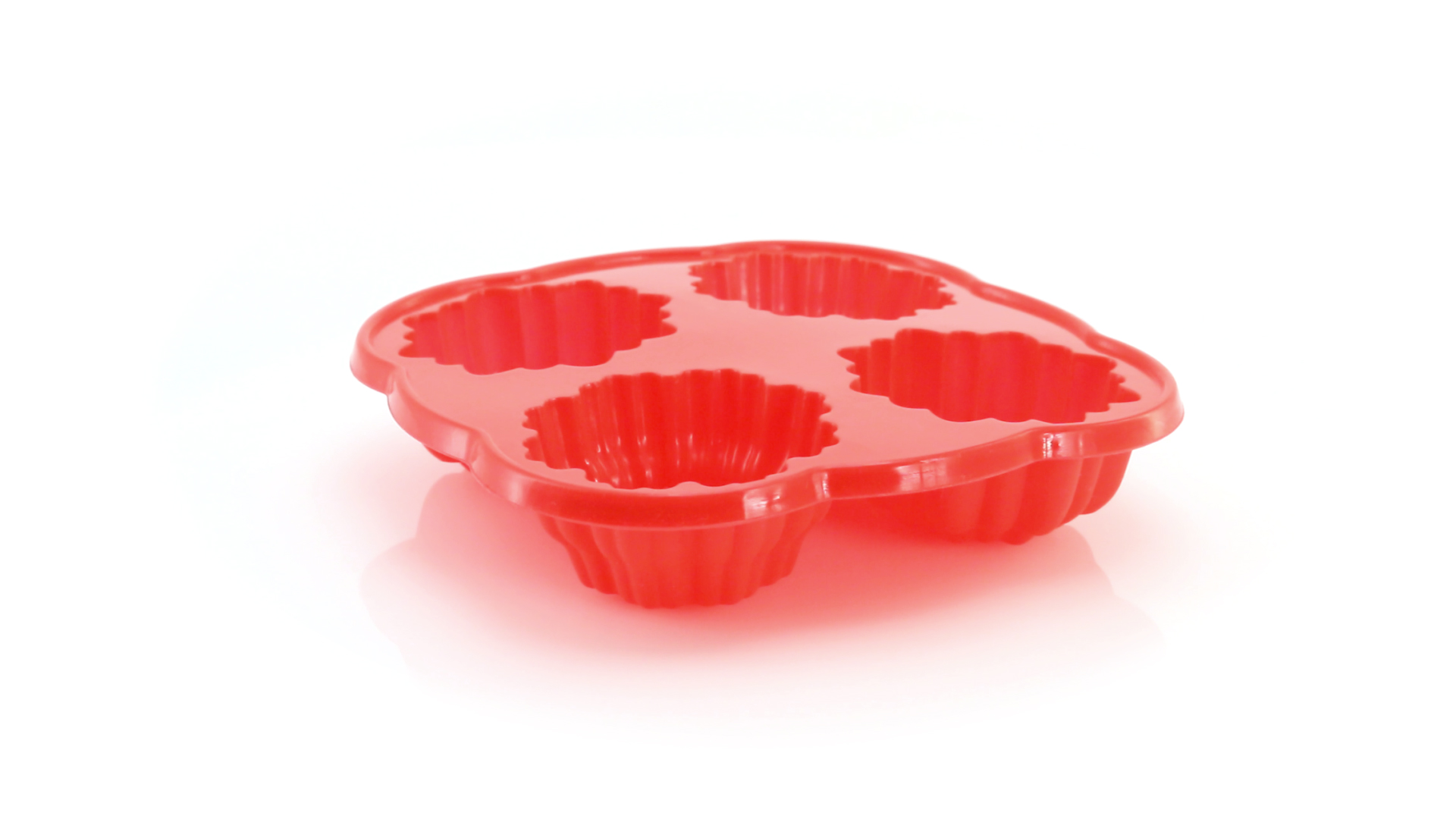 Silikonformen mit 4 verschiedenen Förmchen in vielen kräftigen Farben. Beständigkeit gegen Temperaturen von bis zu 240 °C.