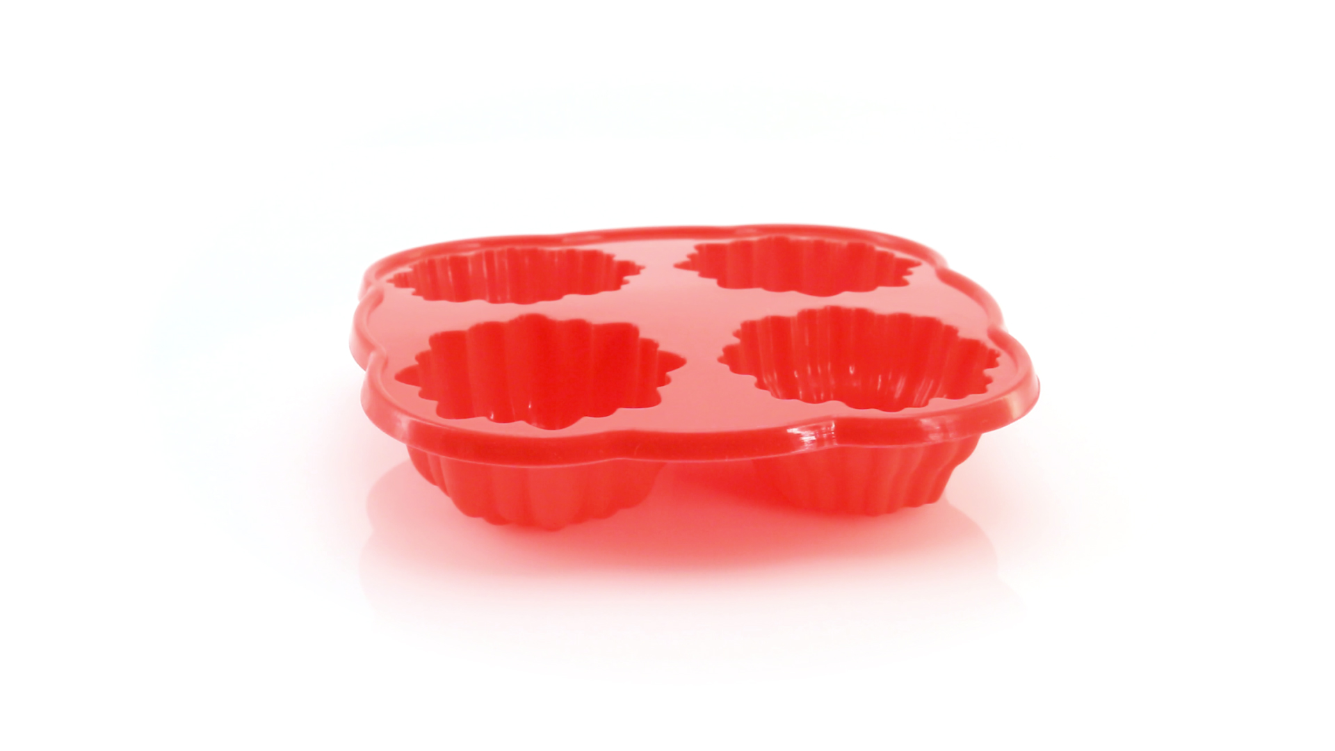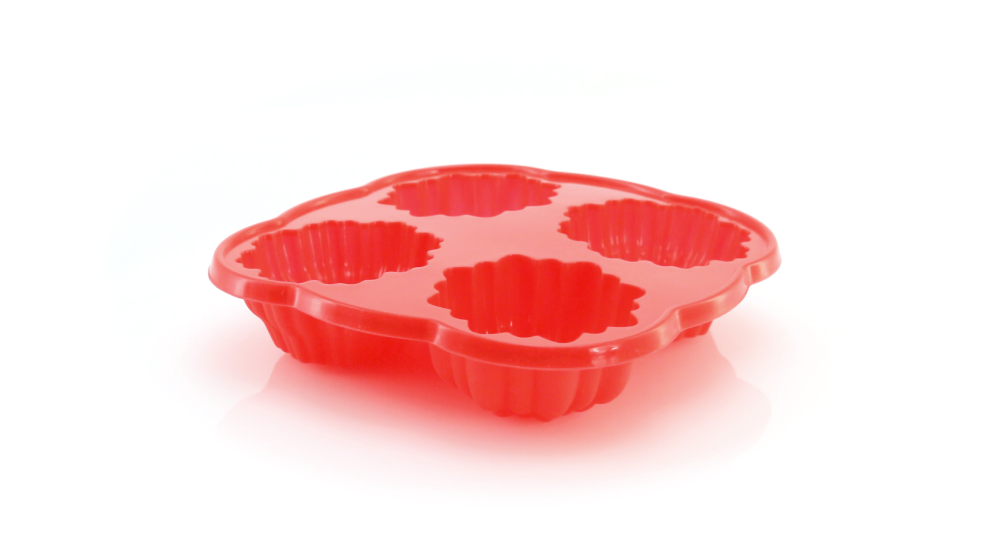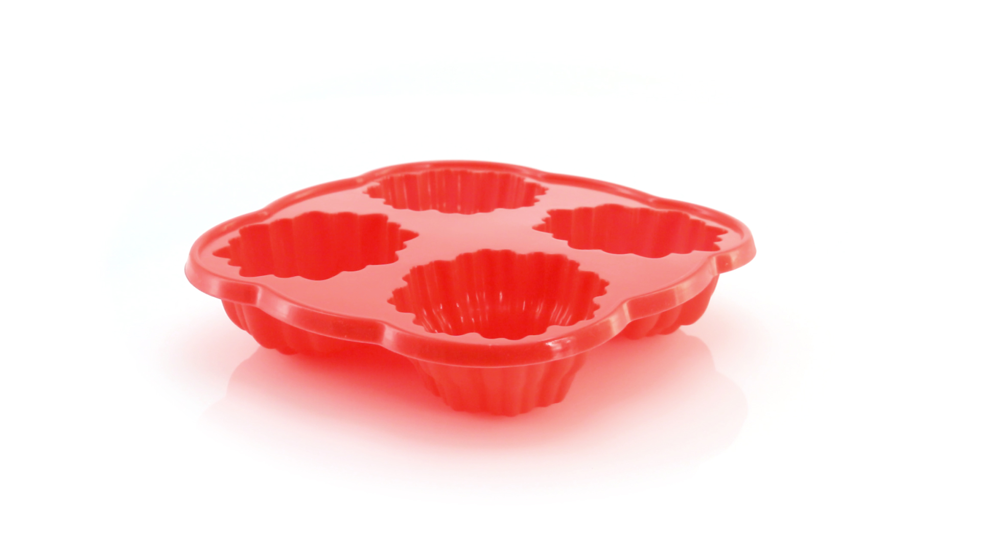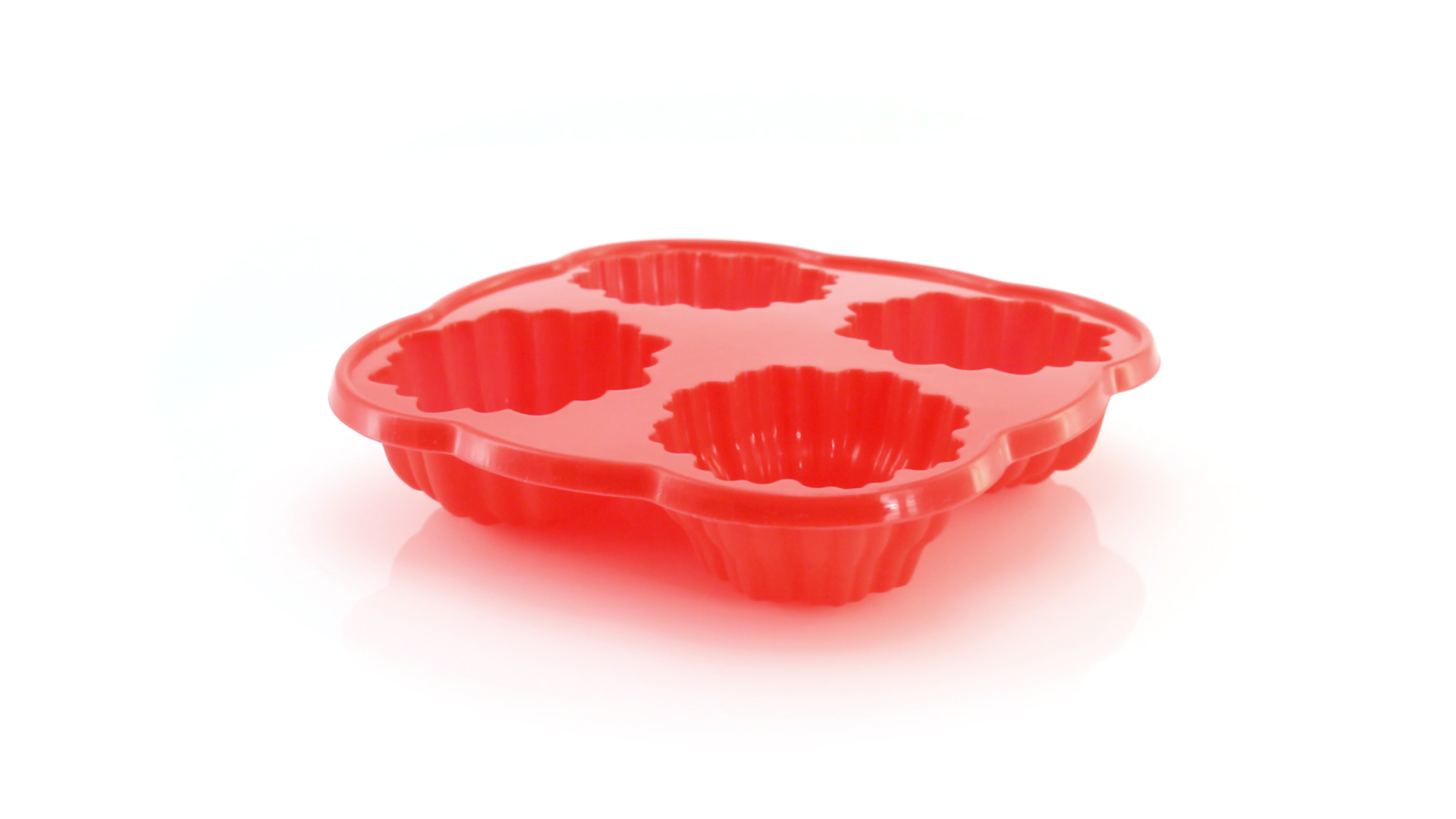 Silikonformen mit 4 verschiedenen Förmchen in vielen kräftigen Farben. Beständigkeit gegen Temperaturen von bis zu 240 °C.