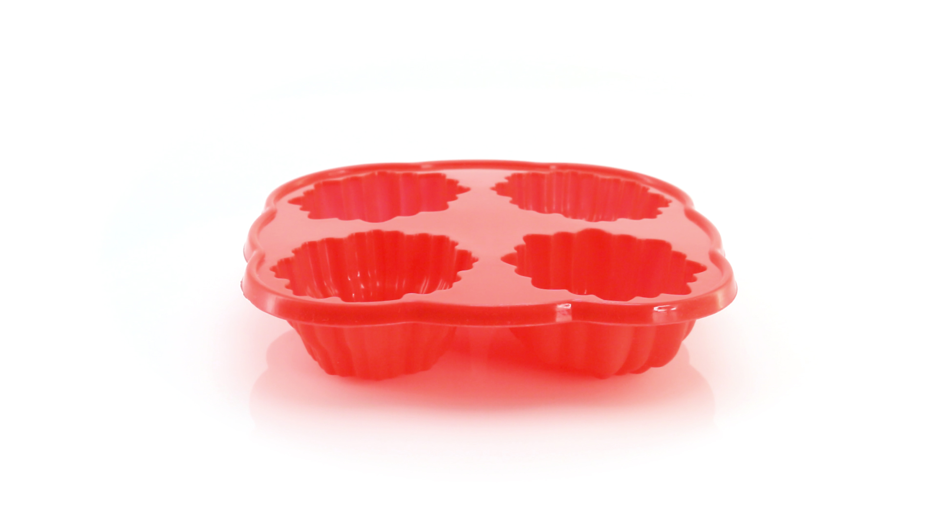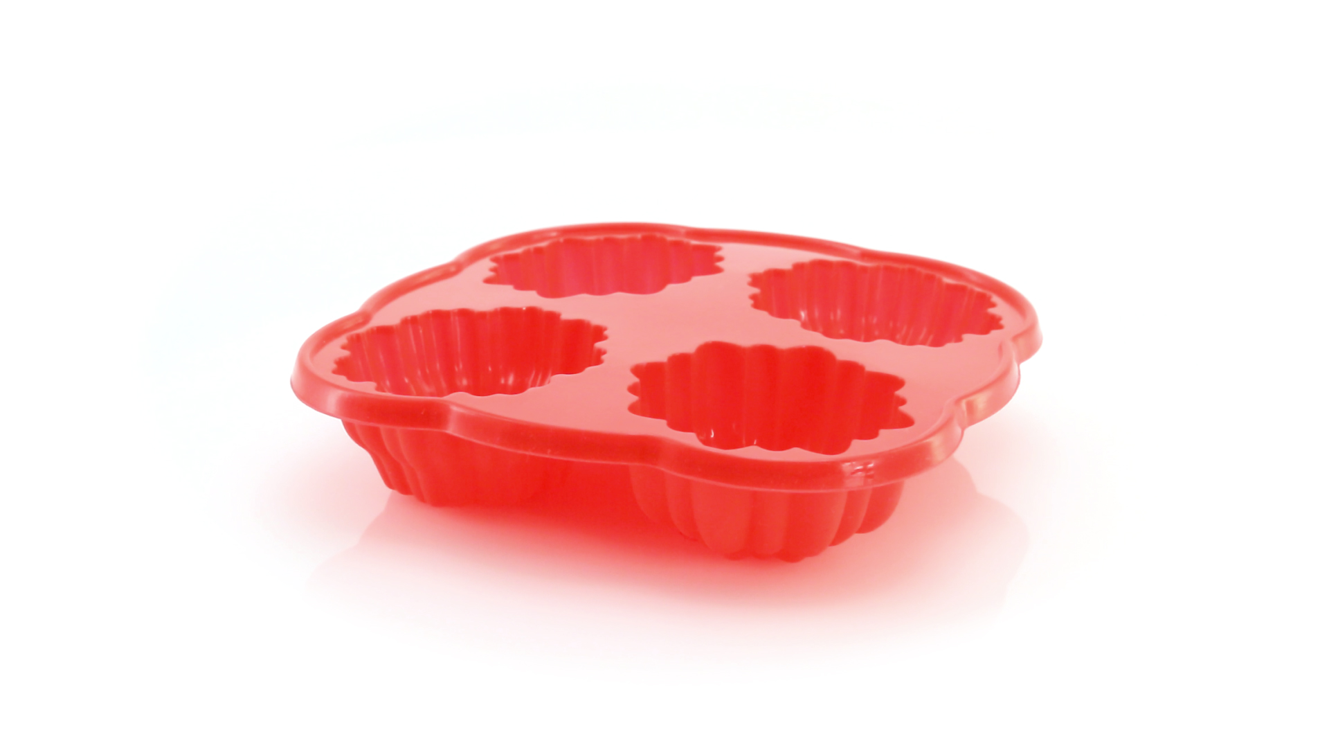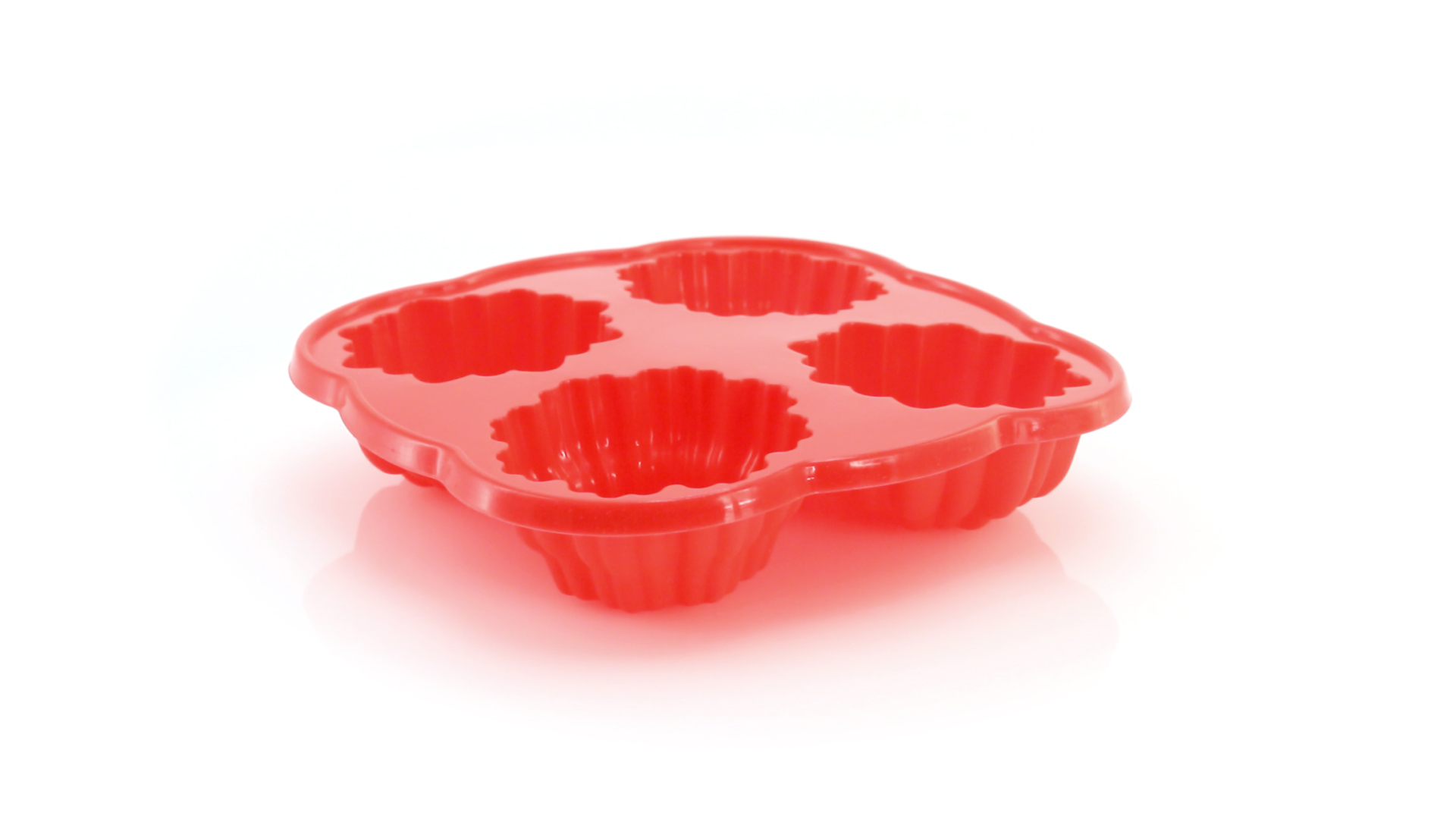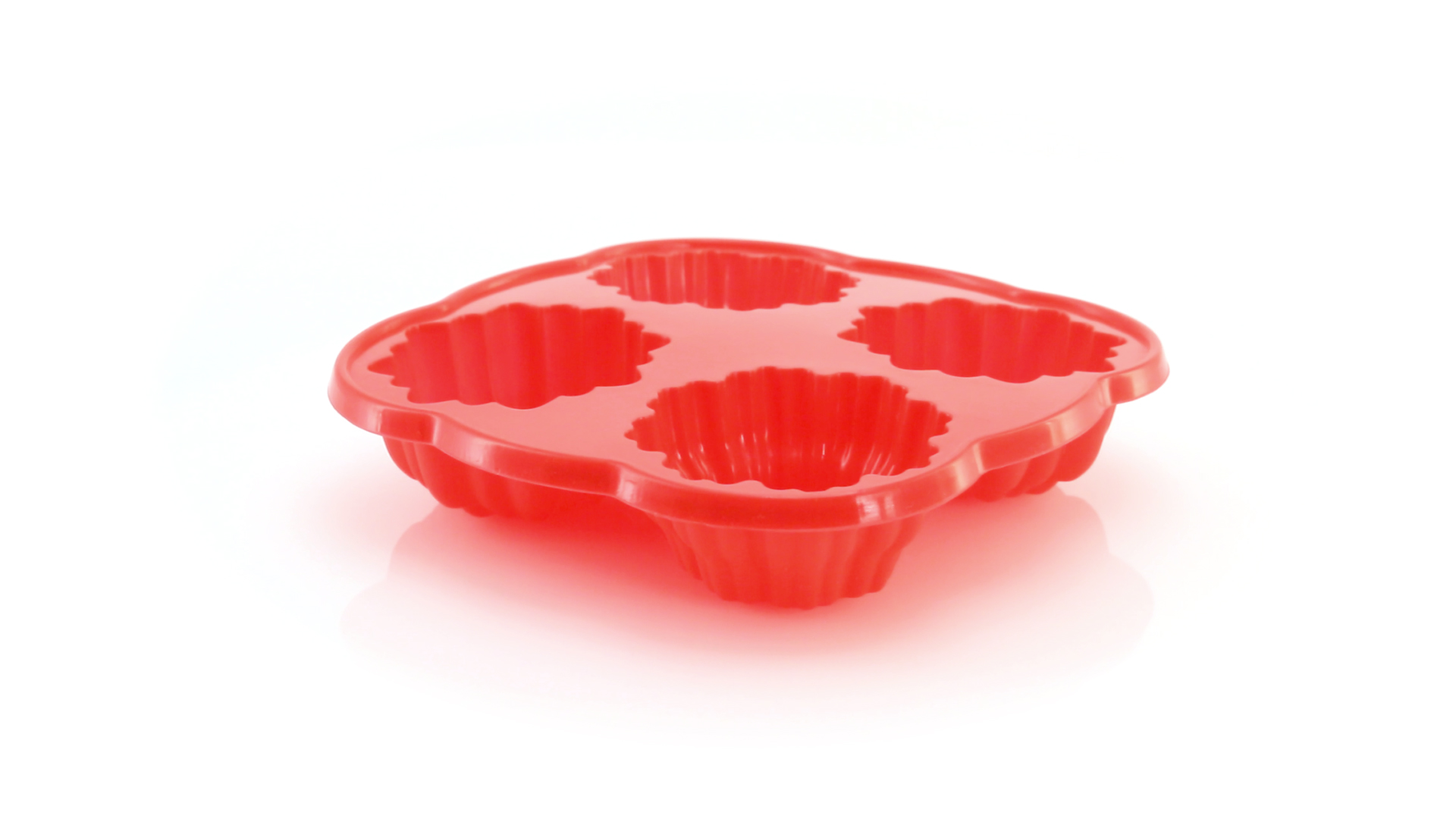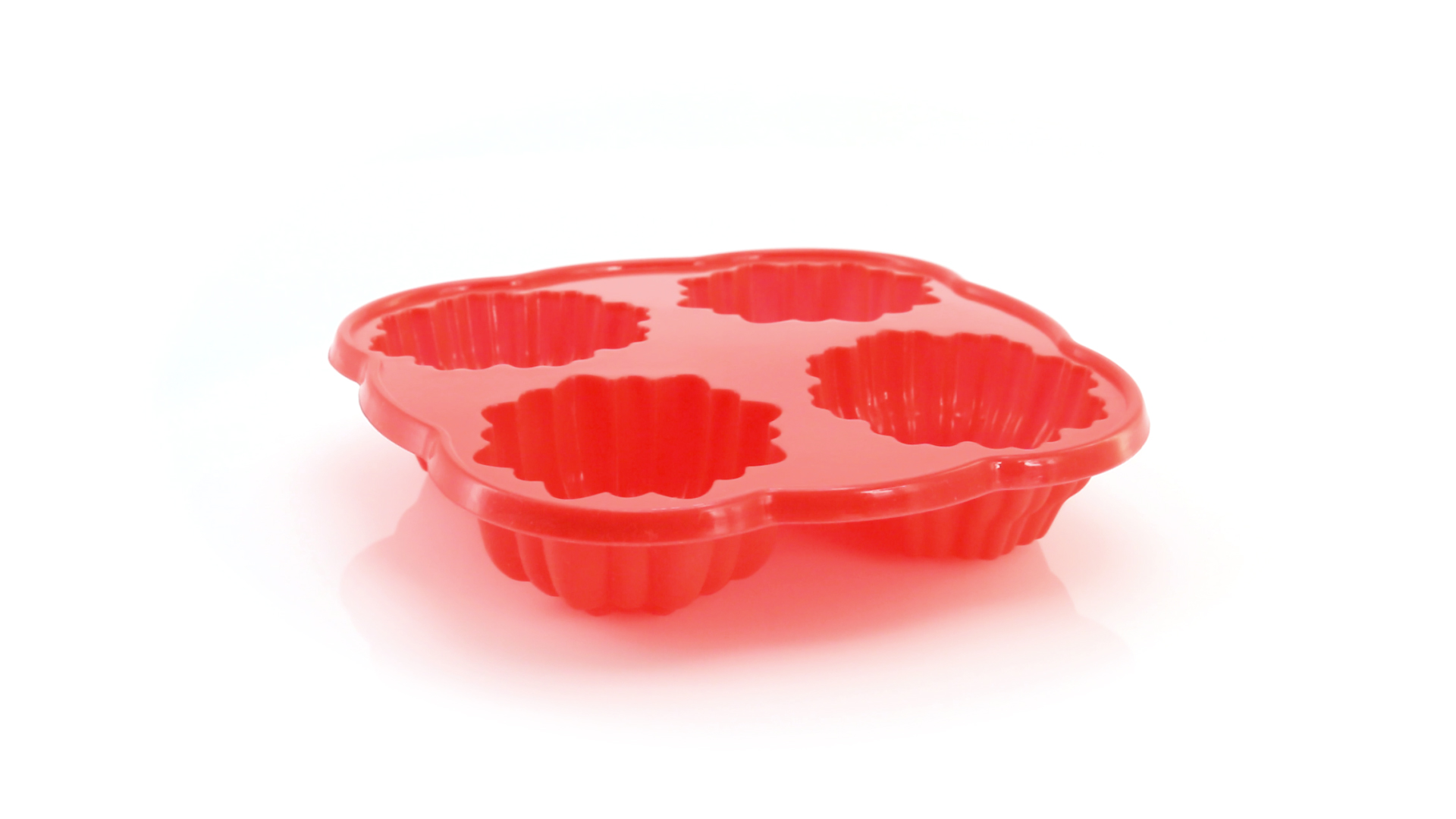Silikonformen mit 4 verschiedenen Förmchen in vielen kräftigen Farben. Beständigkeit gegen Temperaturen von bis zu 240 °C.