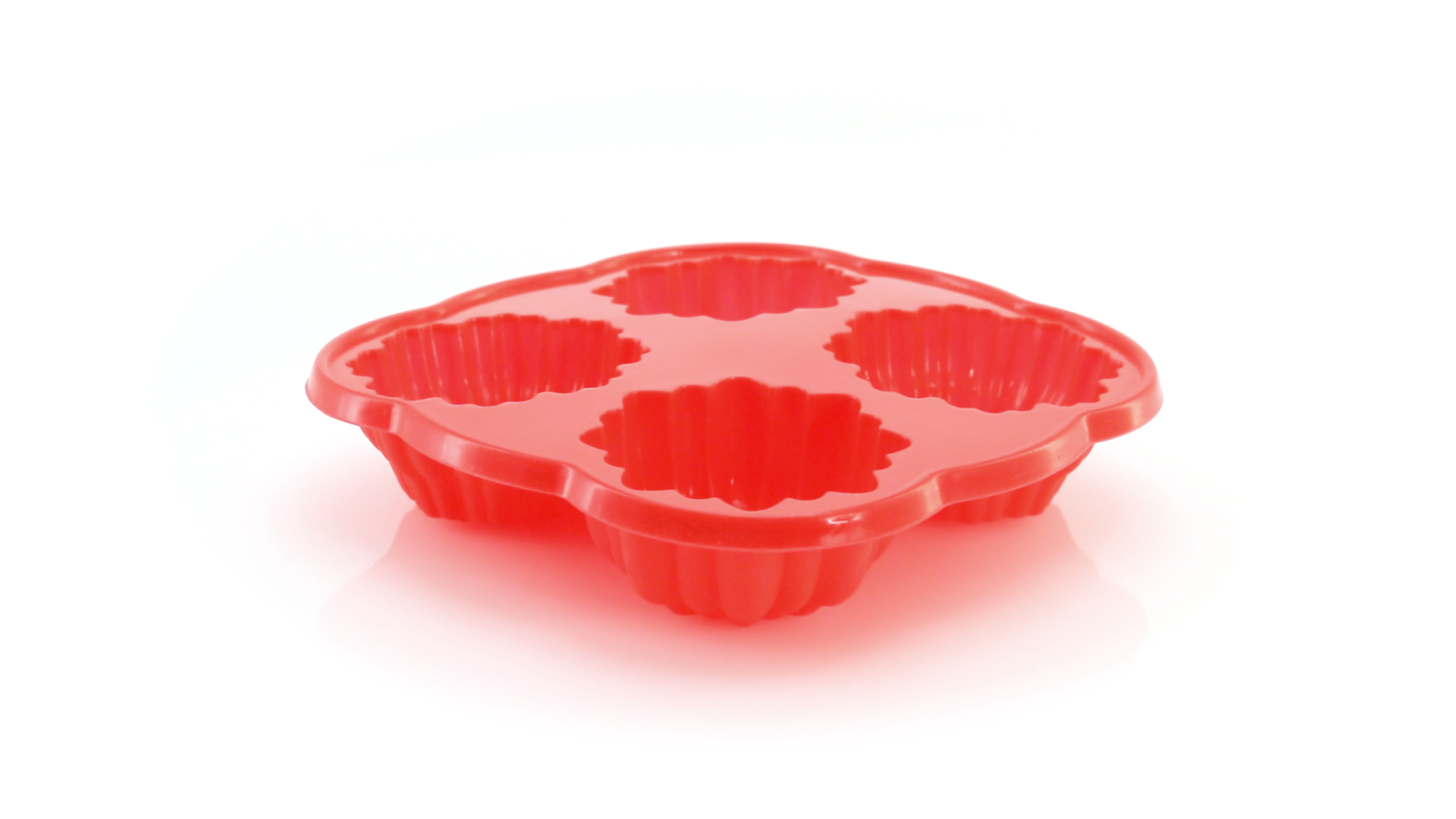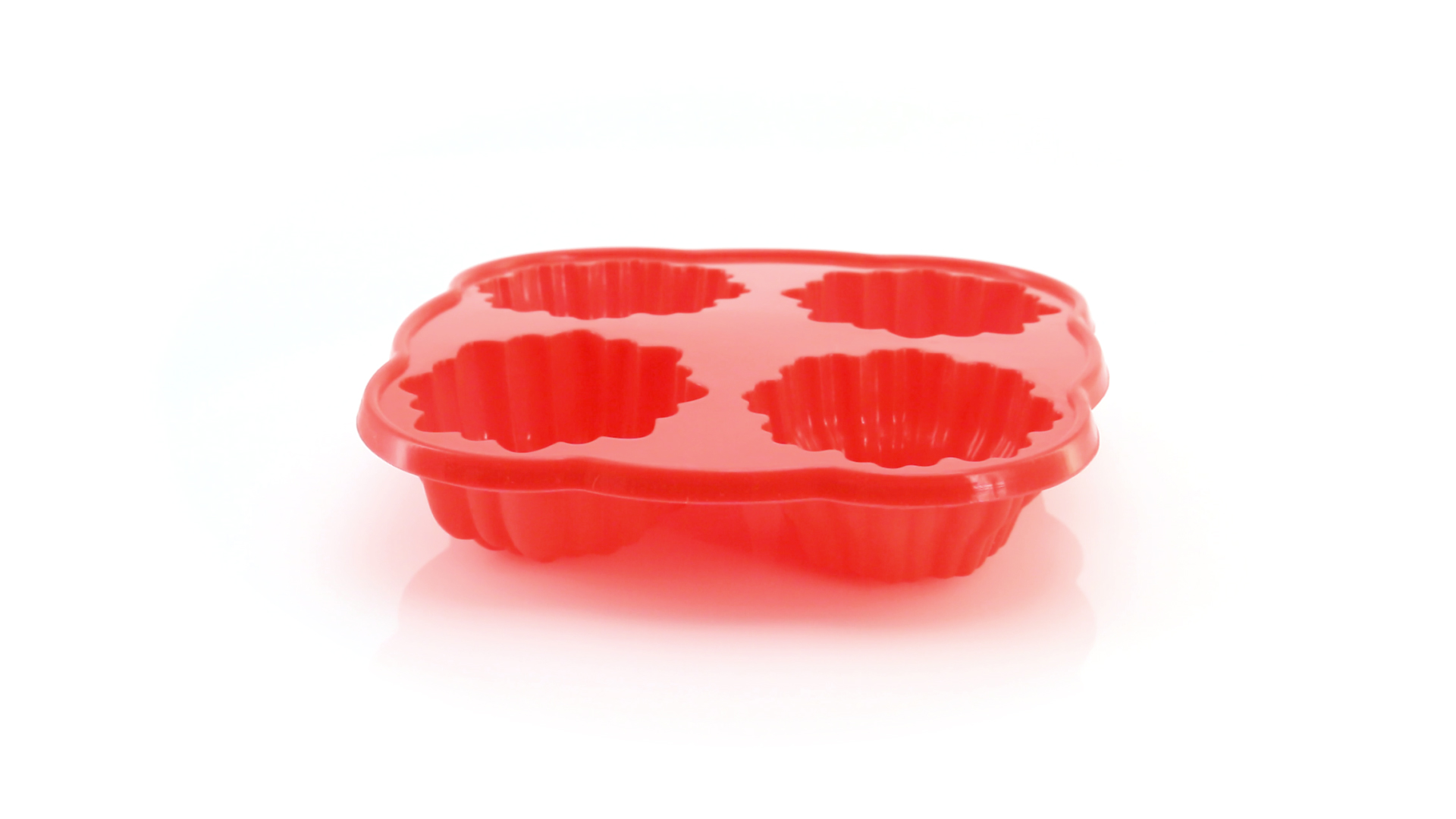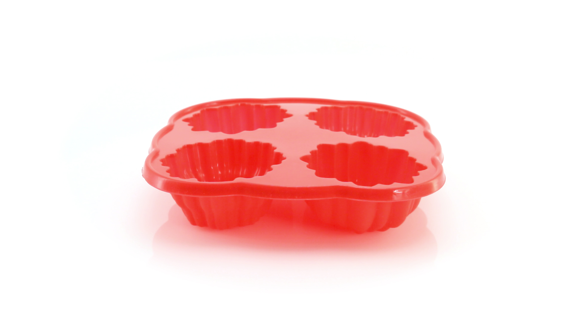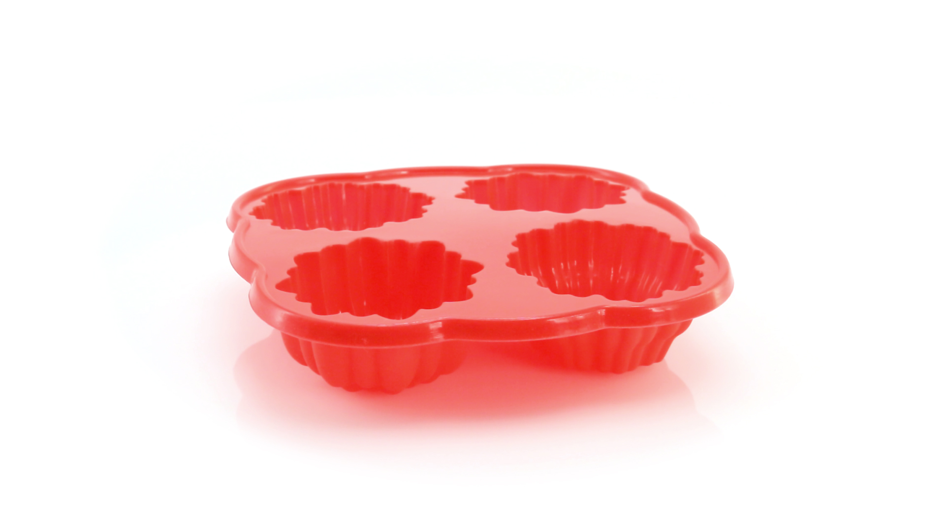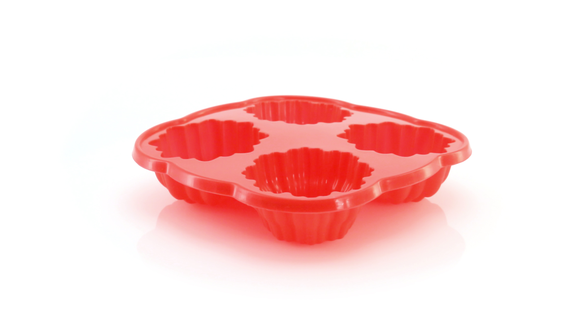 Silikonformen mit 4 verschiedenen Förmchen in vielen kräftigen Farben. Beständigkeit gegen Temperaturen von bis zu 240 °C.