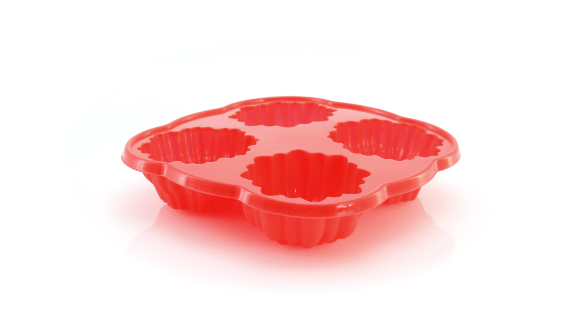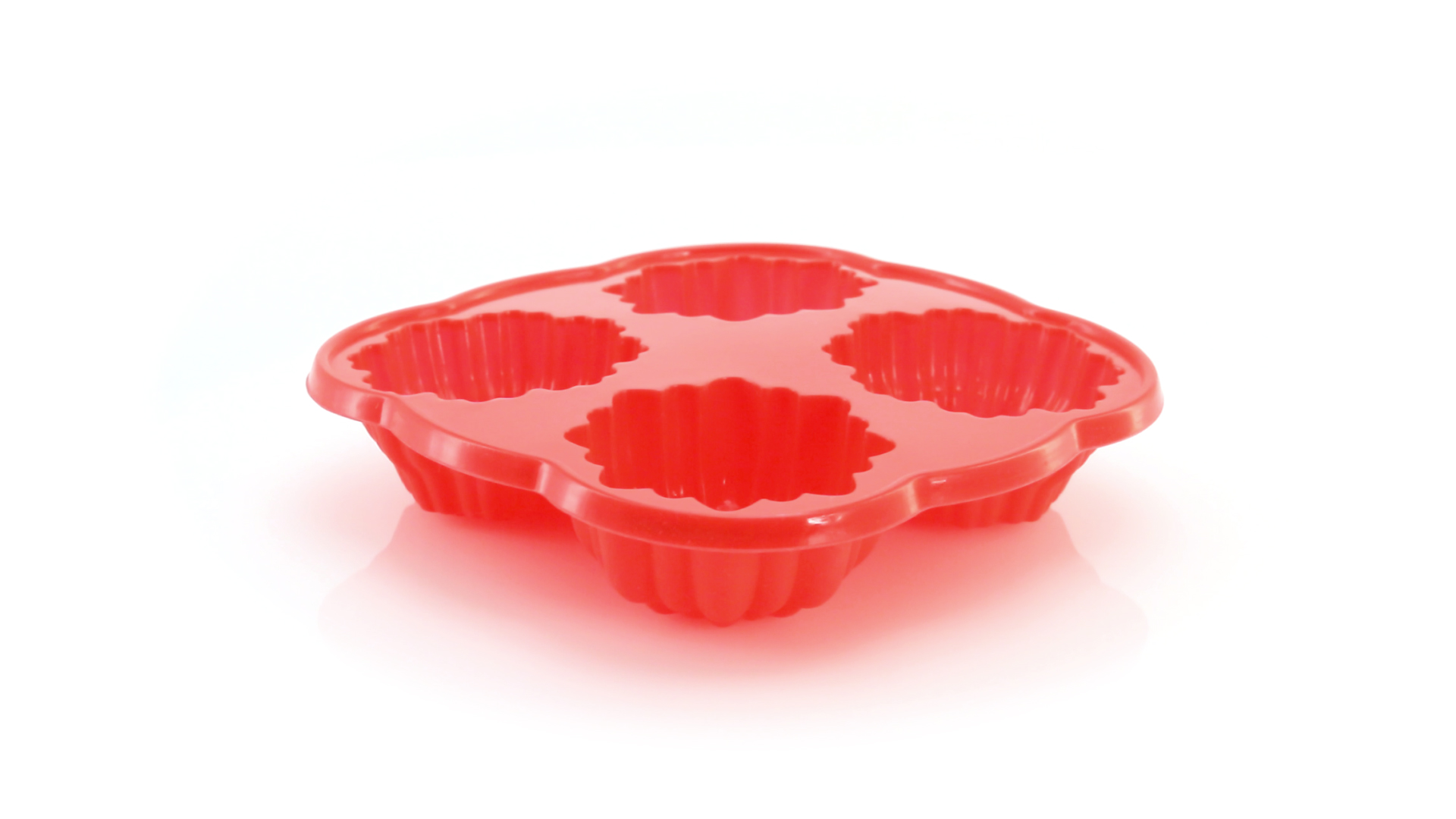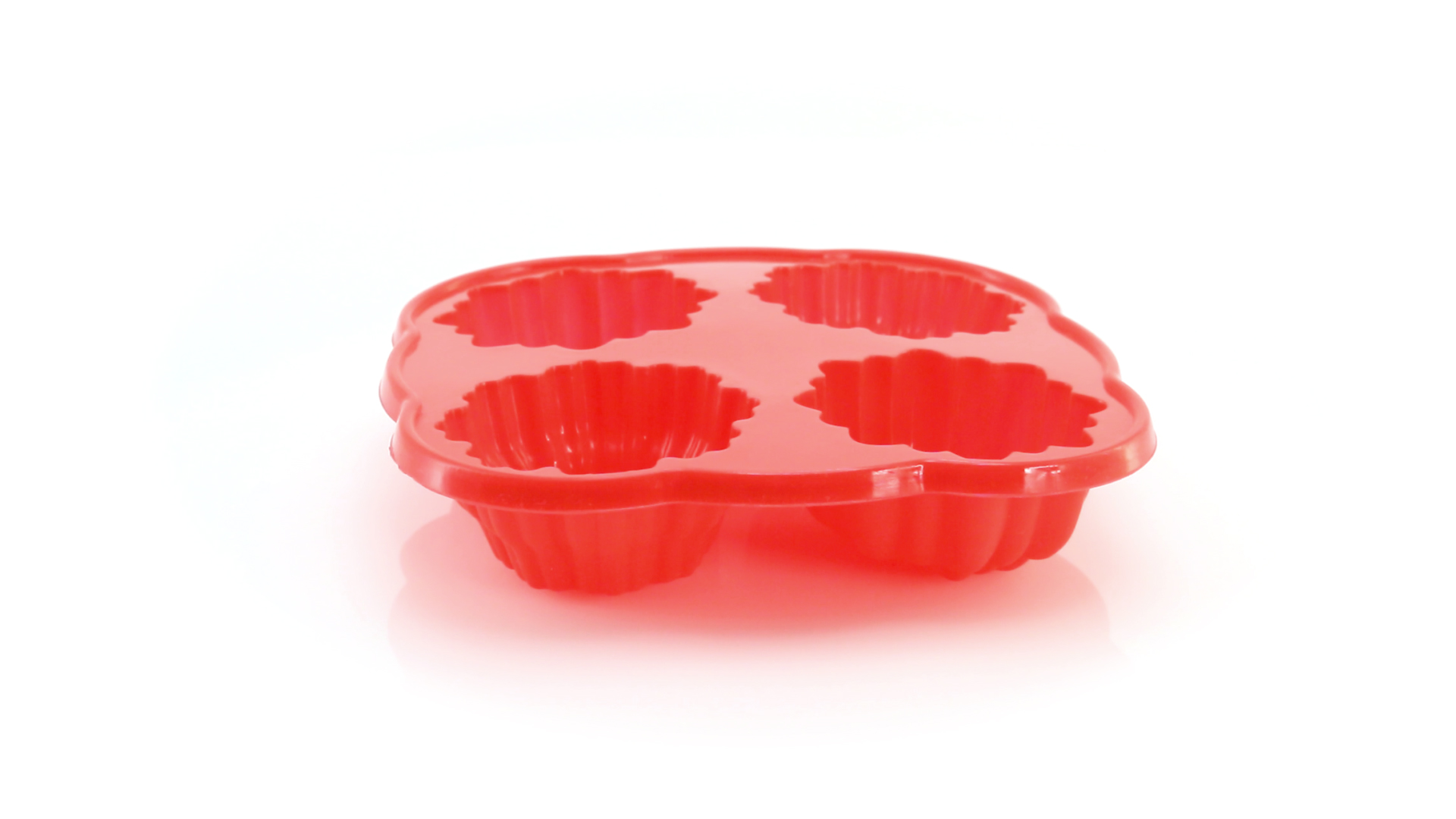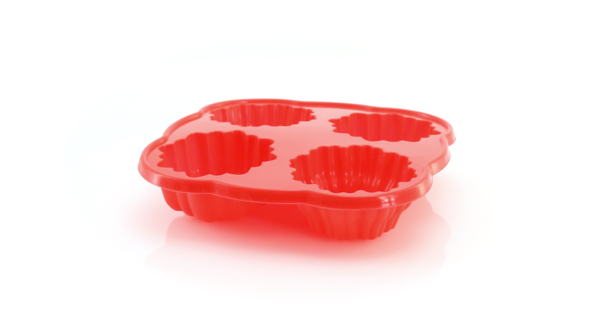 Silikonformen mit 4 verschiedenen Förmchen in vielen kräftigen Farben. Beständigkeit gegen Temperaturen von bis zu 240 °C.
