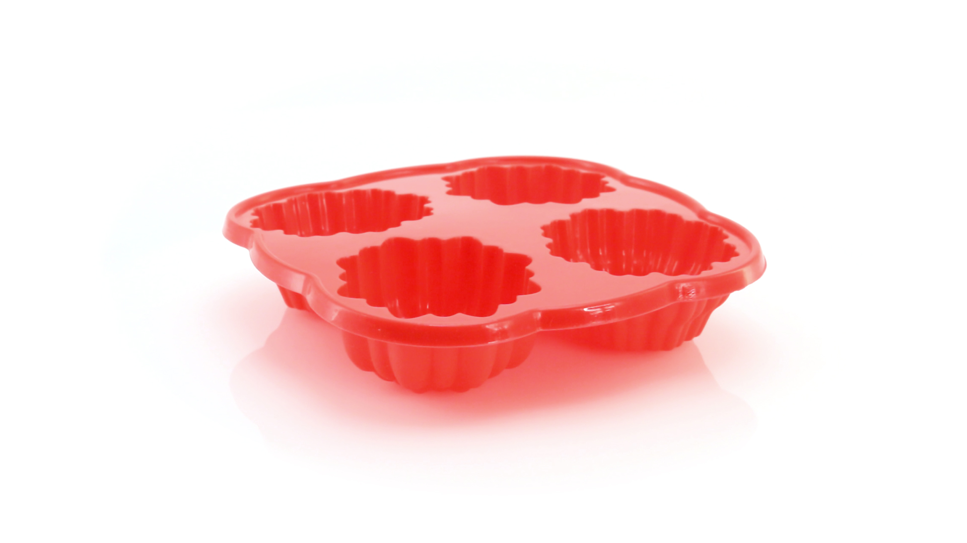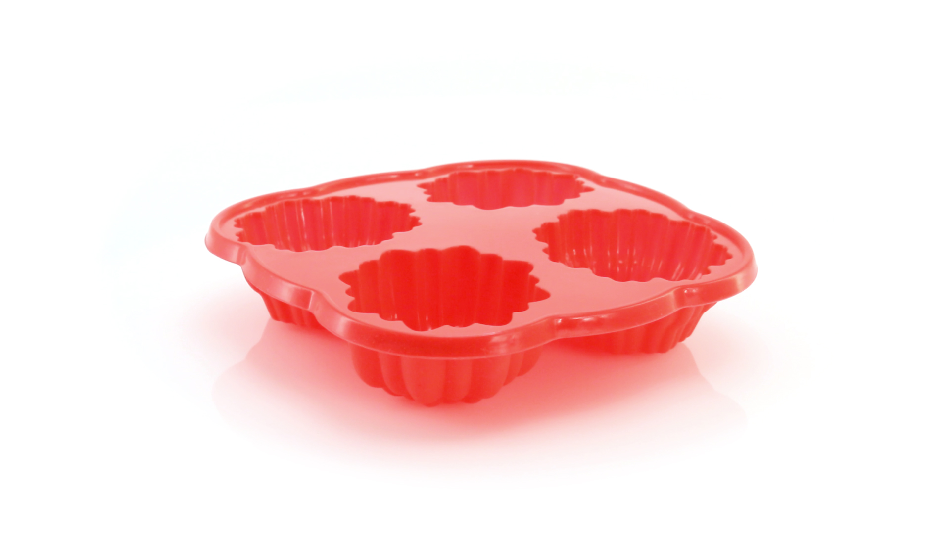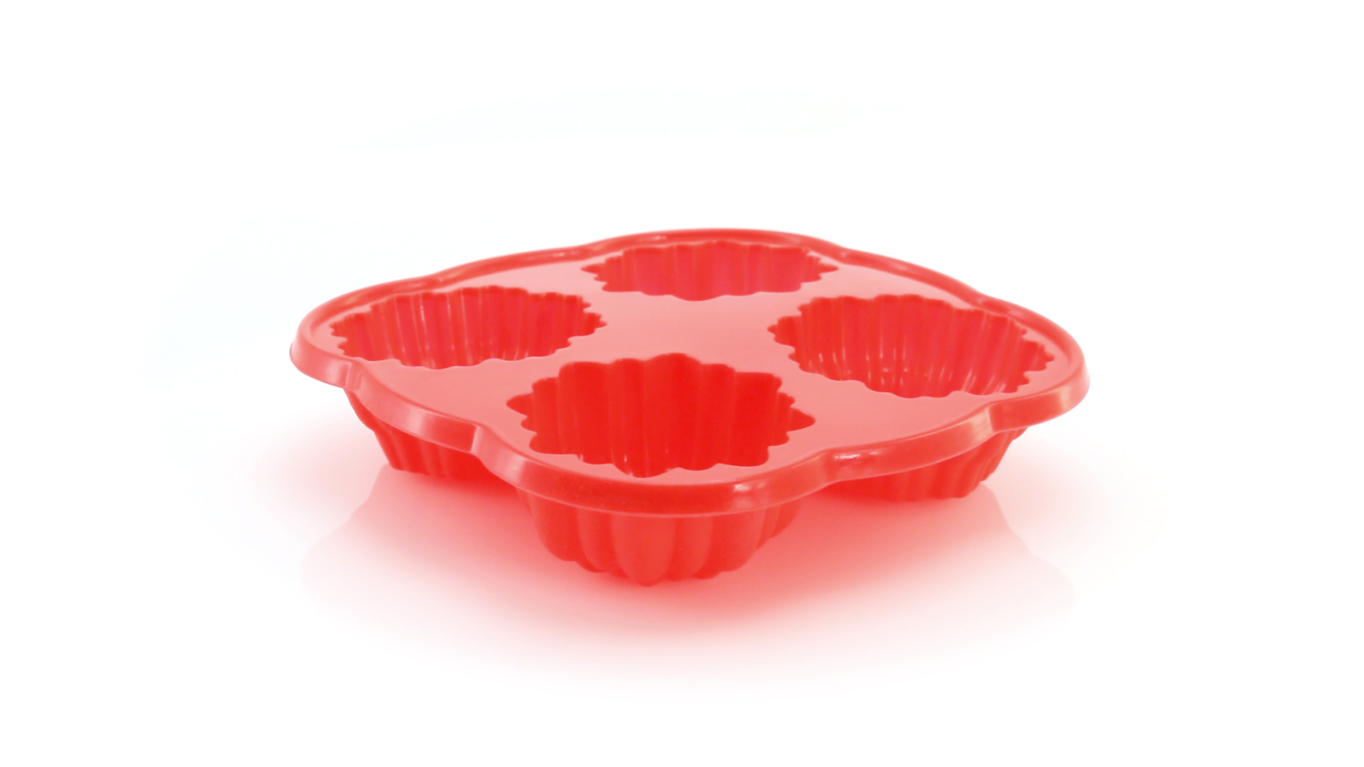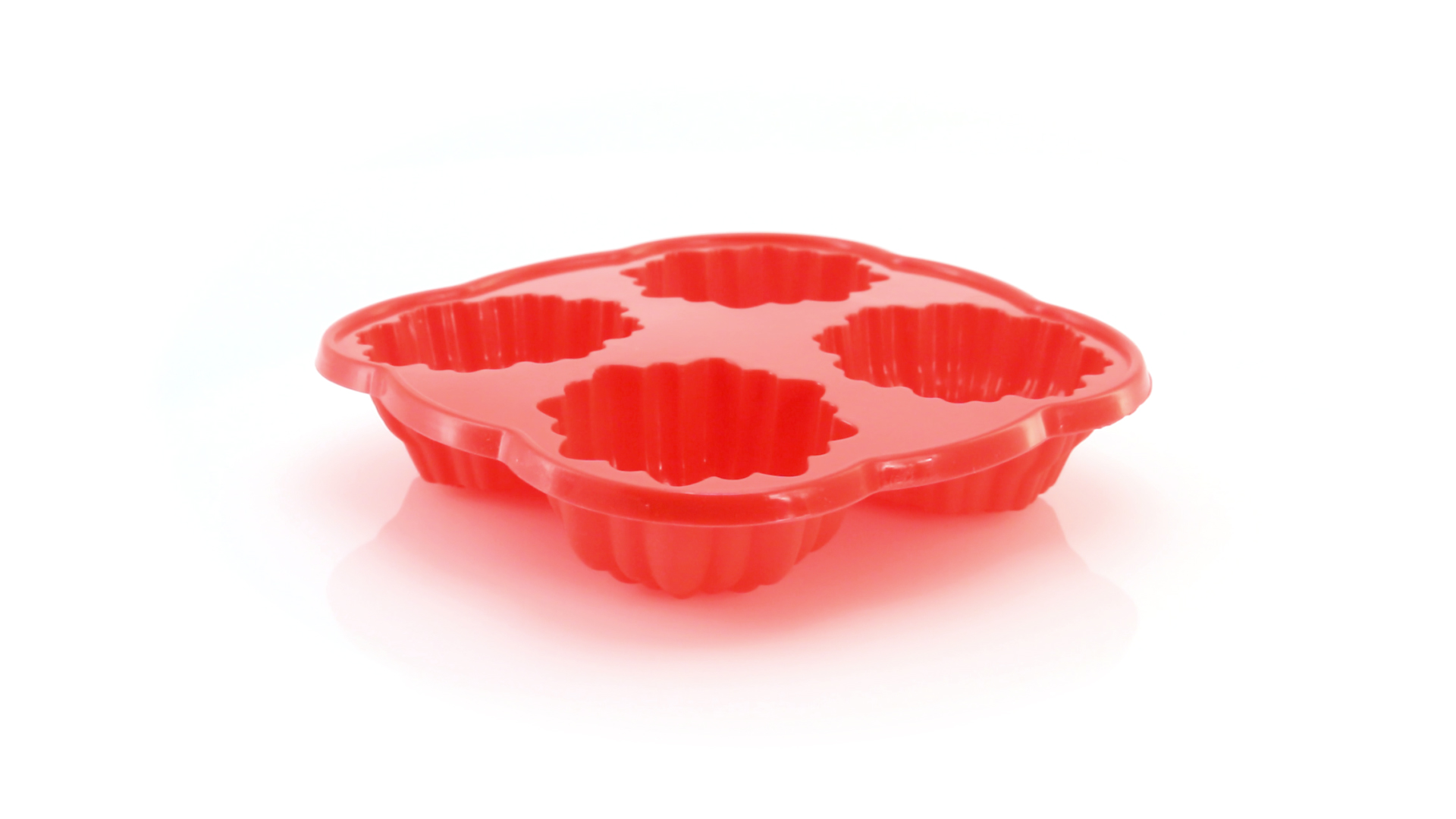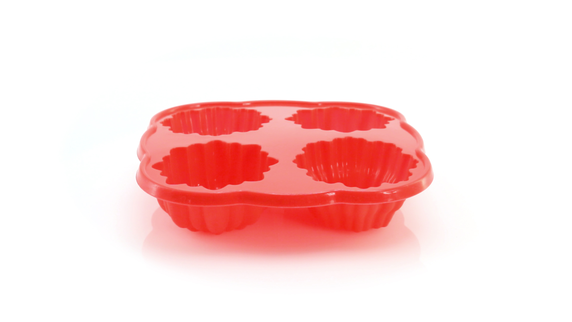 Silikonformen mit 4 verschiedenen Förmchen in vielen kräftigen Farben. Beständigkeit gegen Temperaturen von bis zu 240 °C.