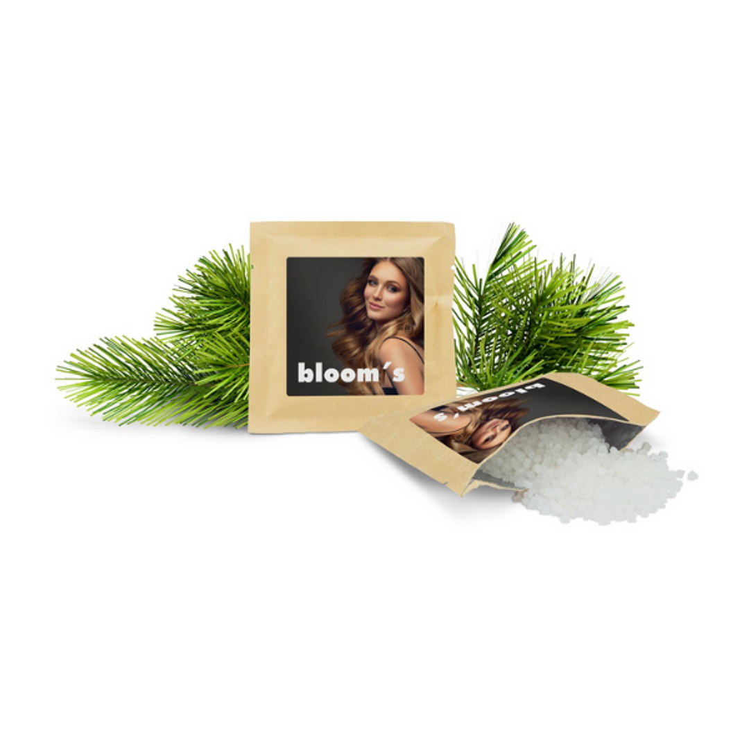 Das Badesalz Waldzauber ist ideal für eine Einzelanwendung und eignet sich wunderbar als Geschenk. Du kannst das Sachet mit einem individuellen Etikett veredeln lassen, um es noch persönlicher zu gestalten – perfekt für Werbezwecke, Events oder besondere Anlässe.
