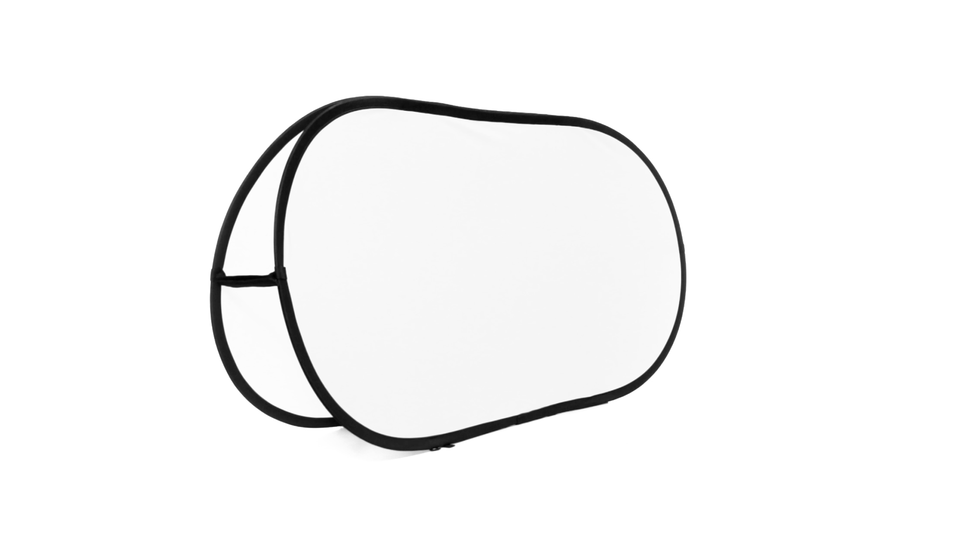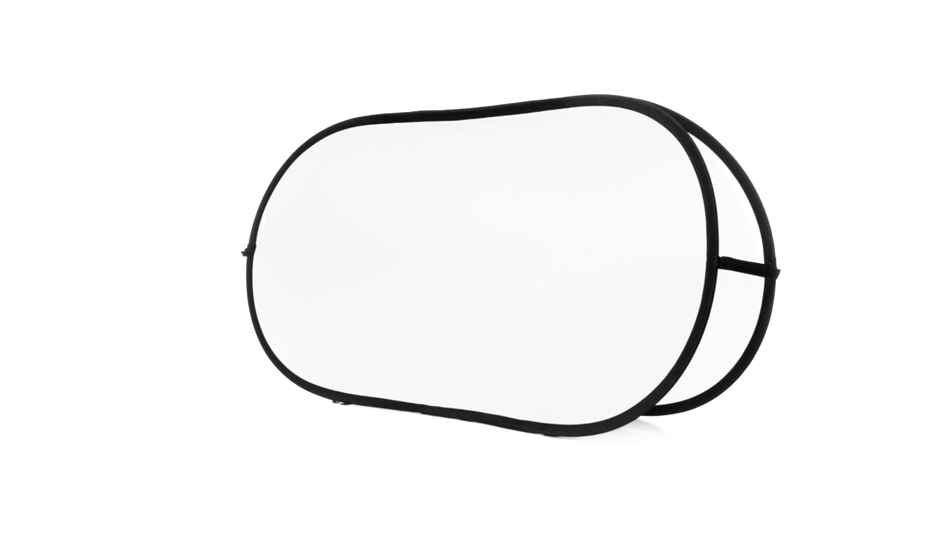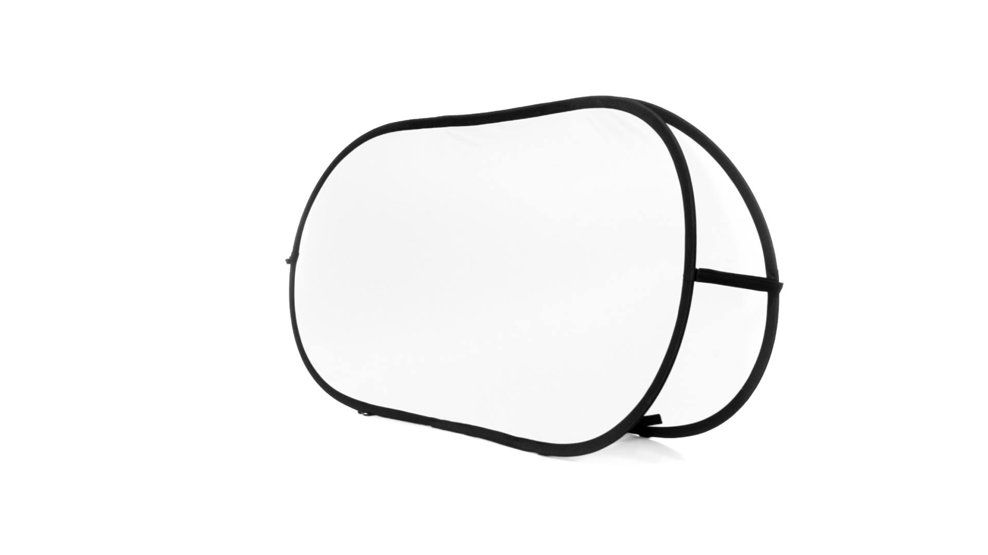 Doppelseitiger Banner aus Polyester in lebendigen Farben mit doppelter verstärkter Druckfläche von 75 x 155 cm. Mit flexiblen Fiberglas-Innenstreben und 4 Metall-Bodendübeln zur Befestigung am Boden. Präsentation in gefaltetem Zustand in einem robusten Polyester-Etui mit Reissverschluss, sowie Tasche für die Bodendübel.