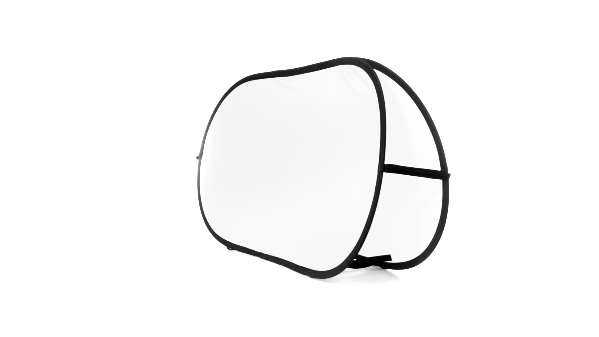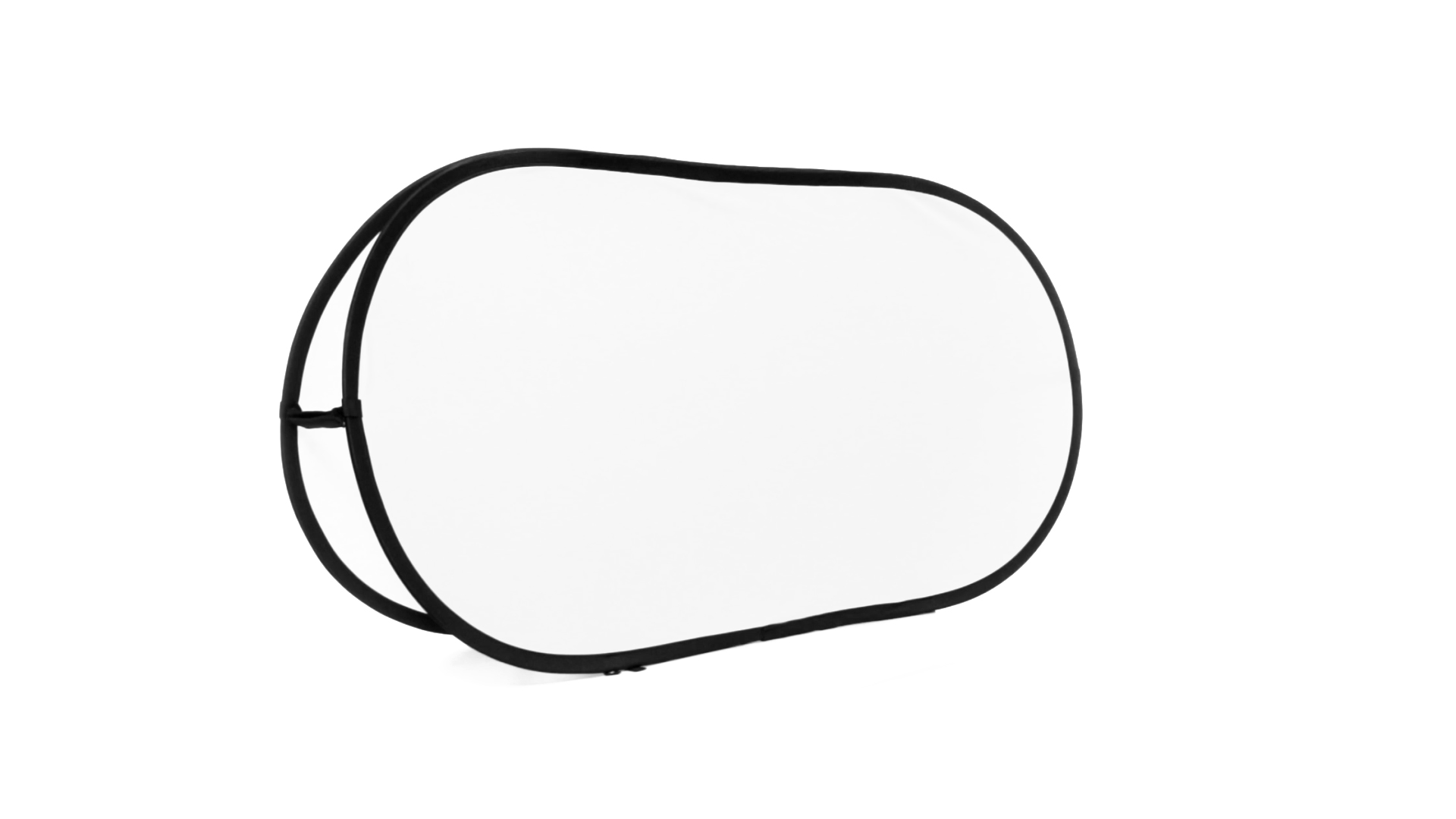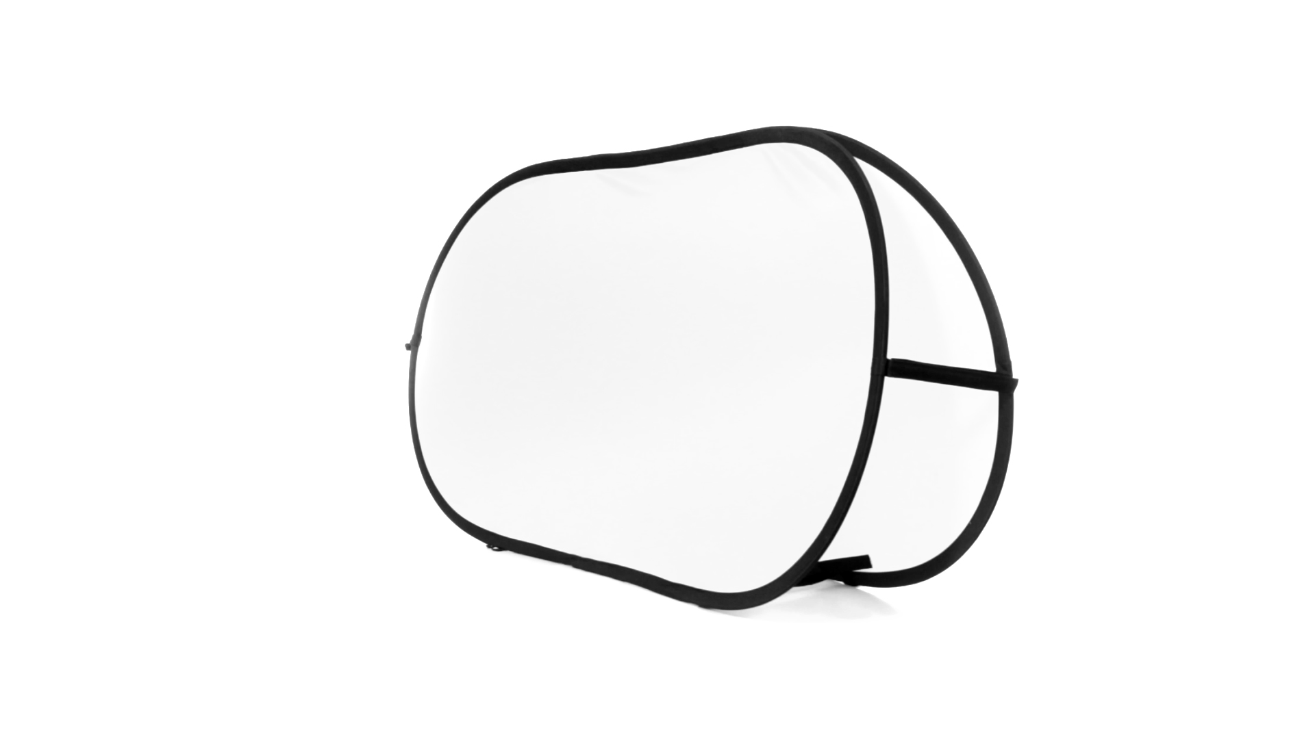 Doppelseitiger Banner aus Polyester in lebendigen Farben mit doppelter verstärkter Druckfläche von 75 x 155 cm. Mit flexiblen Fiberglas-Innenstreben und 4 Metall-Bodendübeln zur Befestigung am Boden. Präsentation in gefaltetem Zustand in einem robusten Polyester-Etui mit Reissverschluss, sowie Tasche für die Bodendübel.