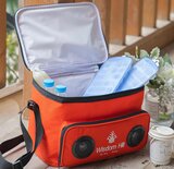 Sound Bag - Soft Kühltasche mit eingebauten Bluetooth-Lautsprechern. Hält 24 Dosen kühl und verfügt über integrierte Bluetooth-Lautsprecher und einen wiederaufladbaren Akku.