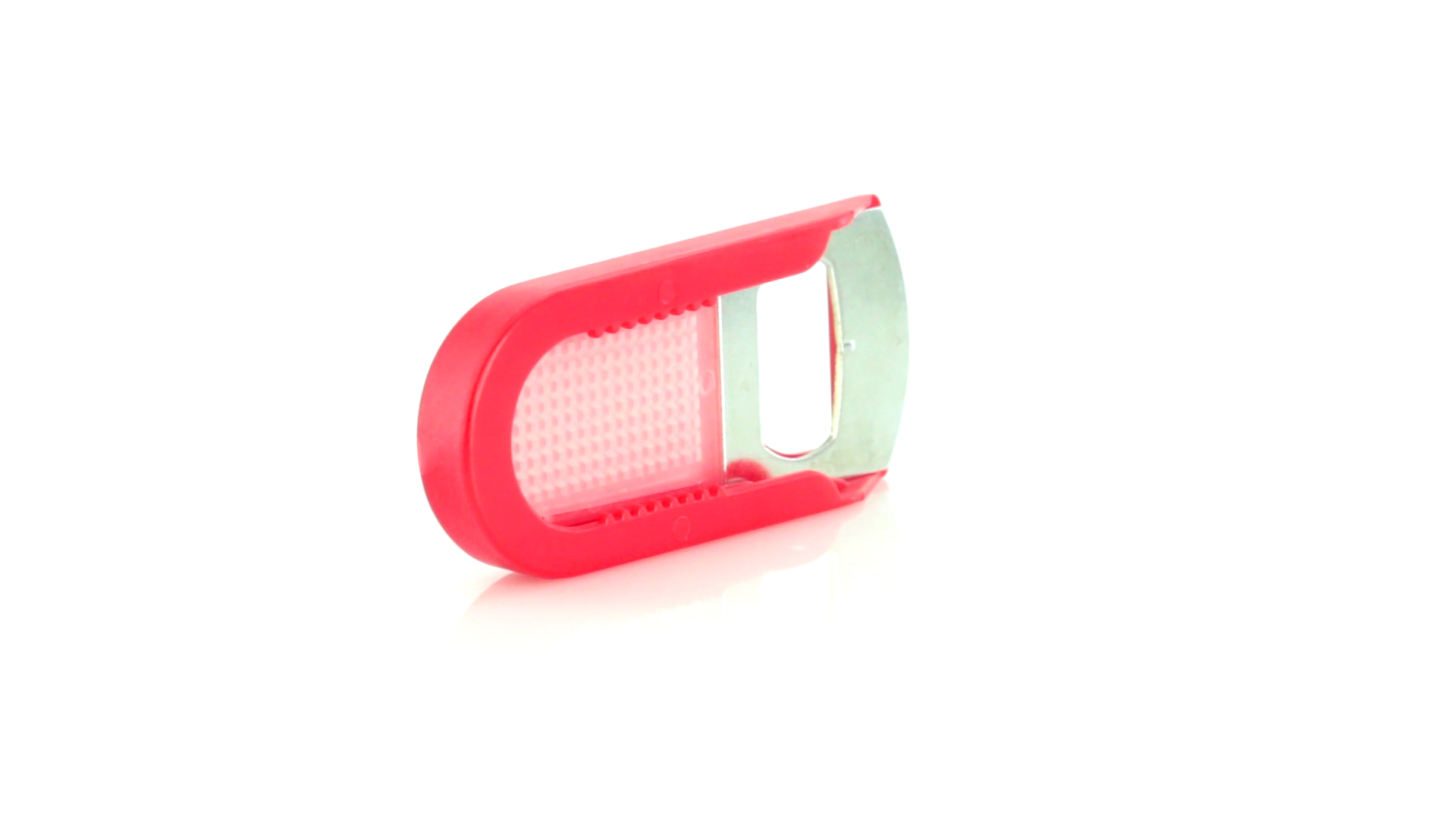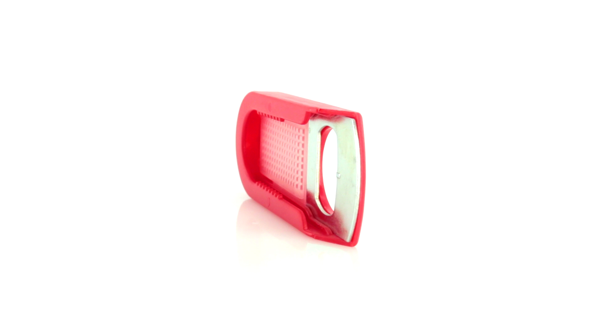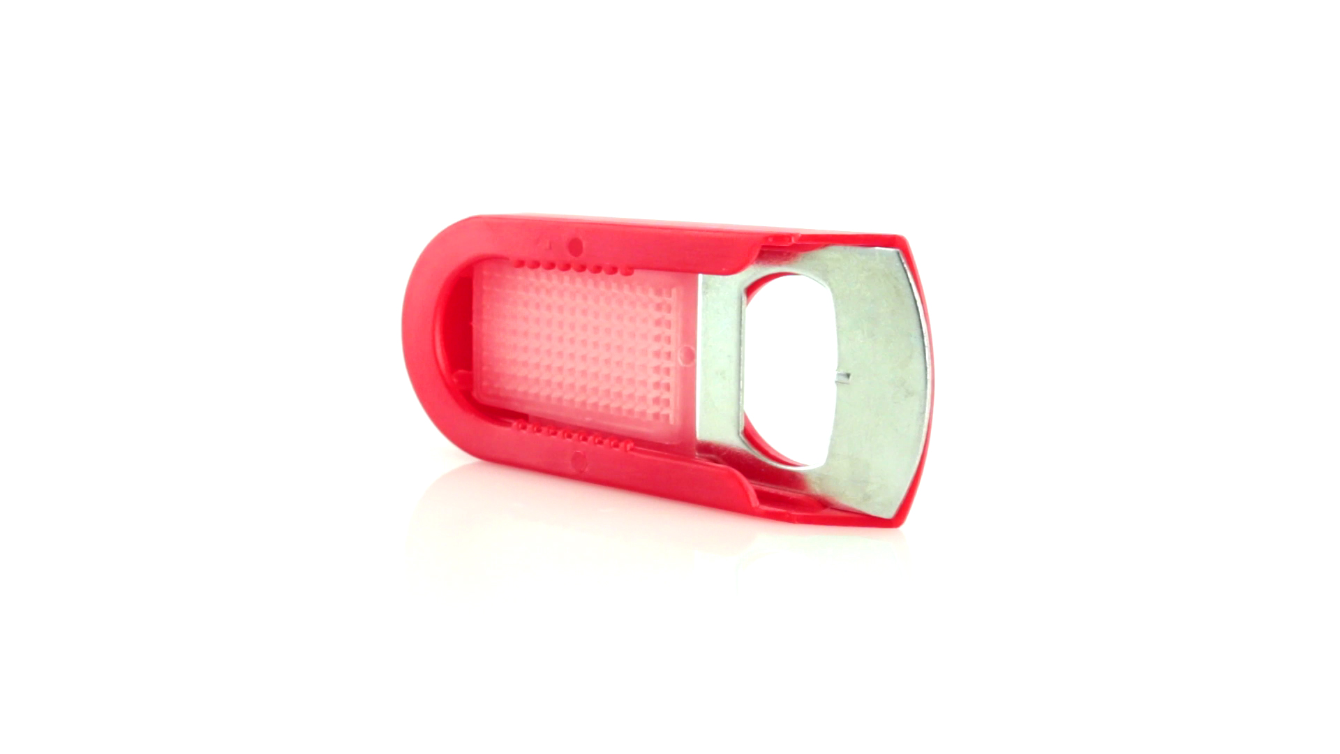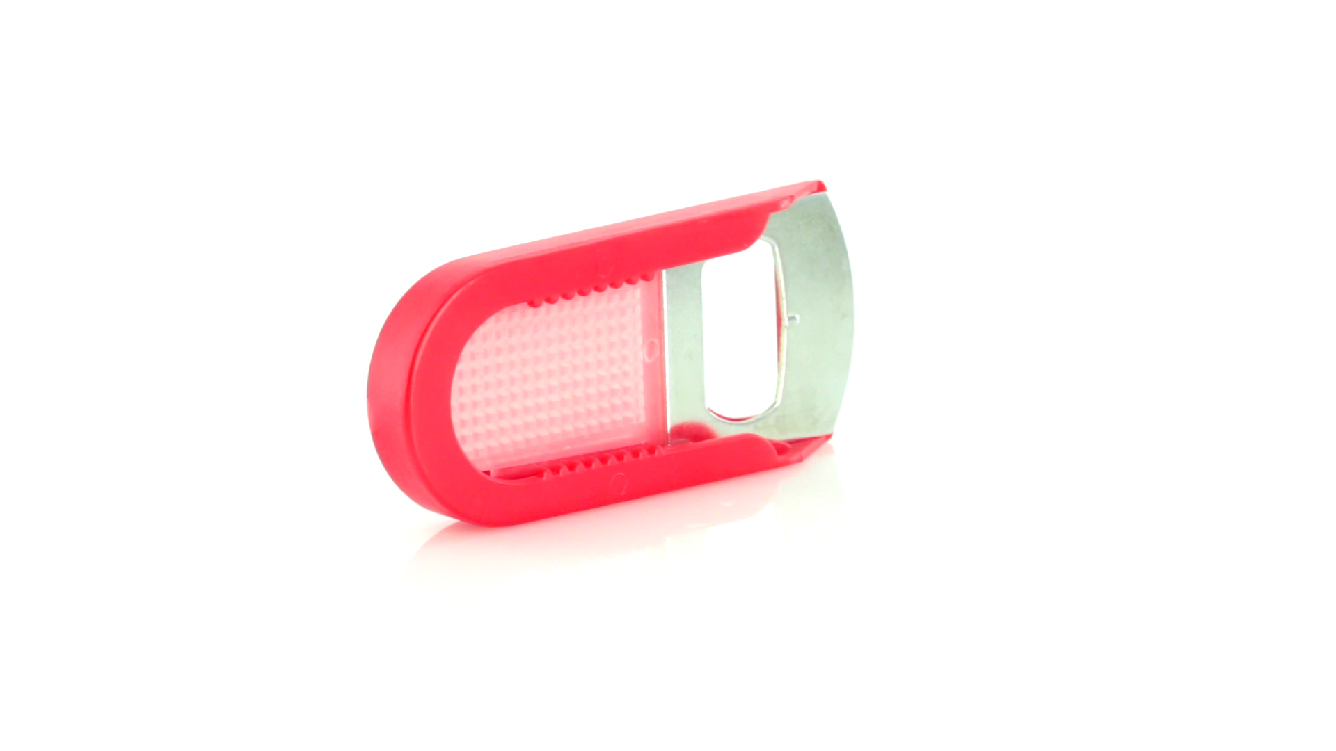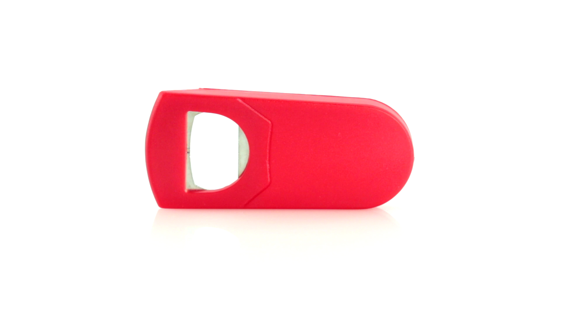 Flaschenöffner mit robustem Körper in verschiedenen Farben. Mit Metallheber zum Öffnen. Rückseite mit Flaschendeckel.