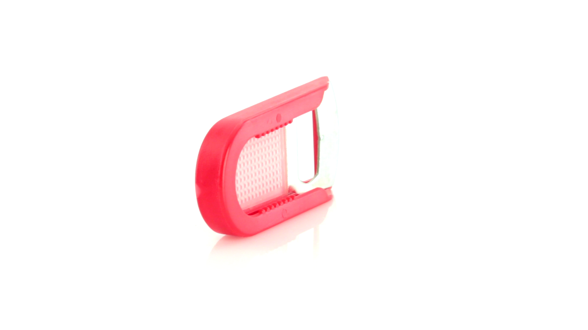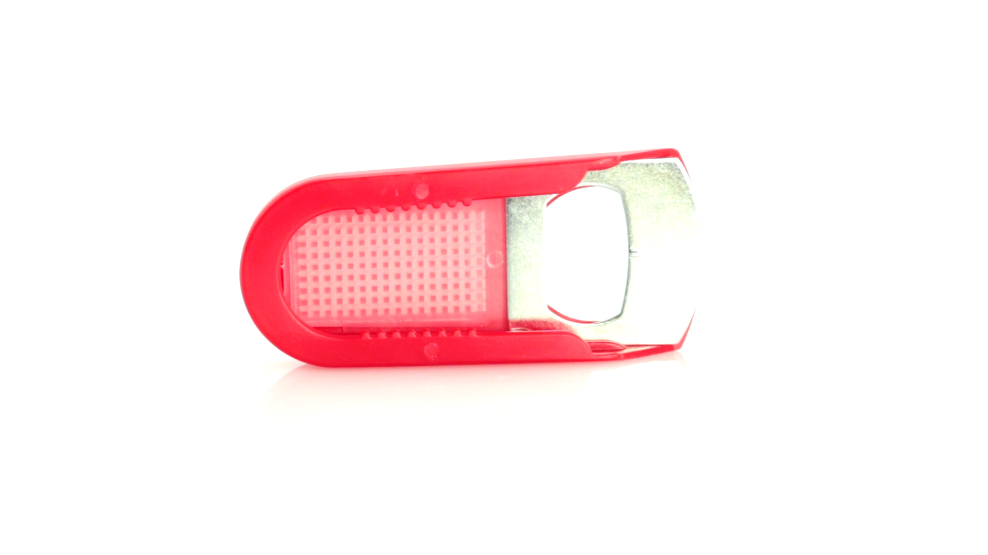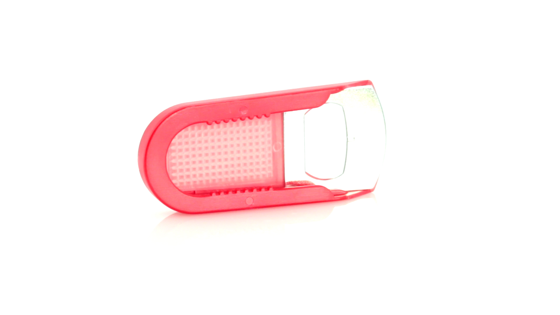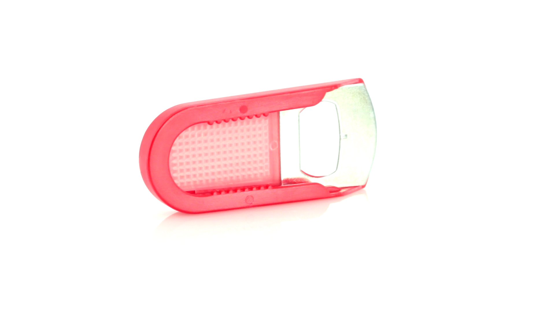 Flaschenöffner mit robustem Körper in verschiedenen Farben. Mit Metallheber zum Öffnen. Rückseite mit Flaschendeckel.