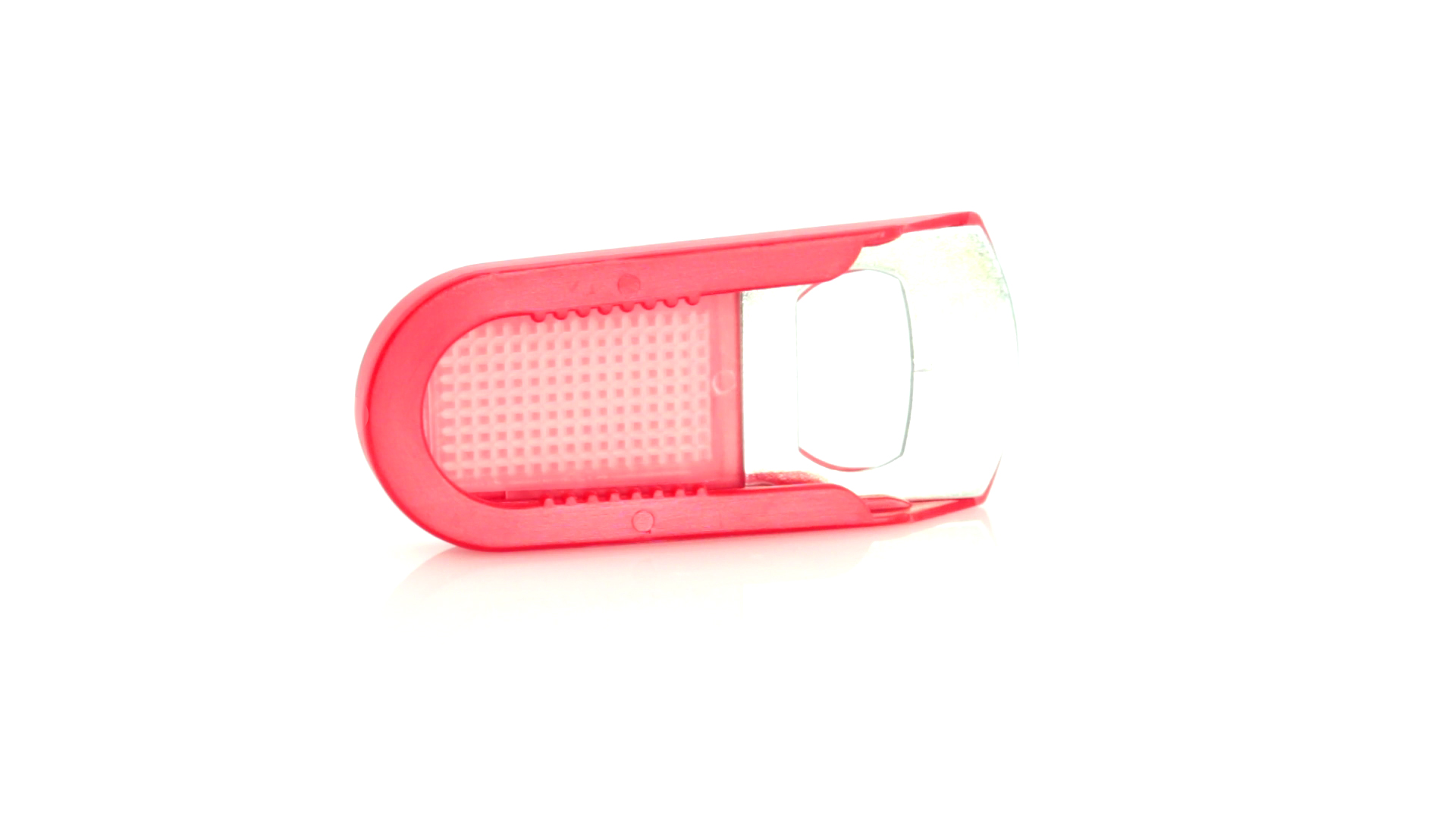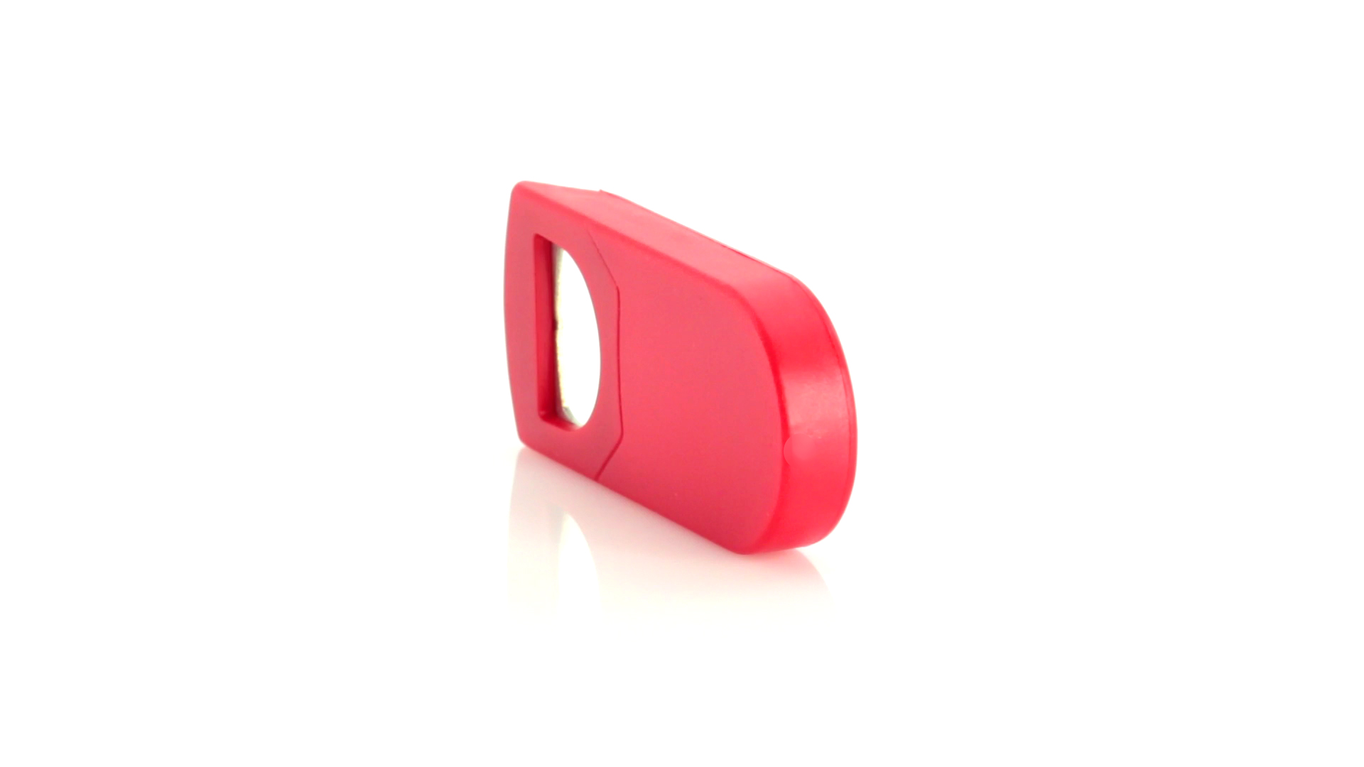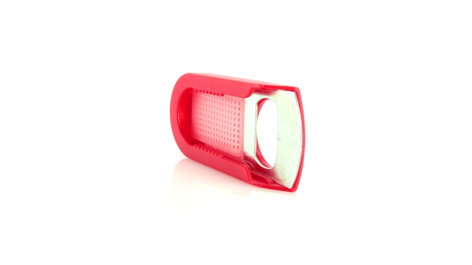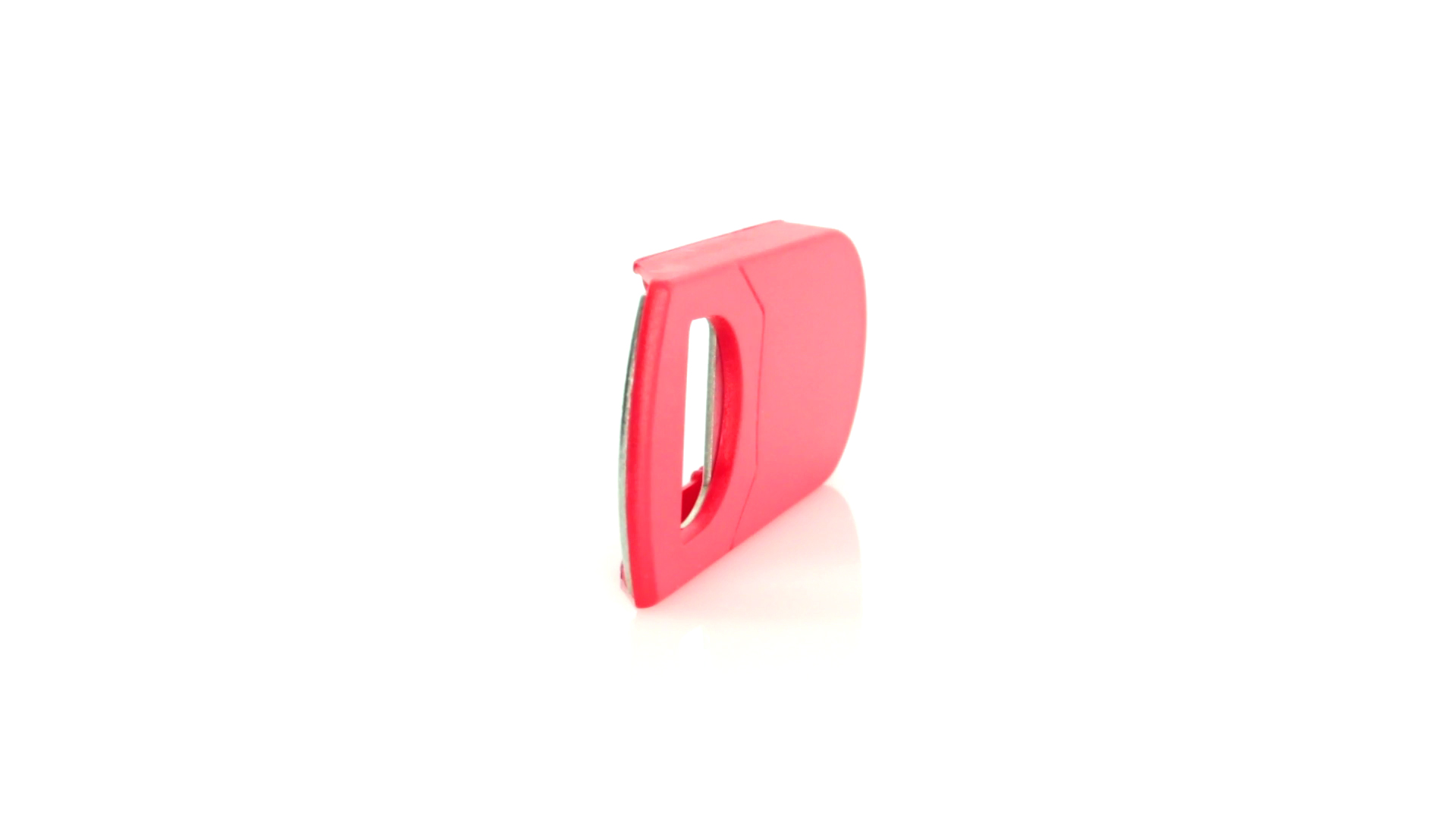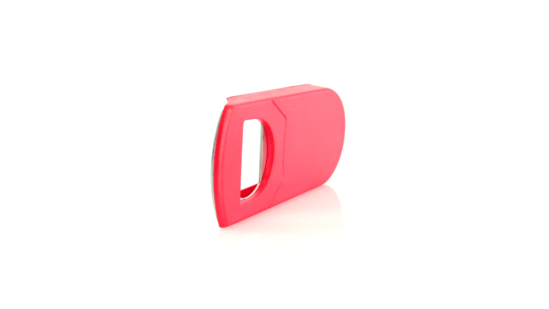 Flaschenöffner mit robustem Körper in verschiedenen Farben. Mit Metallheber zum Öffnen. Rückseite mit Flaschendeckel.