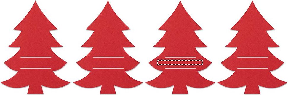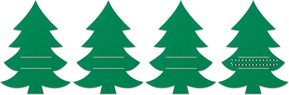 Set mit 4 Besteckhaltern aus RPET-Filz in Form eines Tannenbaums. Lieferung in einer Schachtel aus Kraftpapier.
